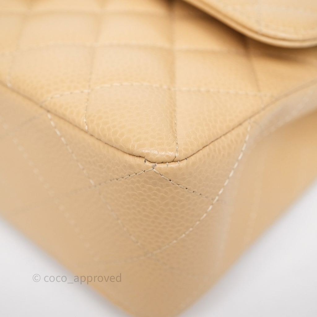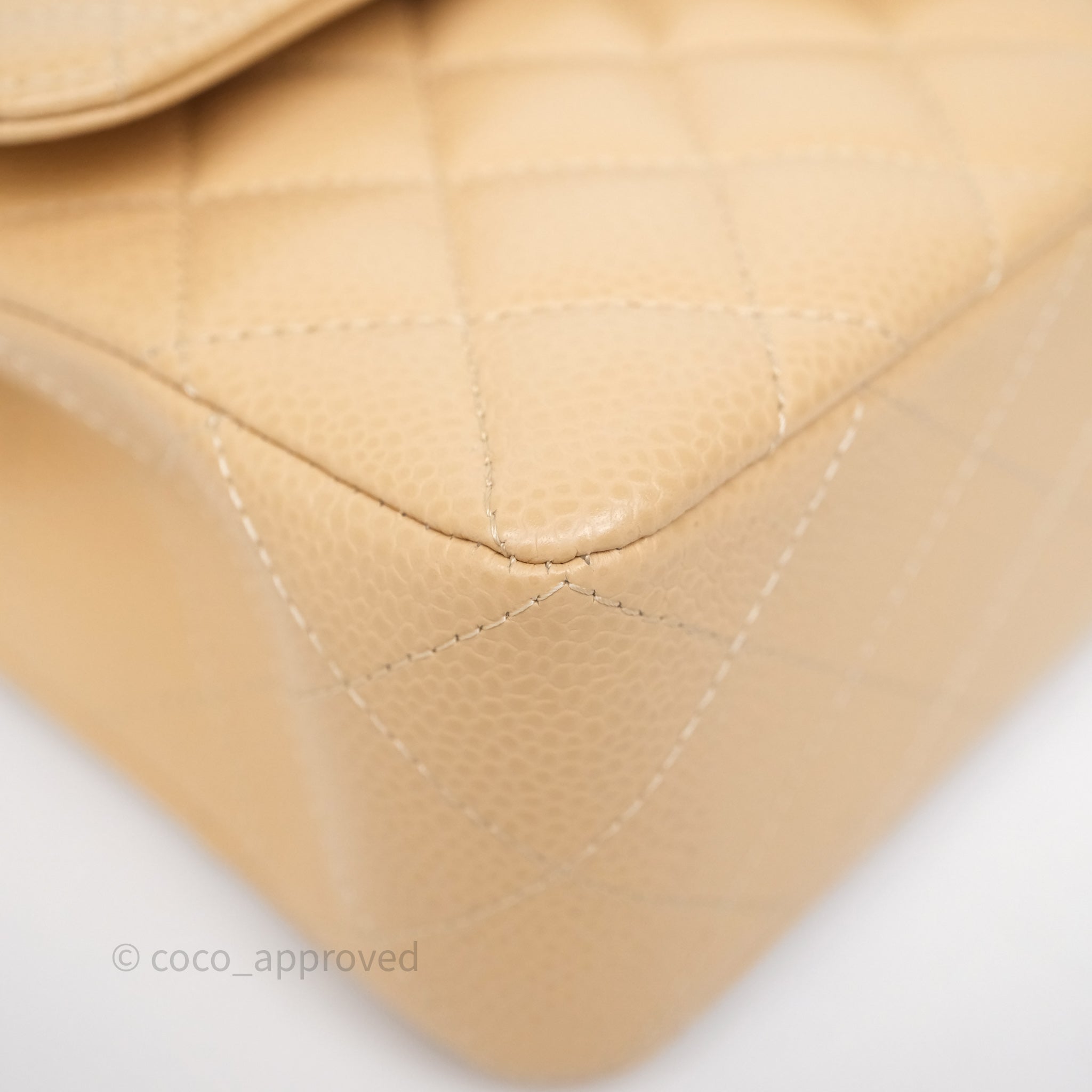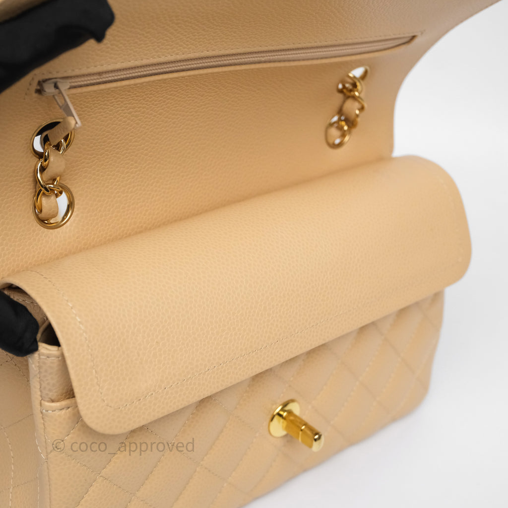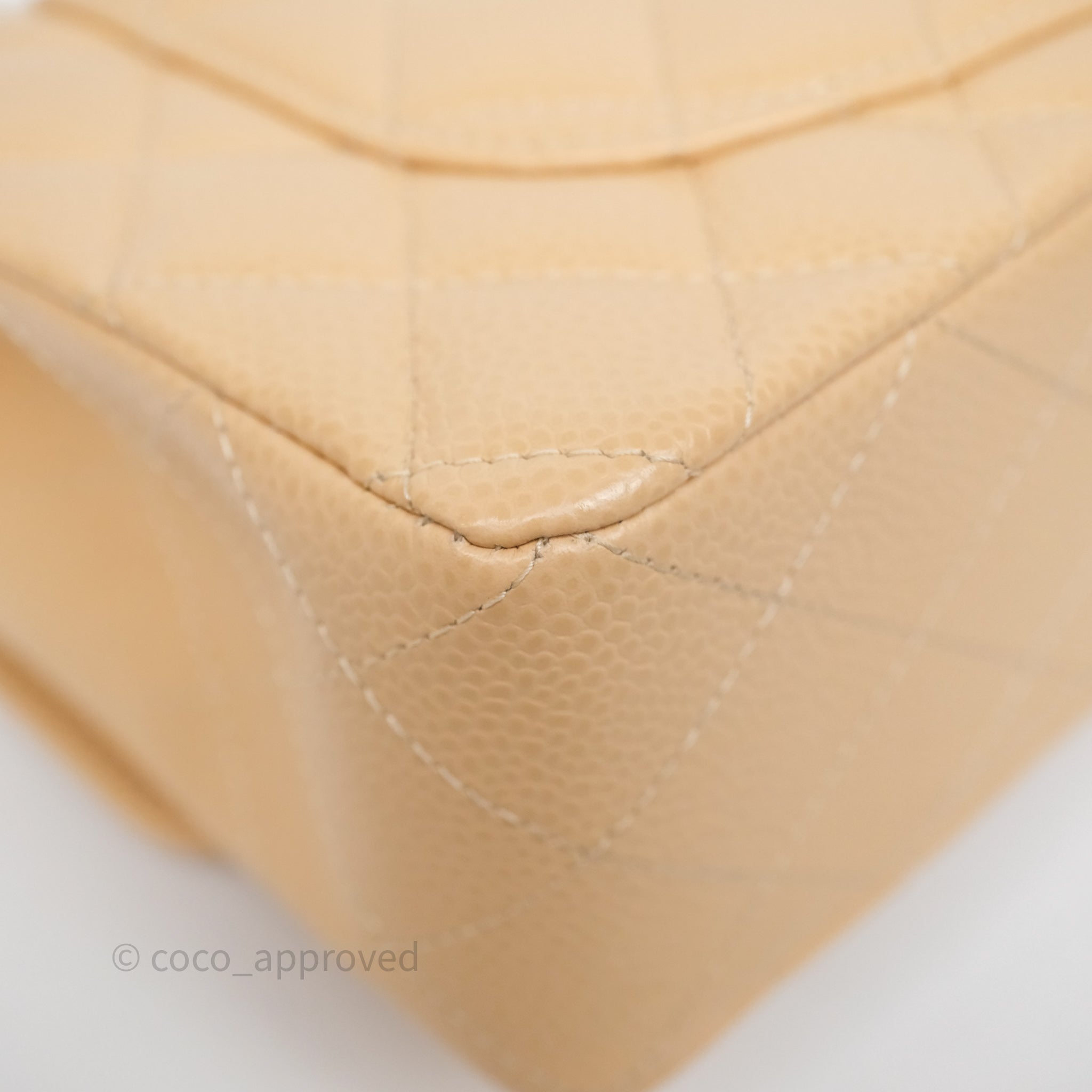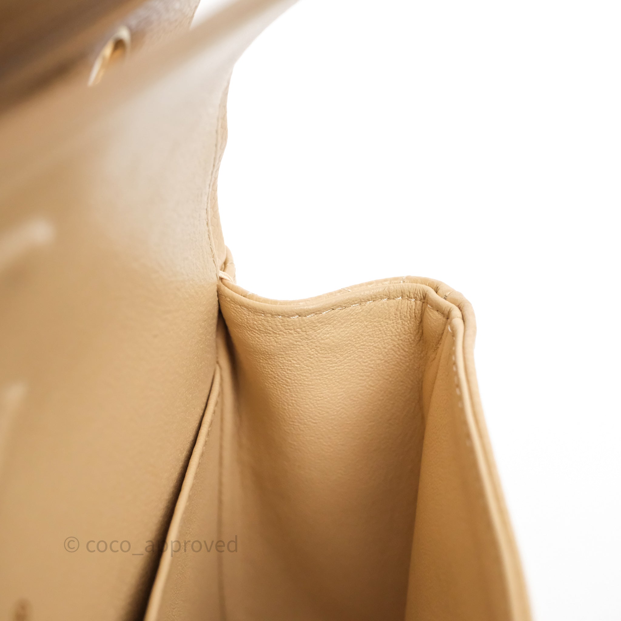 Chanel Small Classic Flap Quilted Beige Caviar Gold Hardware