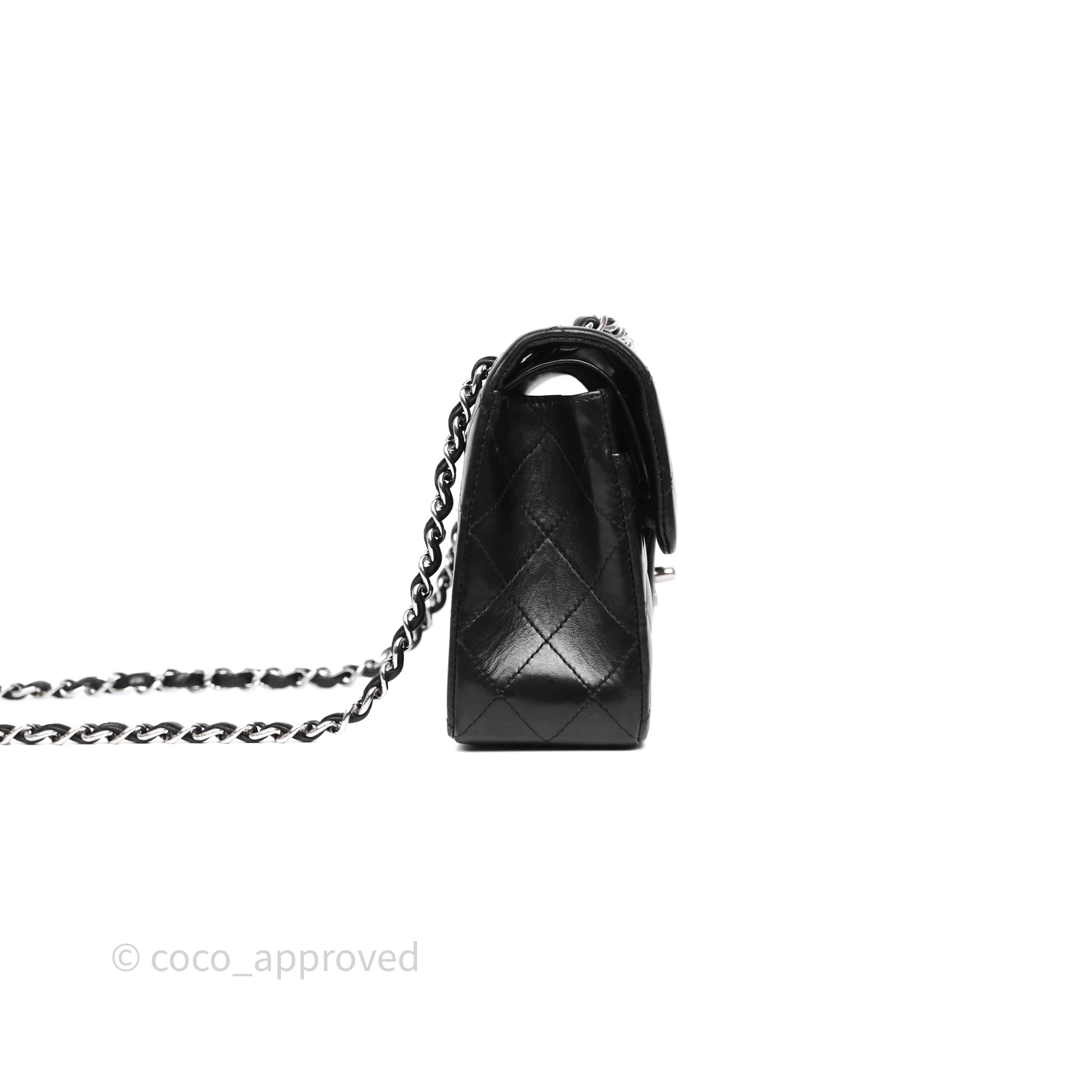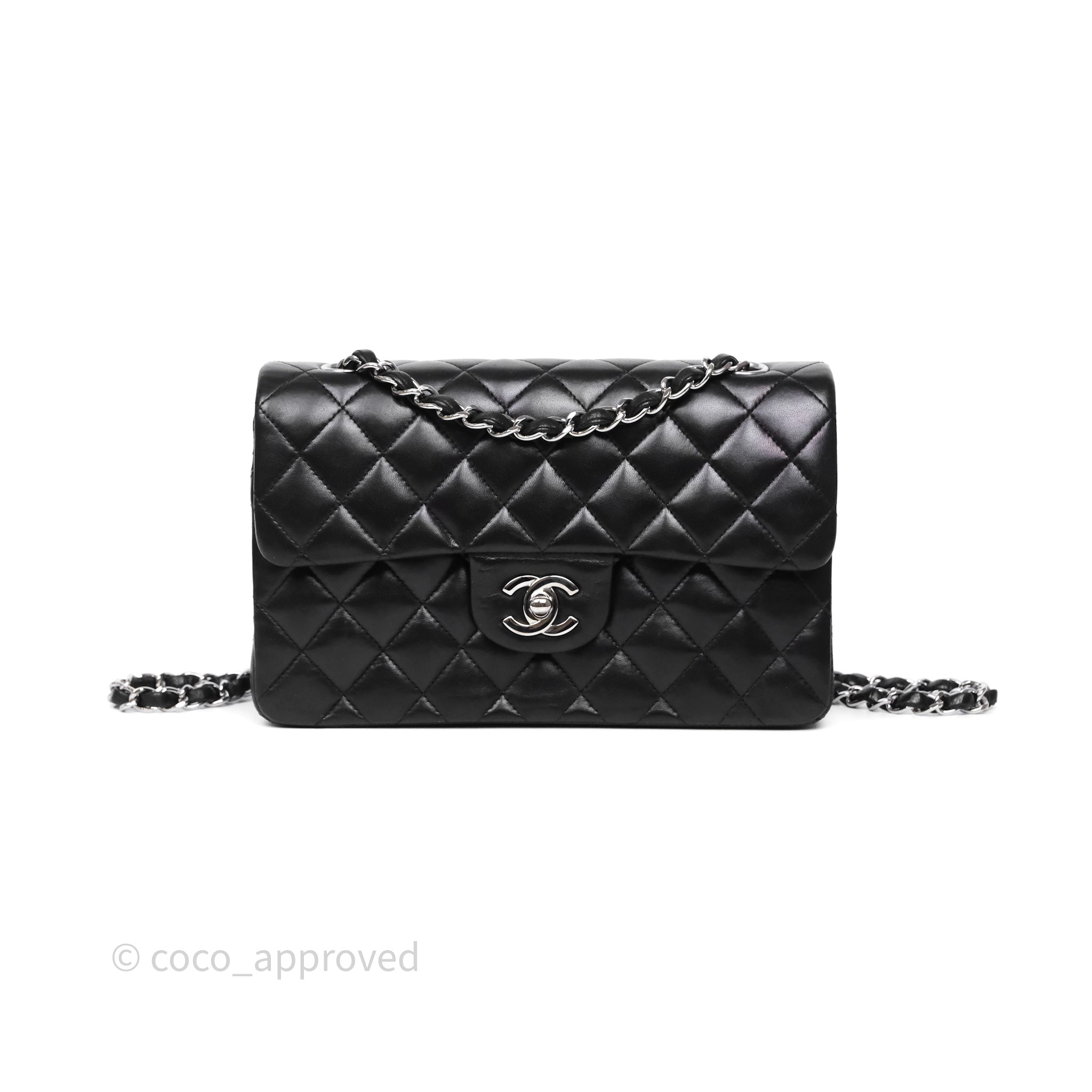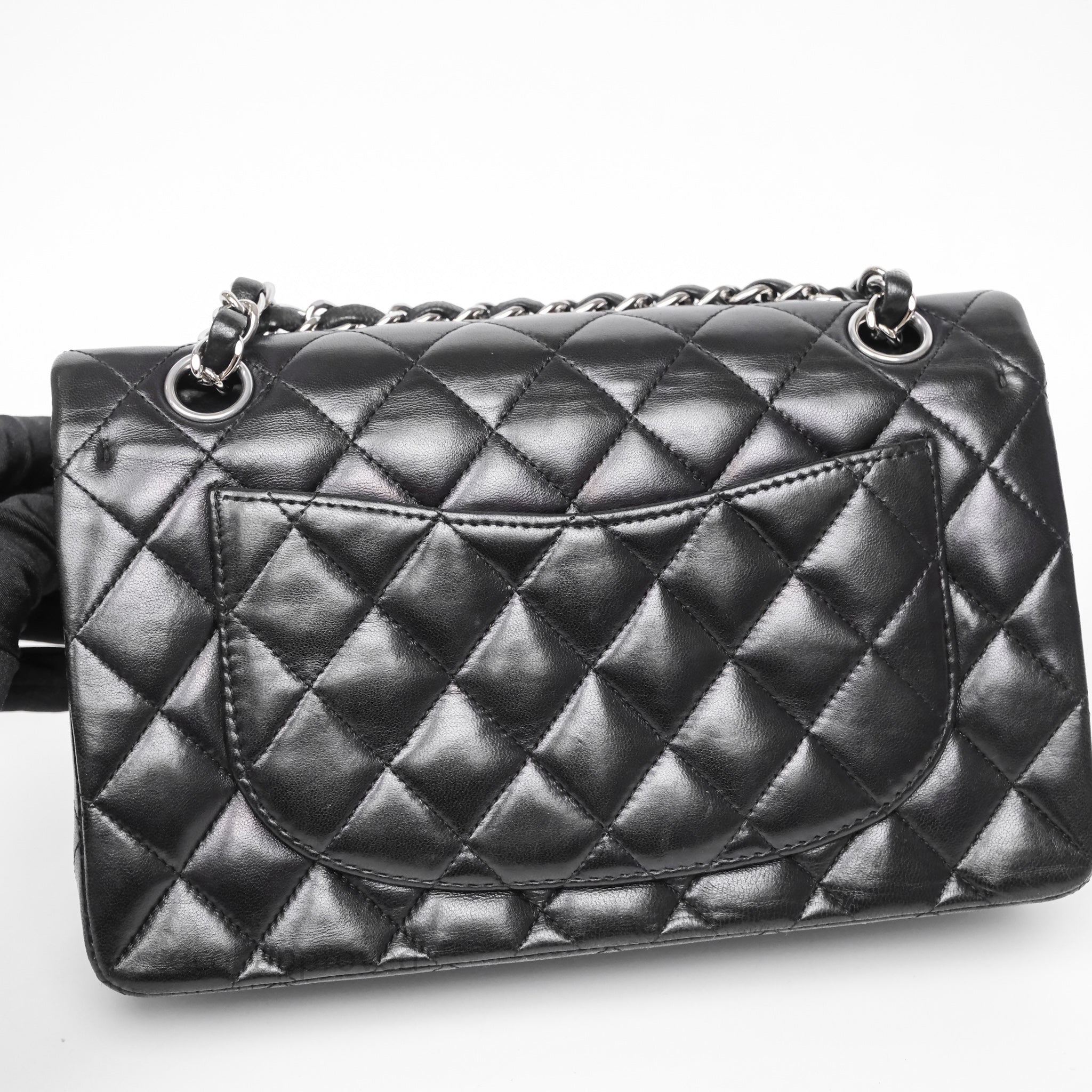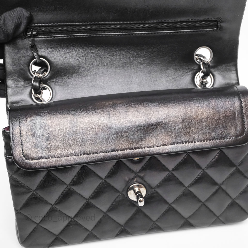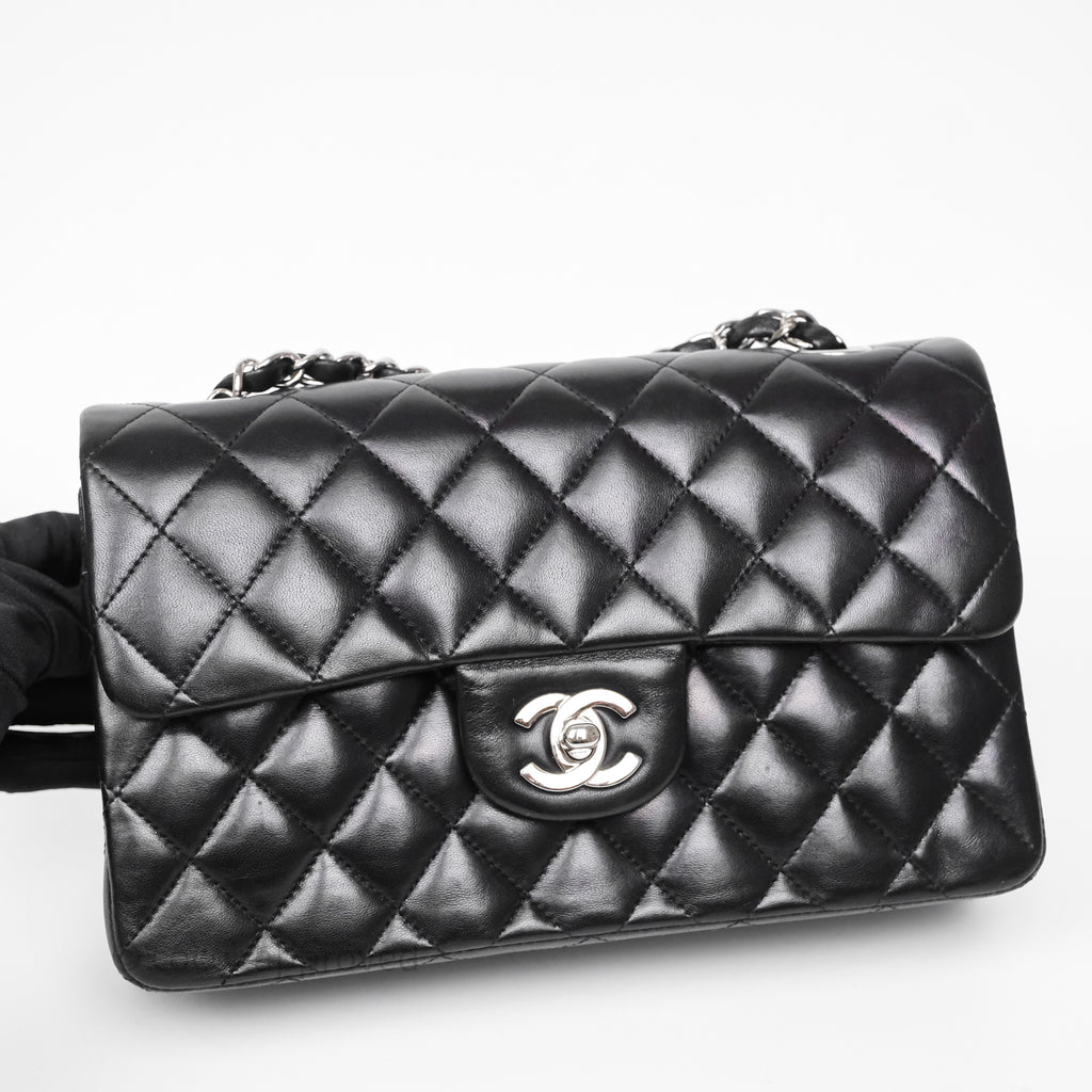Chanel Small Classic Flap Quilted Black Lambskin Silver Hardware