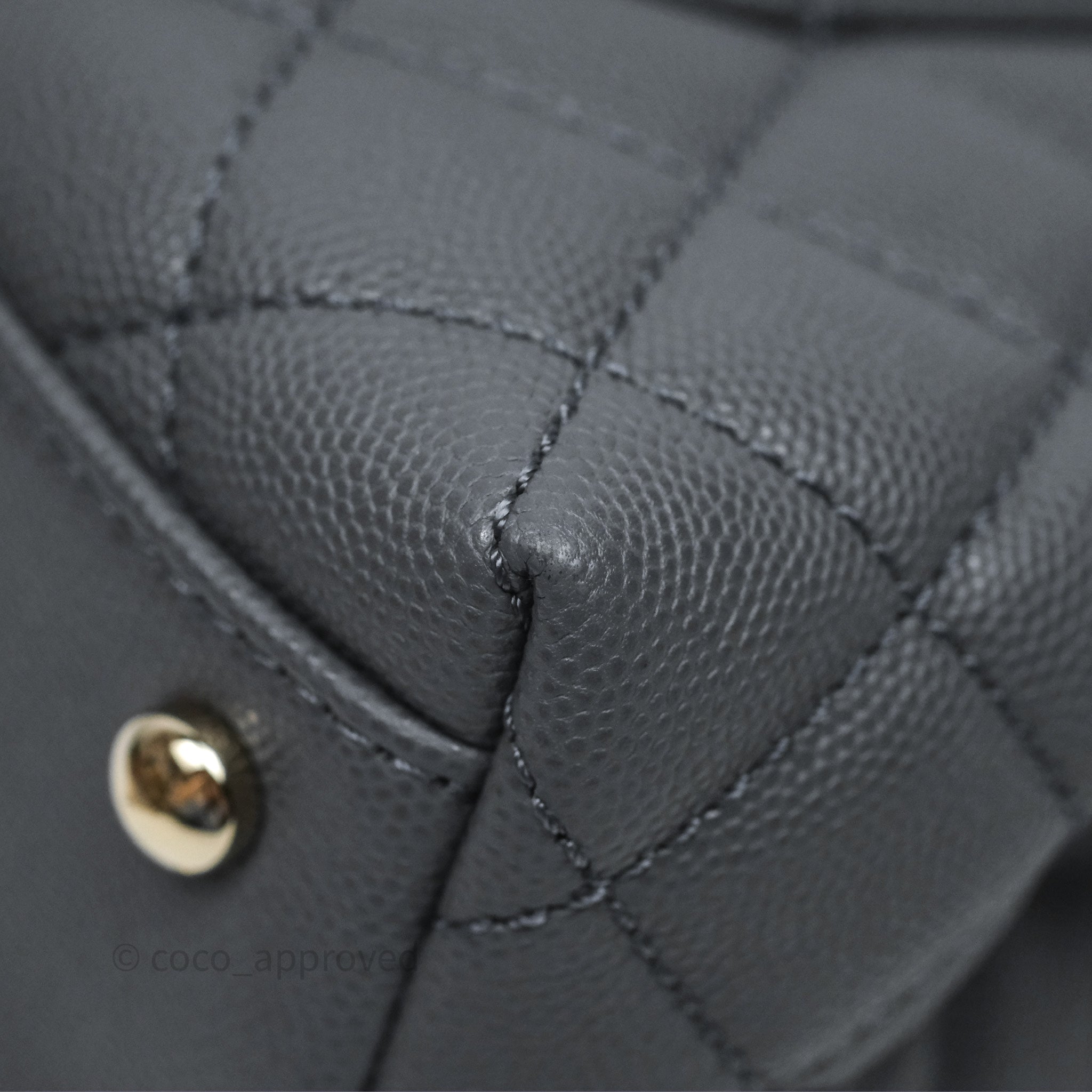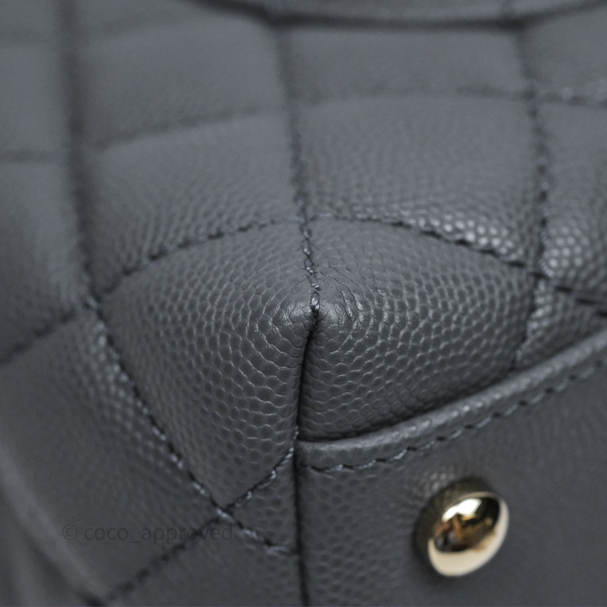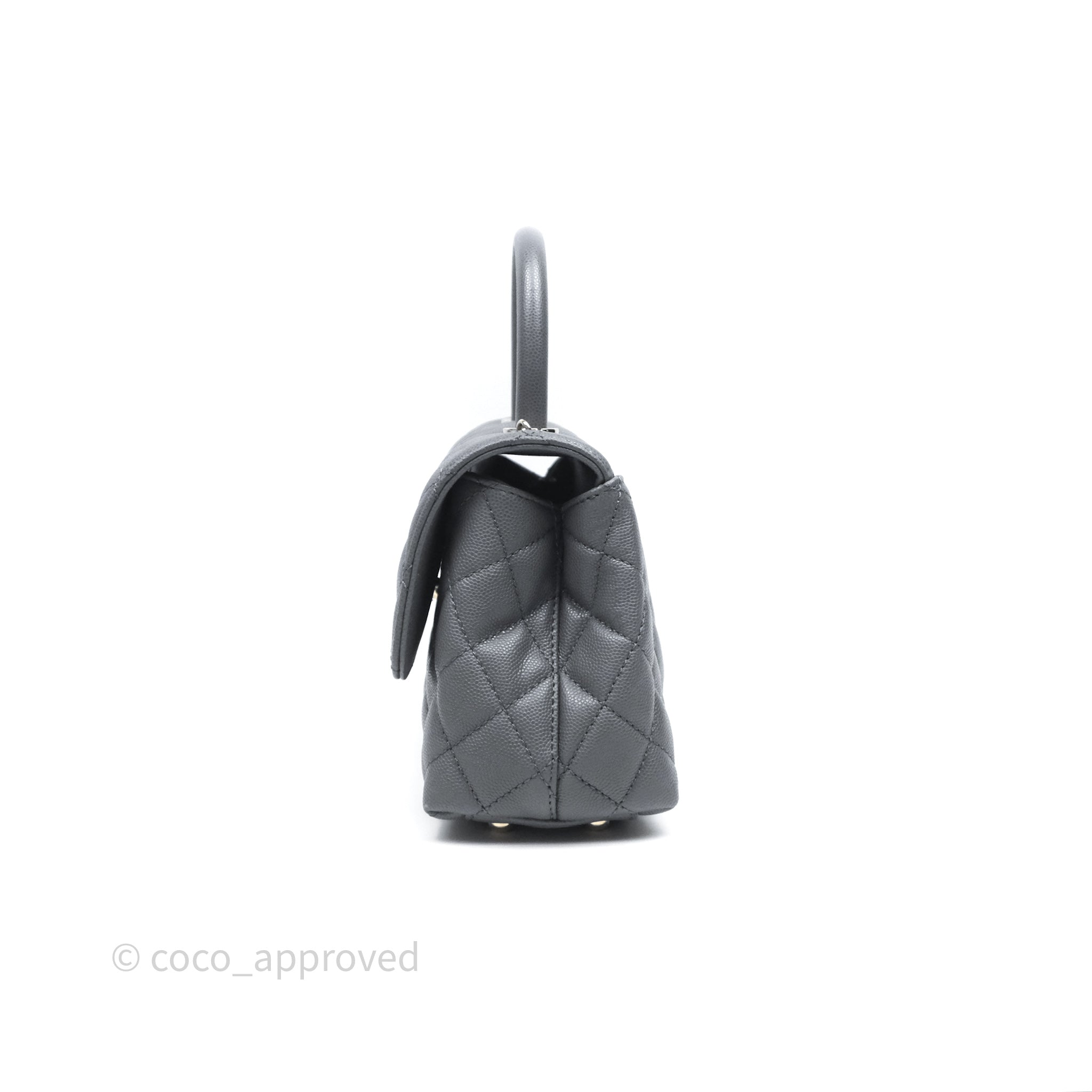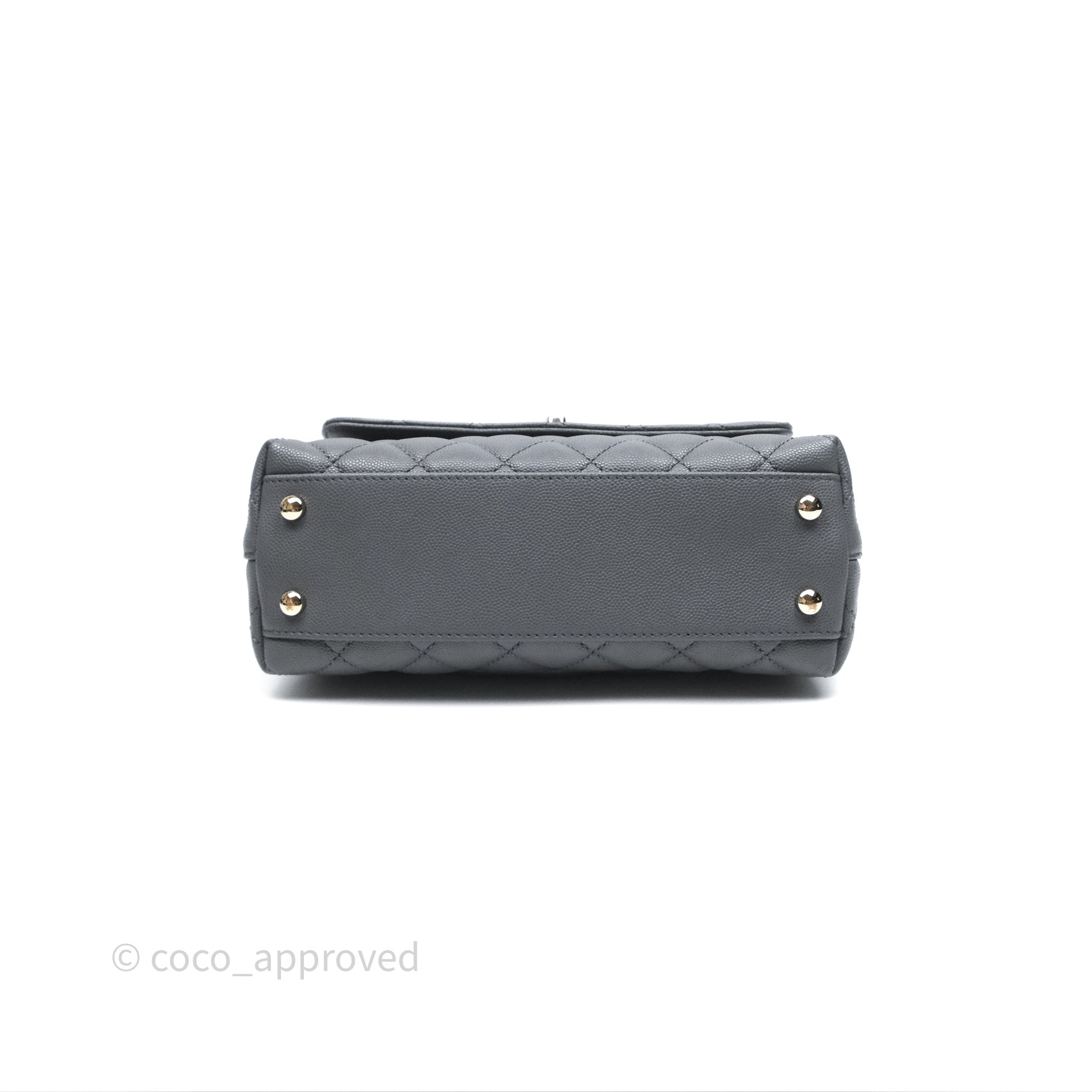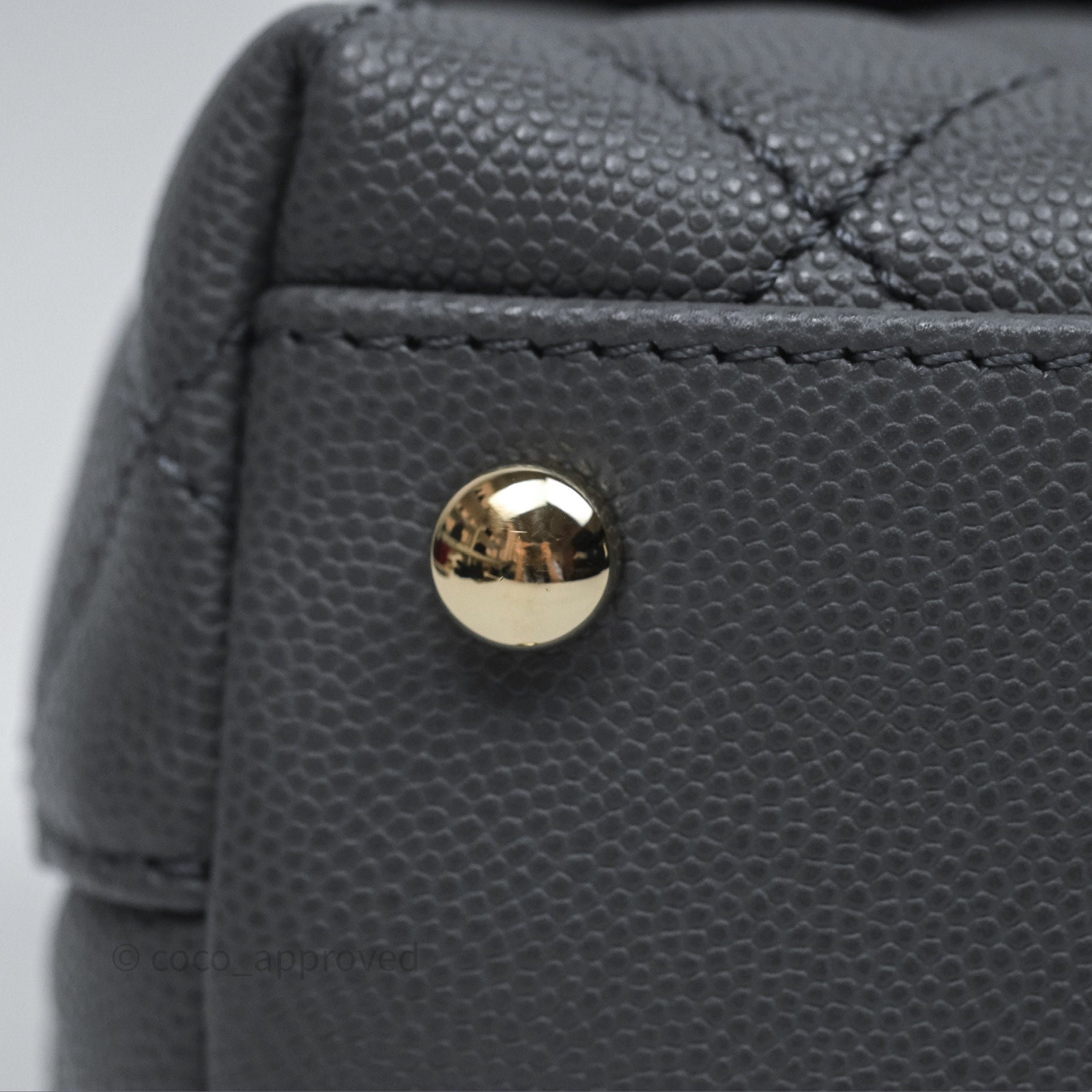 Chanel Small Coco Handle Quilted Grey Caviar Gold Hardware 23K