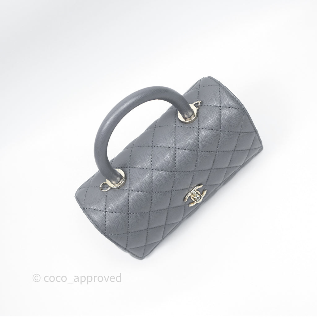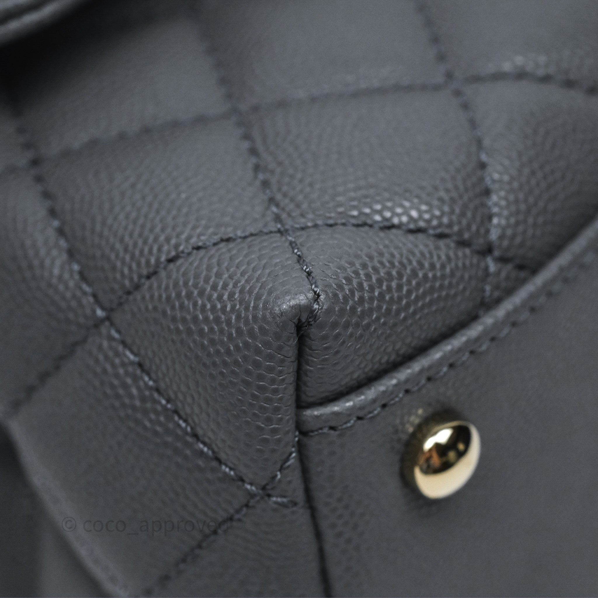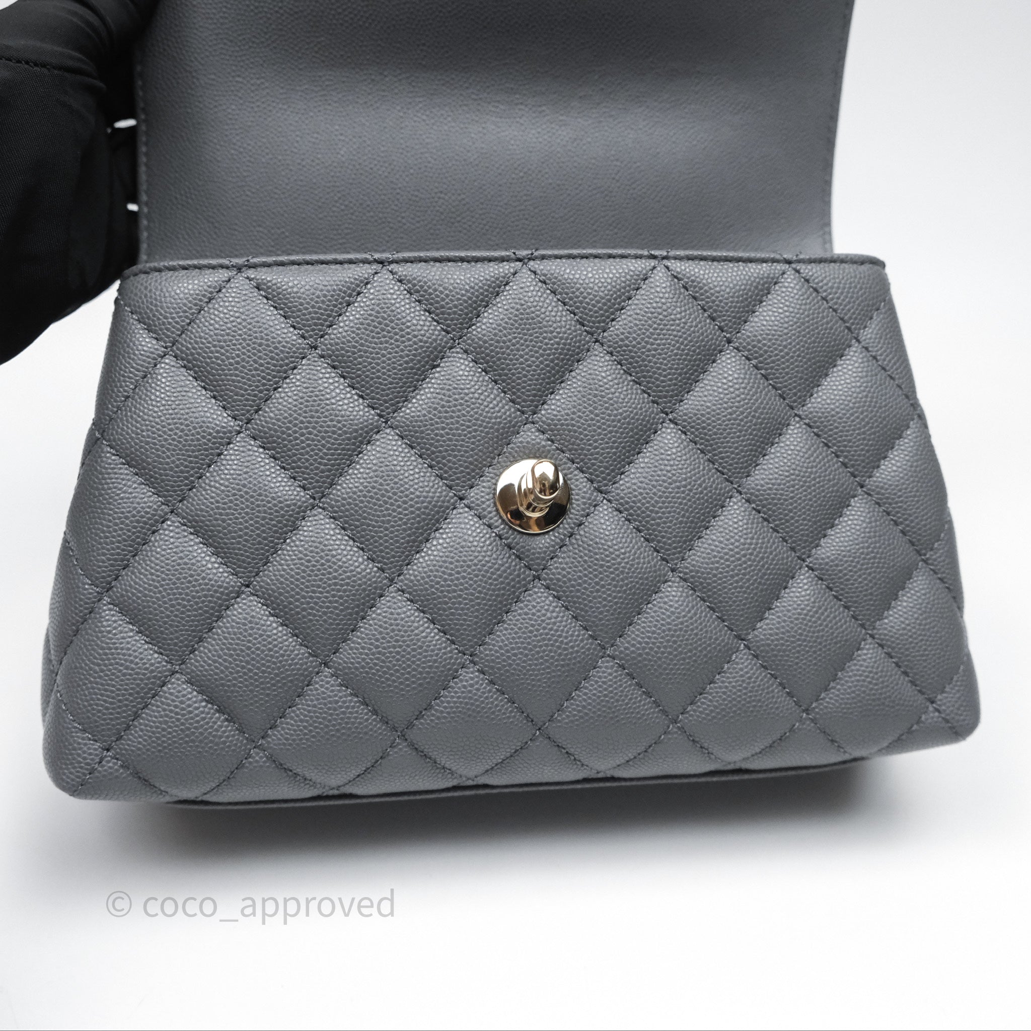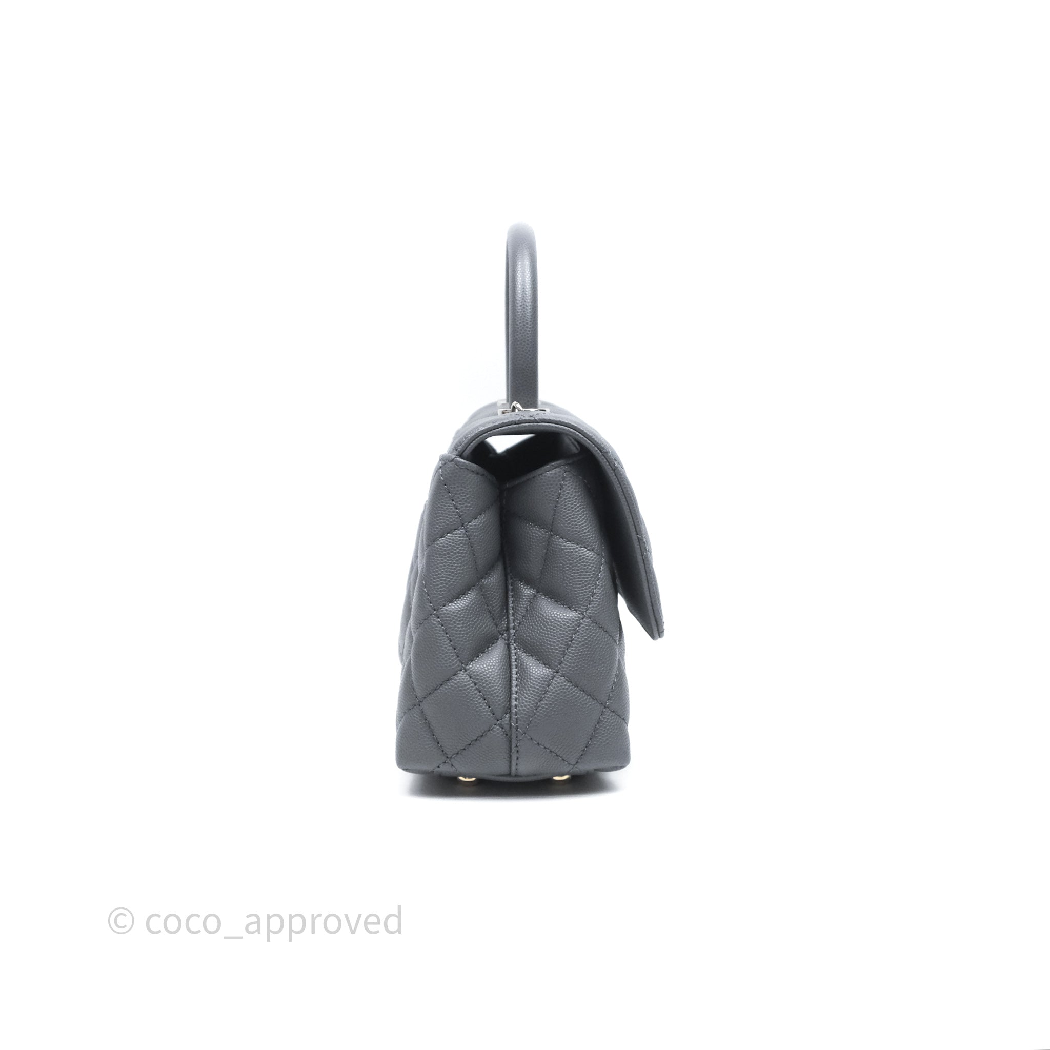 Chanel Small Coco Handle Quilted Grey Caviar Gold Hardware 23K