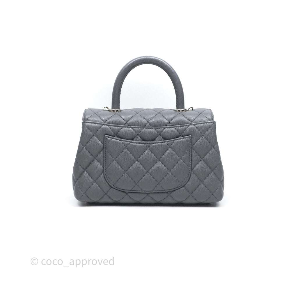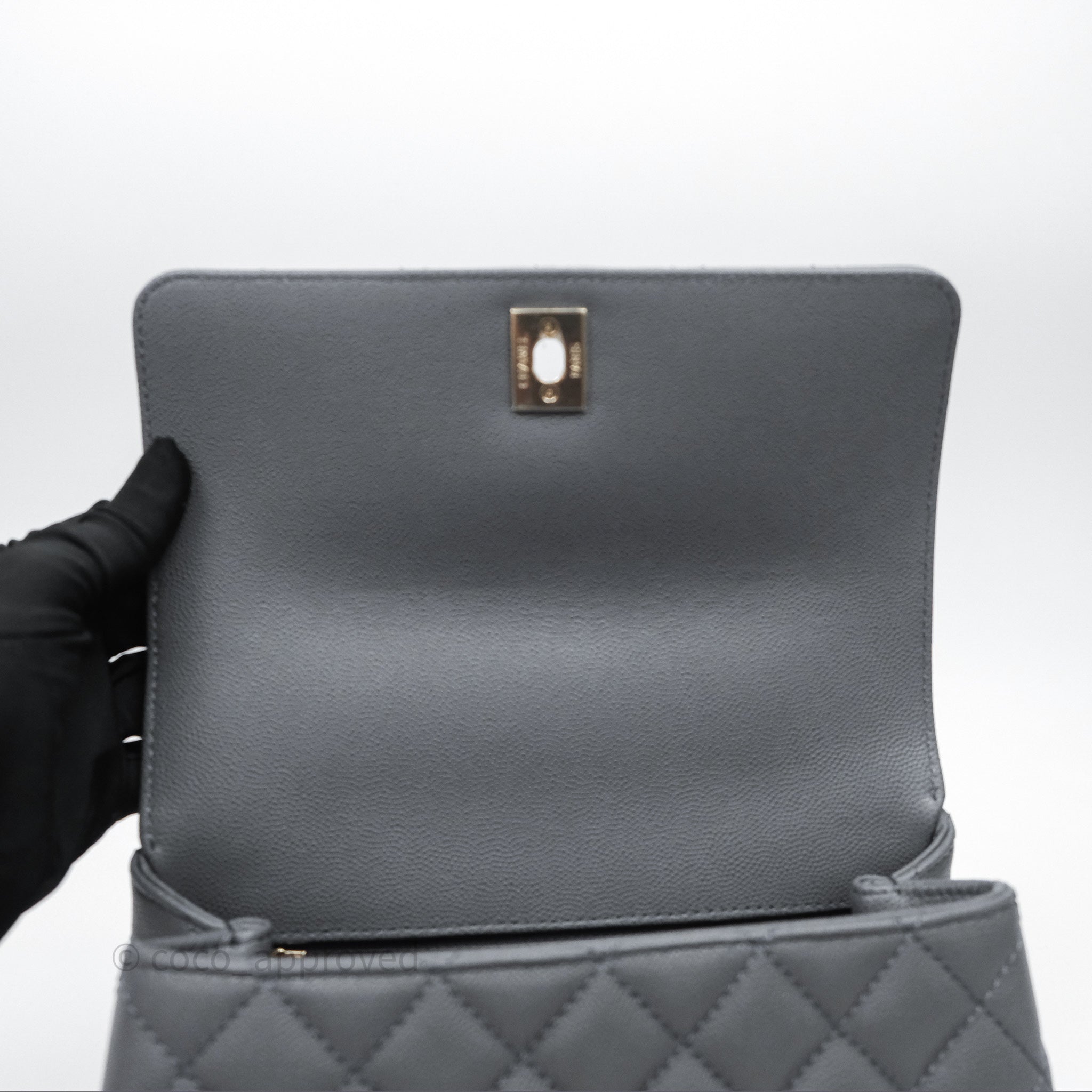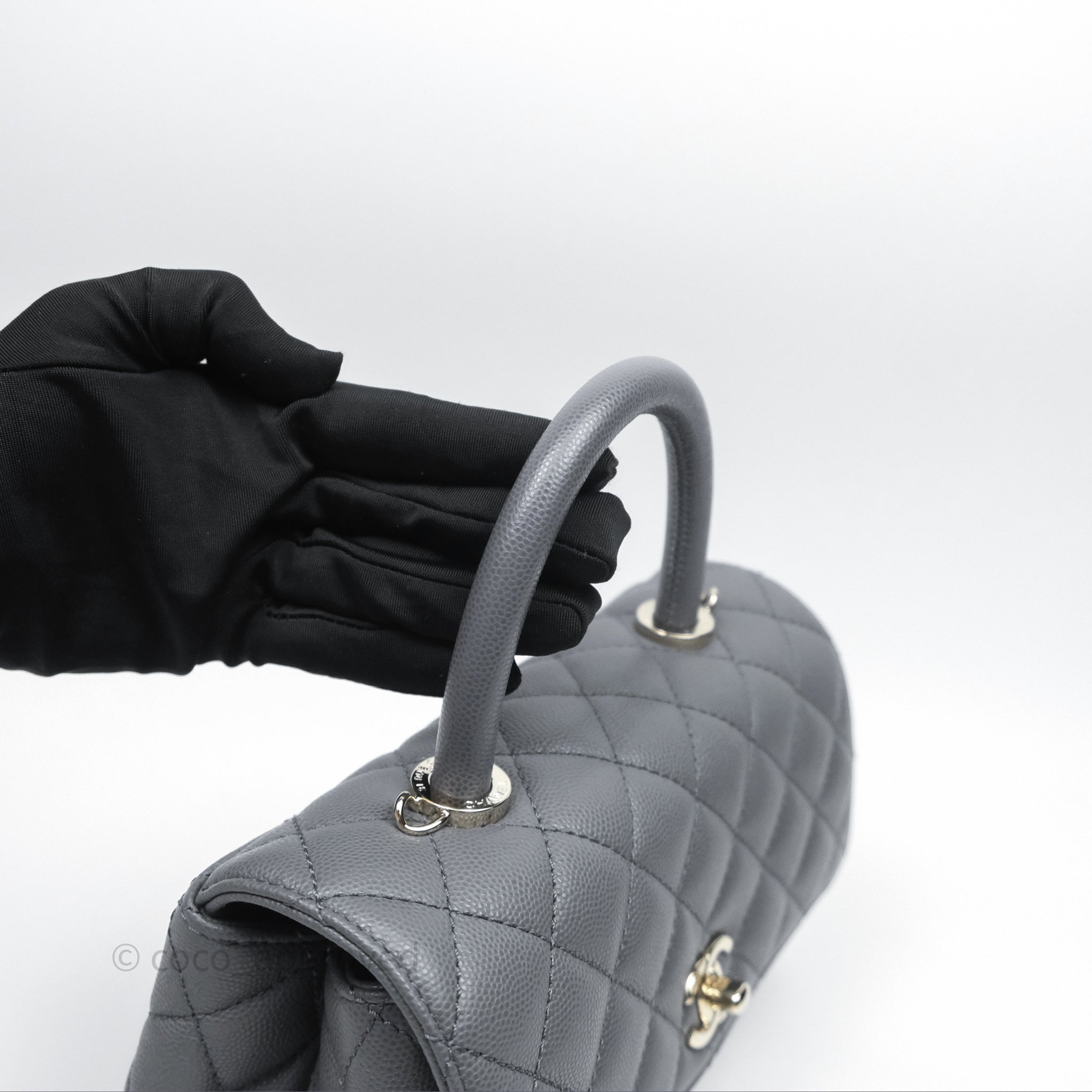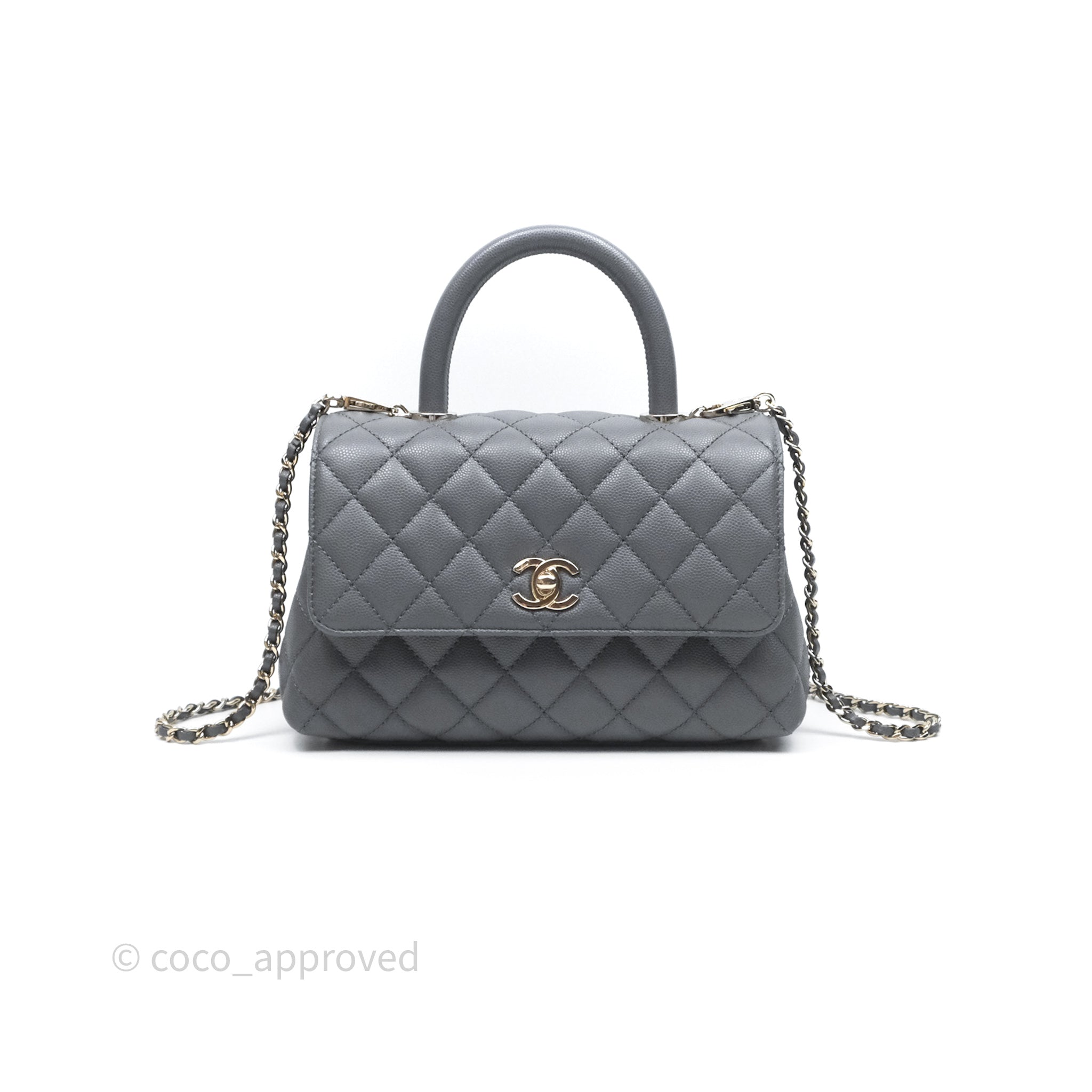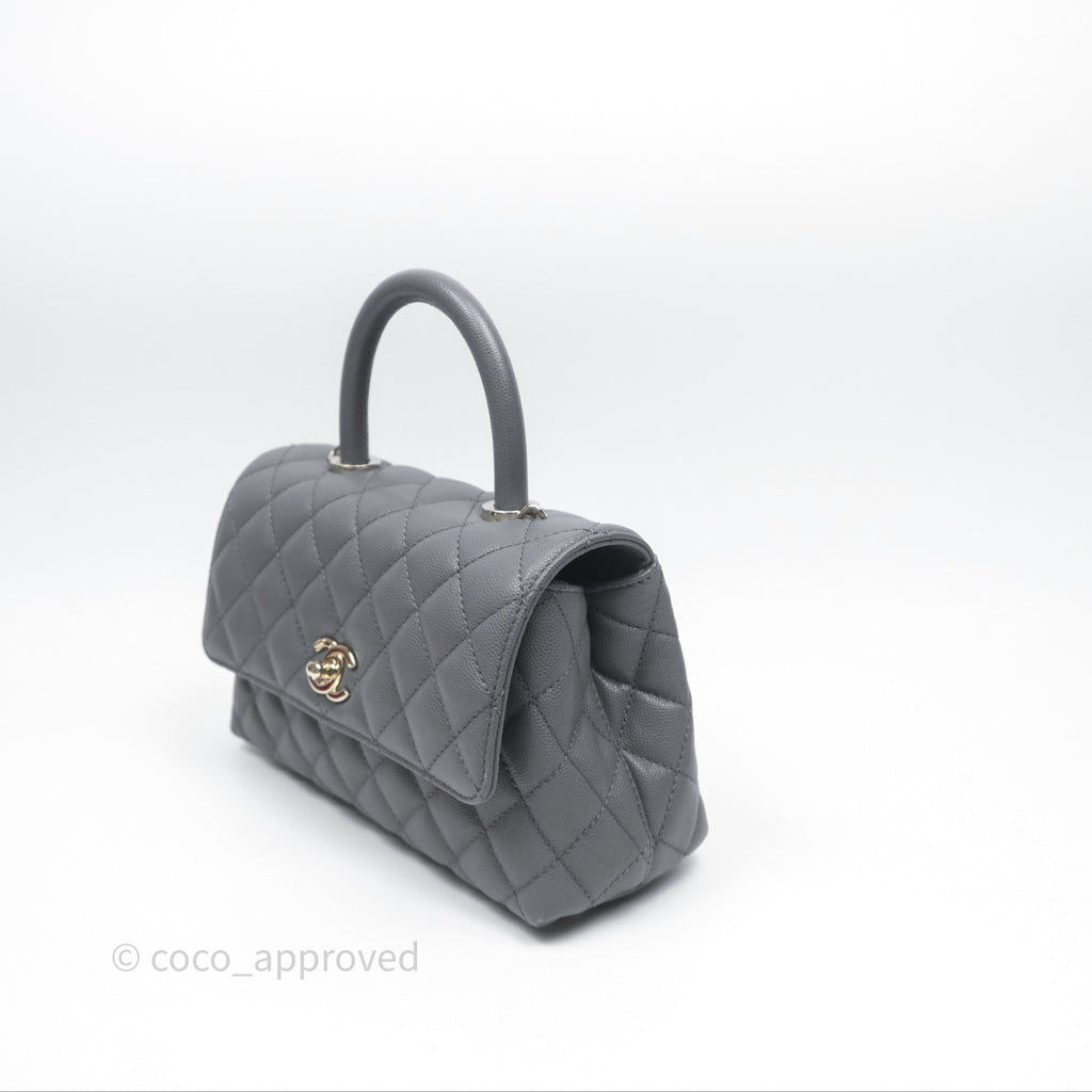 Chanel Small Coco Handle Quilted Grey Caviar Gold Hardware 23K