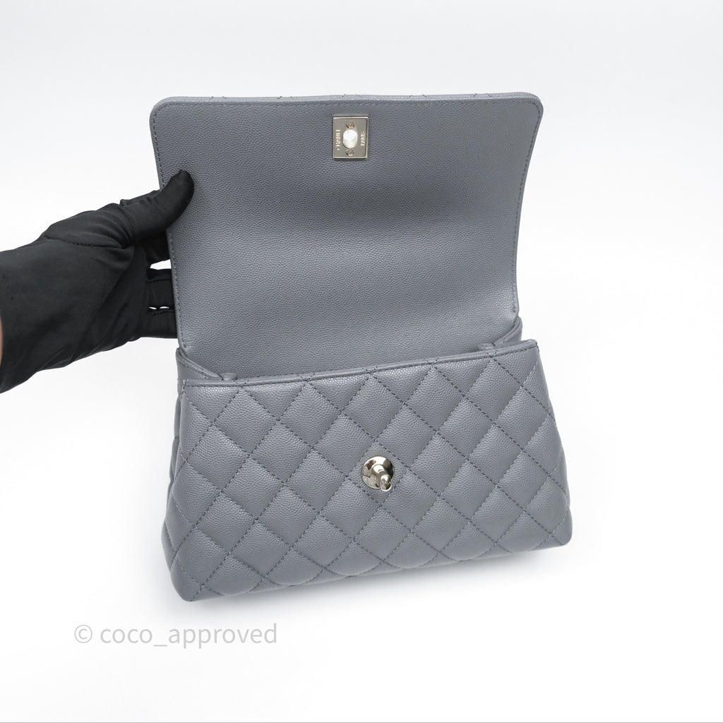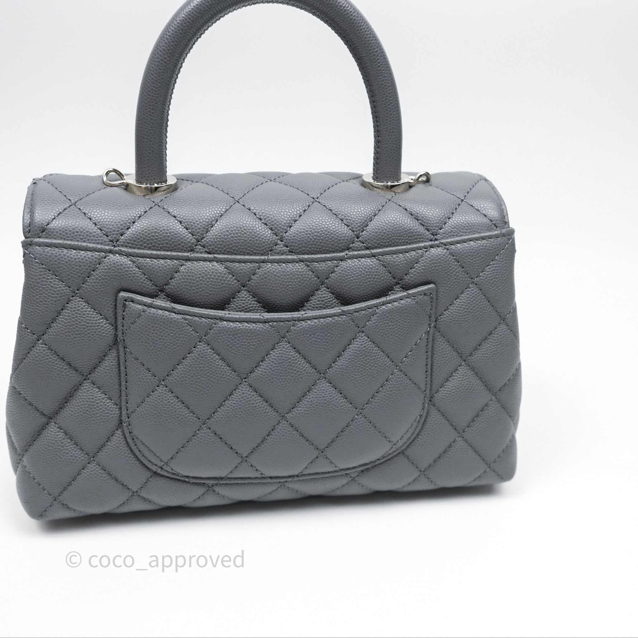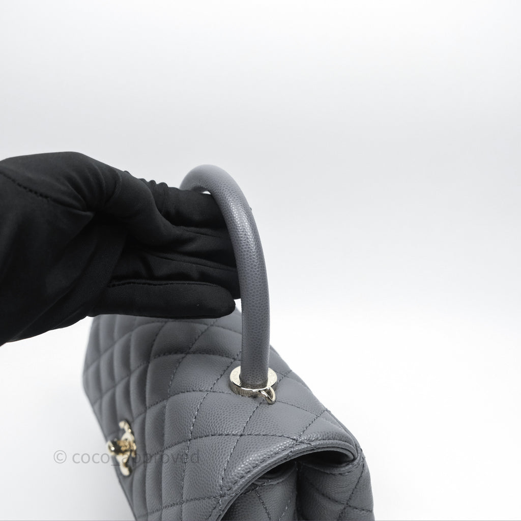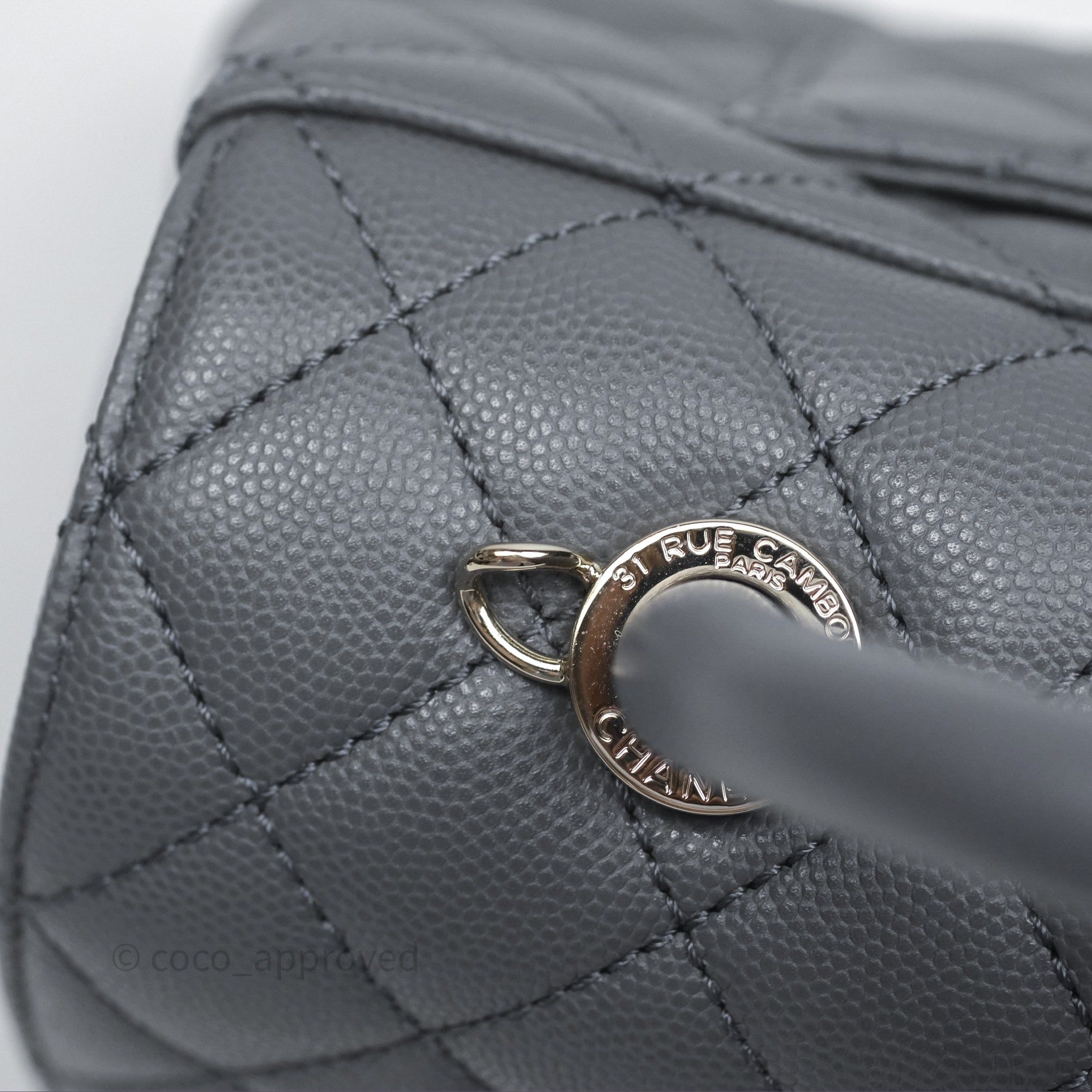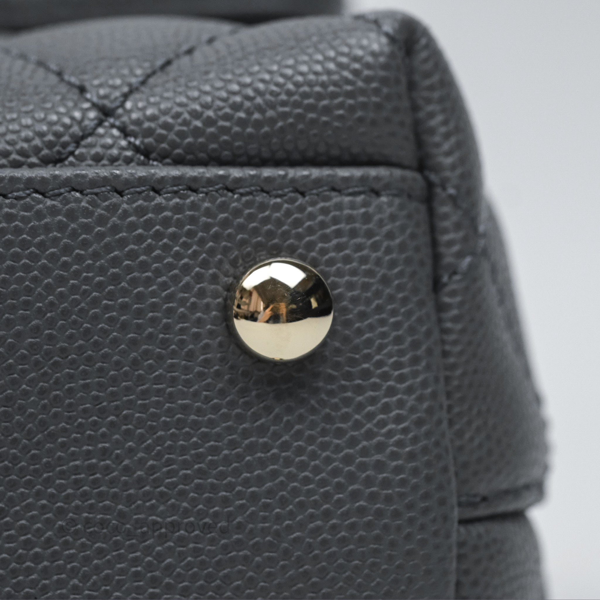 Chanel Small Coco Handle Quilted Grey Caviar Gold Hardware 23K