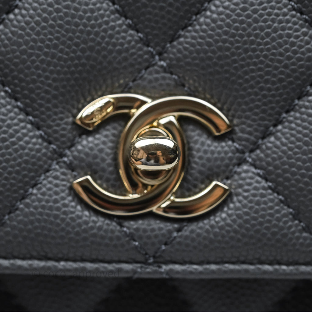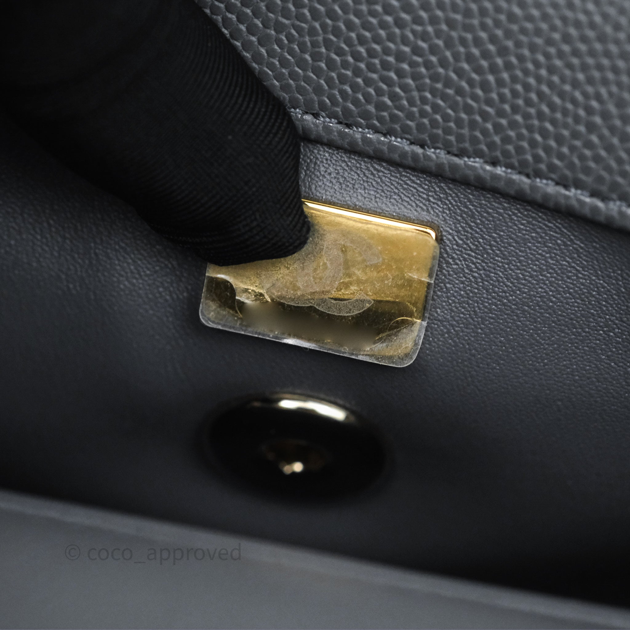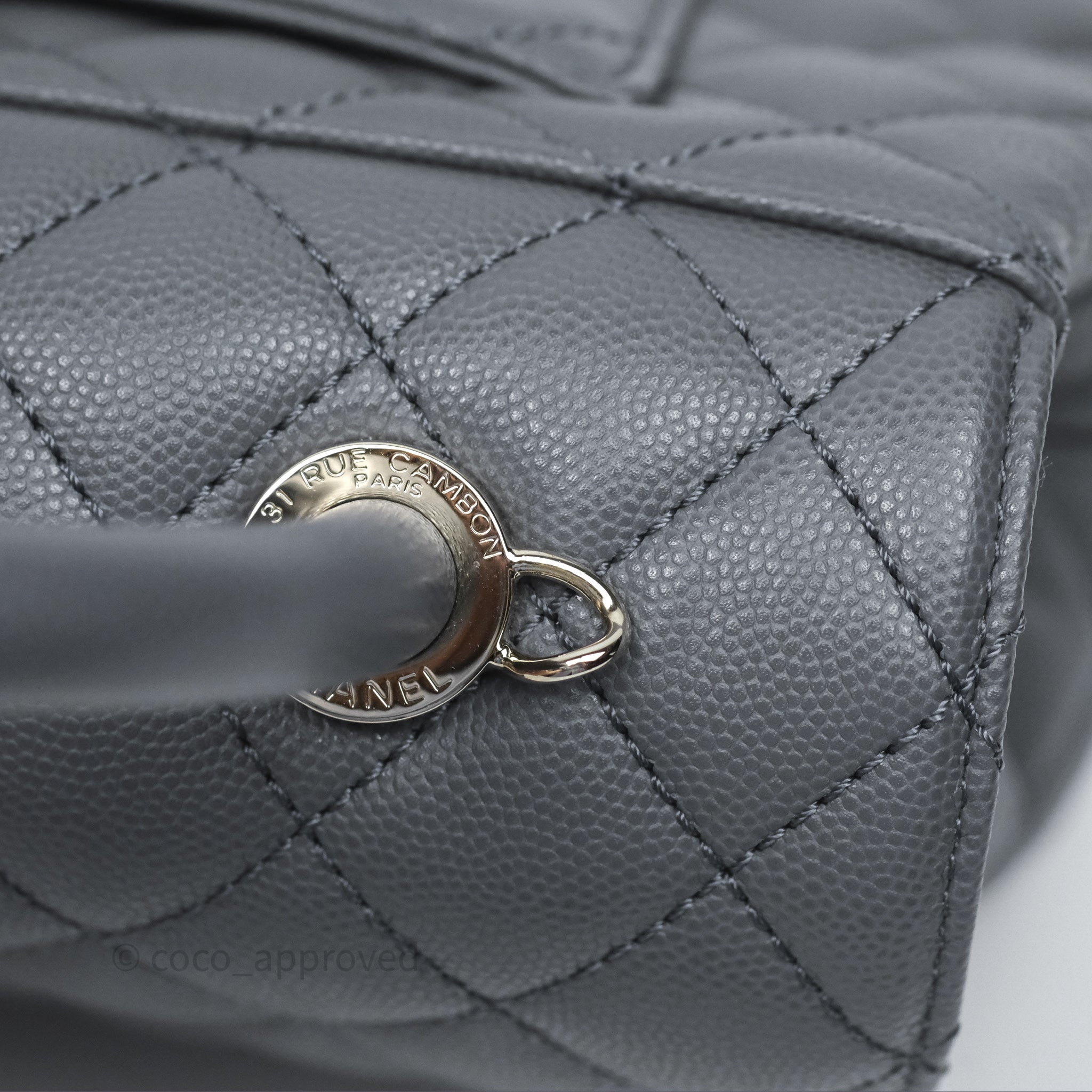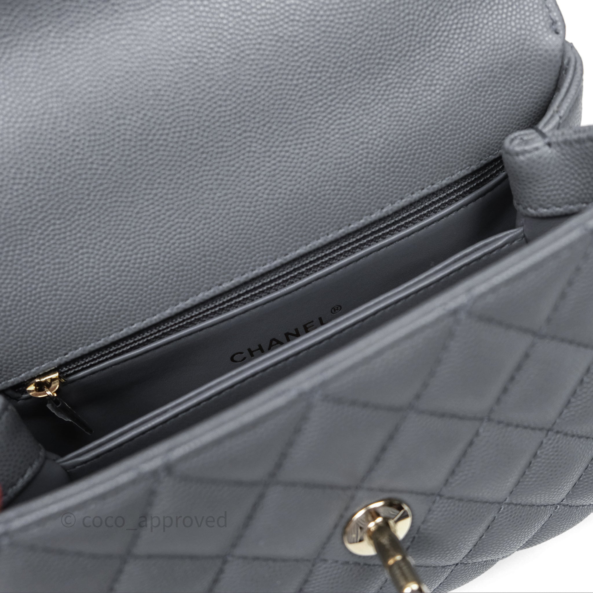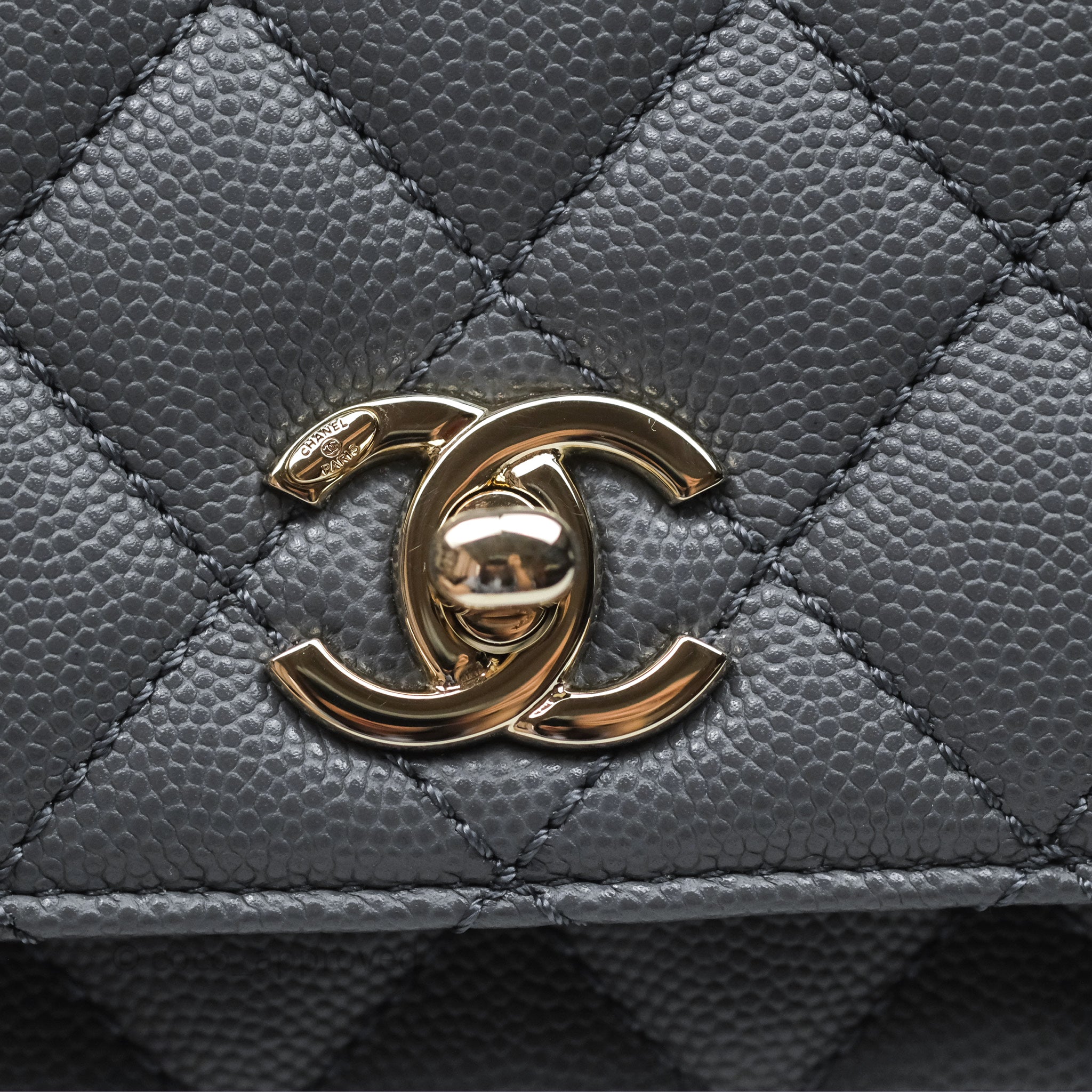 Chanel Small Coco Handle Quilted Grey Caviar Gold Hardware 23K