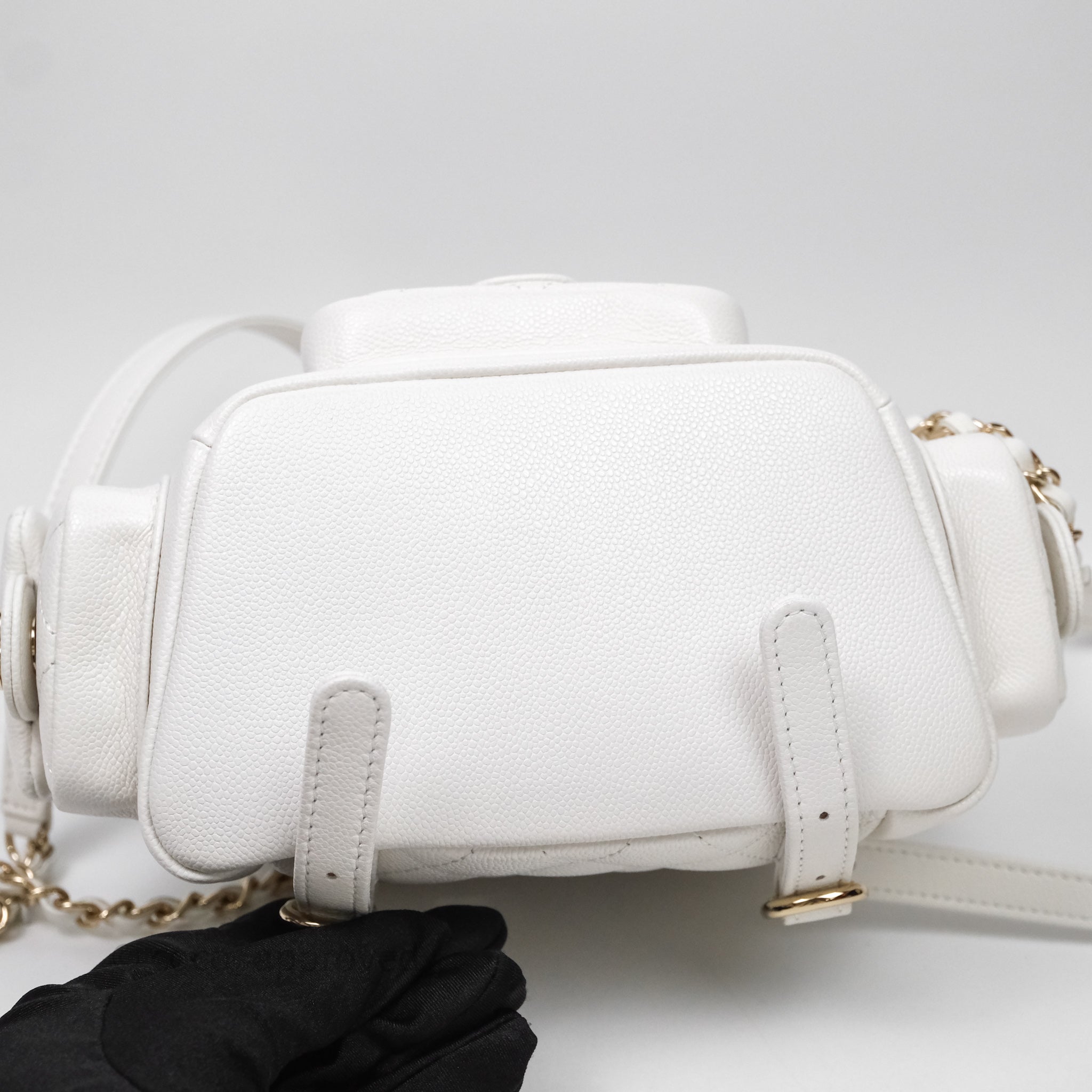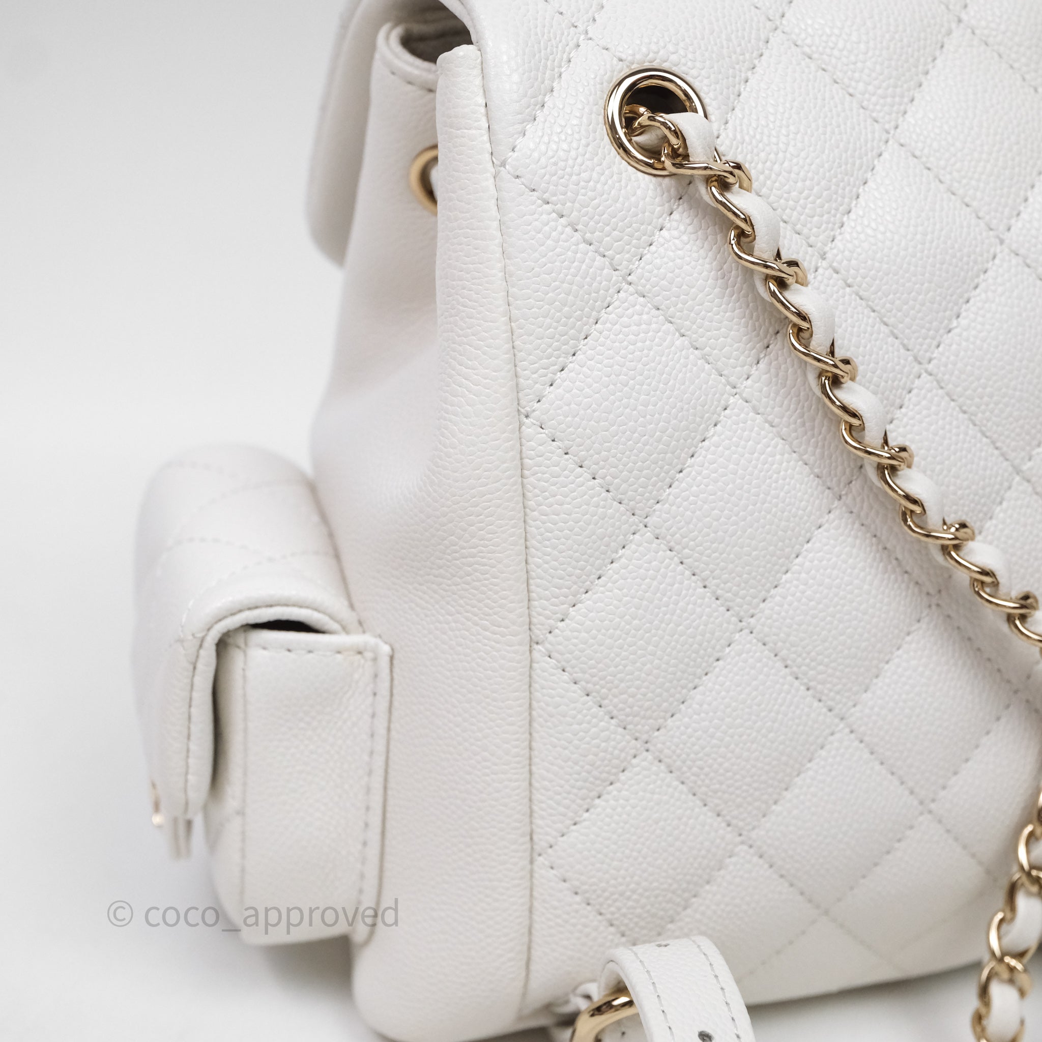 Chanel Small Duma Backpack Caviar White Gold Hardware