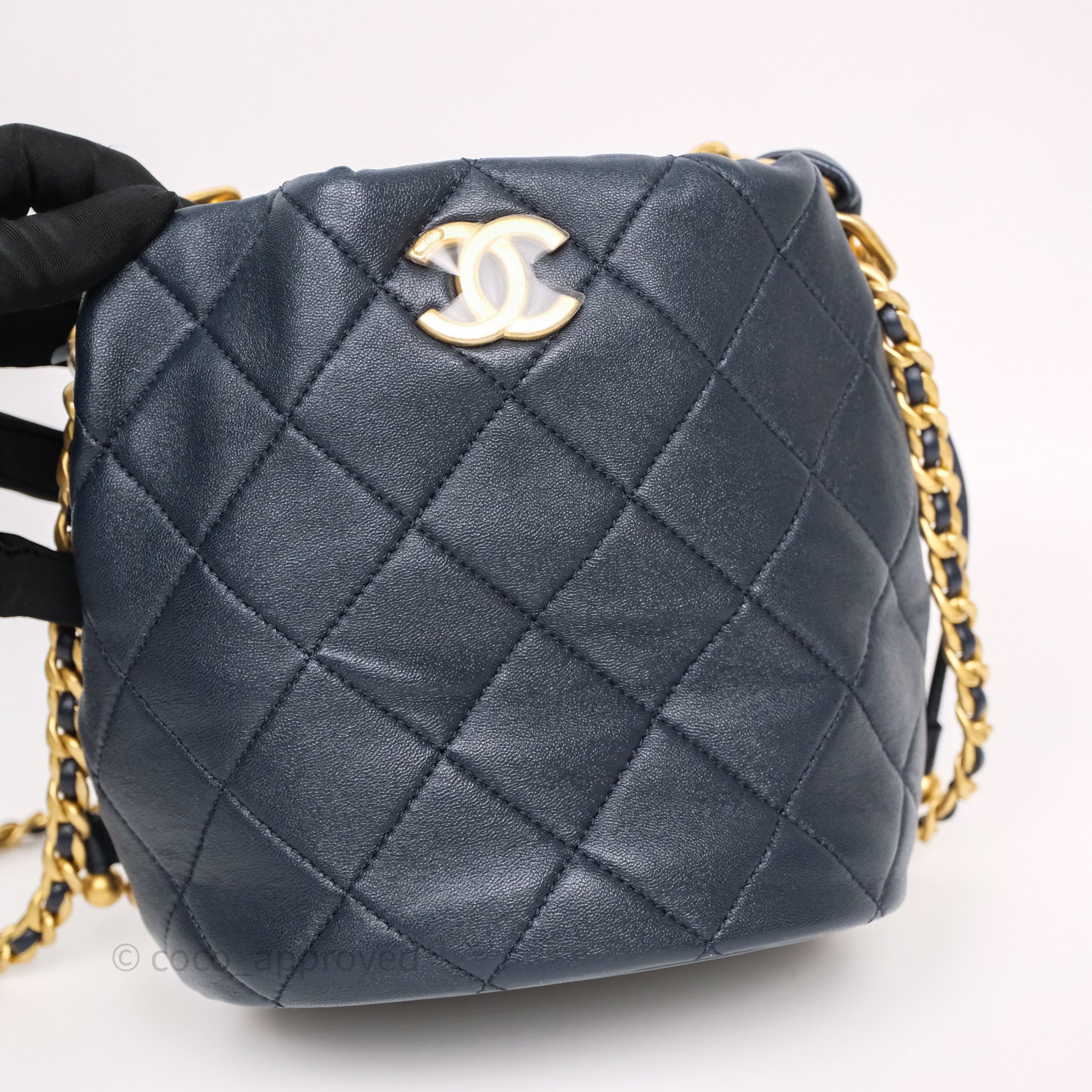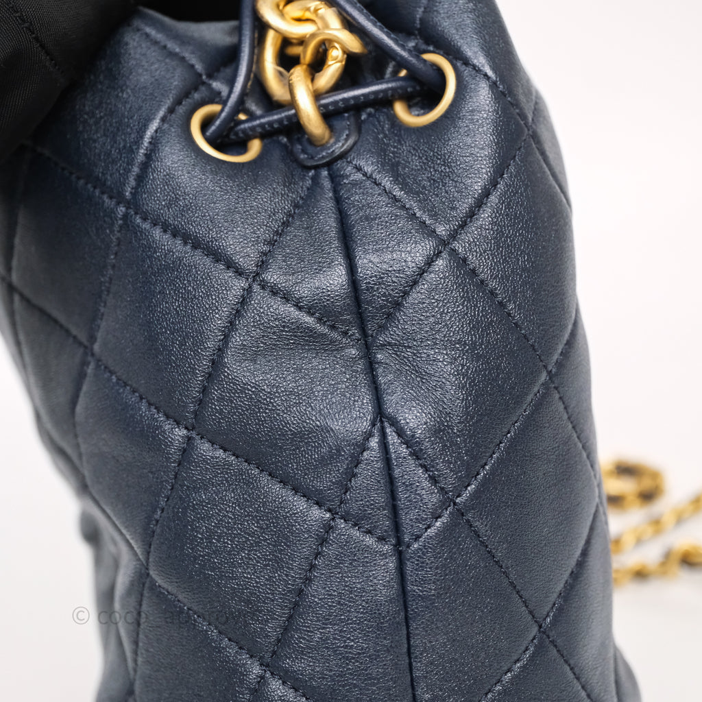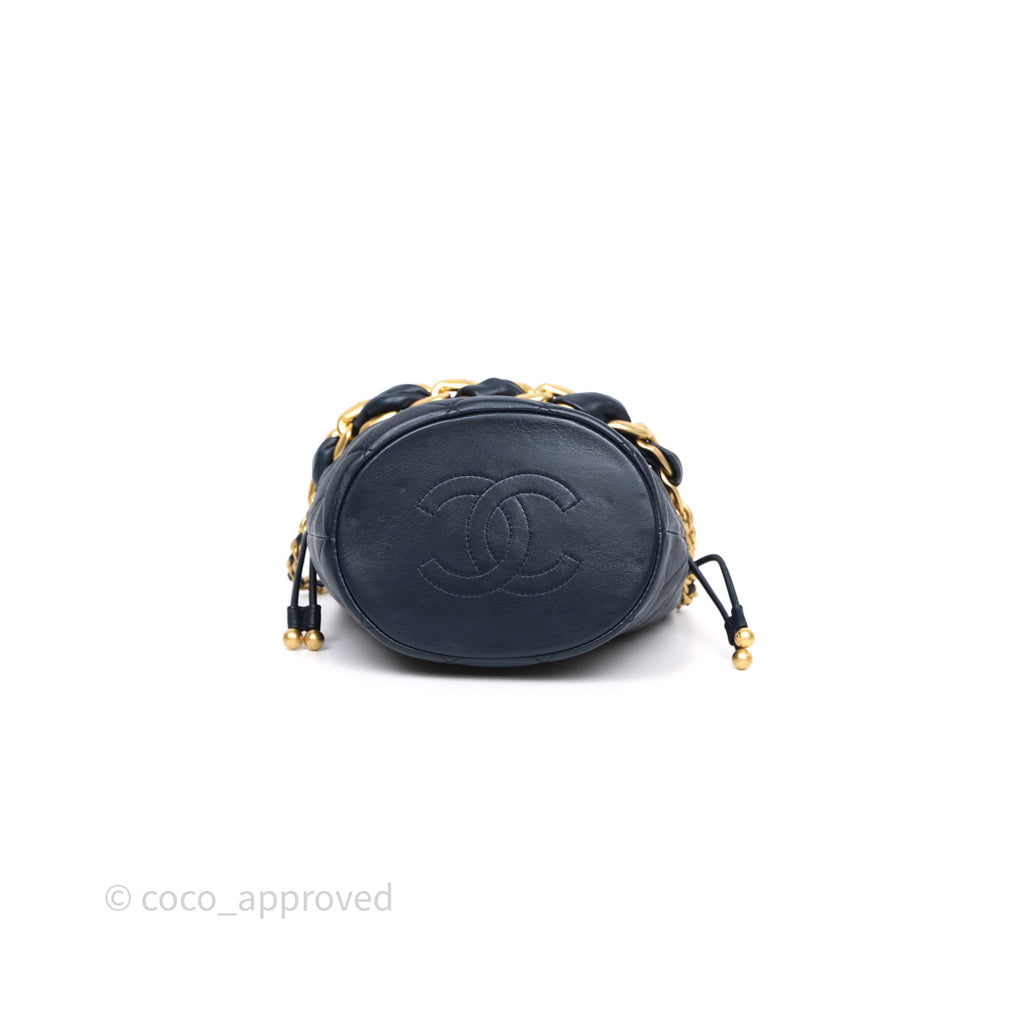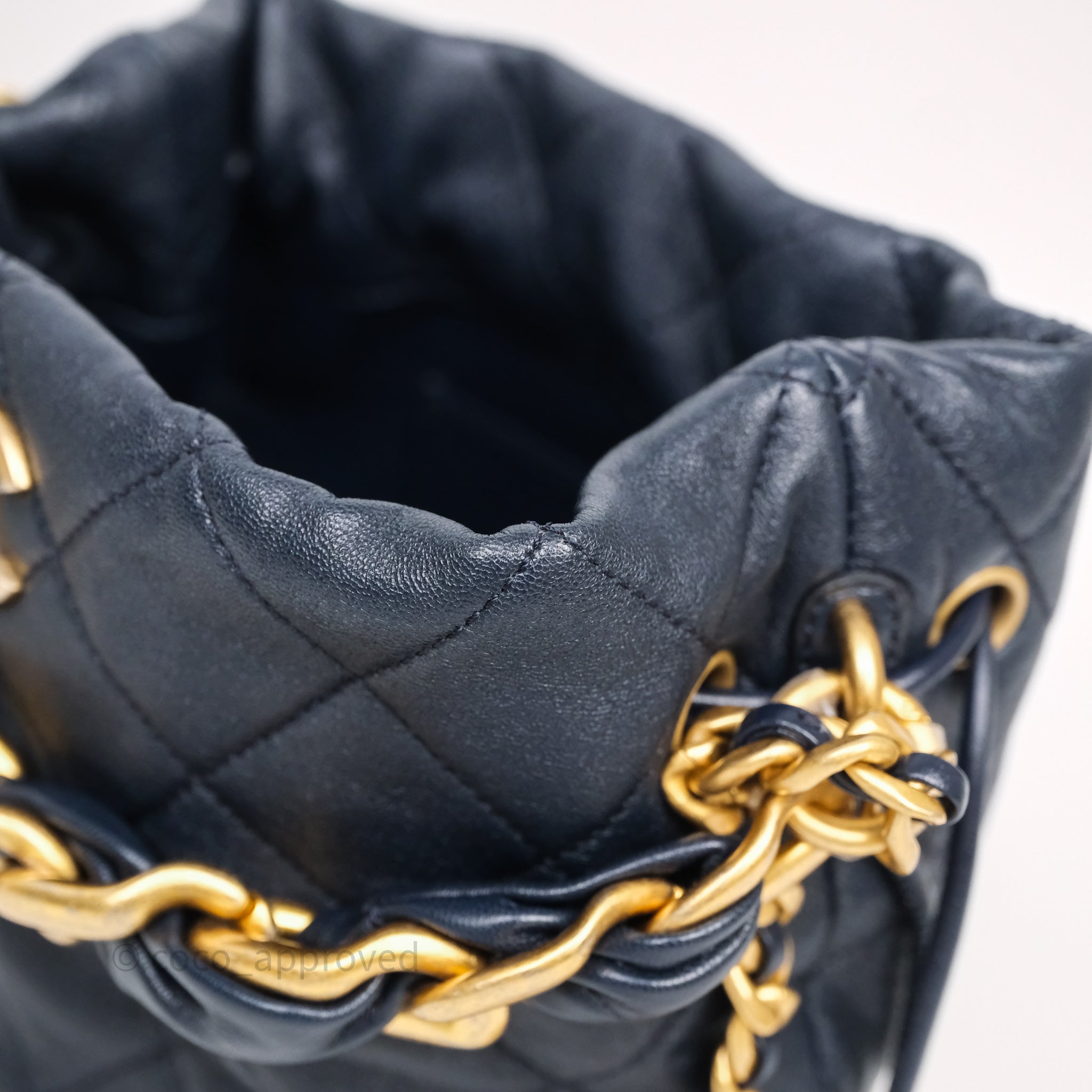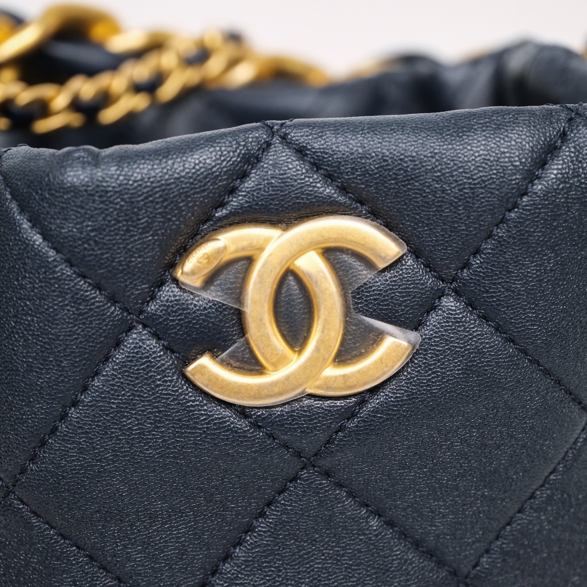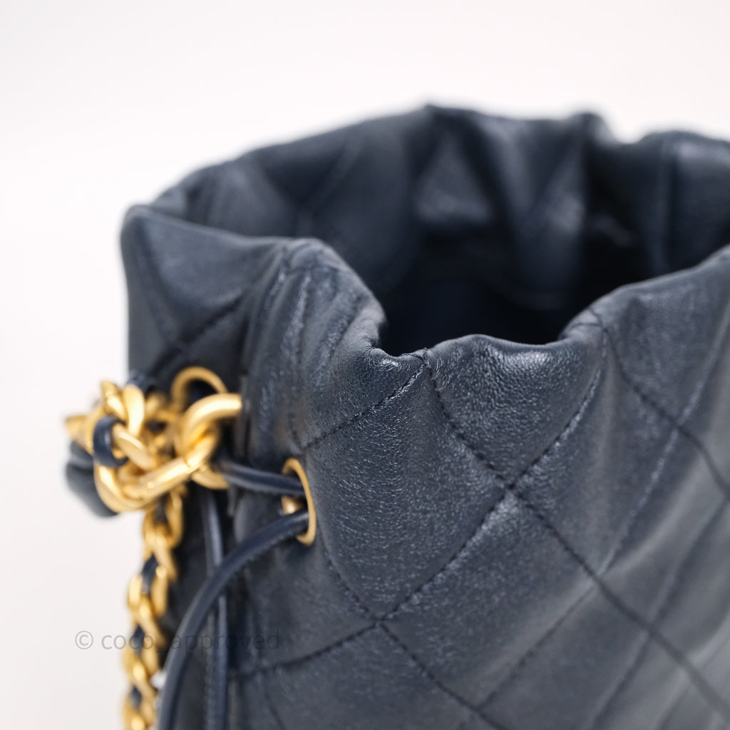 Chanel Small Entwined Chain Drawstring Bucket Bag Navy Lambskin Age Gold Hardware
