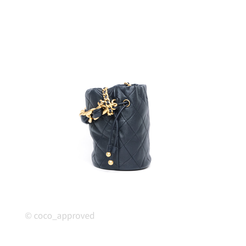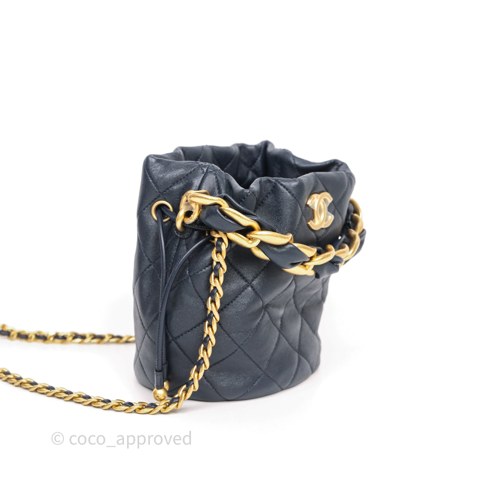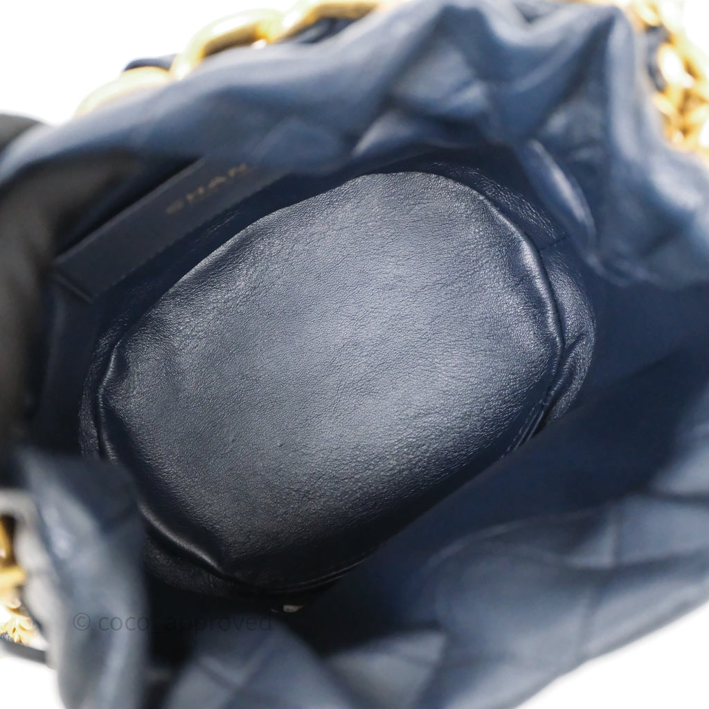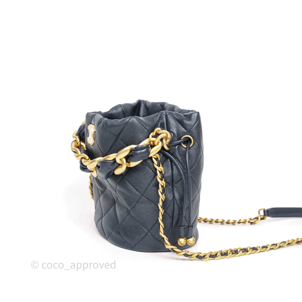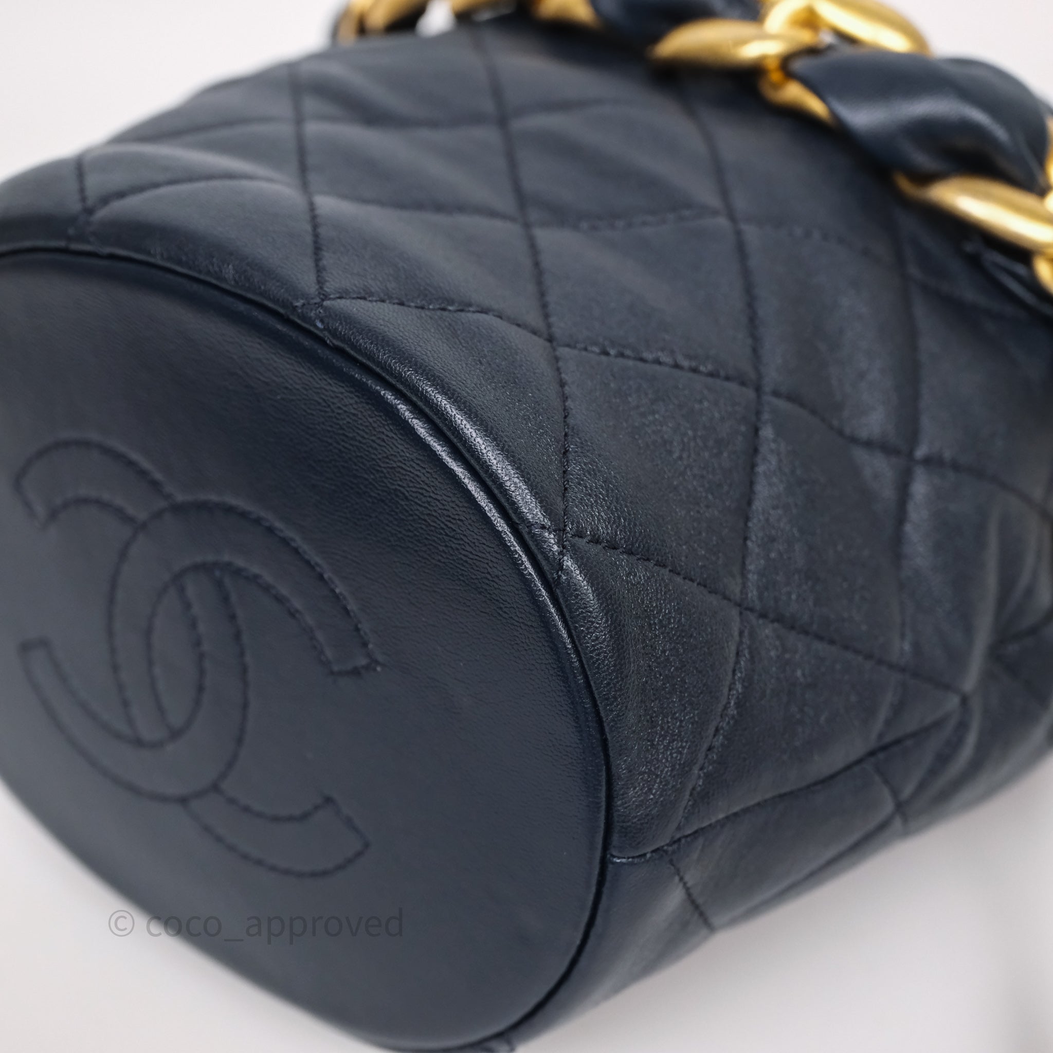 Chanel Small Entwined Chain Drawstring Bucket Bag Navy Lambskin Age Gold Hardware