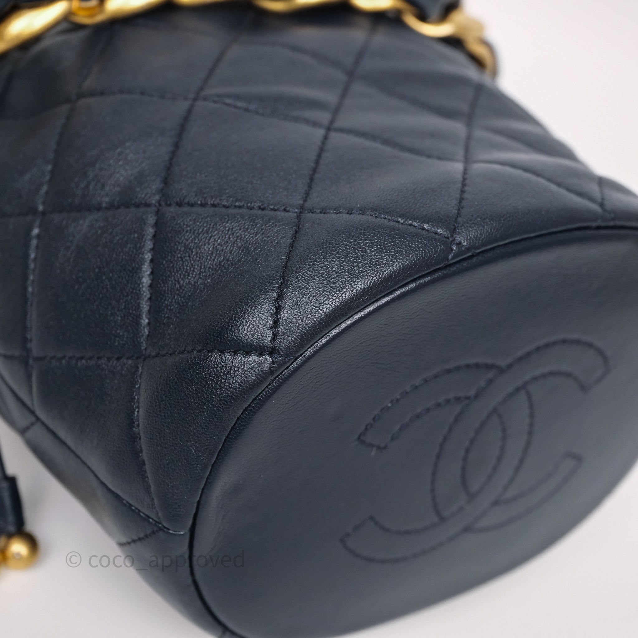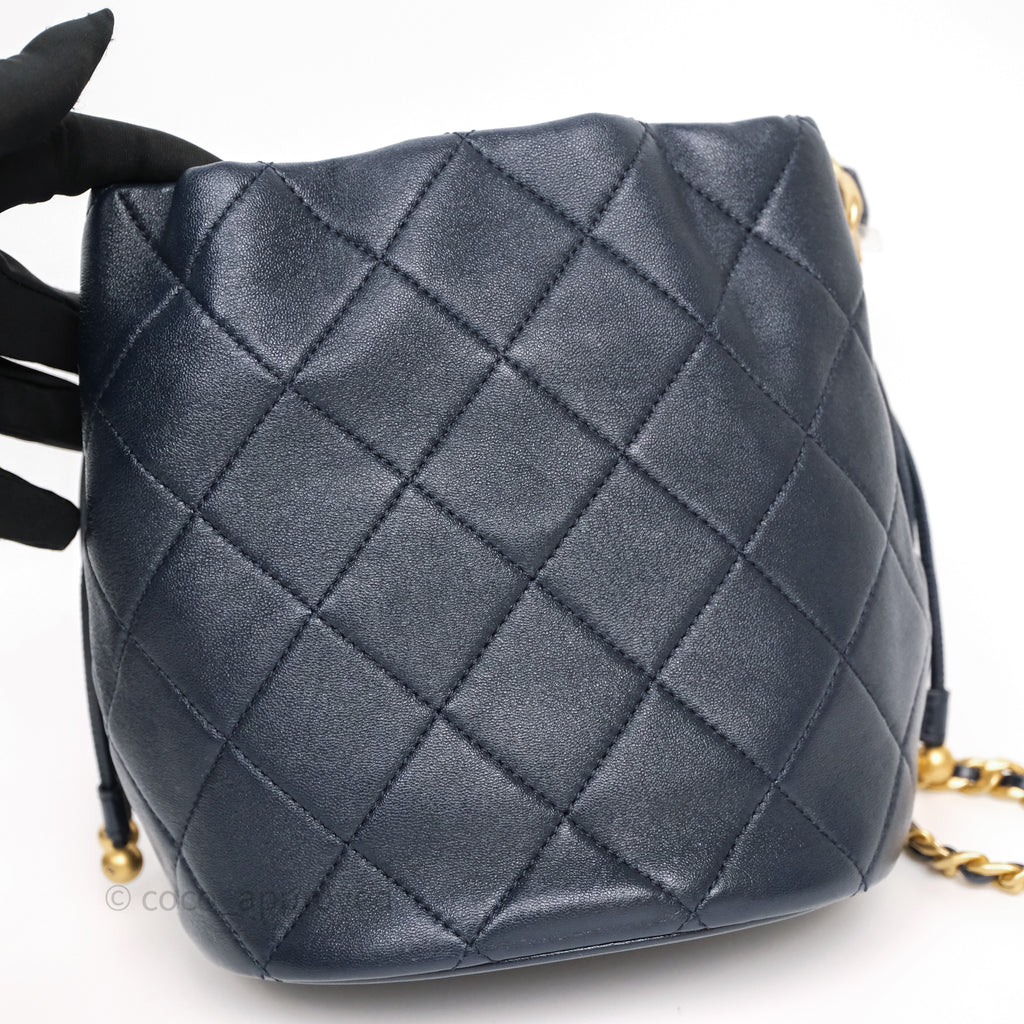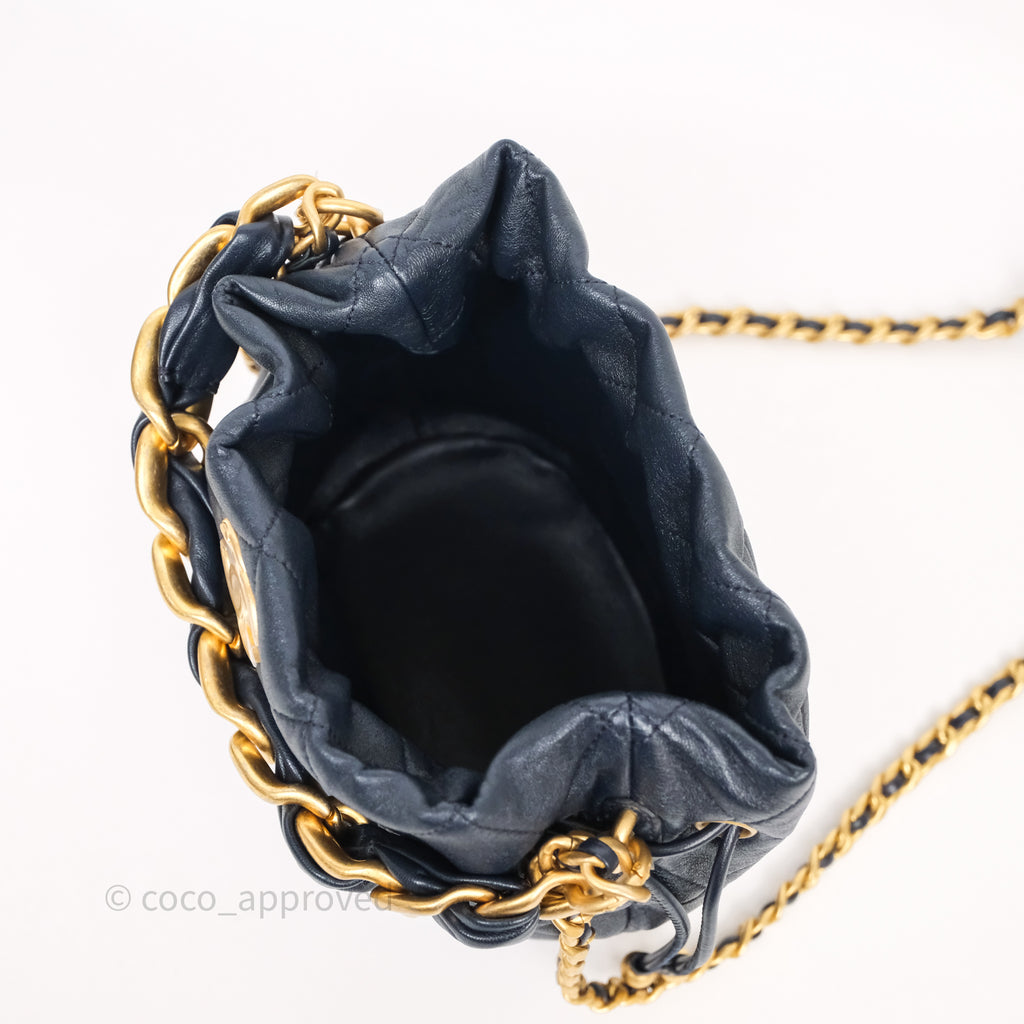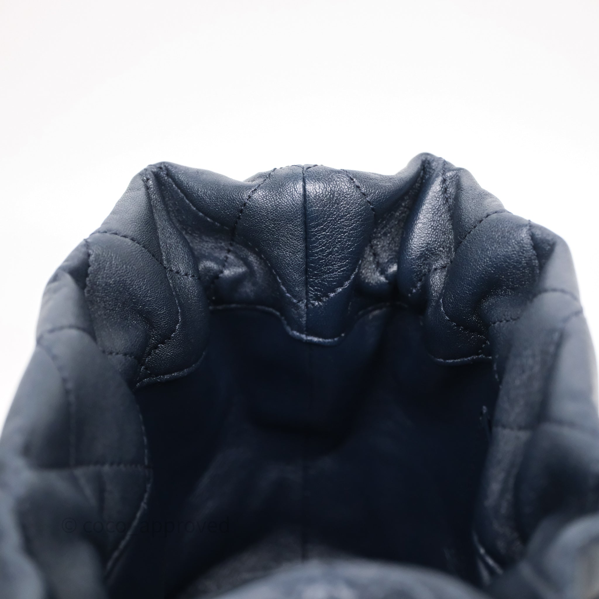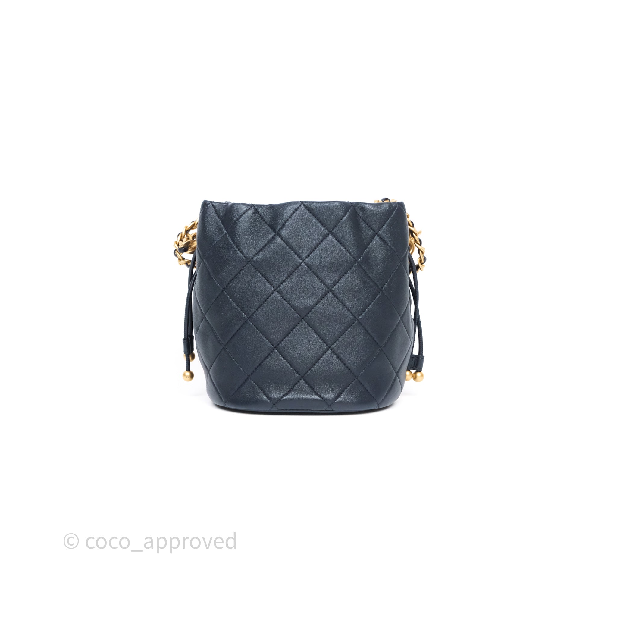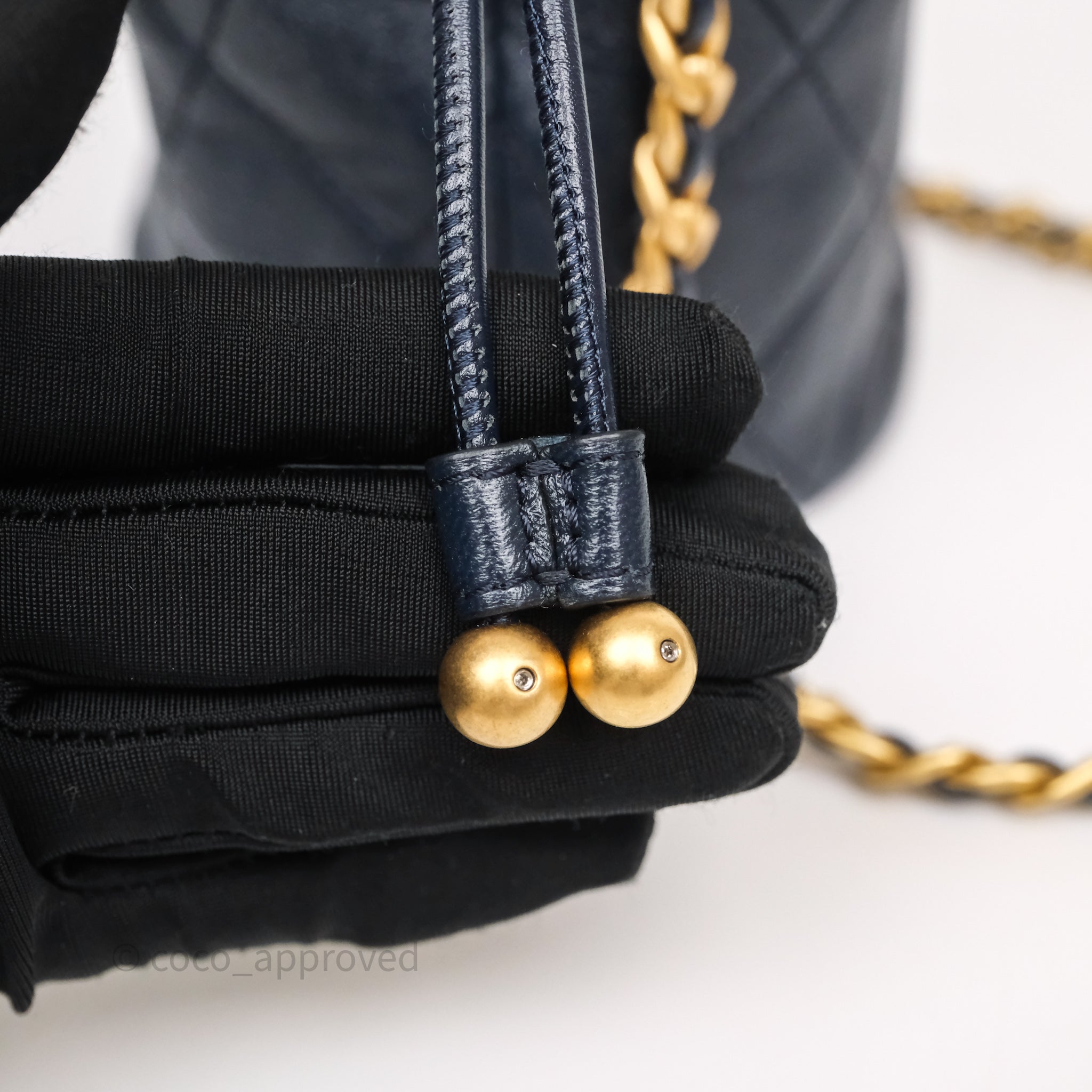 Chanel Small Entwined Chain Drawstring Bucket Bag Navy Lambskin Age Gold Hardware