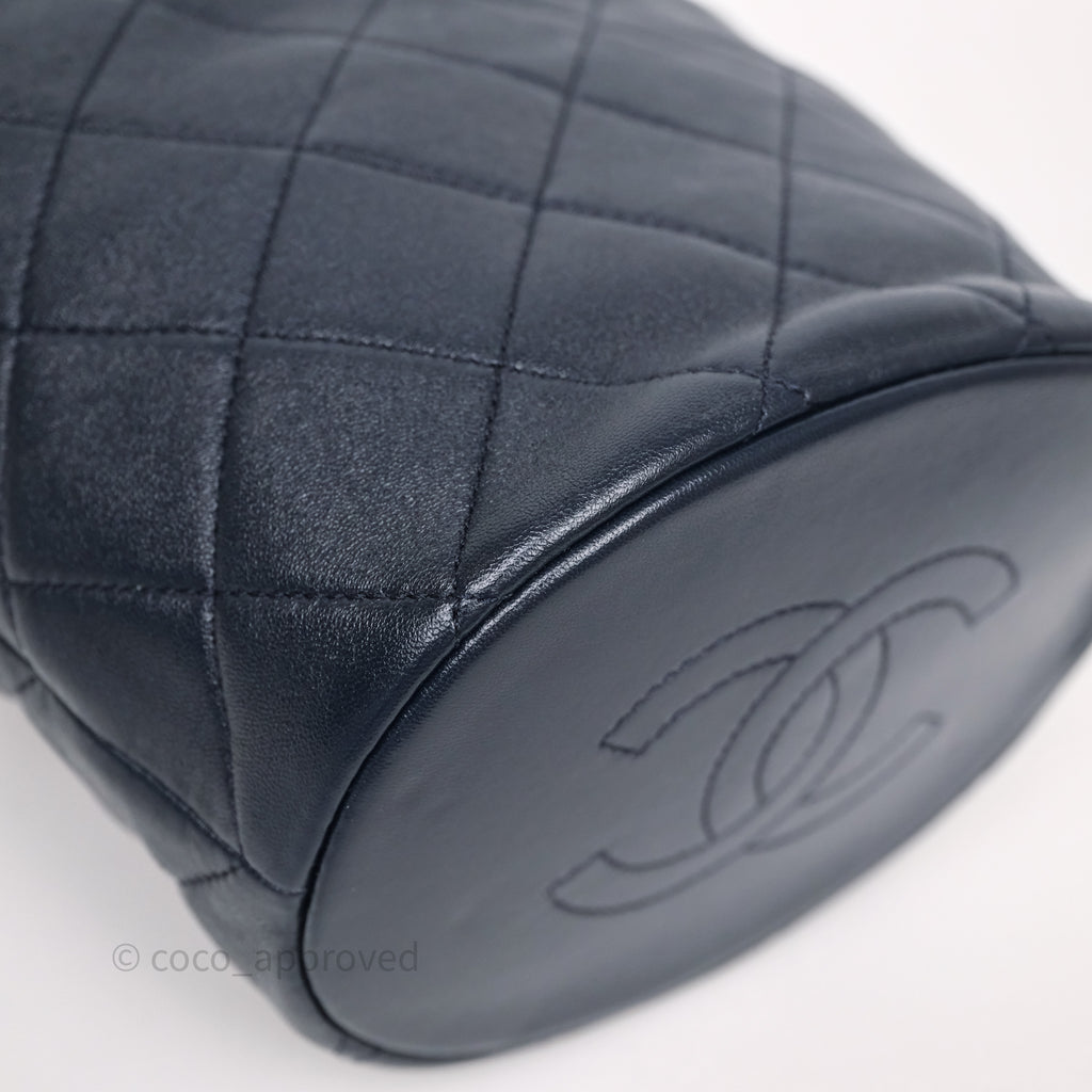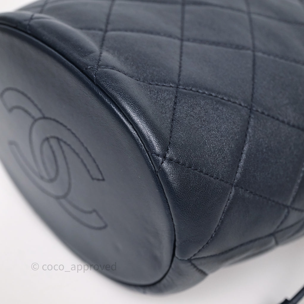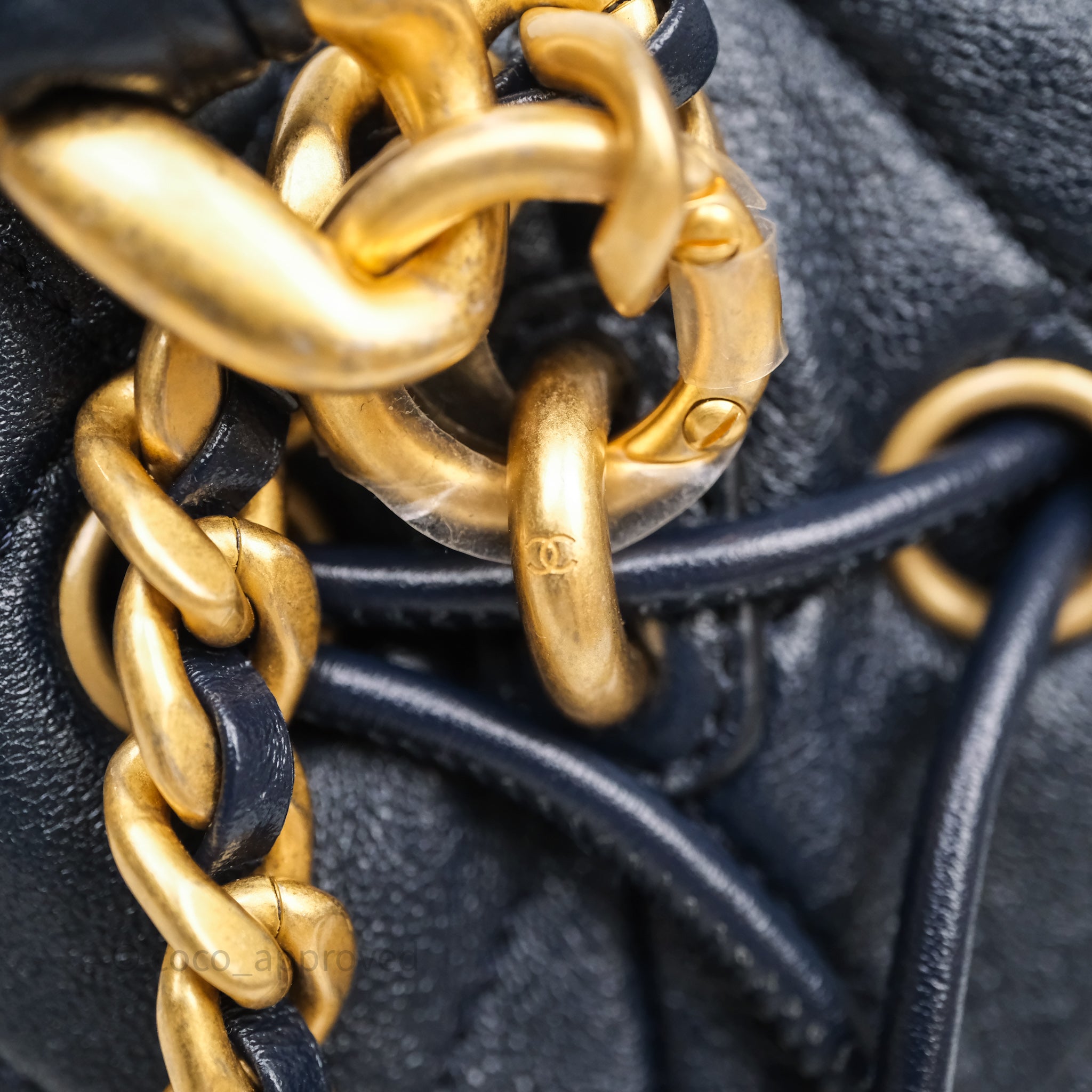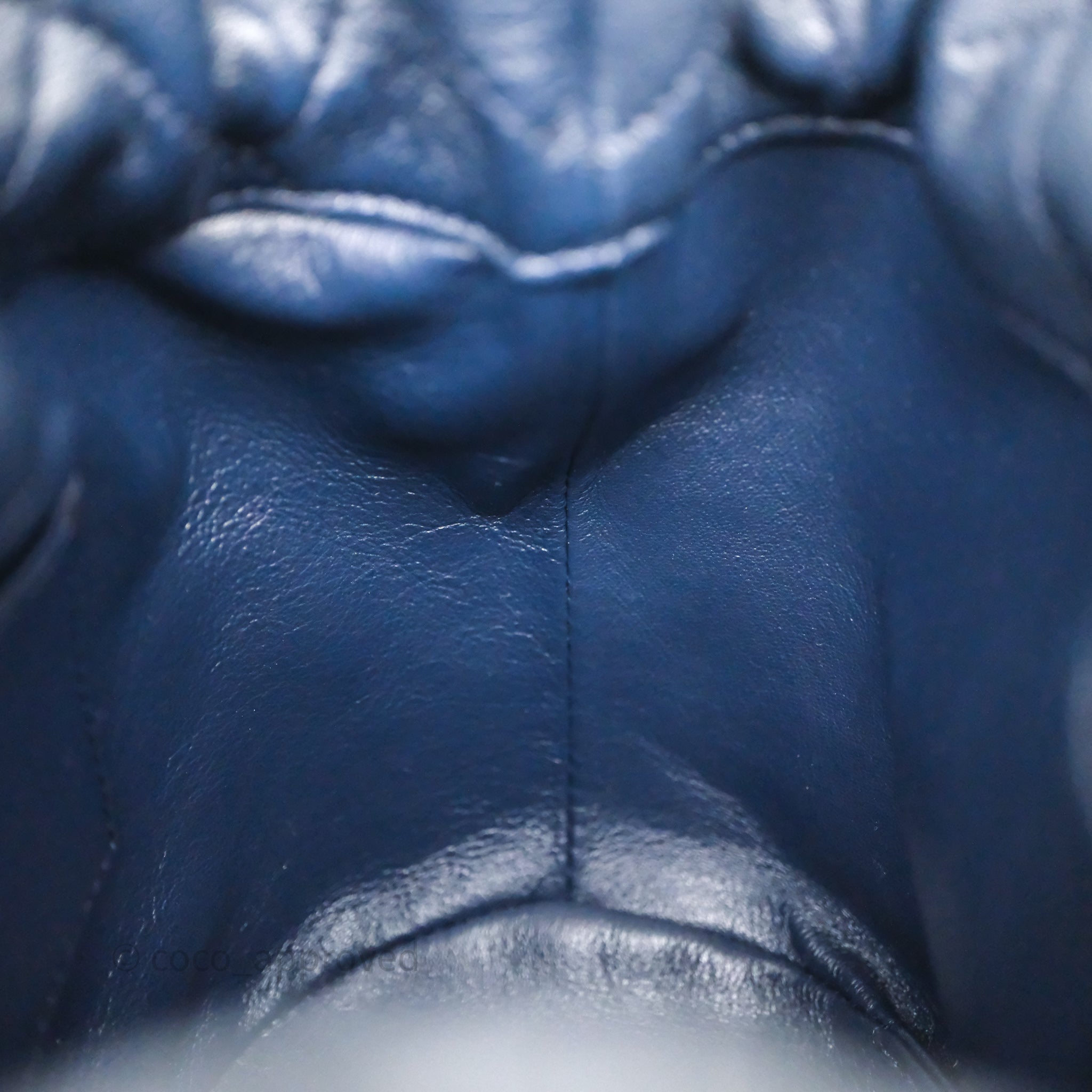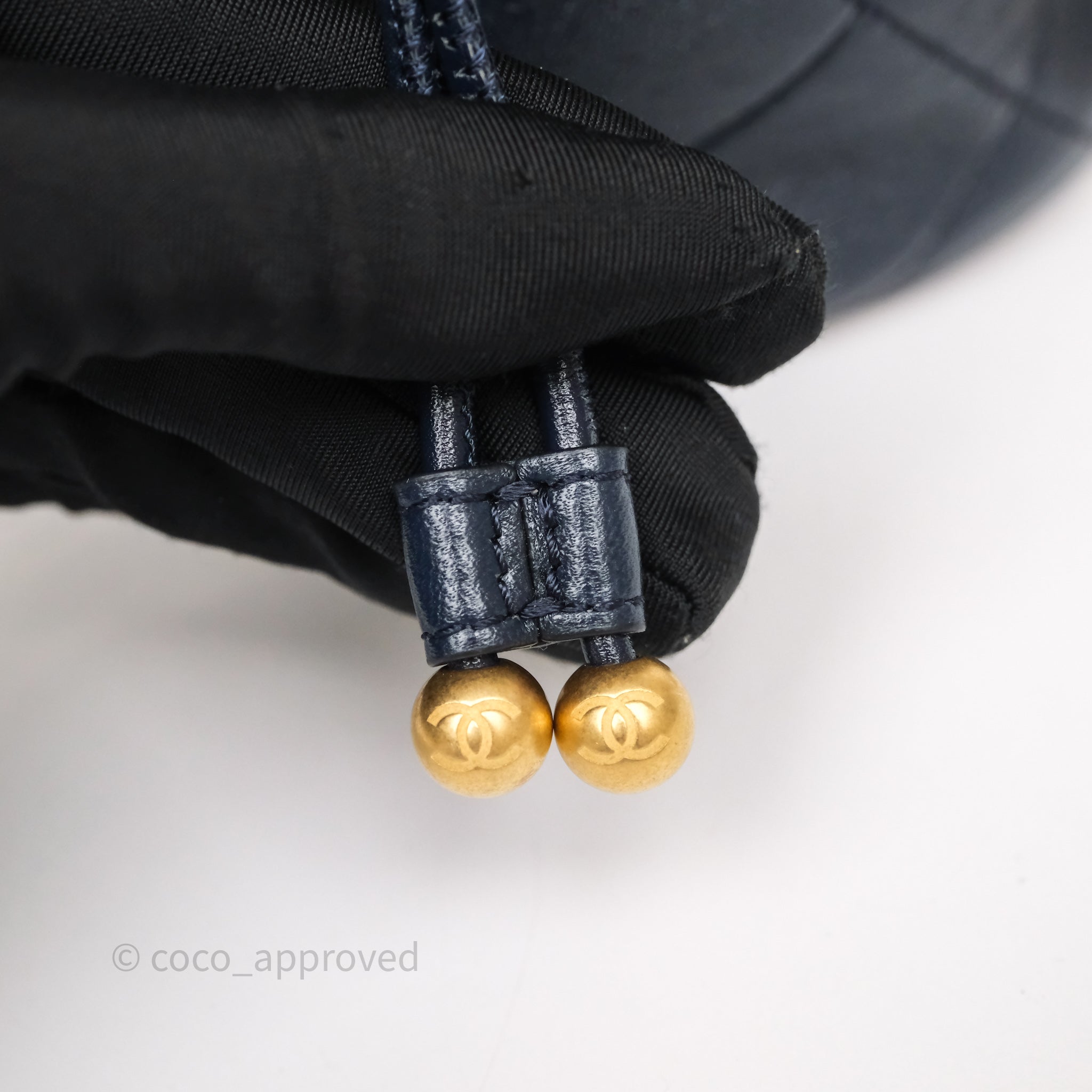 Chanel Small Entwined Chain Drawstring Bucket Bag Navy Lambskin Age Gold Hardware