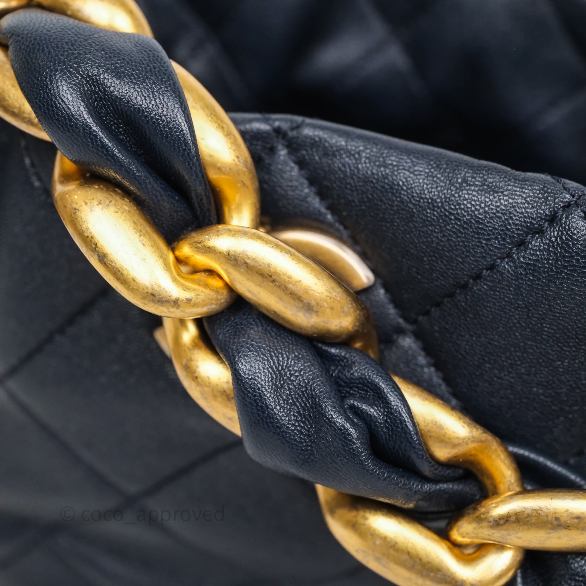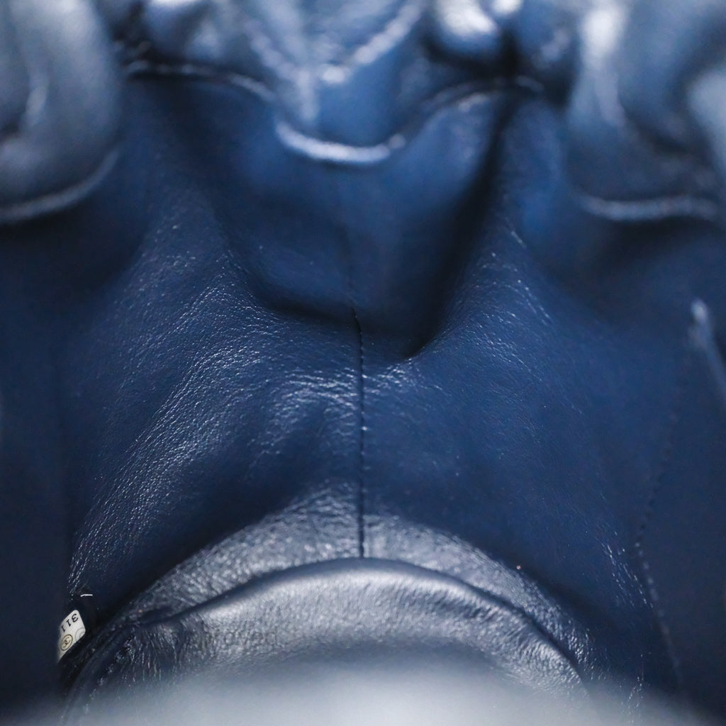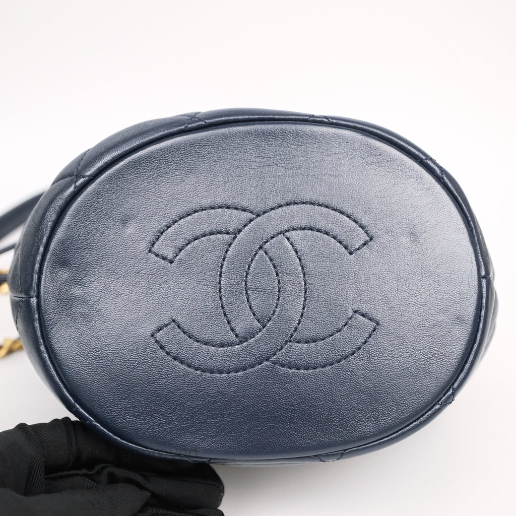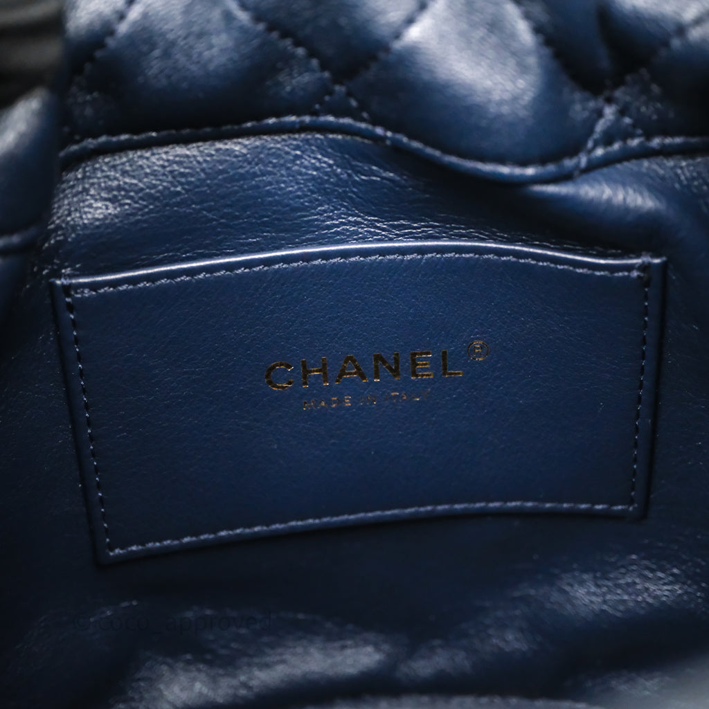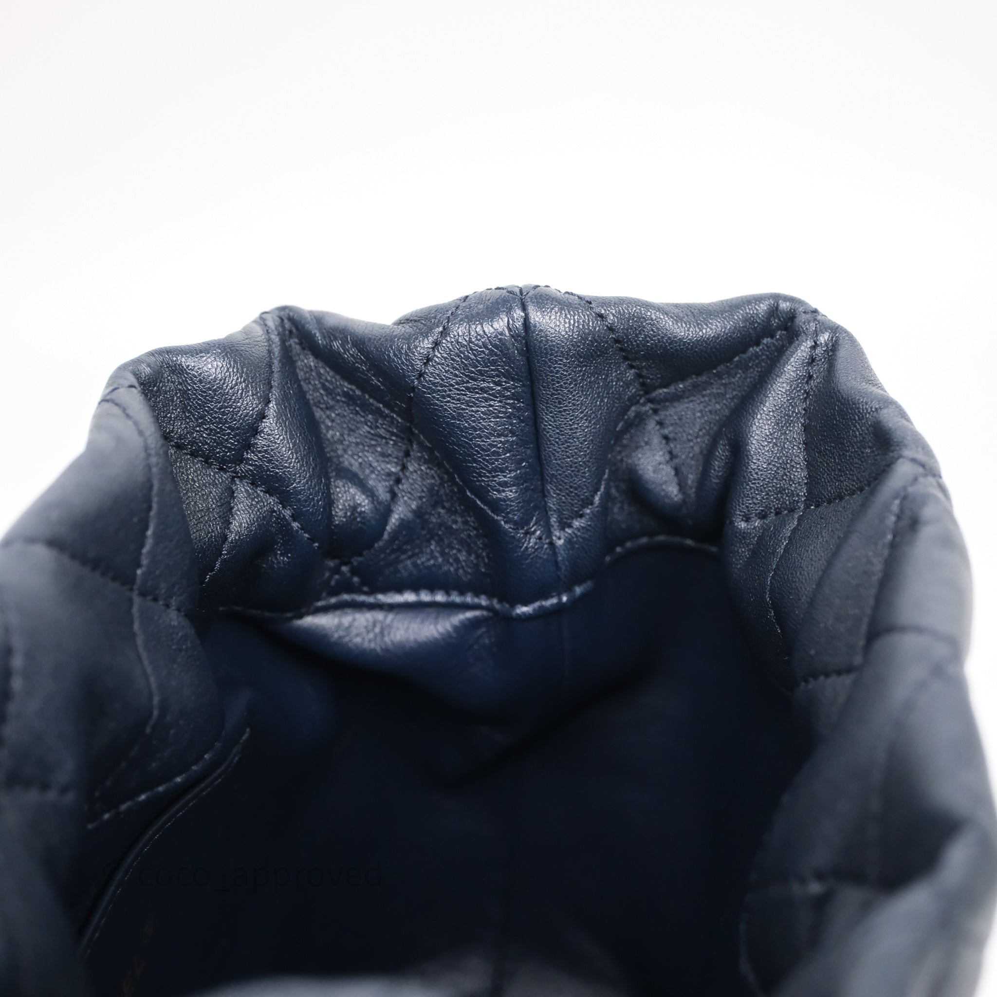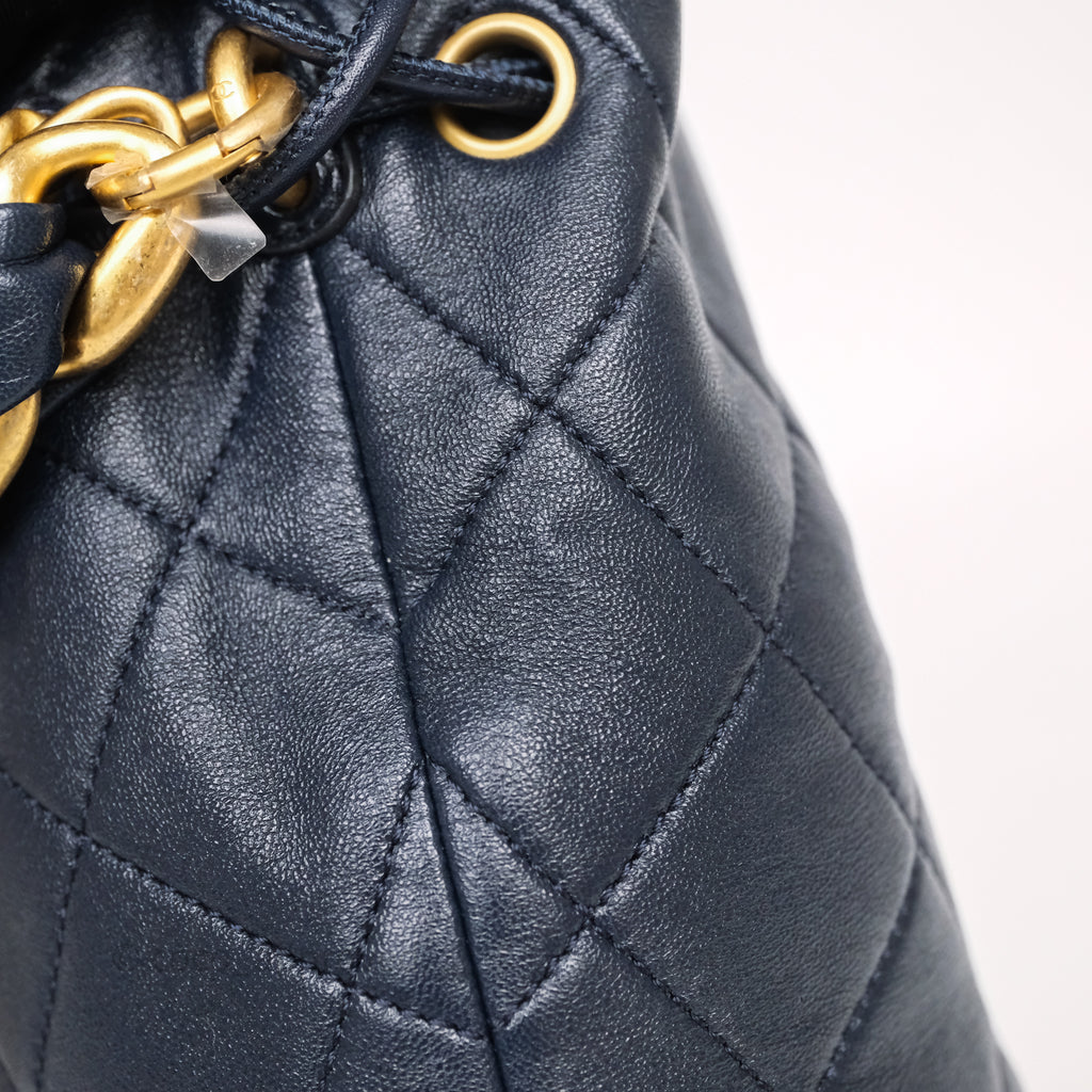 Chanel Small Entwined Chain Drawstring Bucket Bag Navy Lambskin Age Gold Hardware