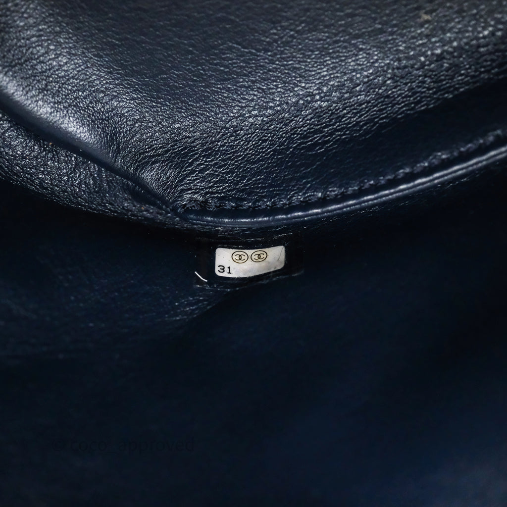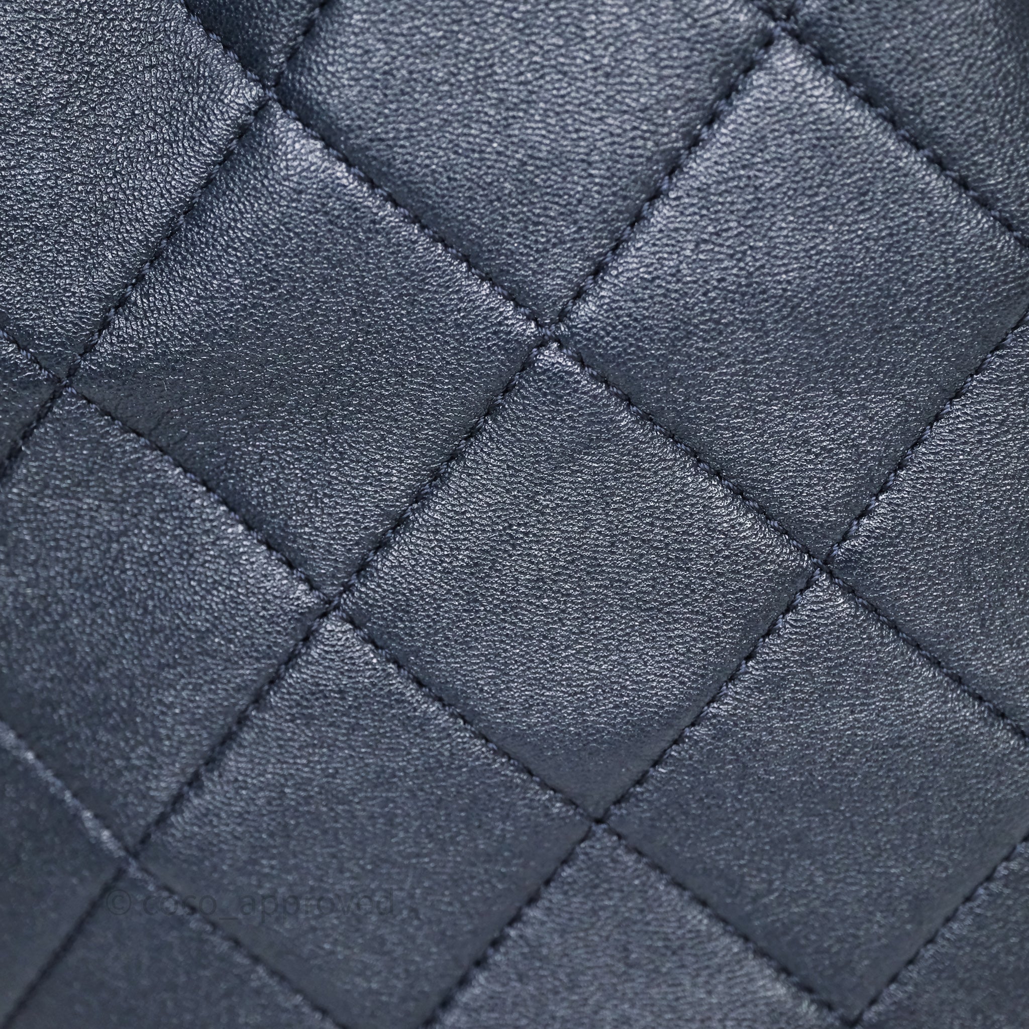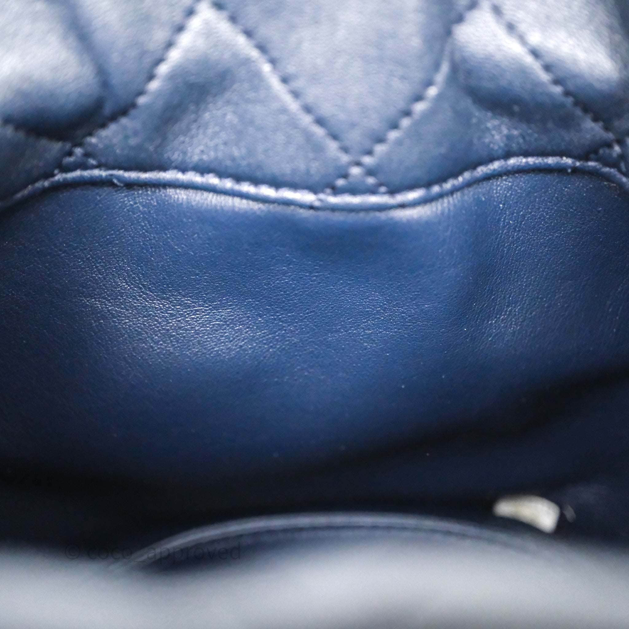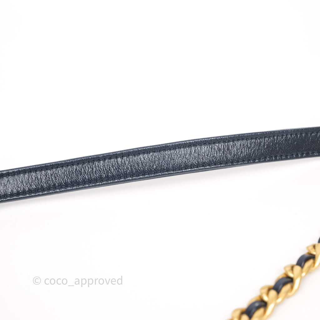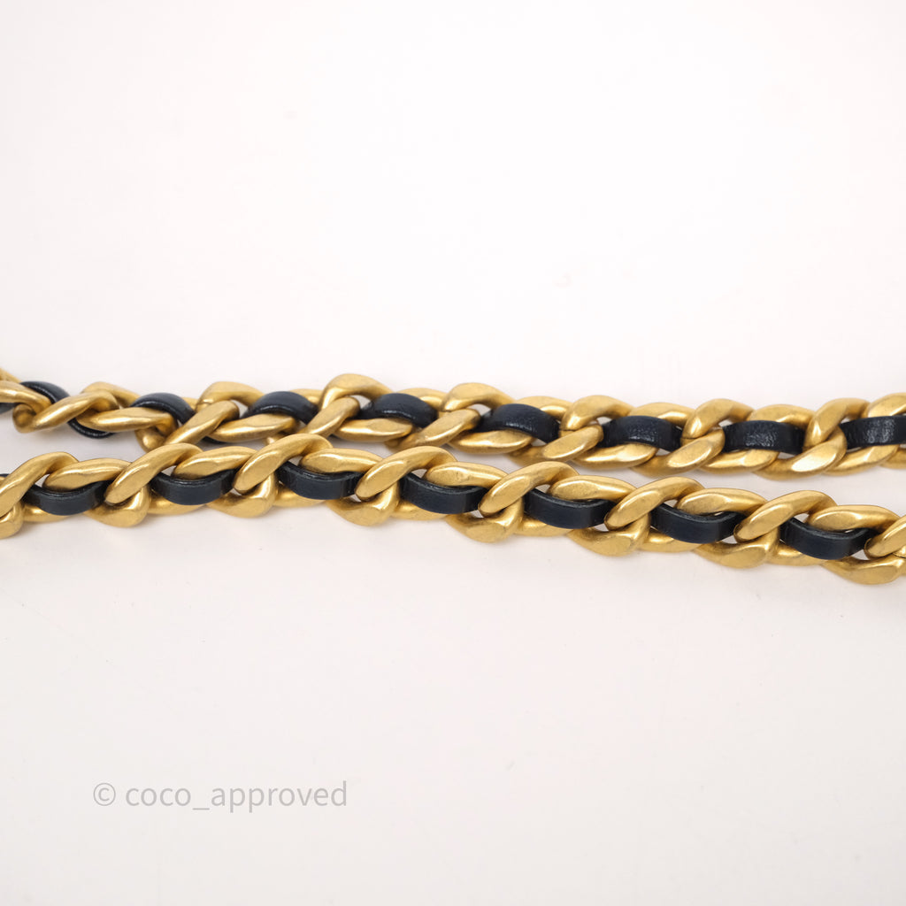 Chanel Small Entwined Chain Drawstring Bucket Bag Navy Lambskin Age Gold Hardware