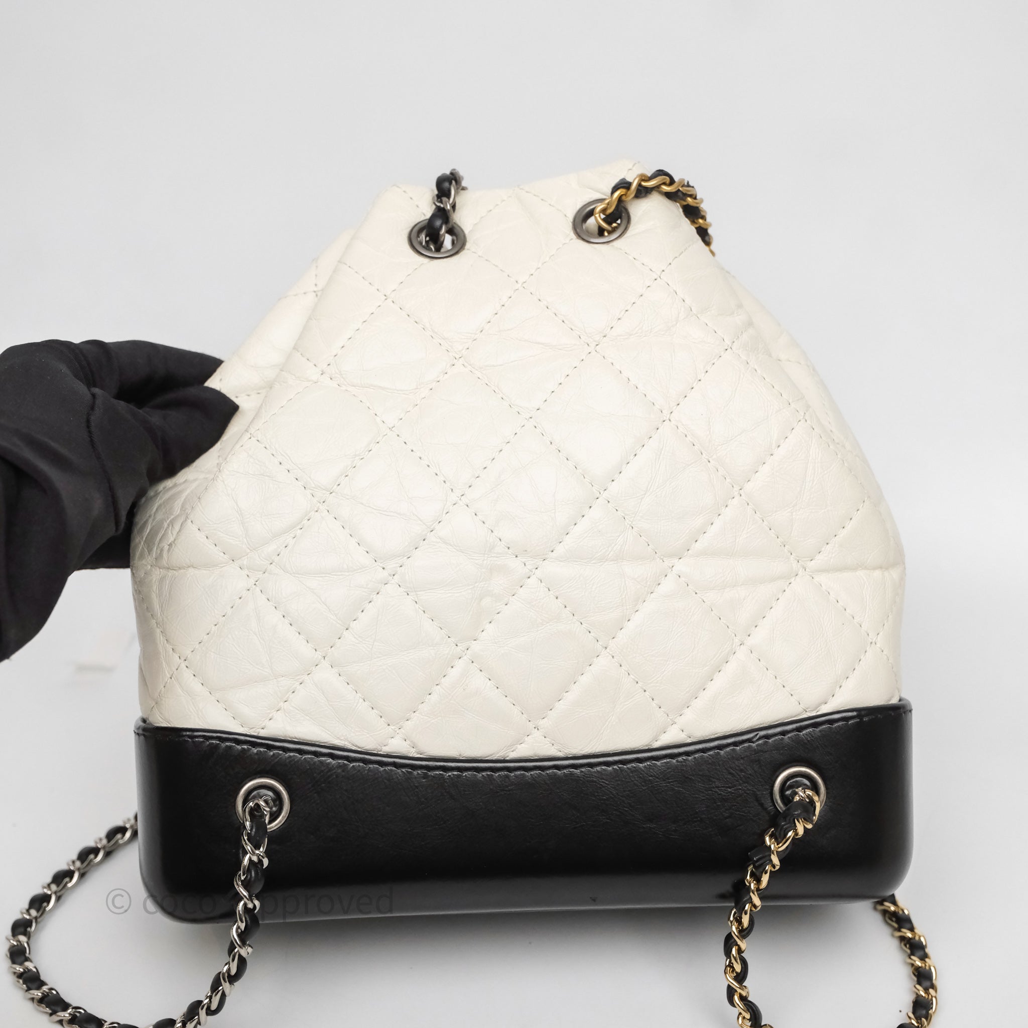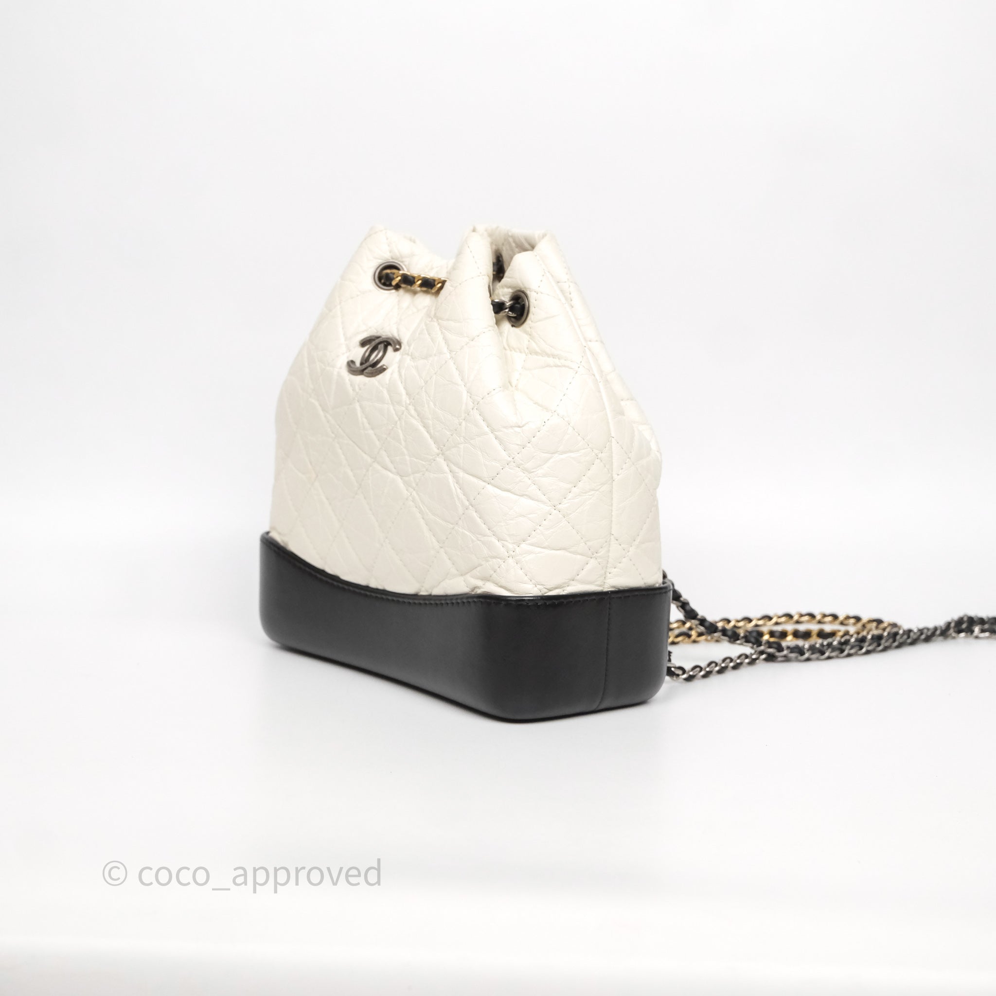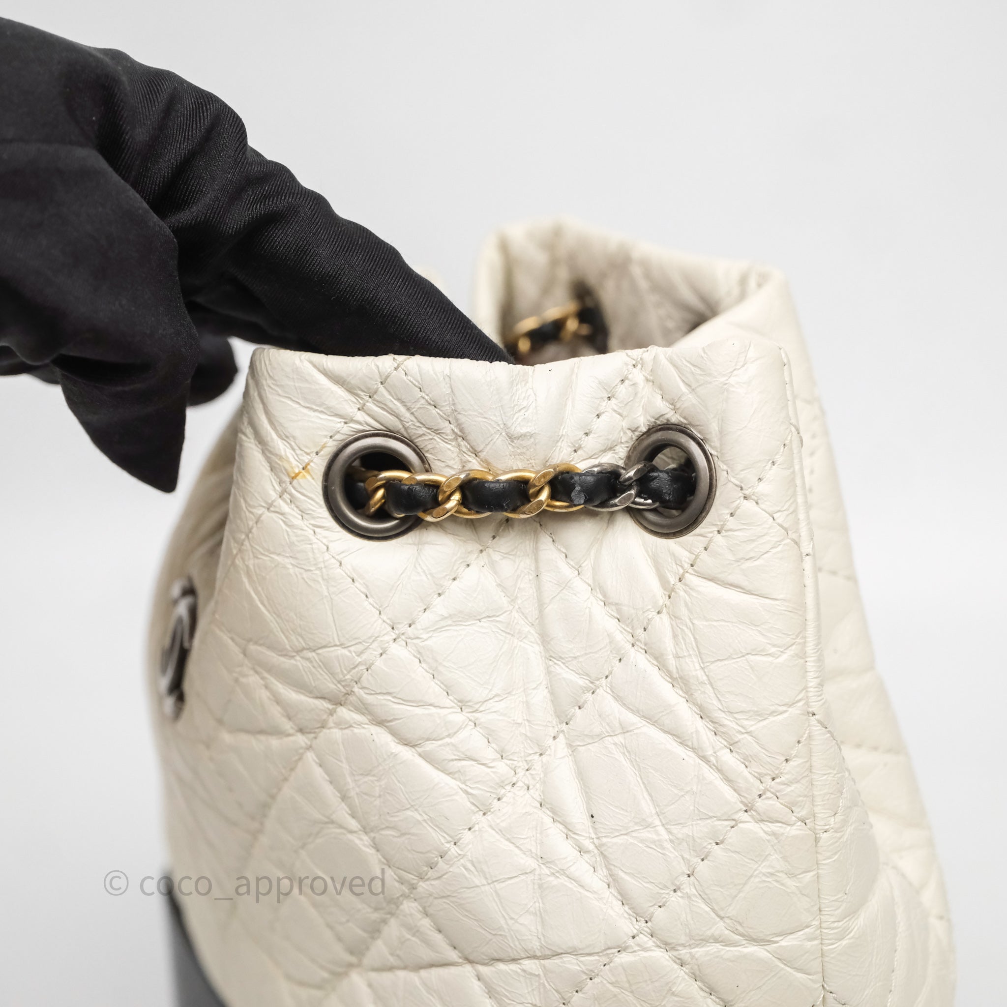 Chanel Small Gabrielle Backpack White Black Aged Calfskin