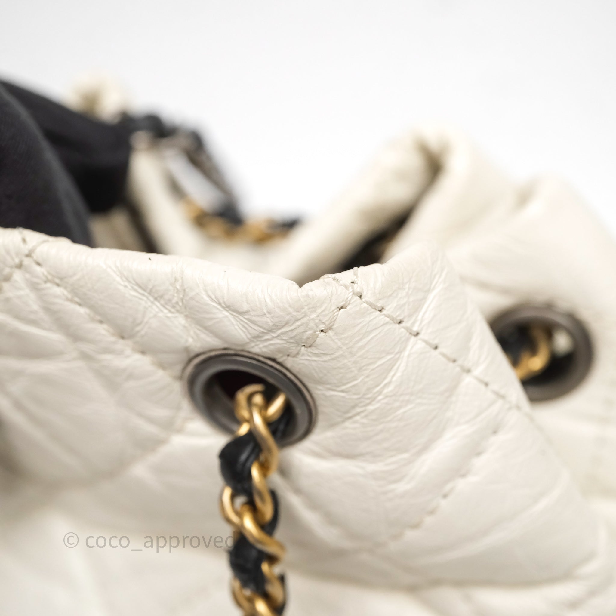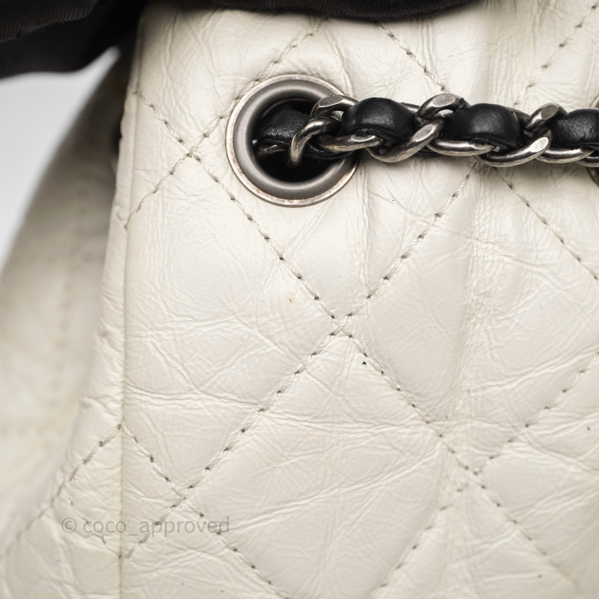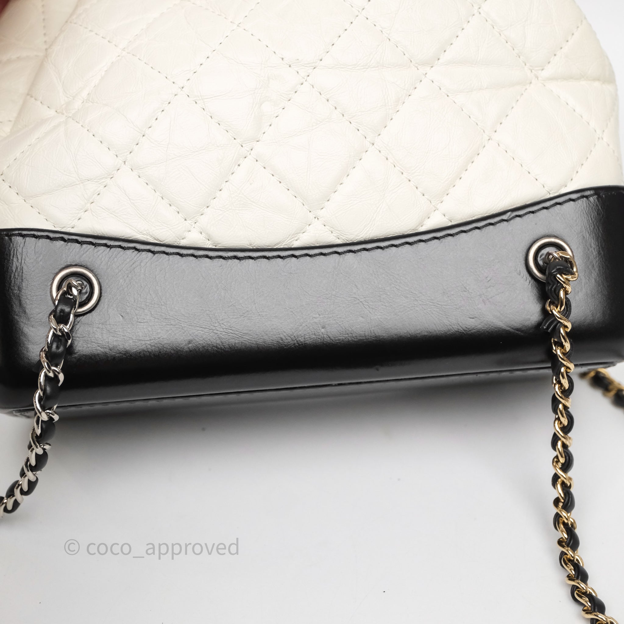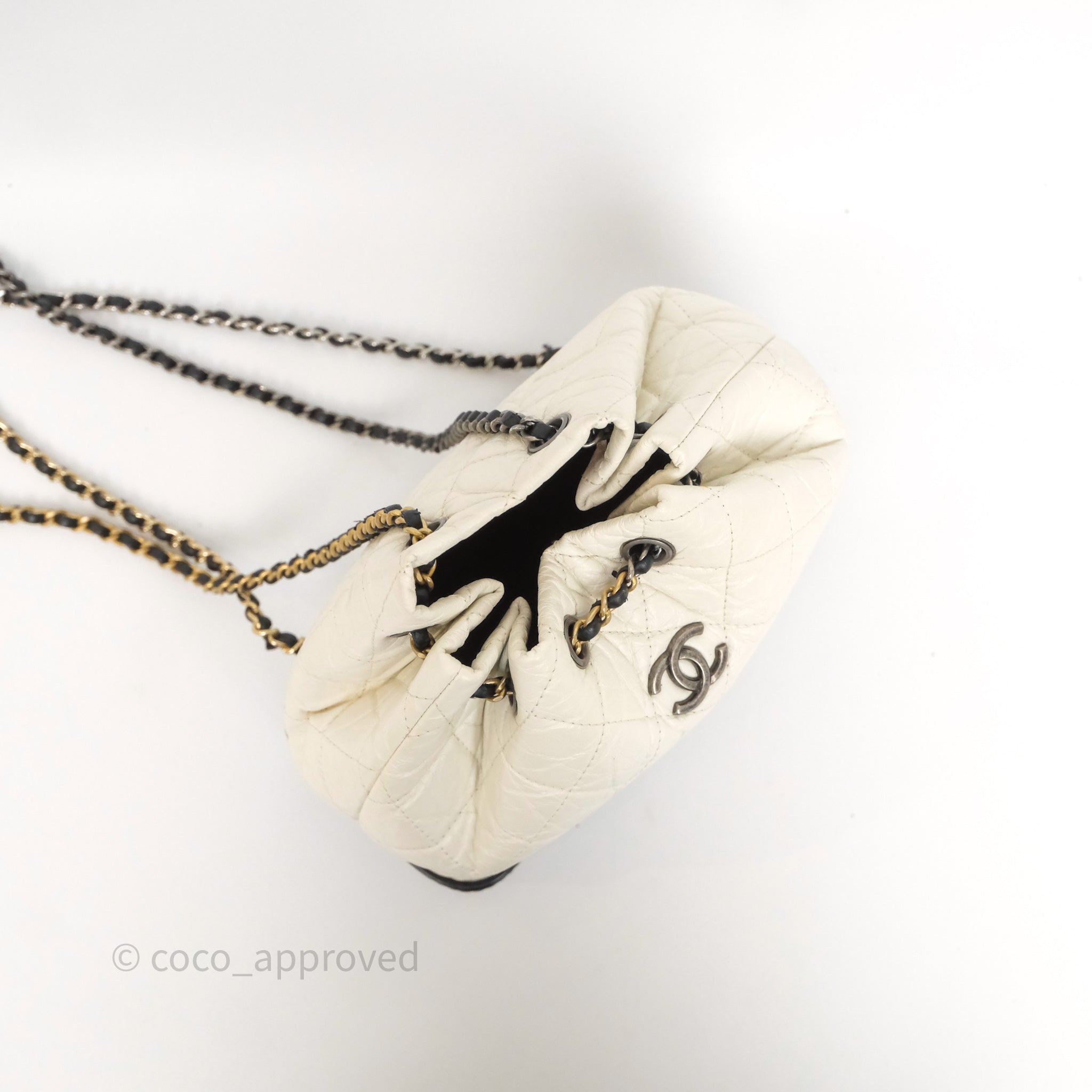 Chanel Small Gabrielle Backpack White Black Aged Calfskin