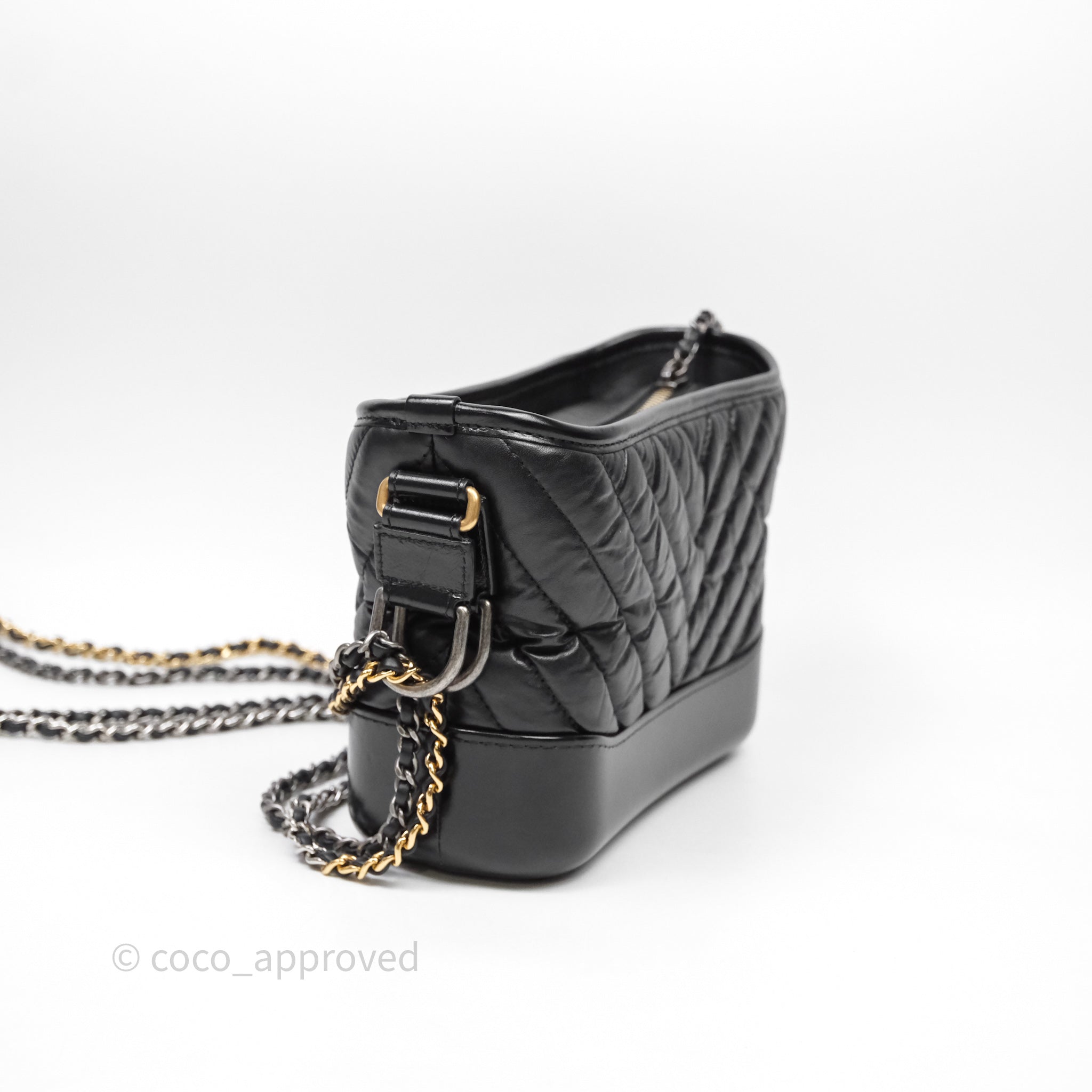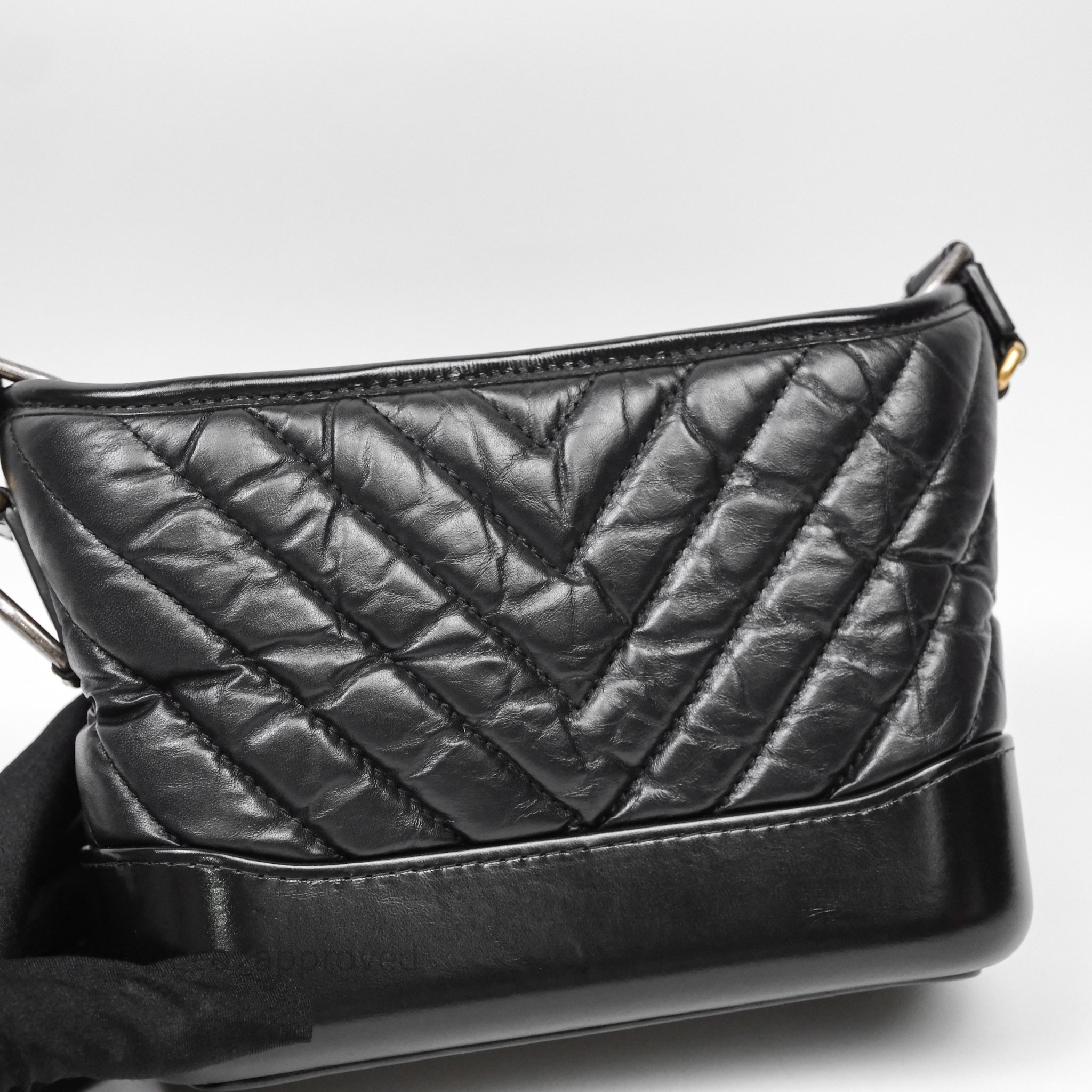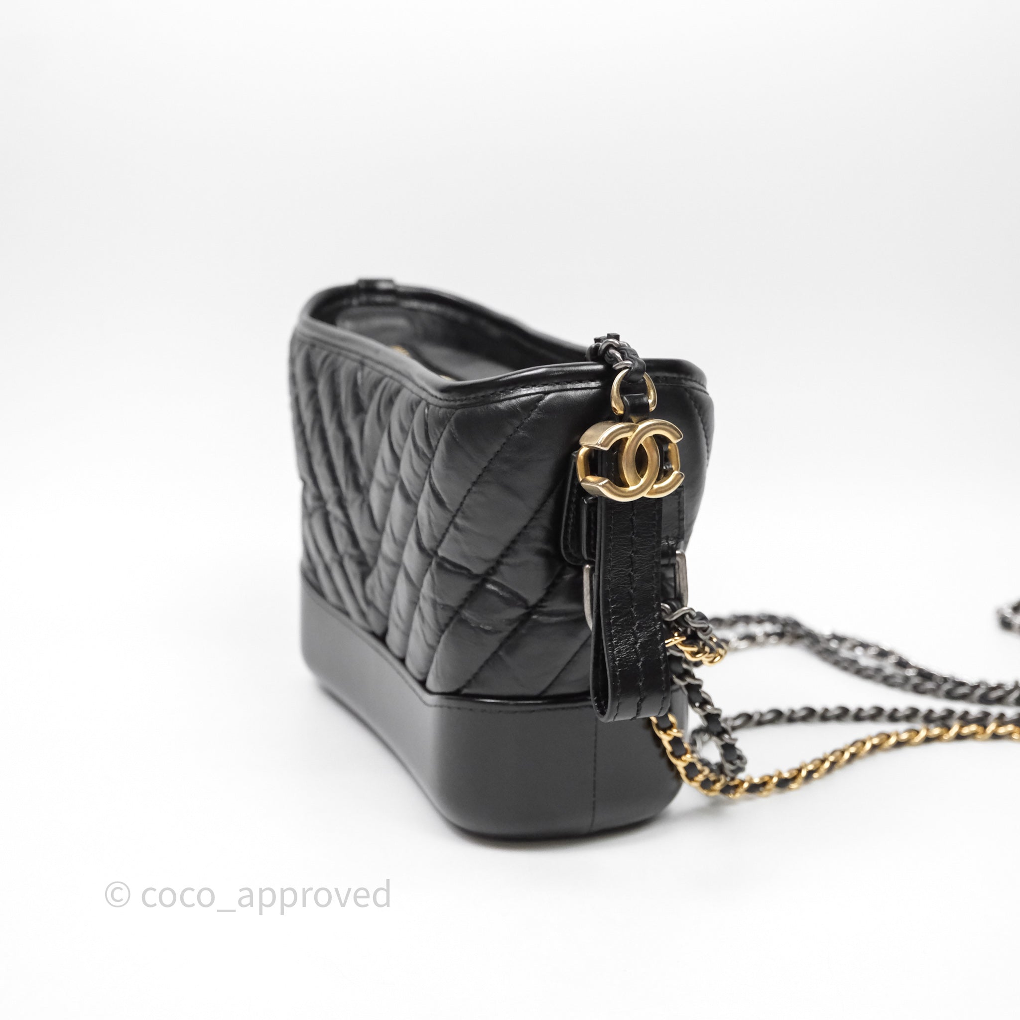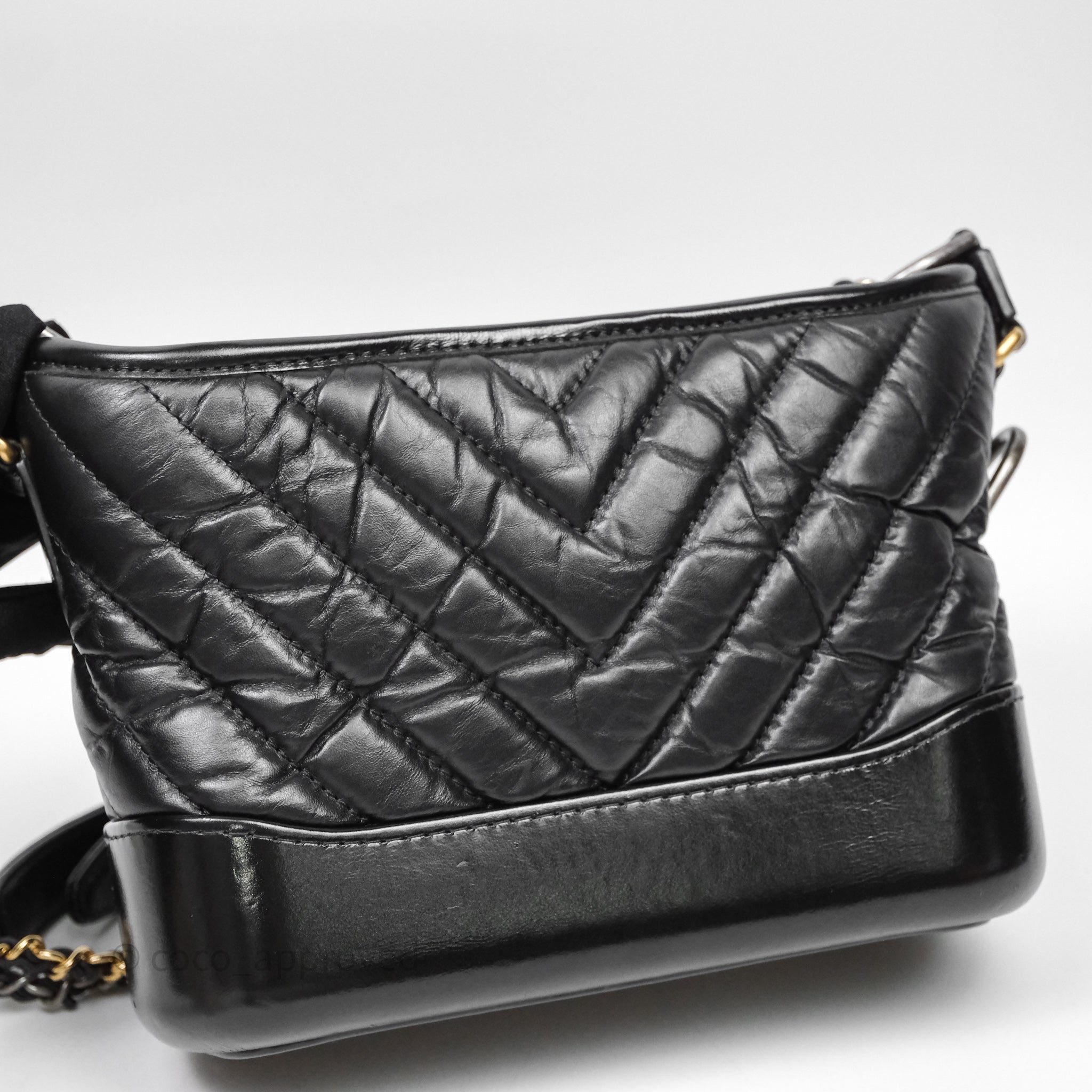 Chanel Small Gabrielle Hobo Chevron Black Aged Calfskin