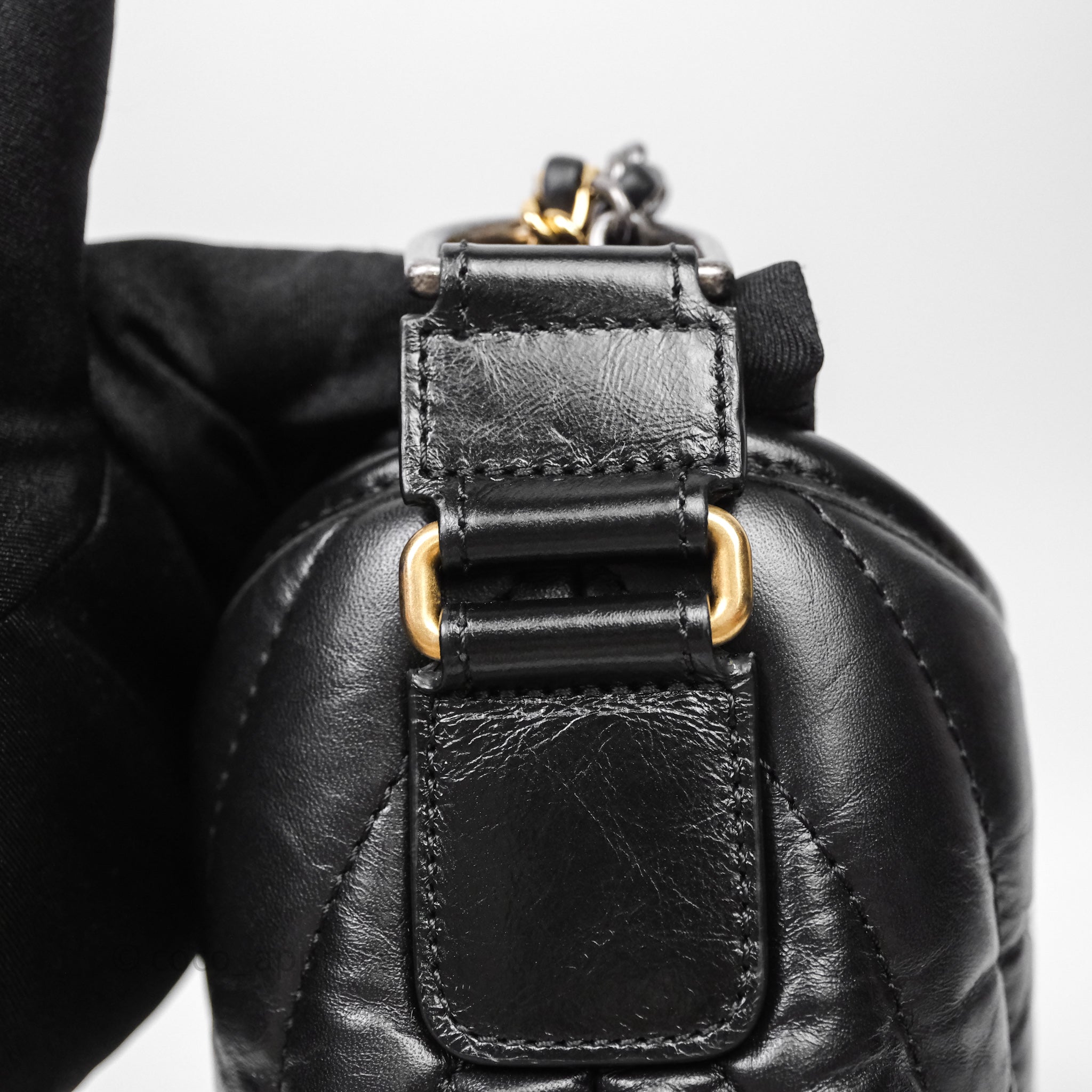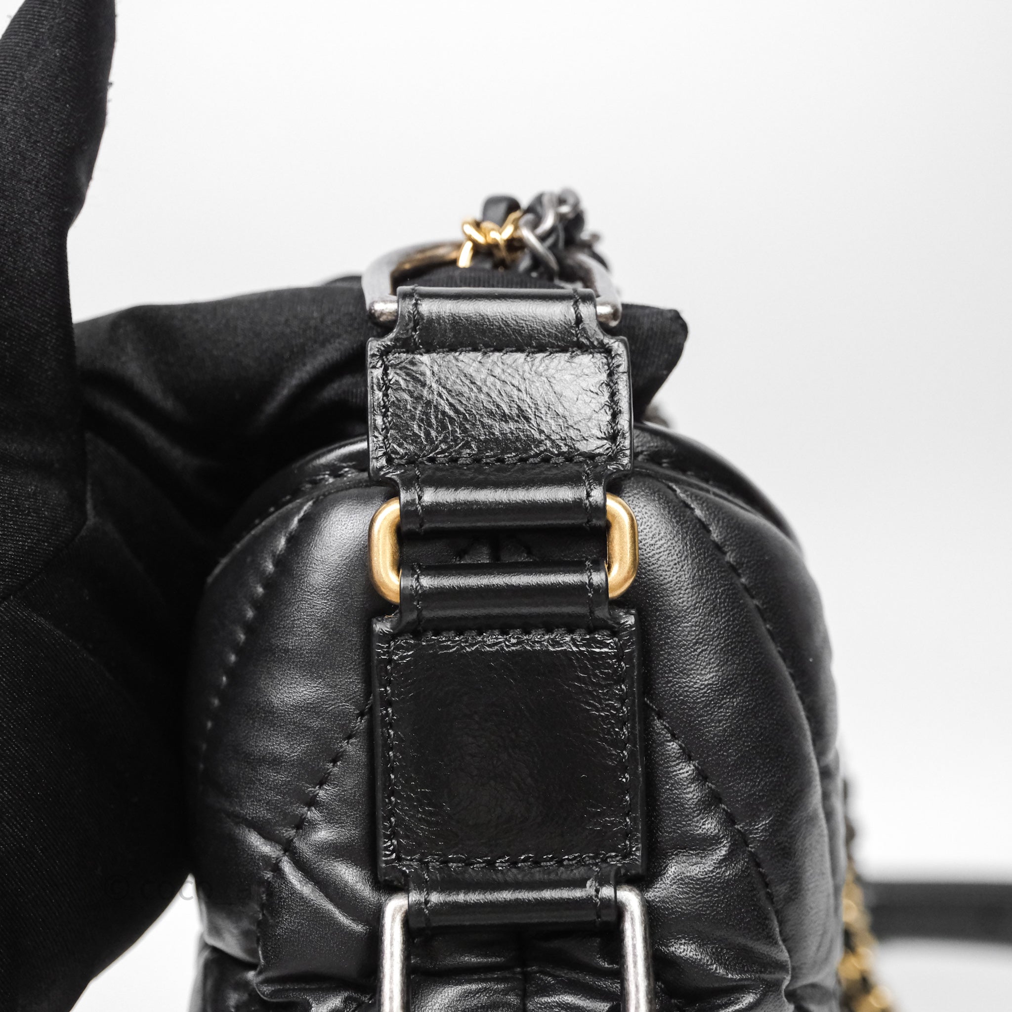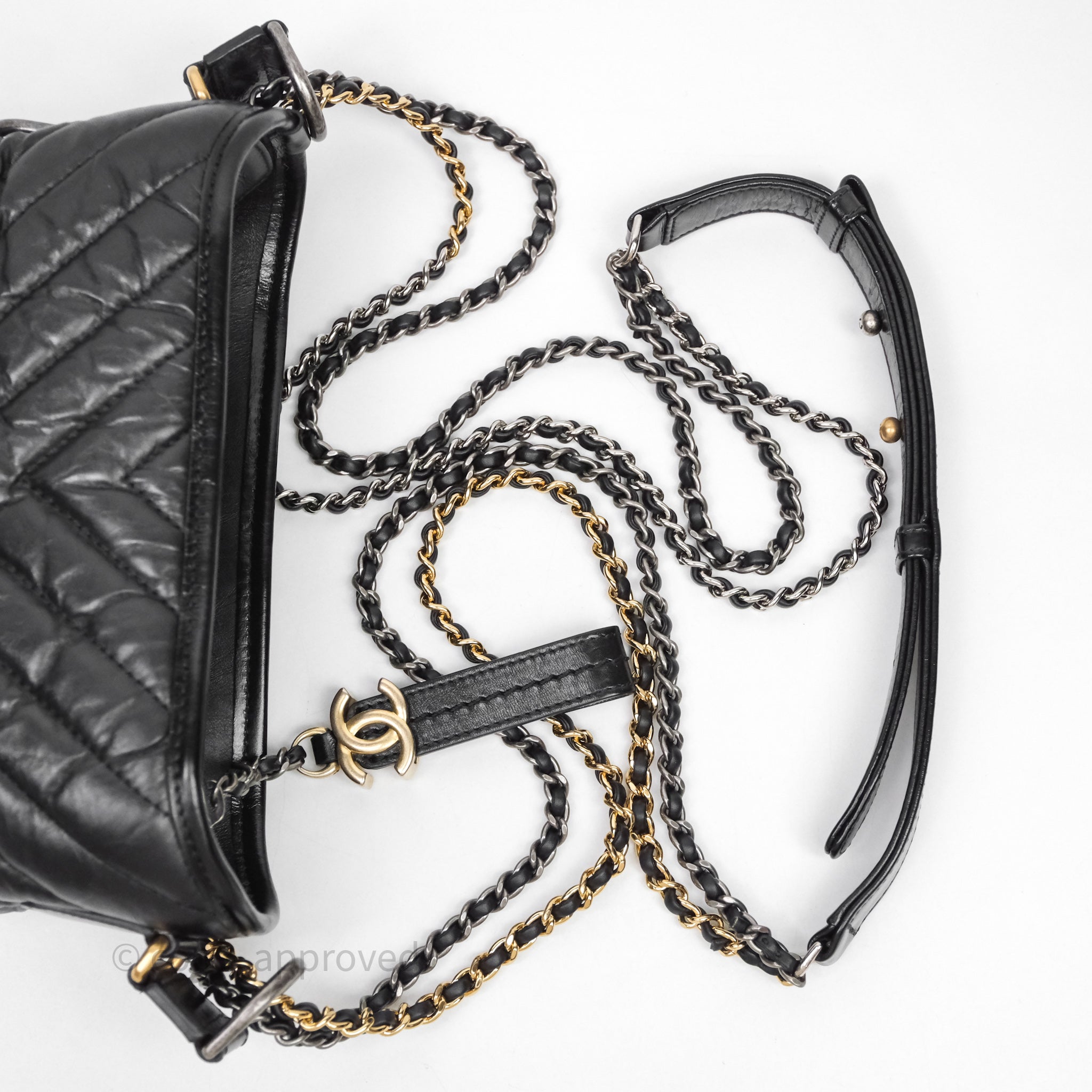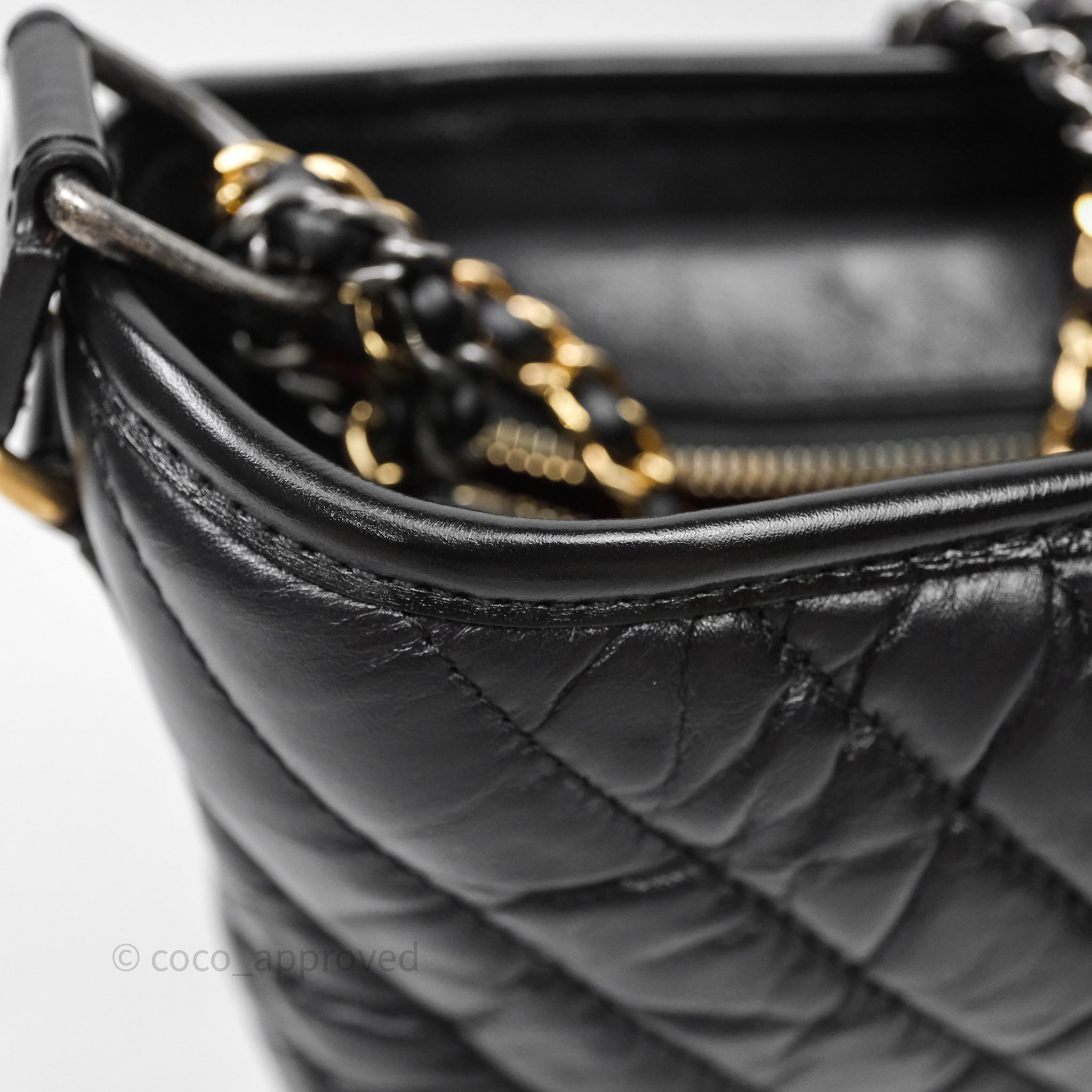 Chanel Small Gabrielle Hobo Chevron Black Aged Calfskin