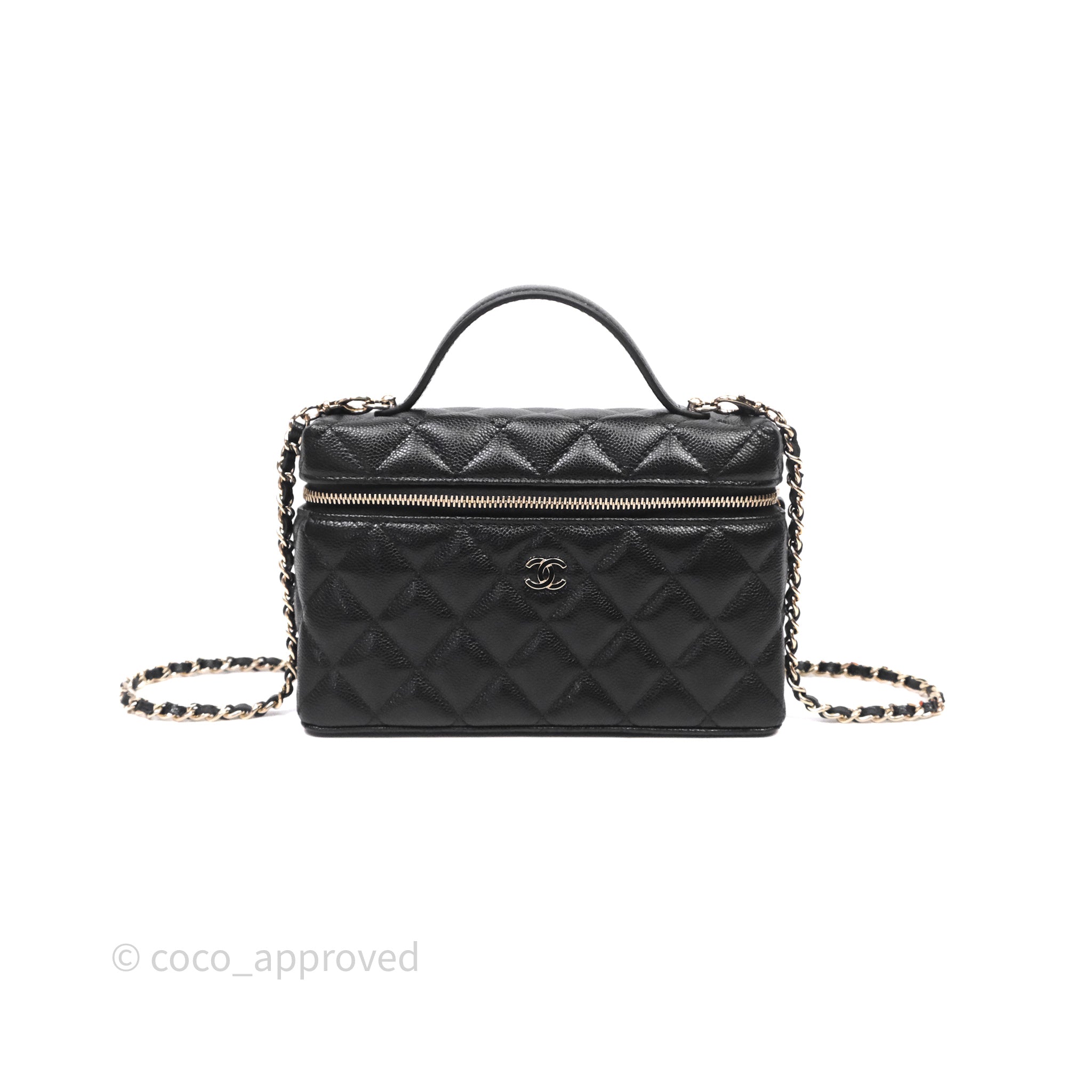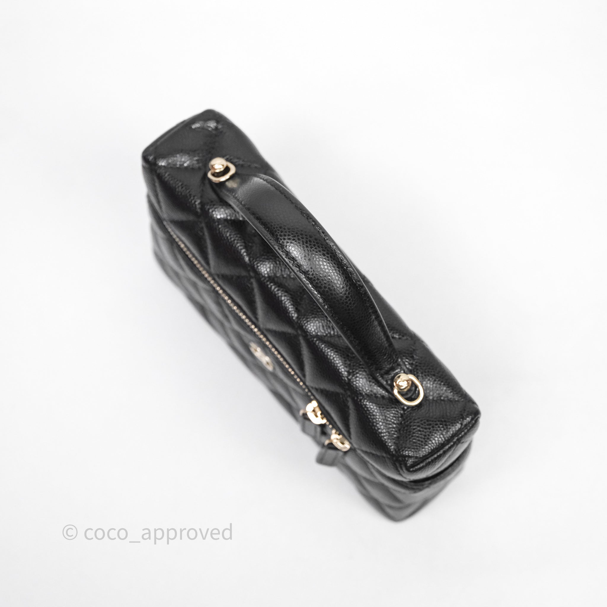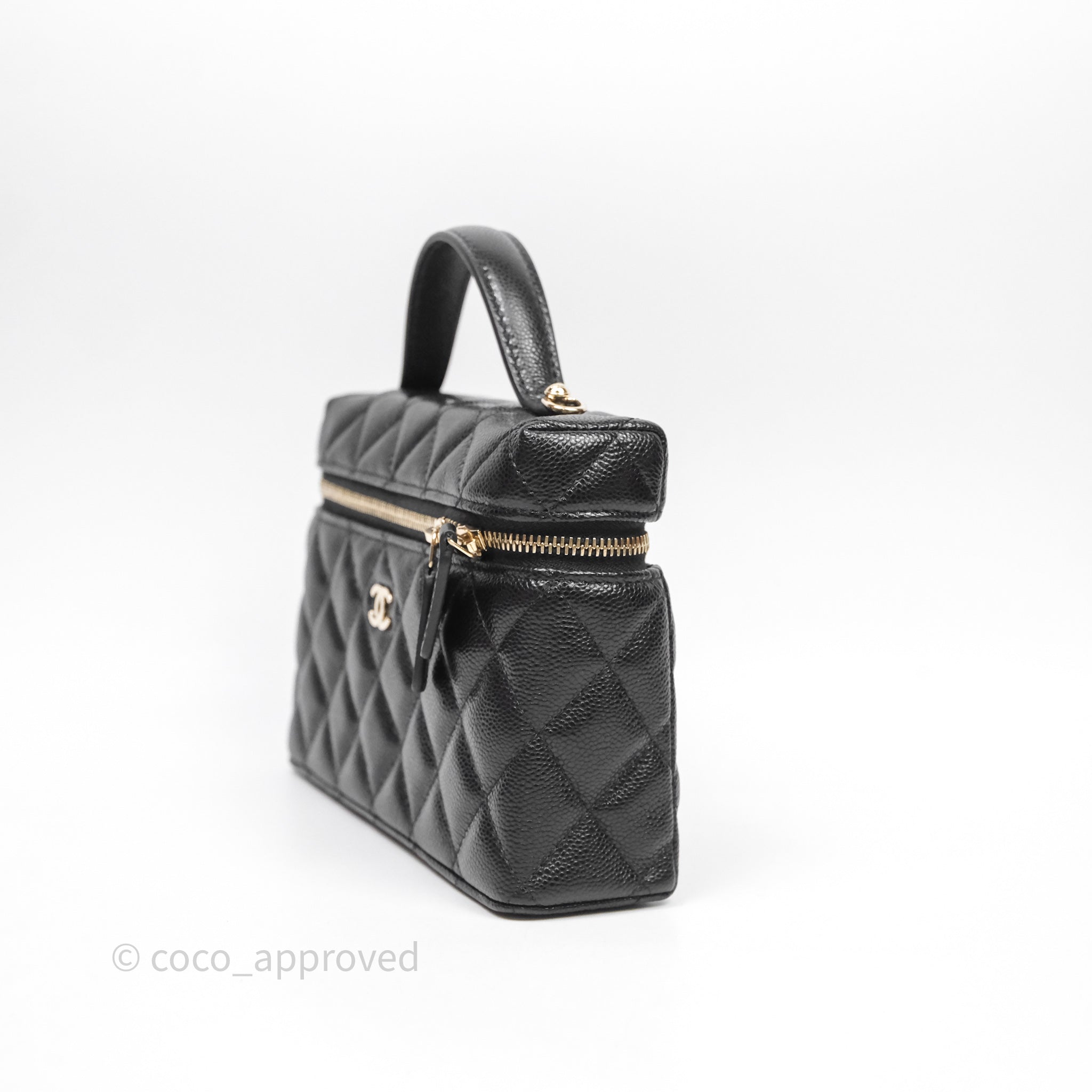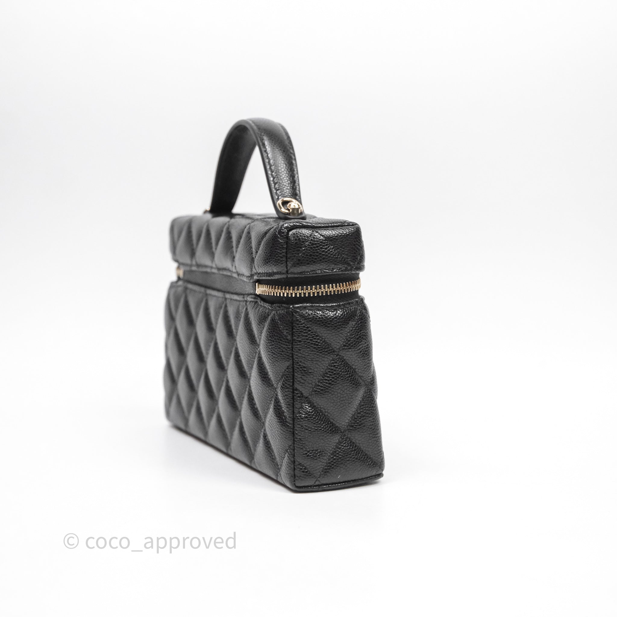 Chanel Top Handle Long Vanity with Chain Black Caviar Gold Hardware