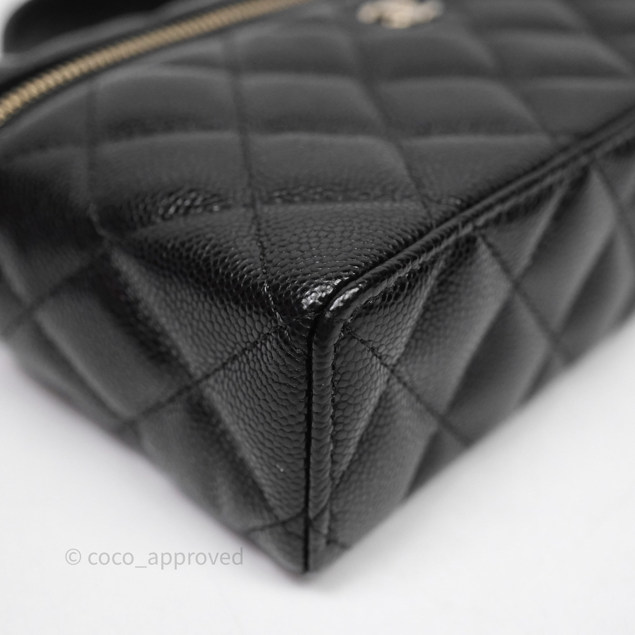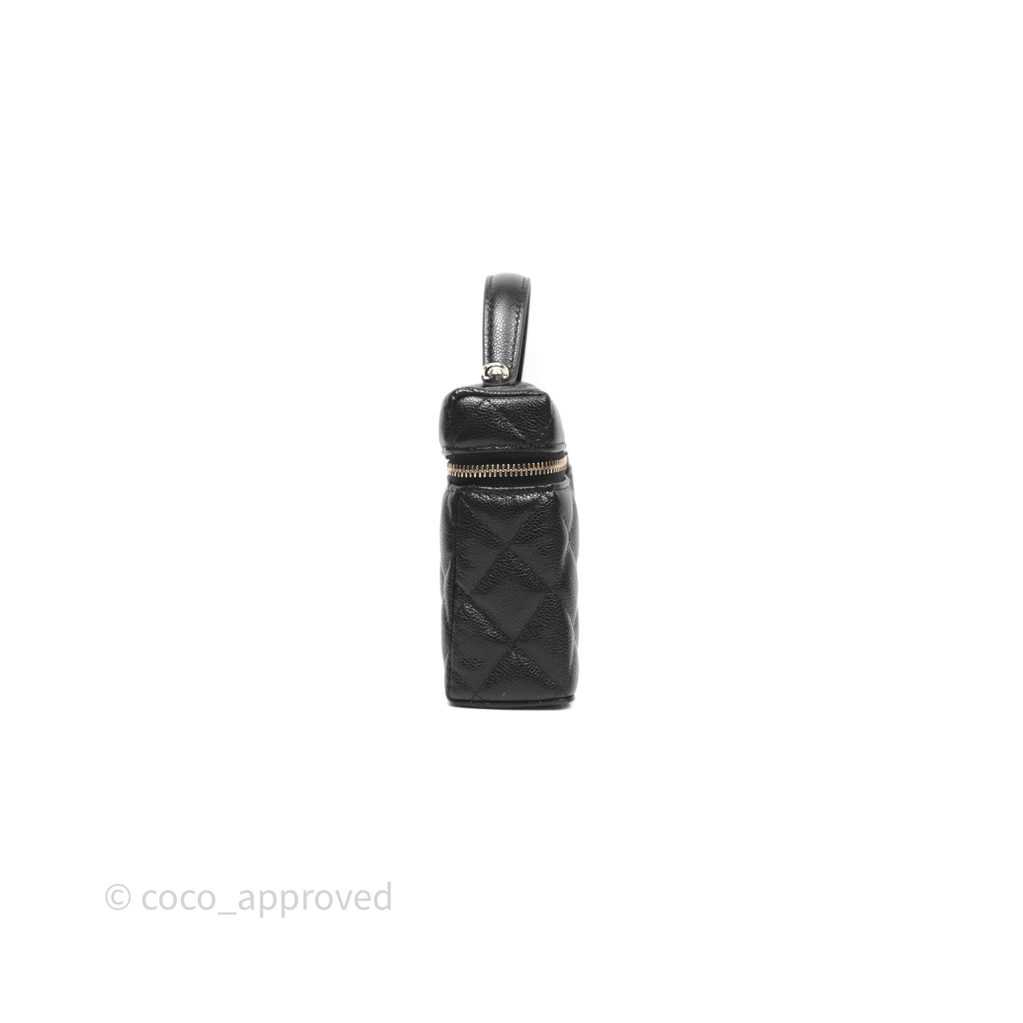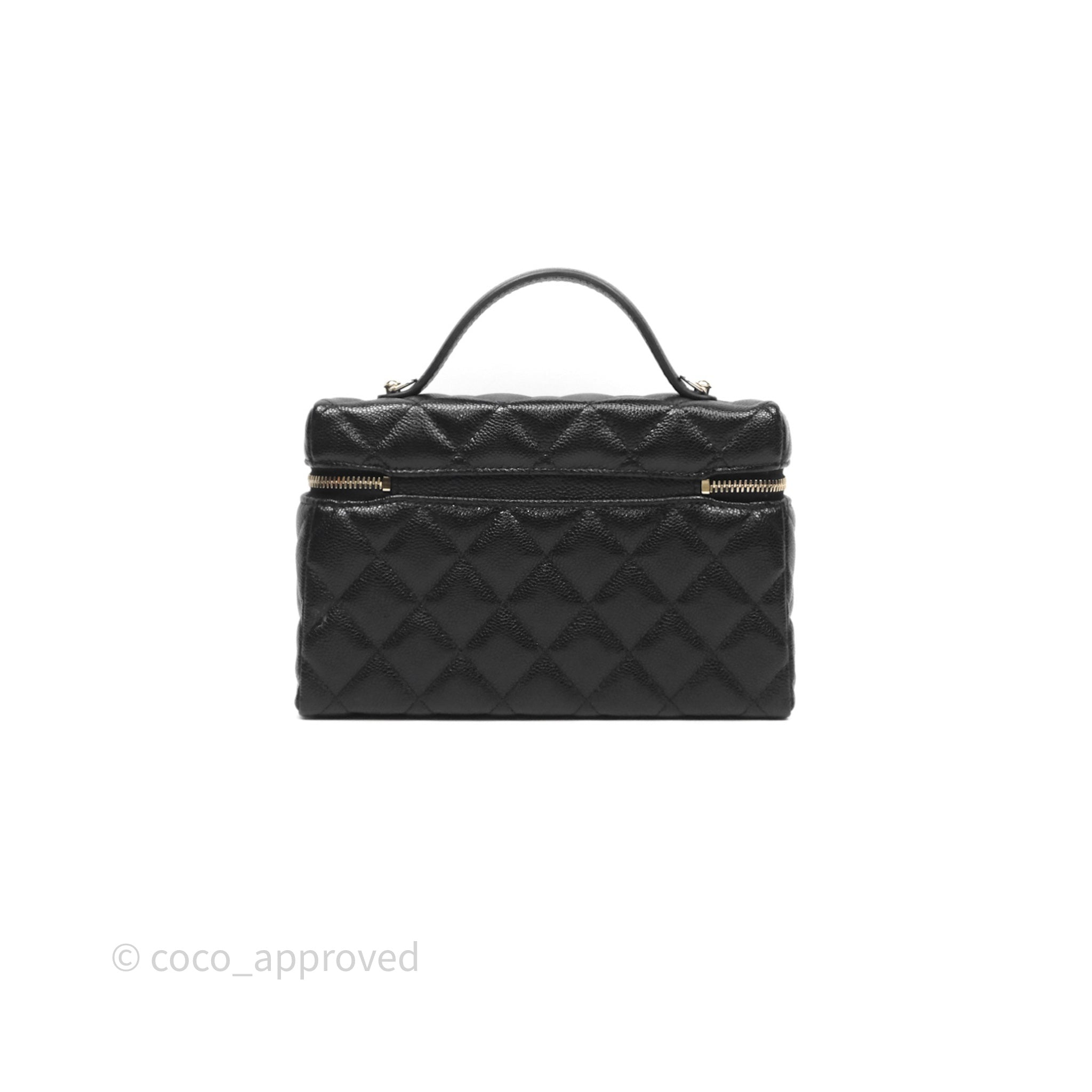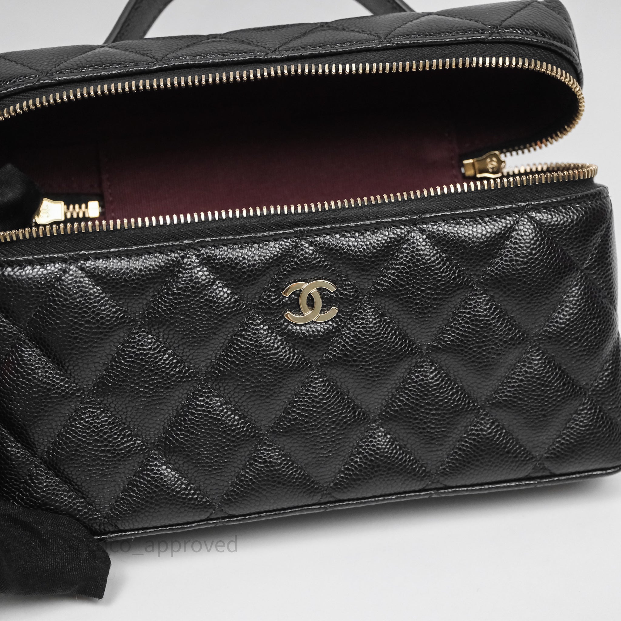 Chanel Top Handle Long Vanity with Chain Black Caviar Gold Hardware