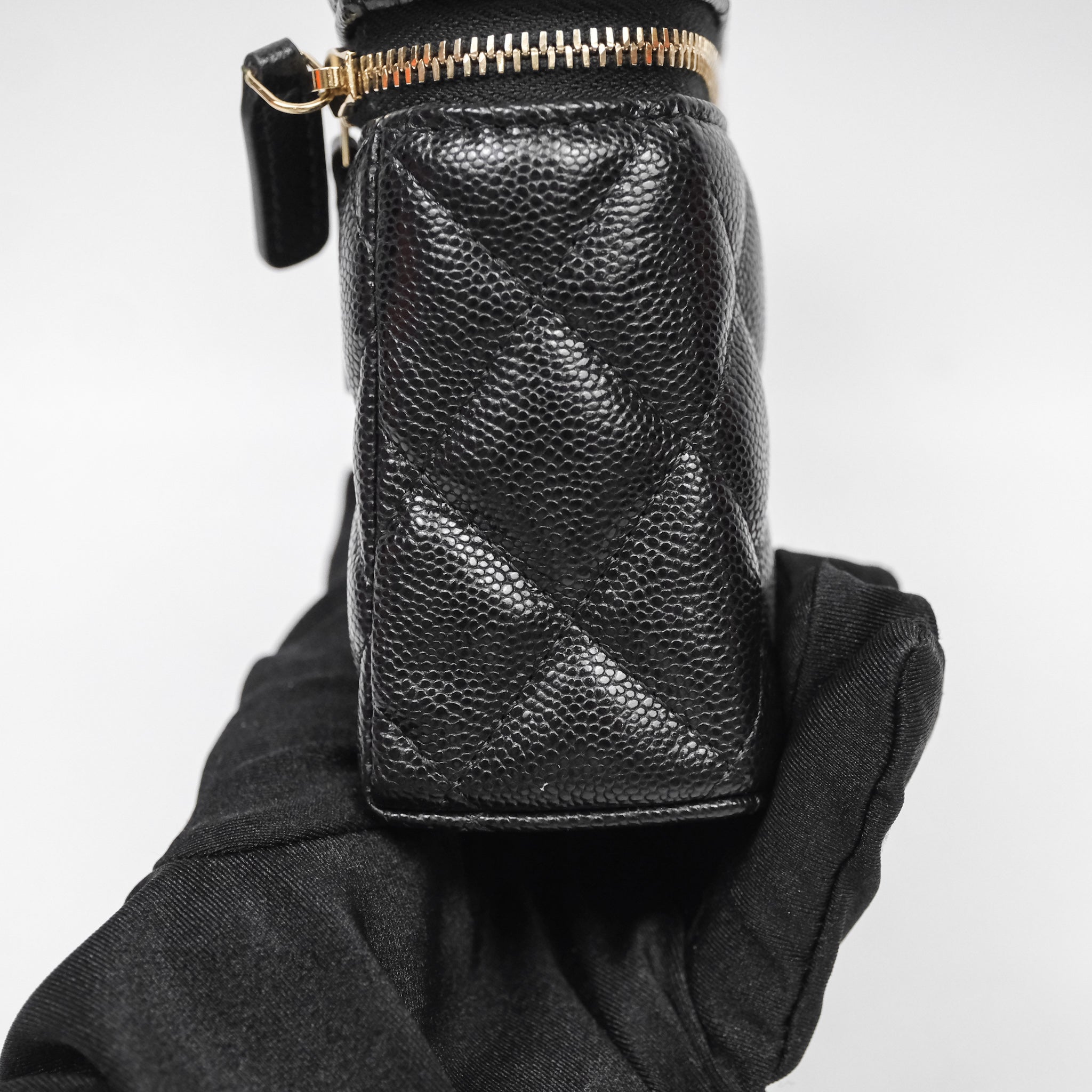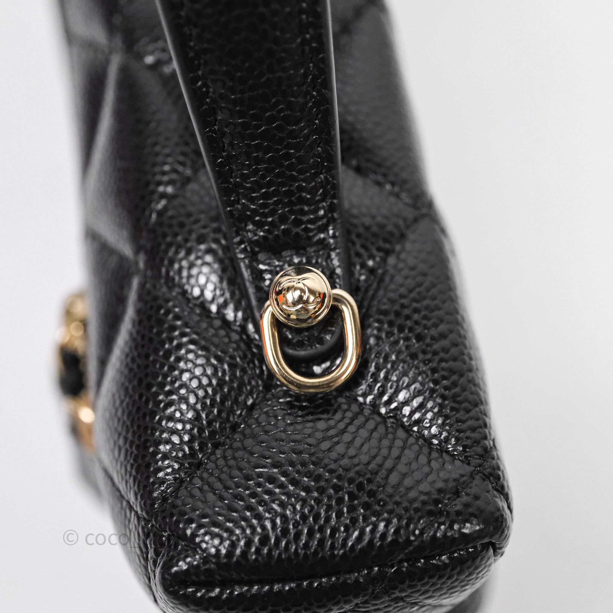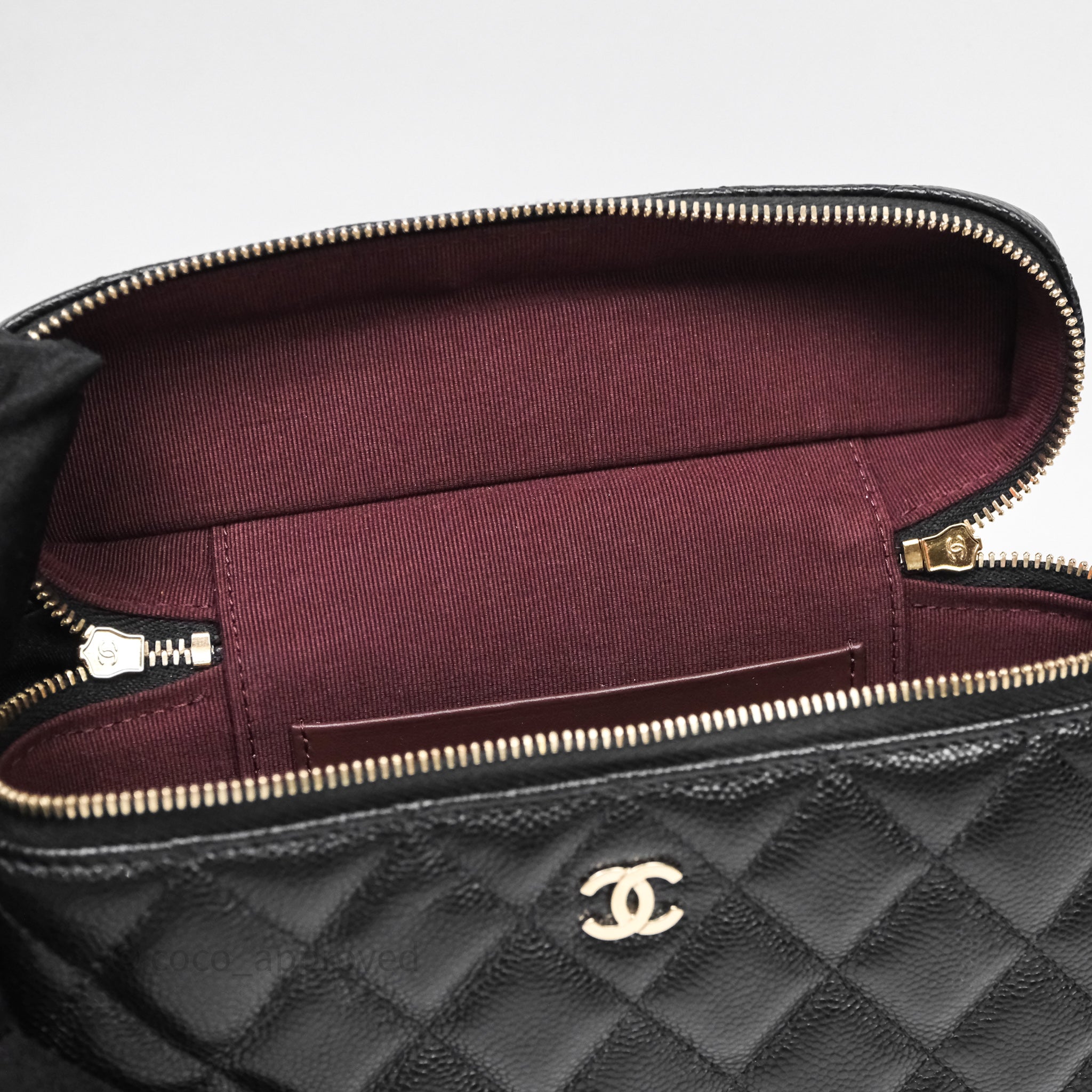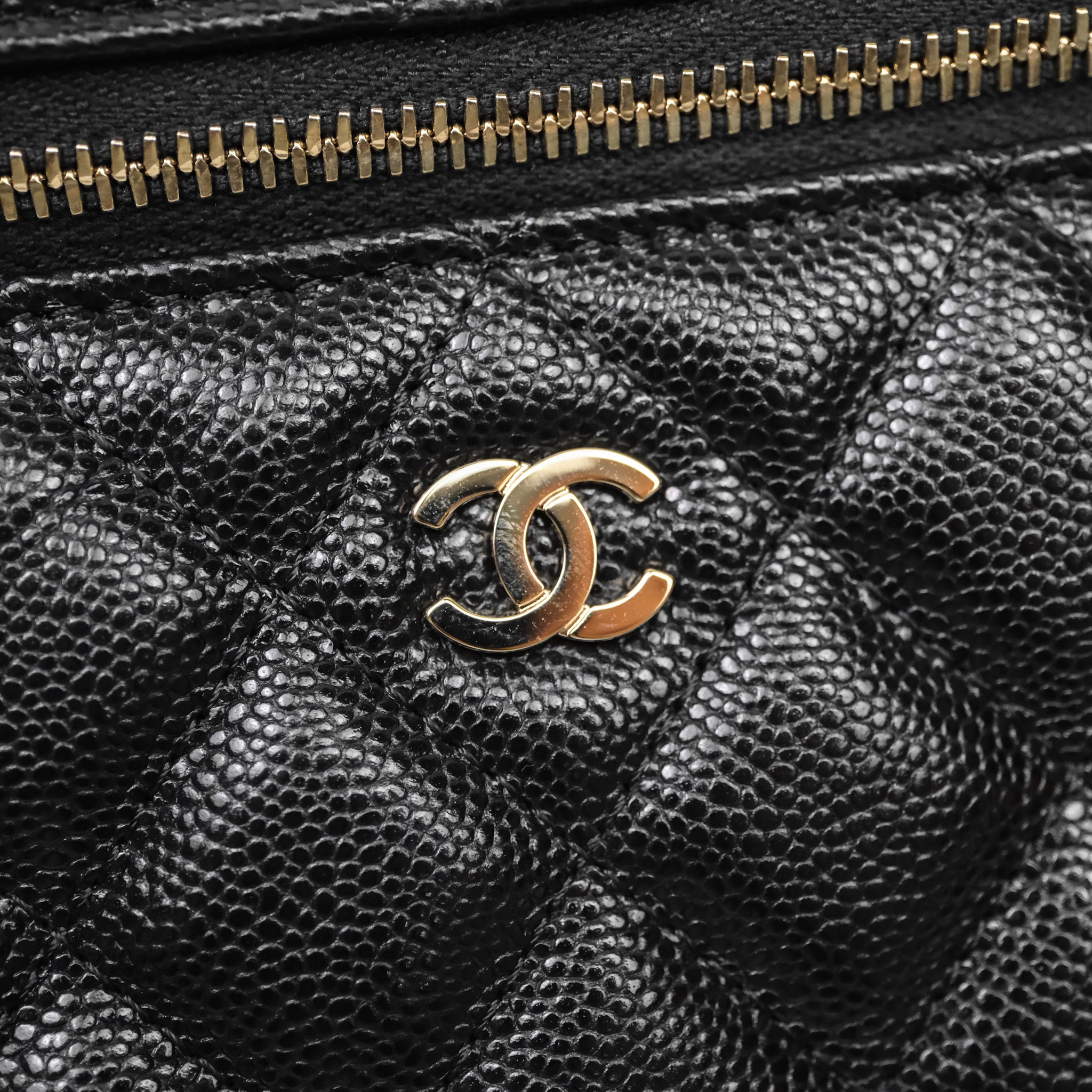 Chanel Top Handle Long Vanity with Chain Black Caviar Gold Hardware