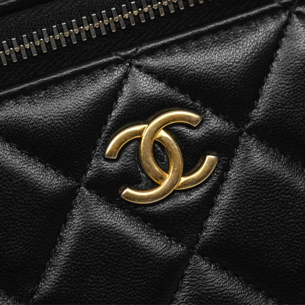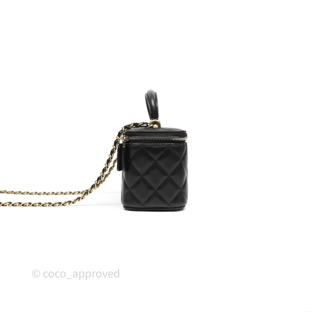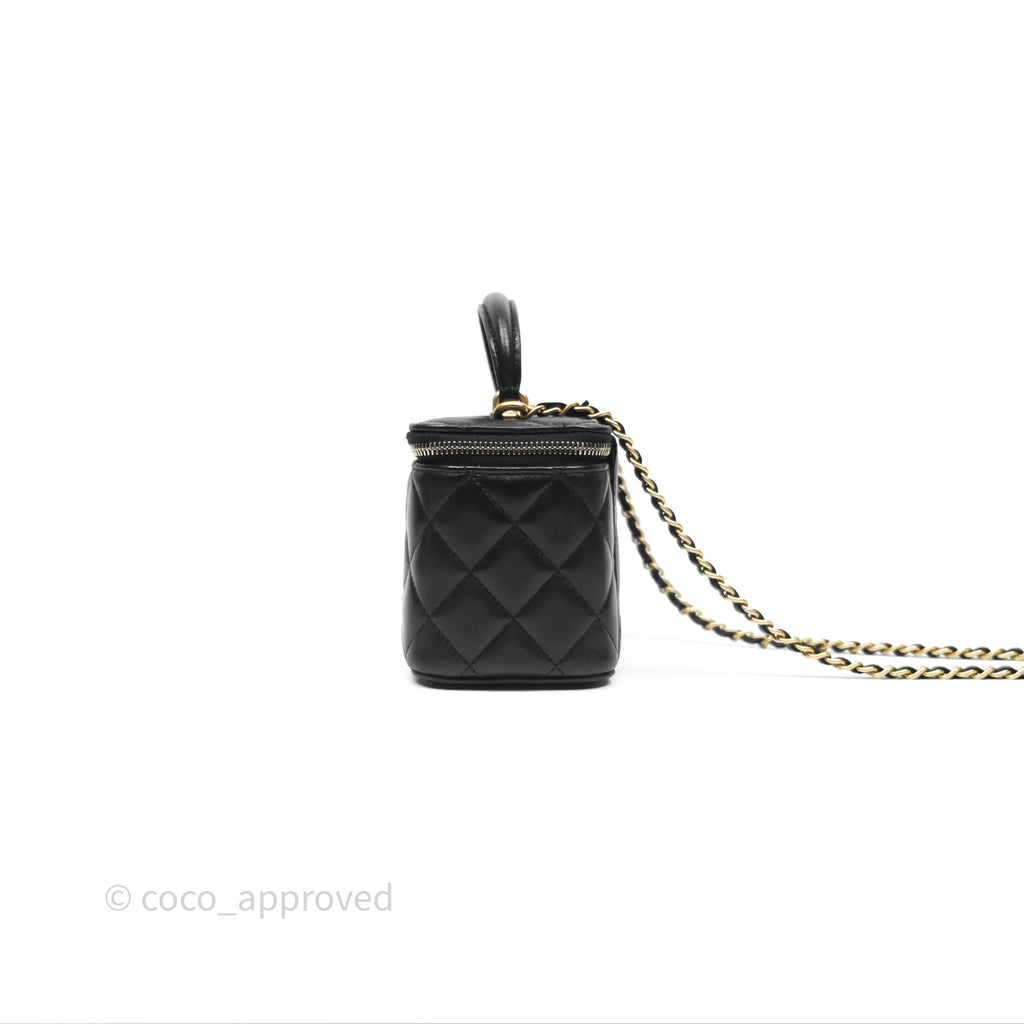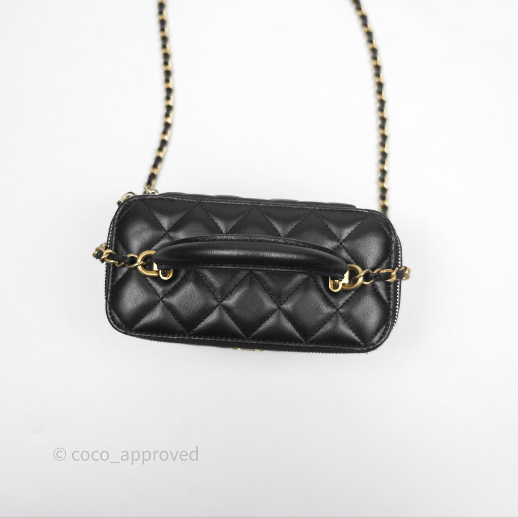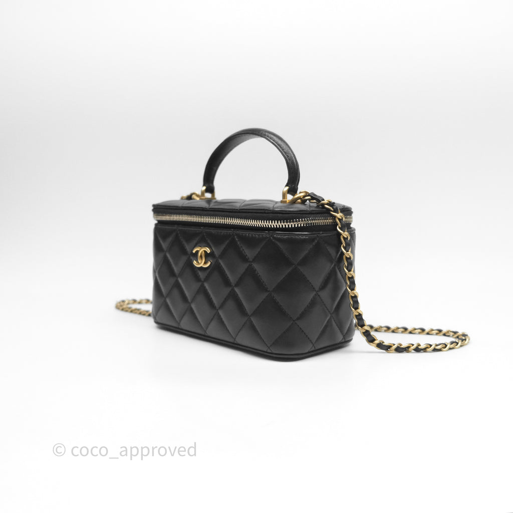 Chanel Vanity Rectangular Top Handle Black Lambskin Aged Gold Hardware