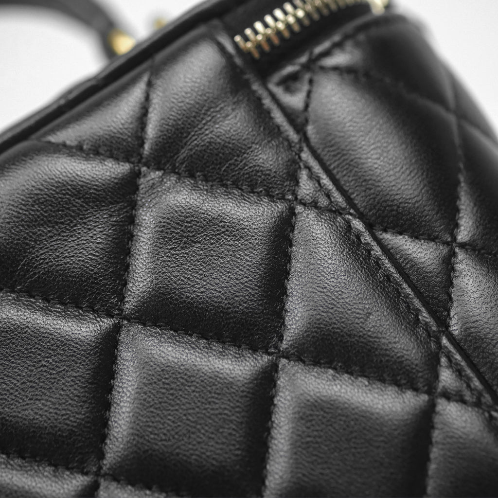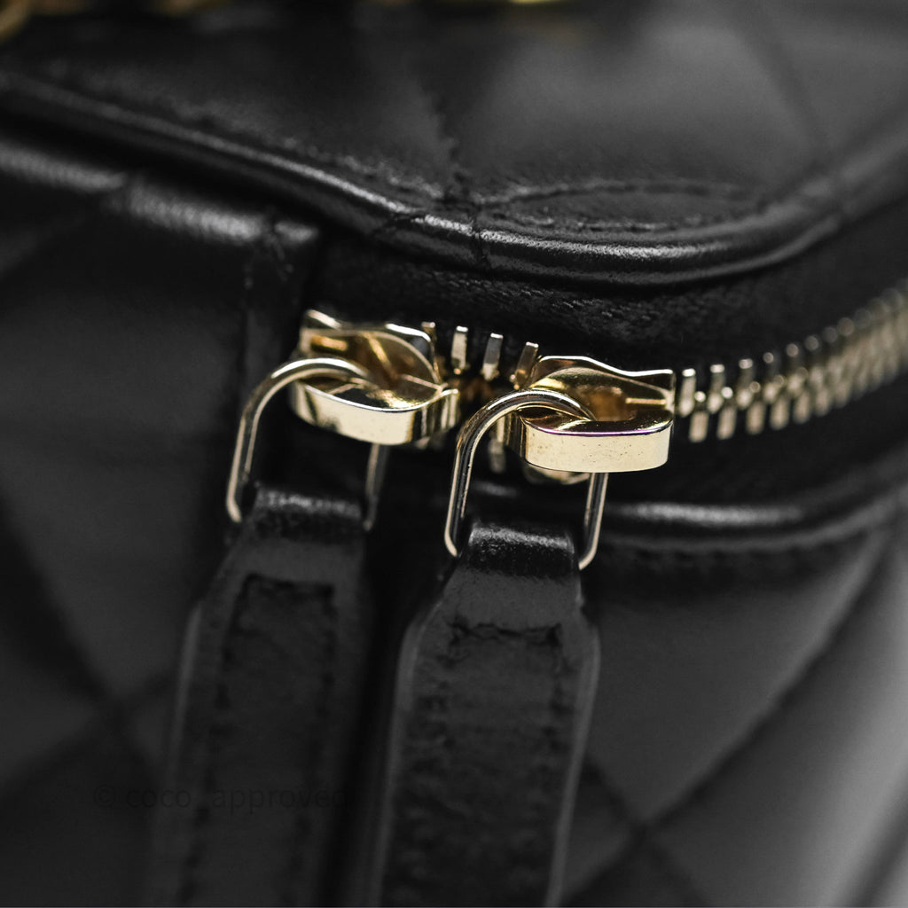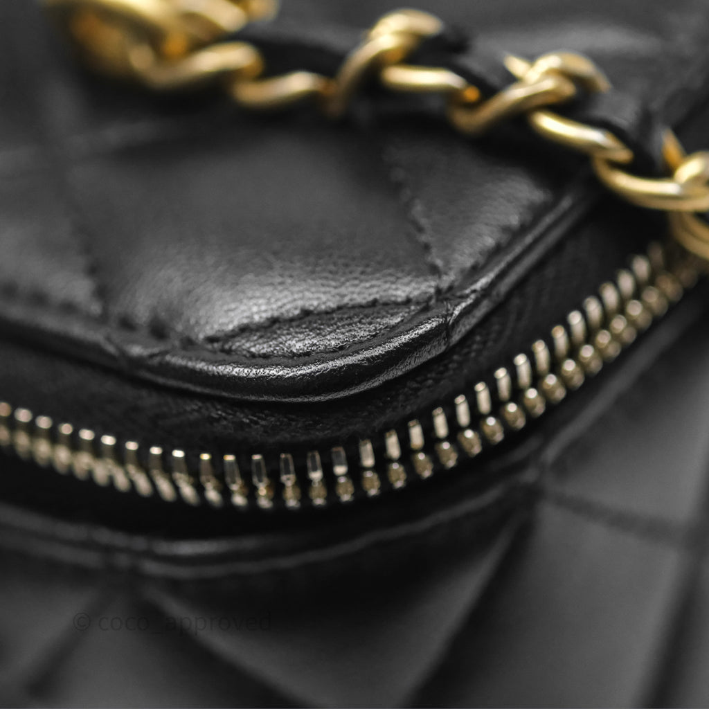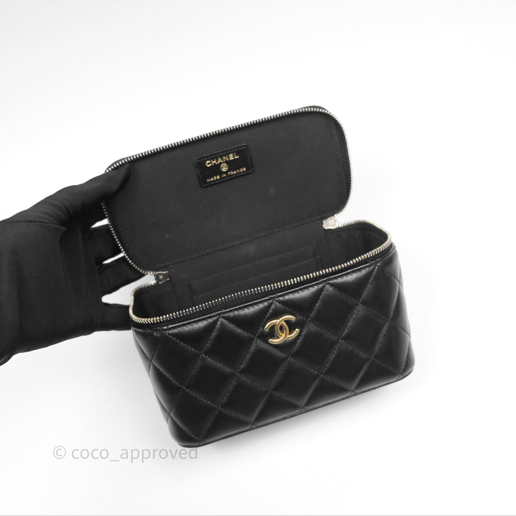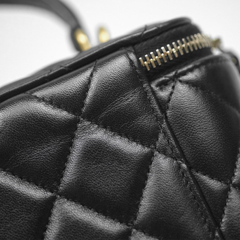 Chanel Vanity Rectangular Top Handle Black Lambskin Aged Gold Hardware
