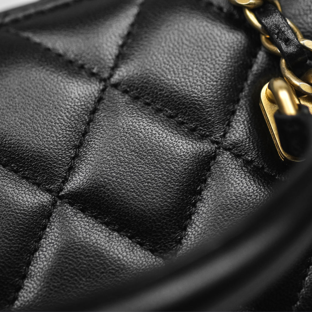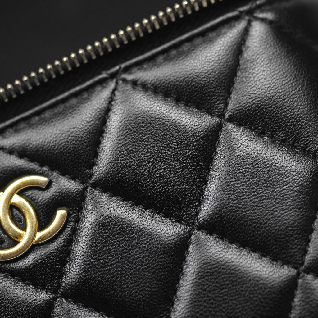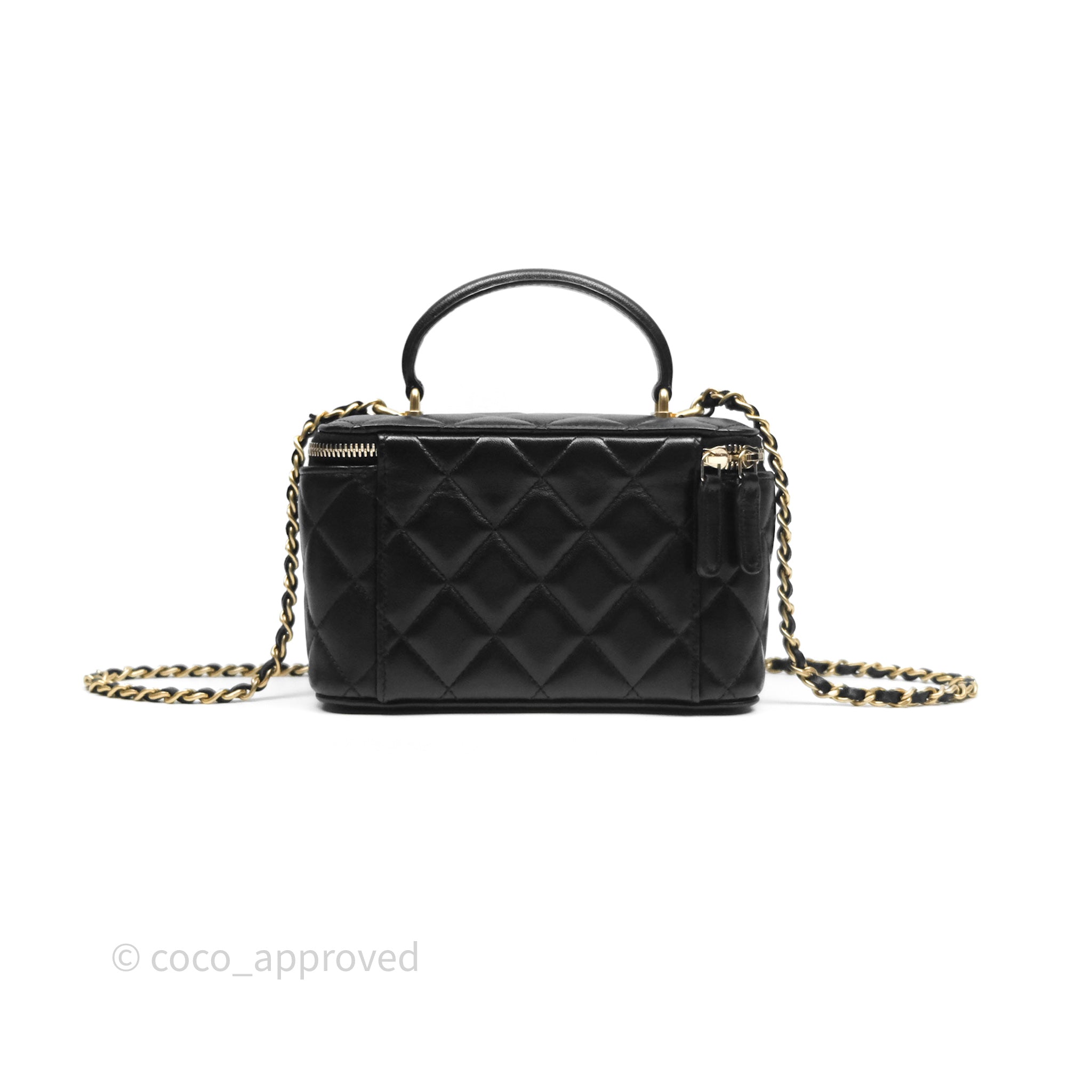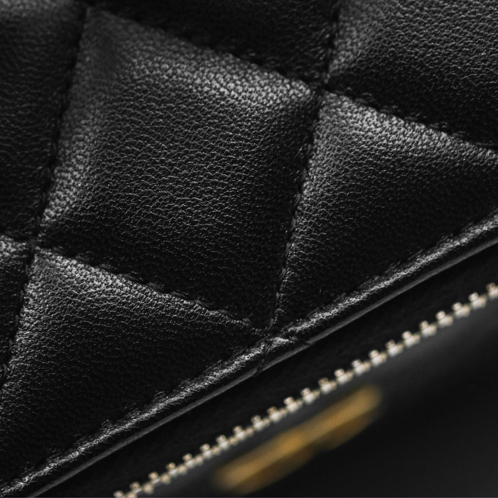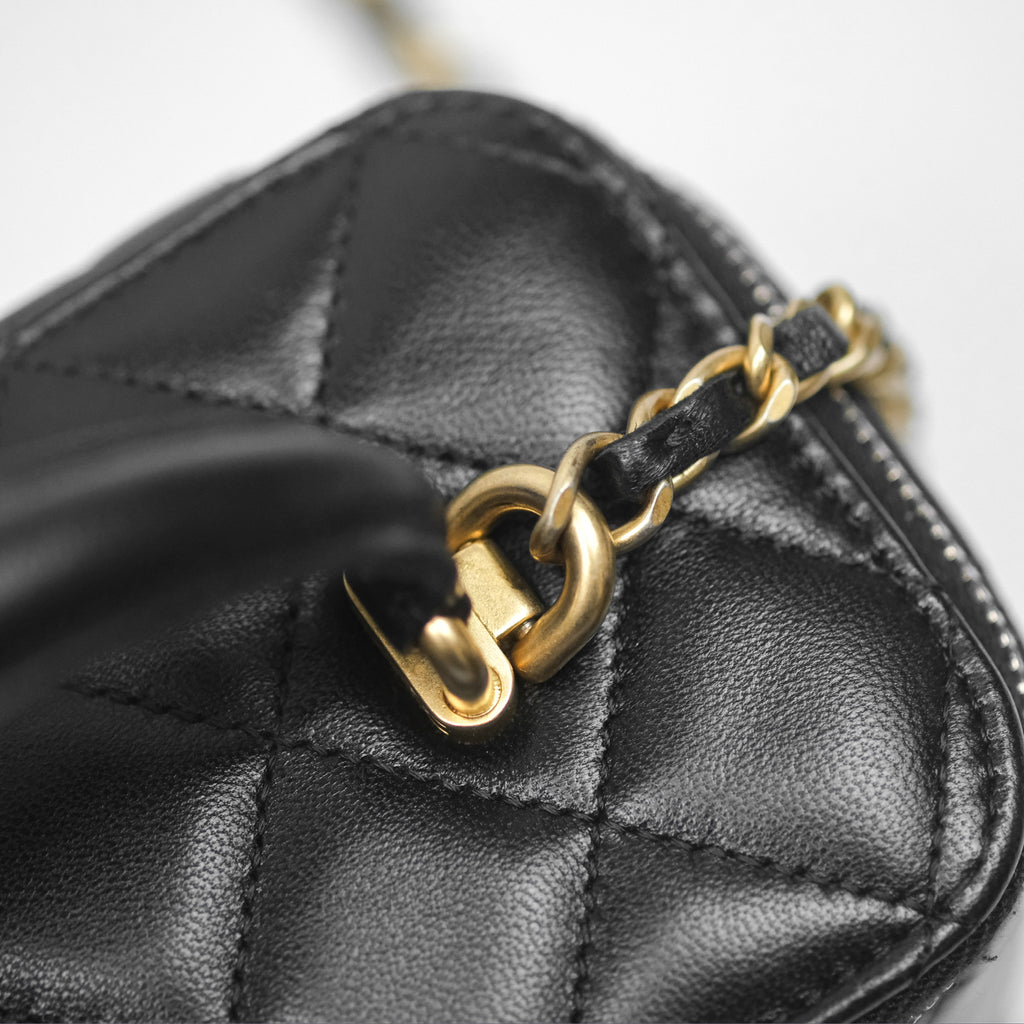 Chanel Vanity Rectangular Top Handle Black Lambskin Aged Gold Hardware