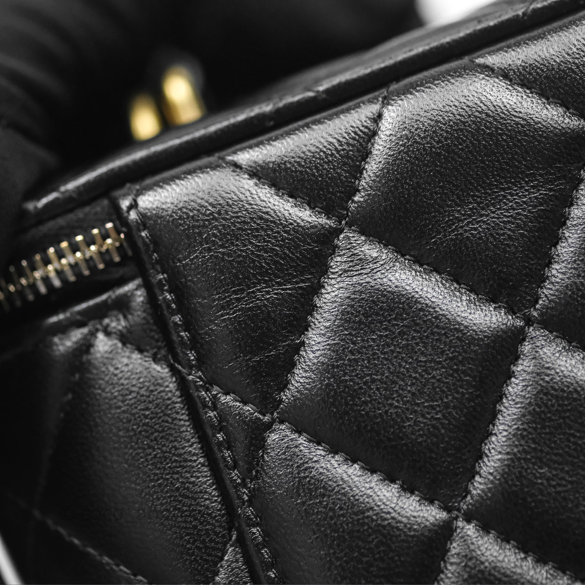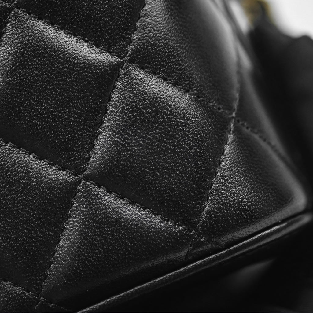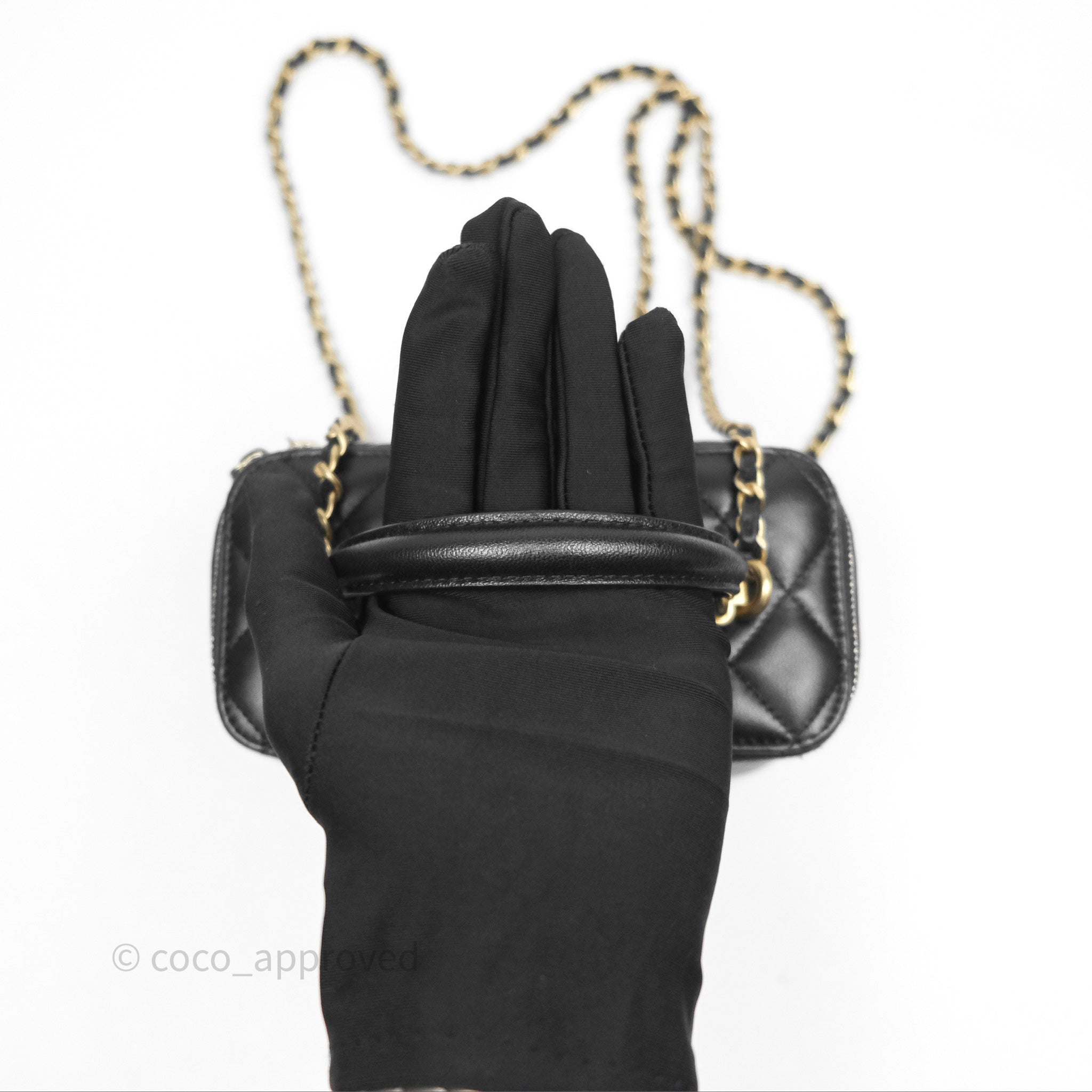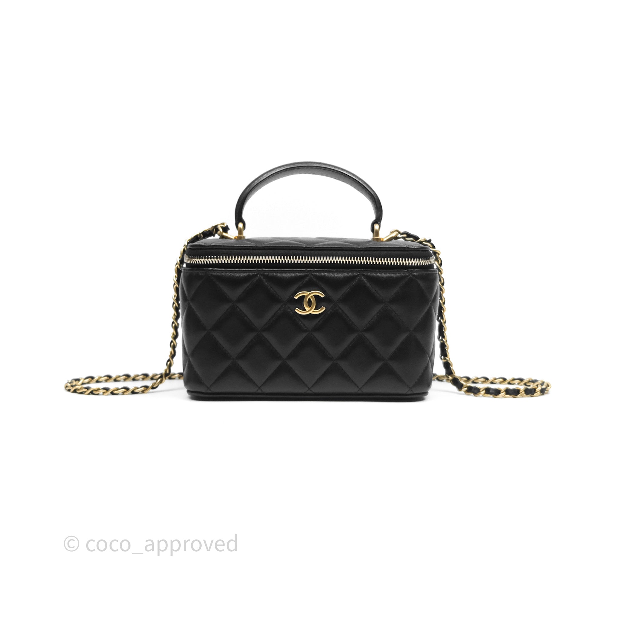 Chanel Vanity Rectangular Top Handle Black Lambskin Aged Gold Hardware
