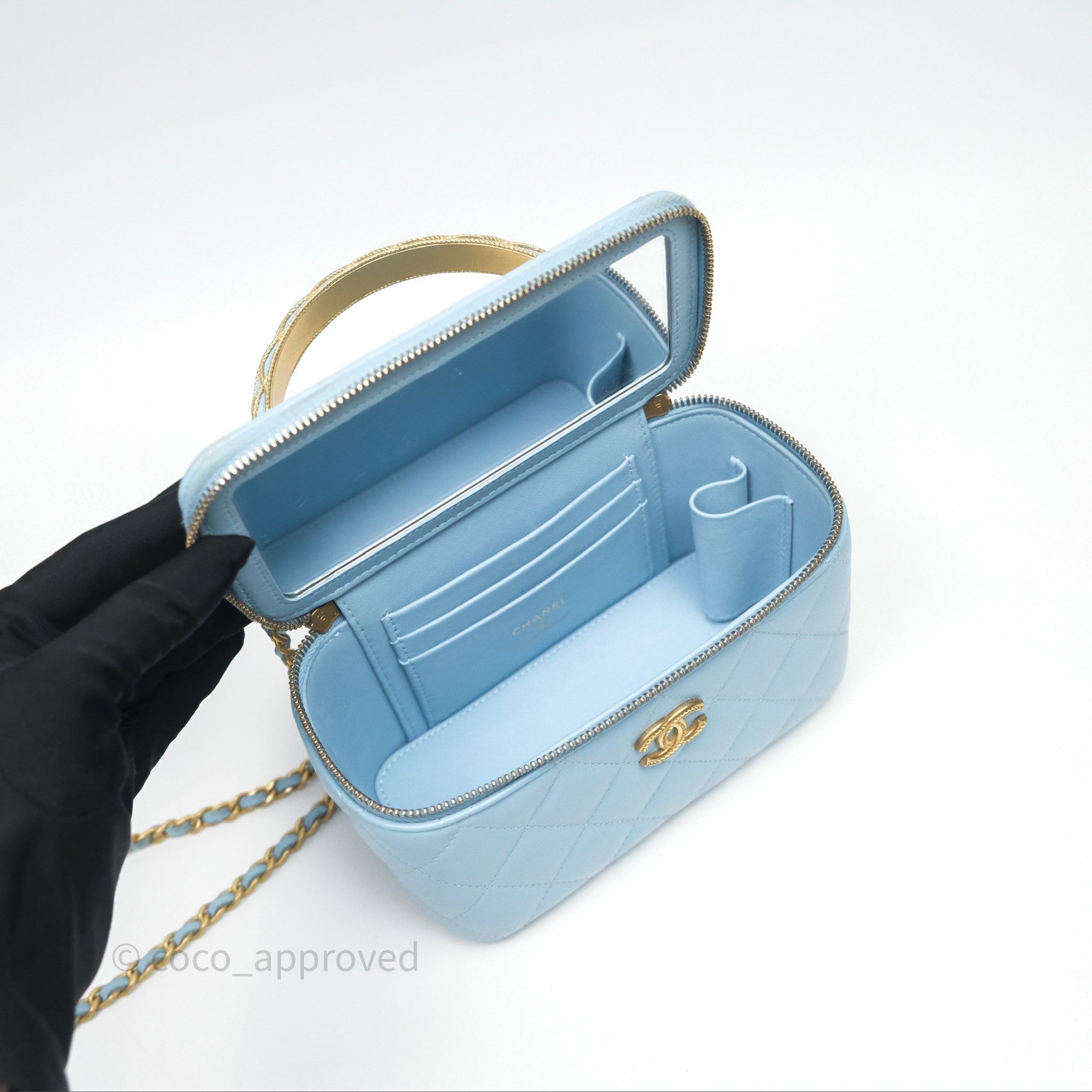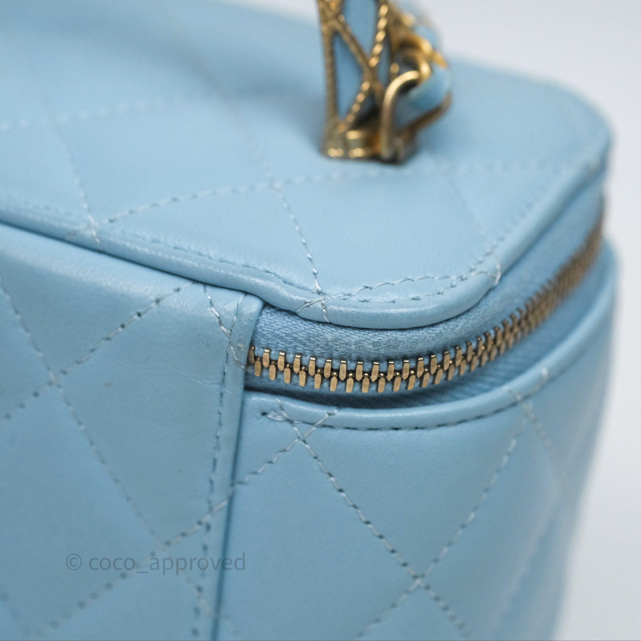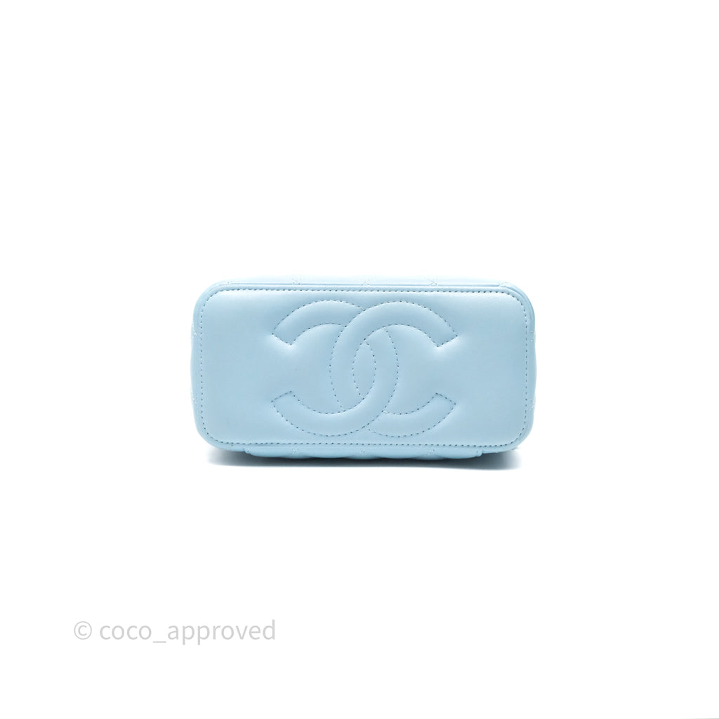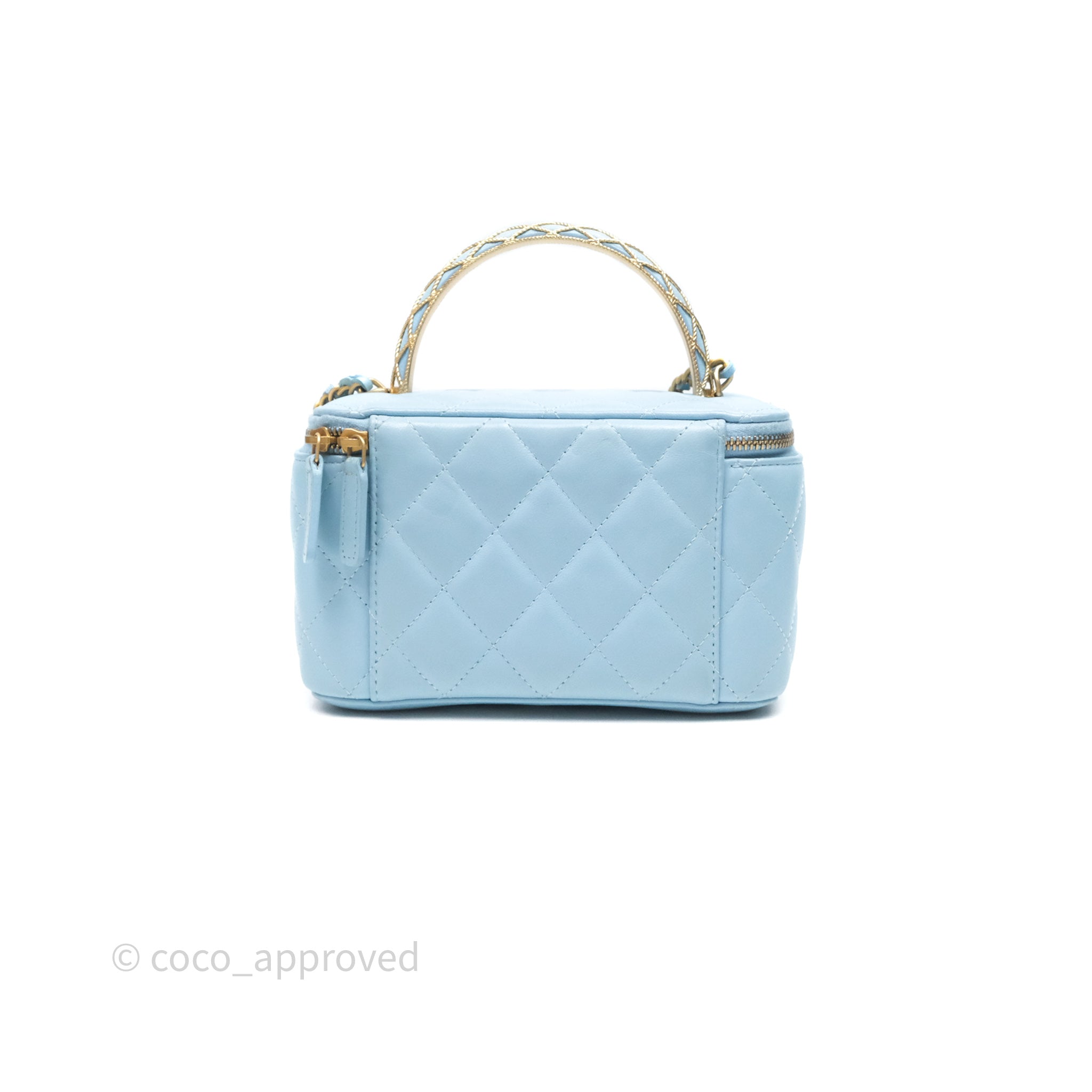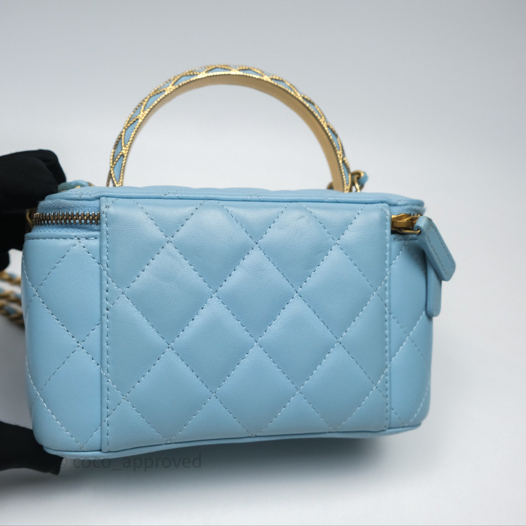 Chanel Vanity Rectangular Top Handle Blue Lambskin Gold Hardware