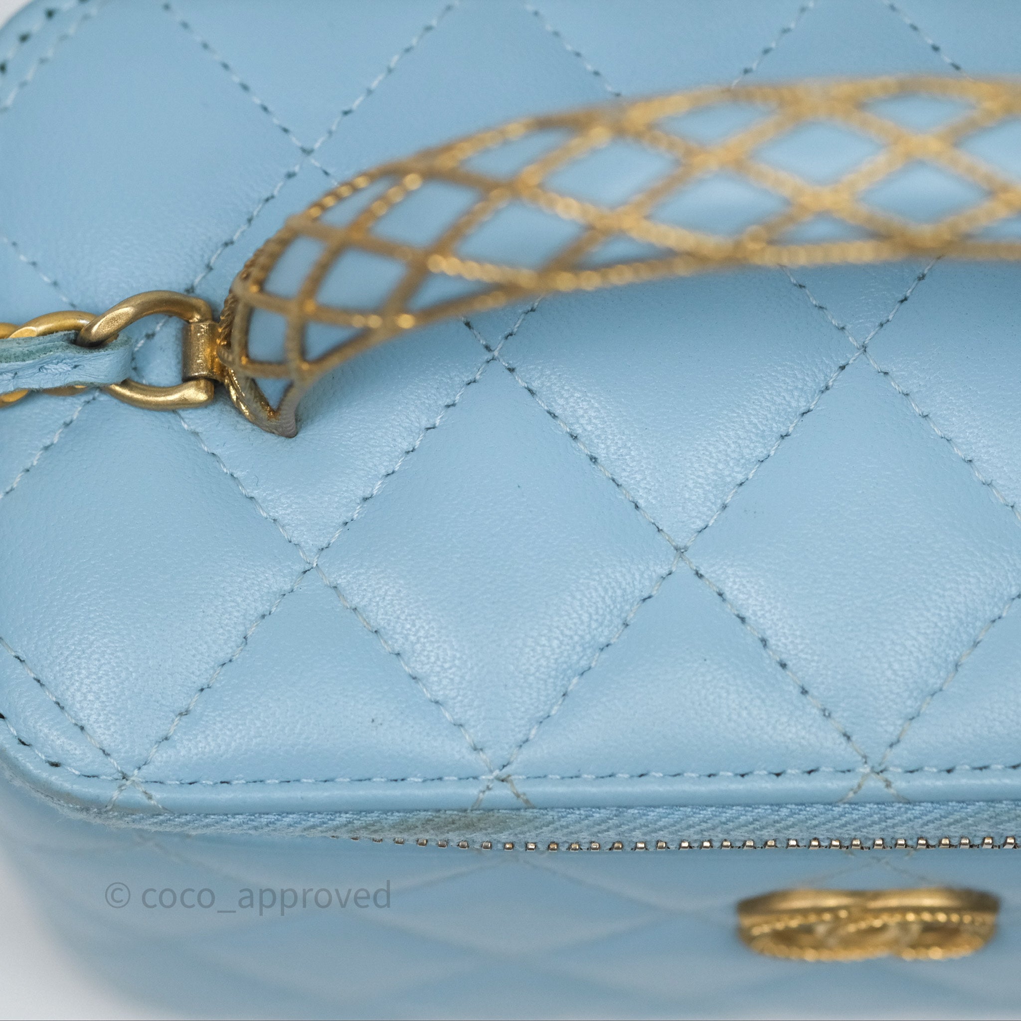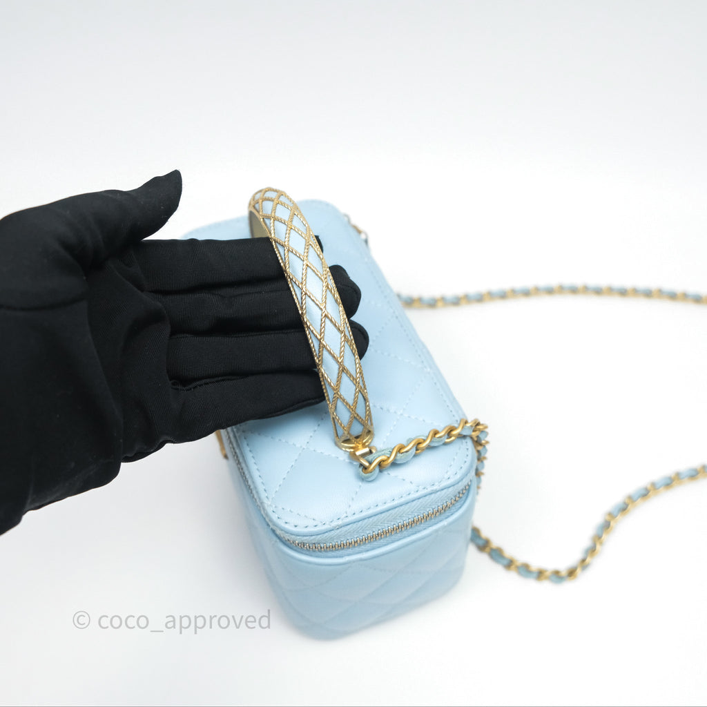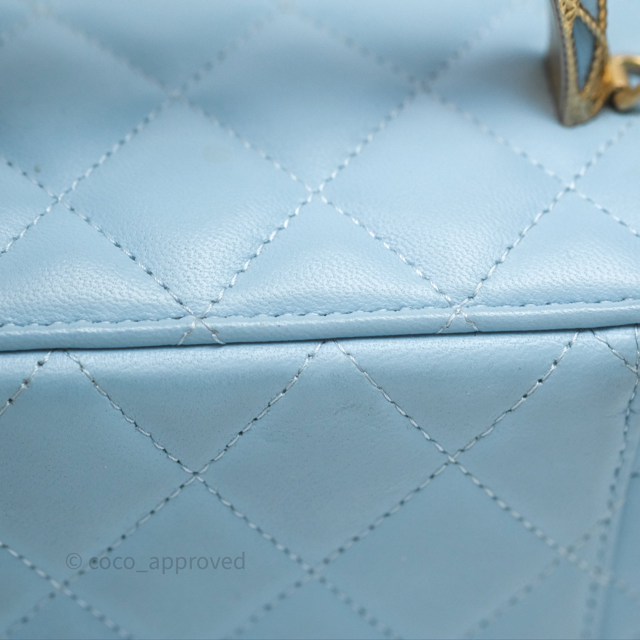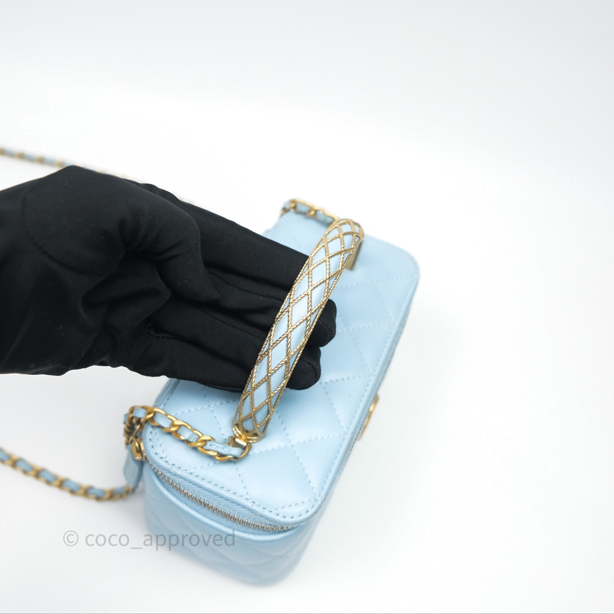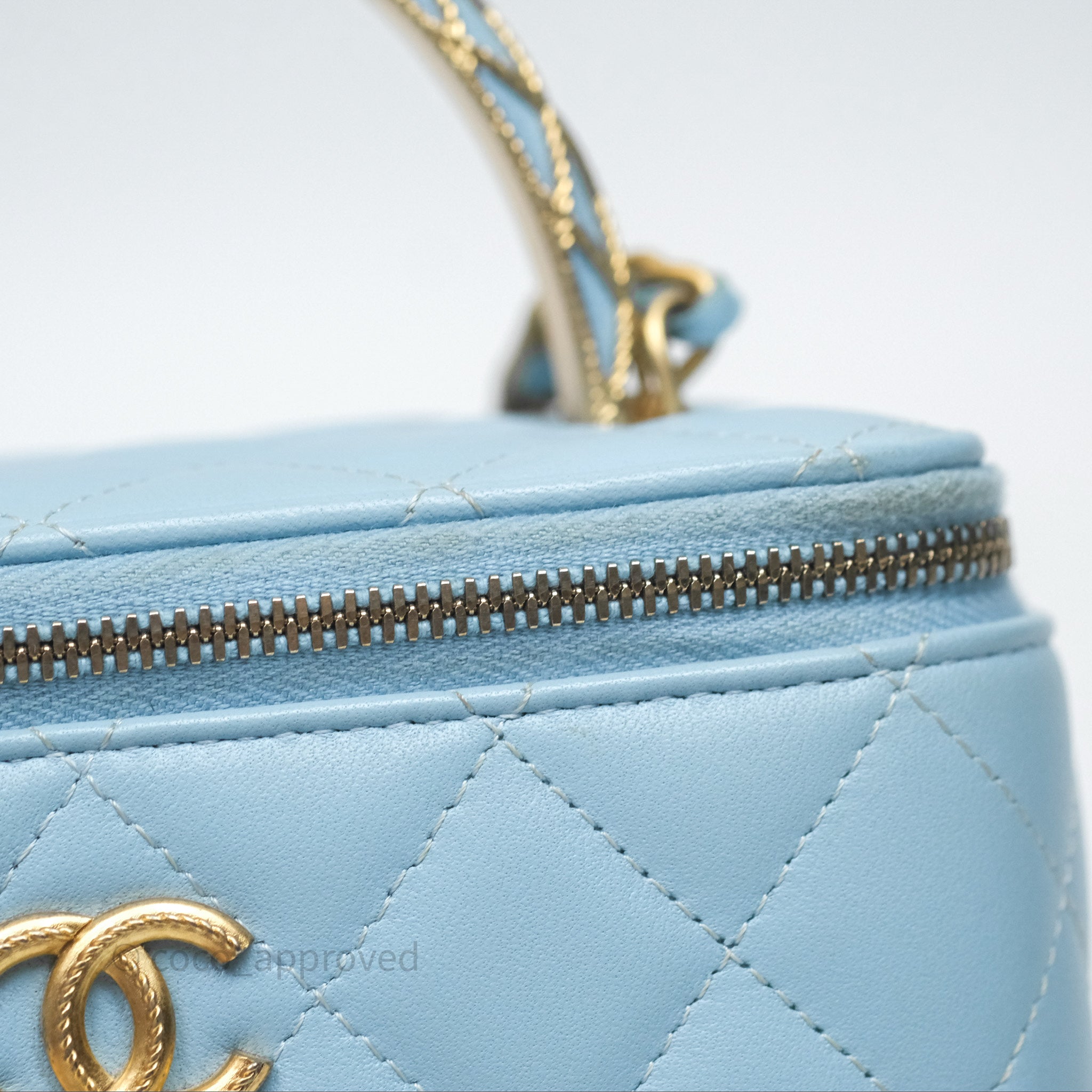 Chanel Vanity Rectangular Top Handle Blue Lambskin Gold Hardware