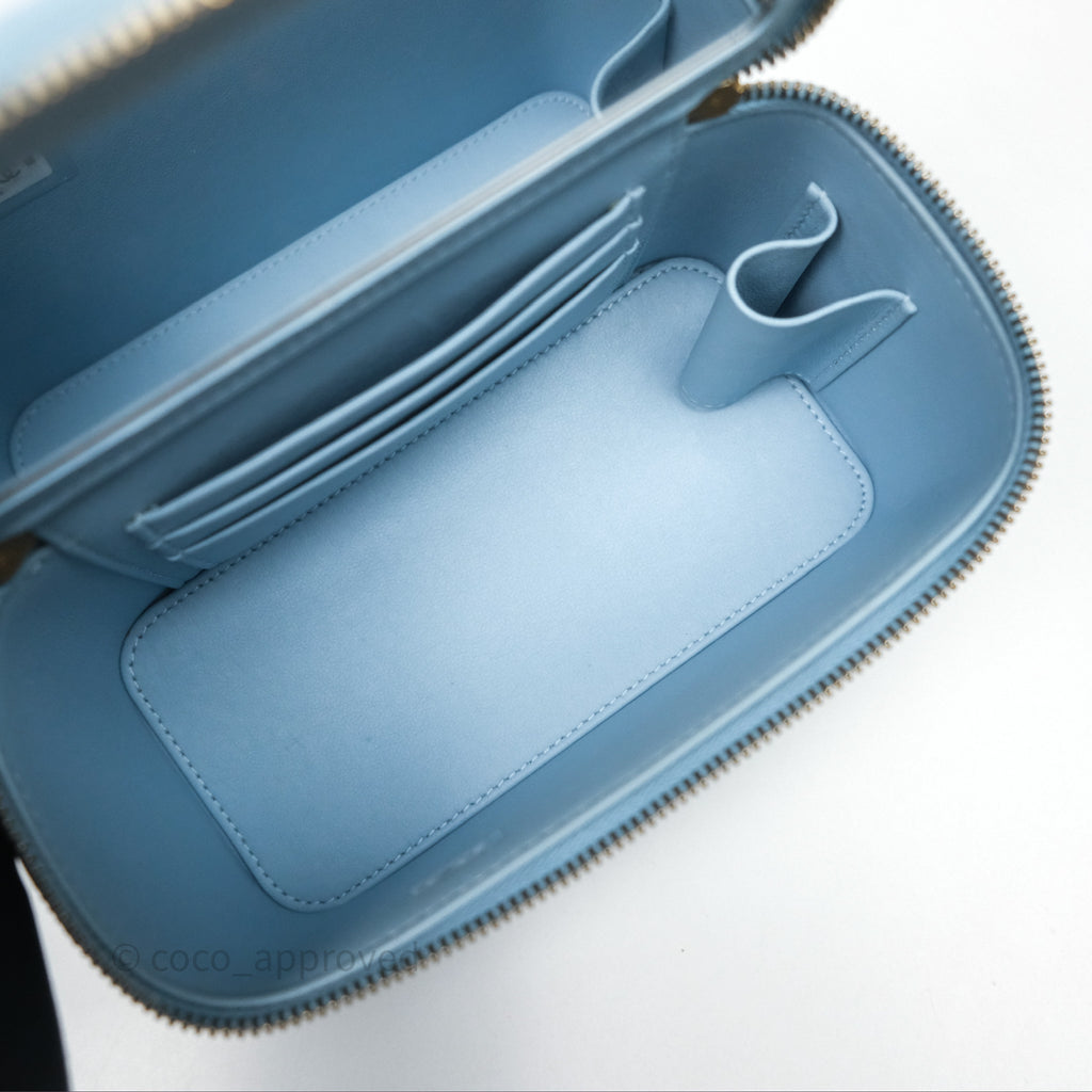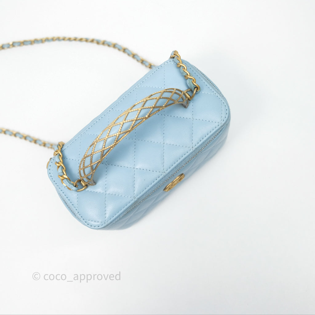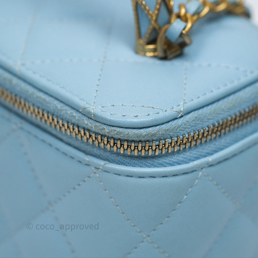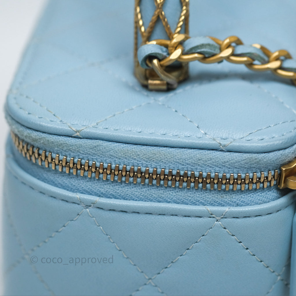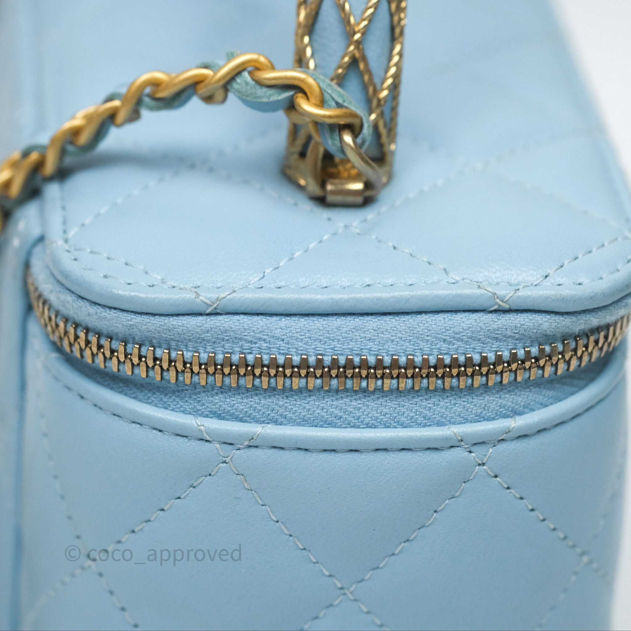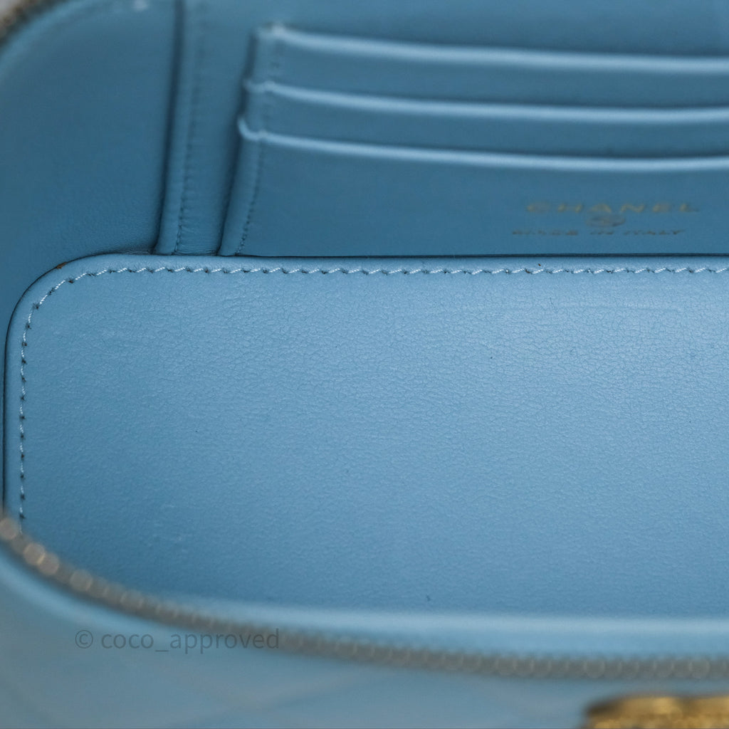 Chanel Vanity Rectangular Top Handle Blue Lambskin Gold Hardware