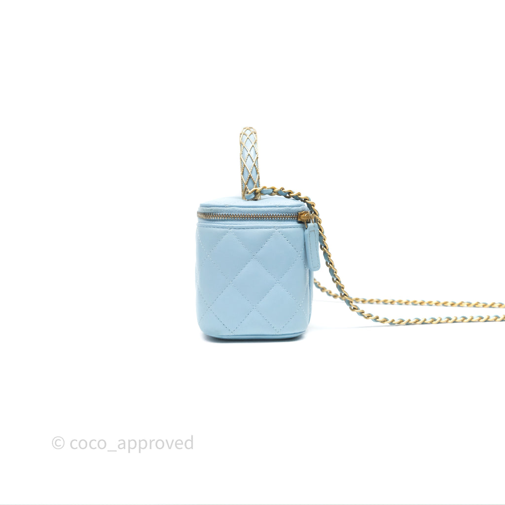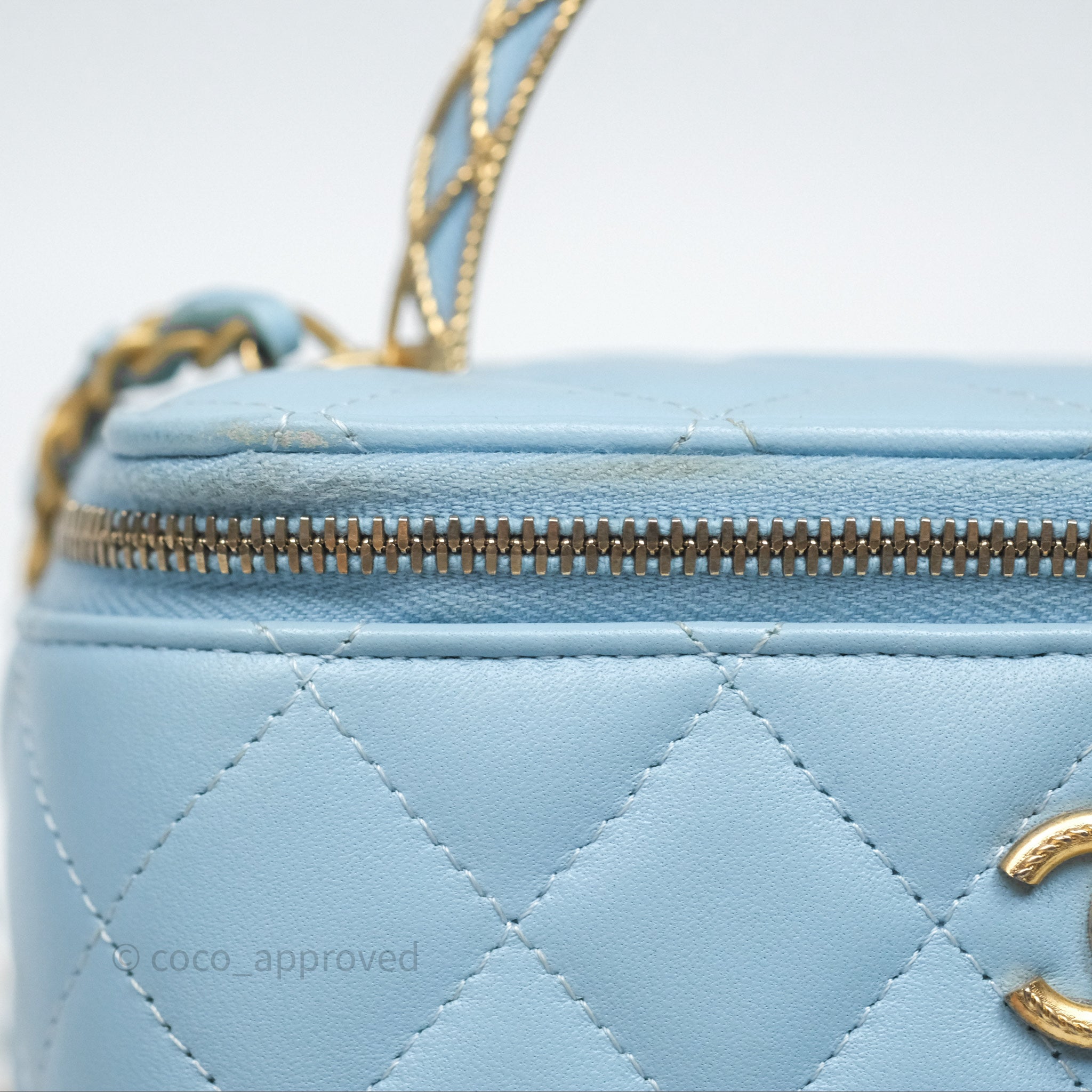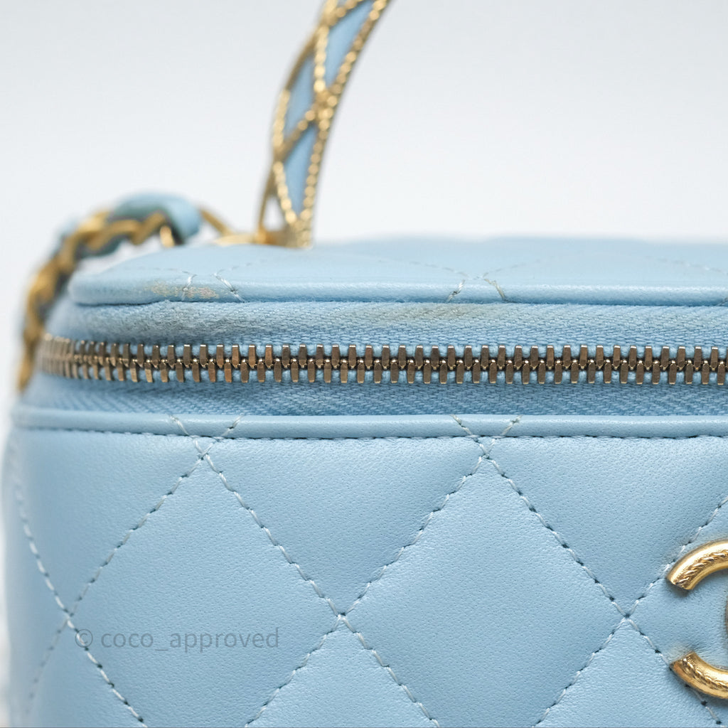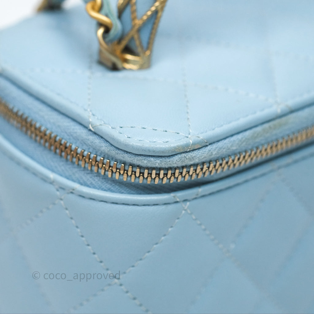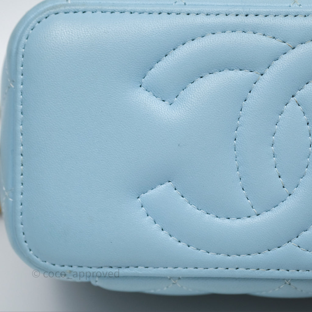 Chanel Vanity Rectangular Top Handle Blue Lambskin Gold Hardware