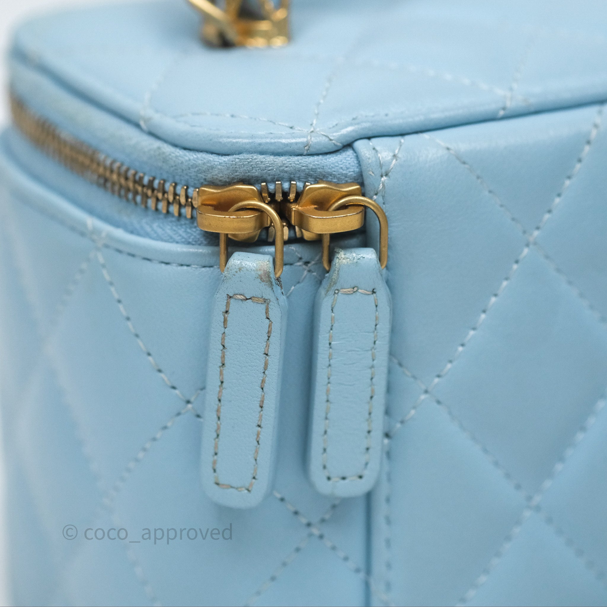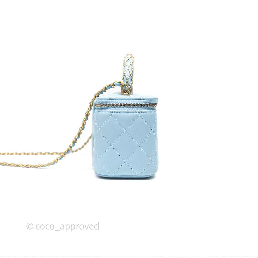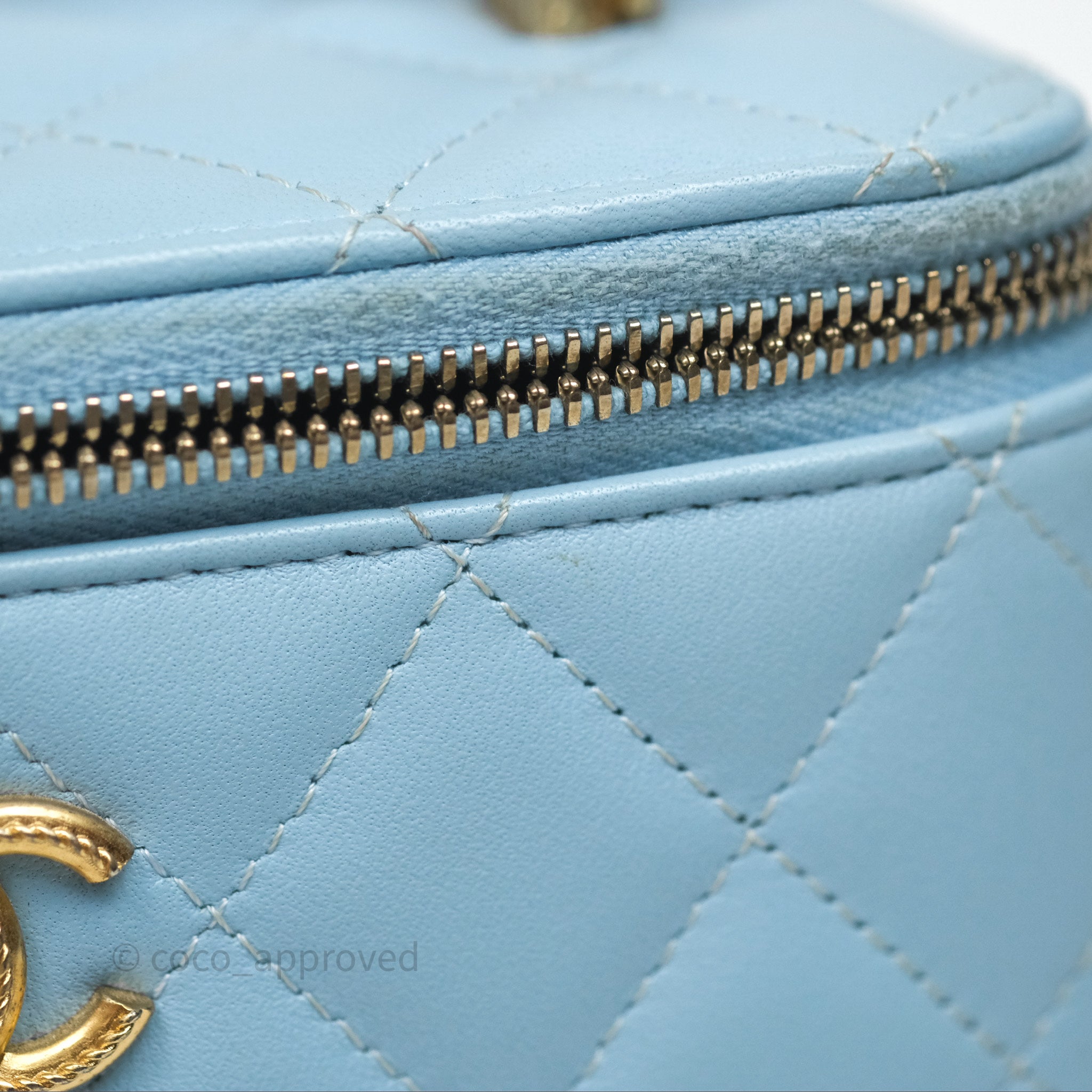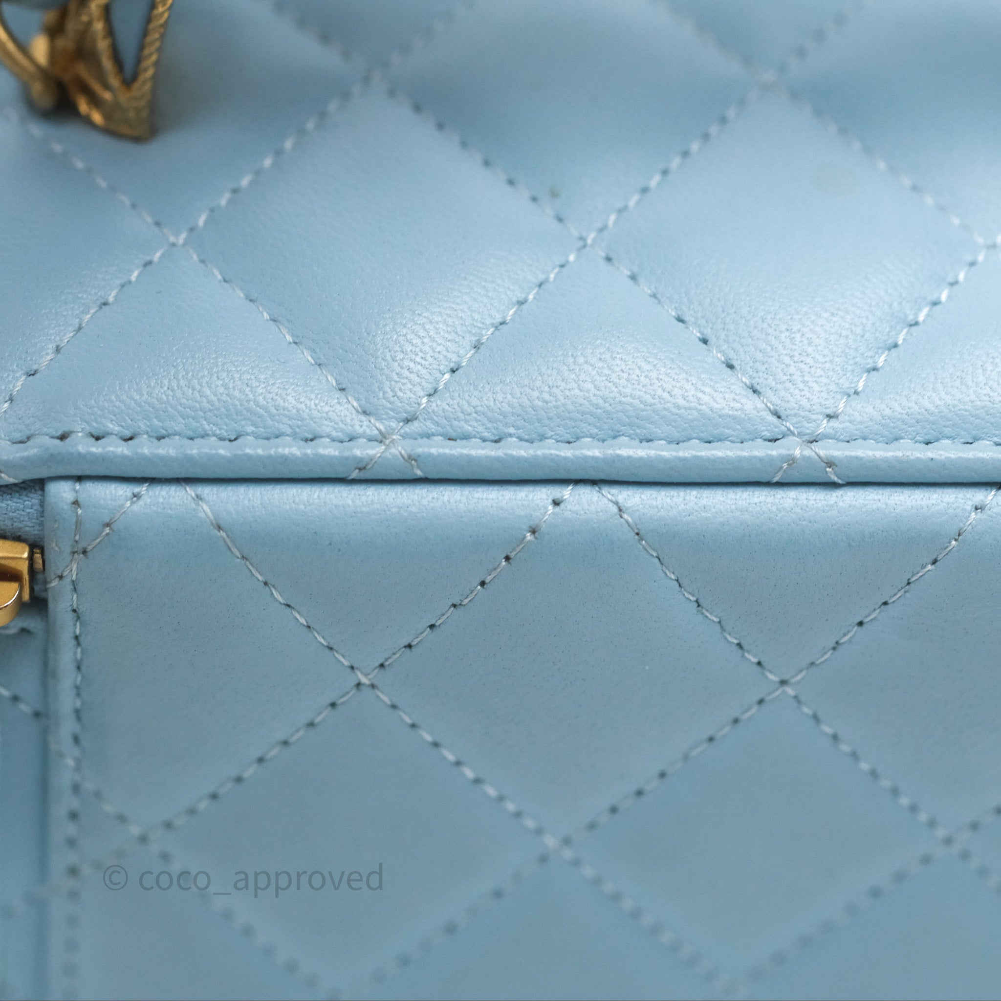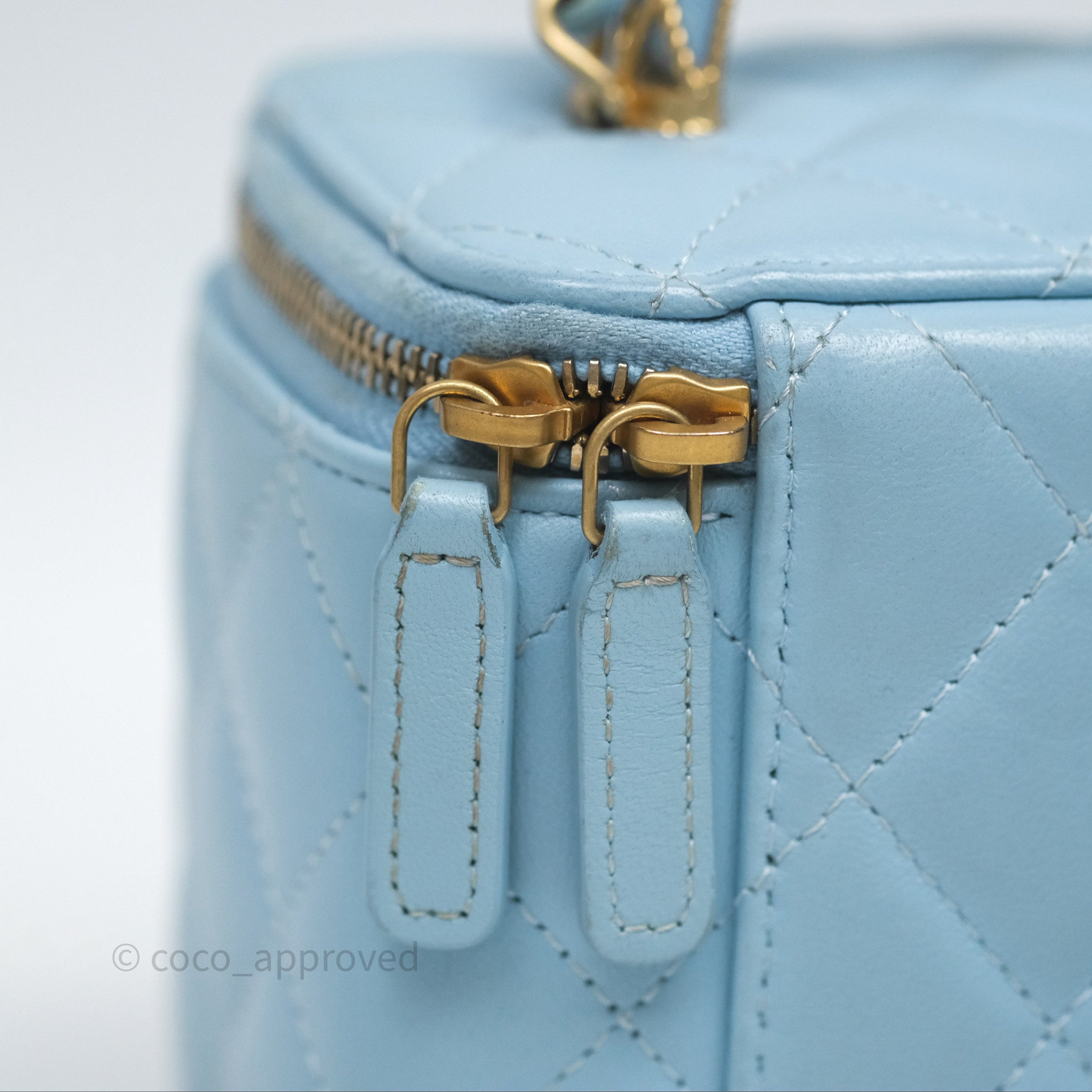 Chanel Vanity Rectangular Top Handle Blue Lambskin Gold Hardware