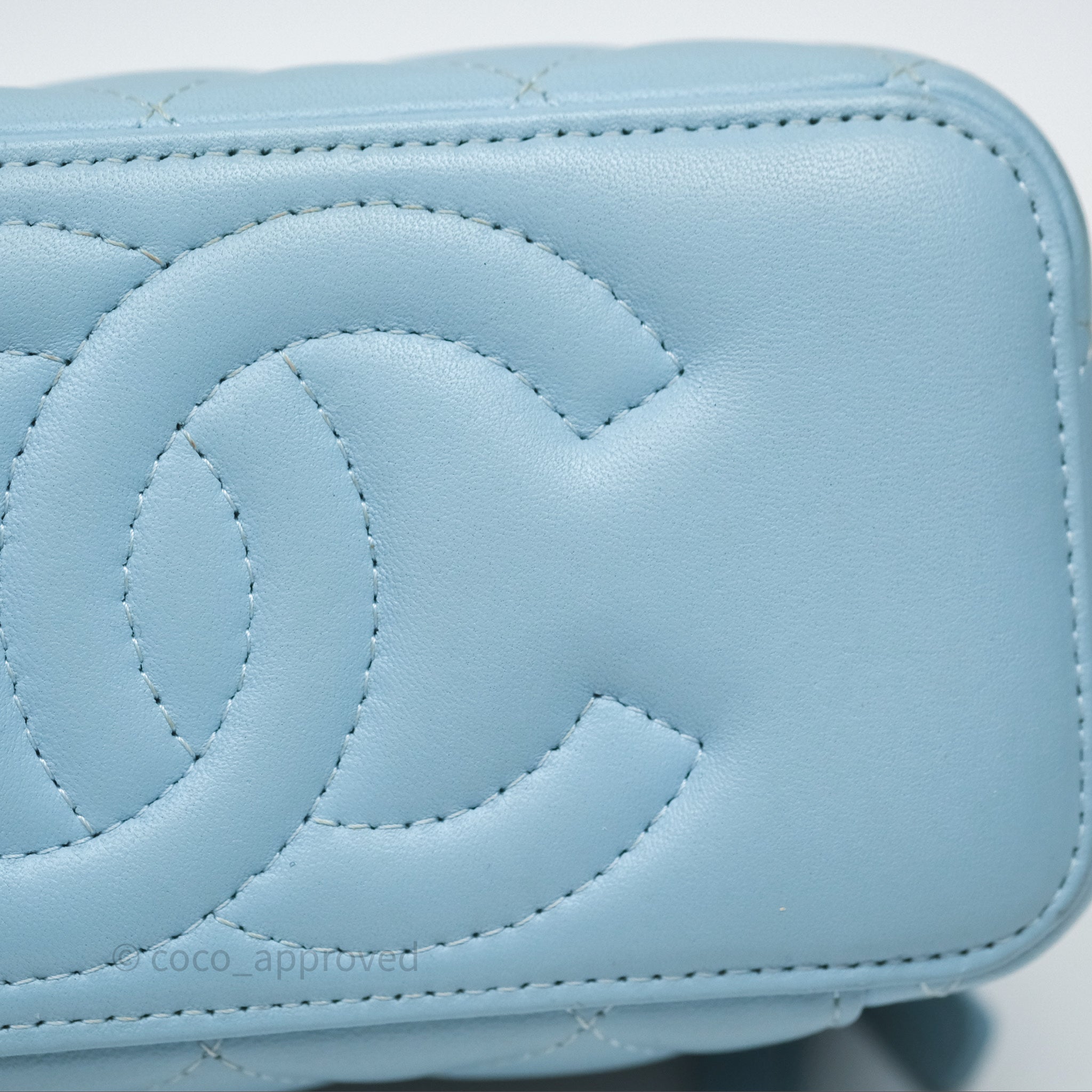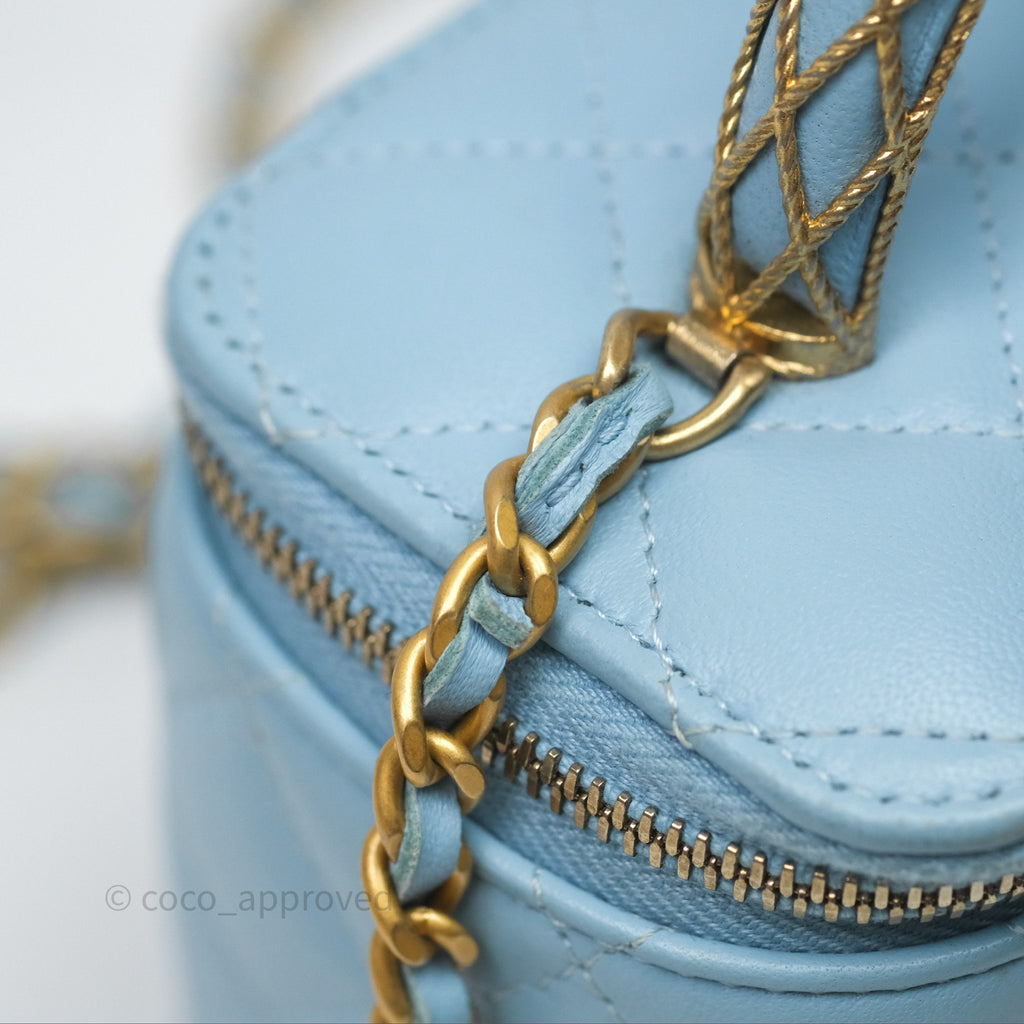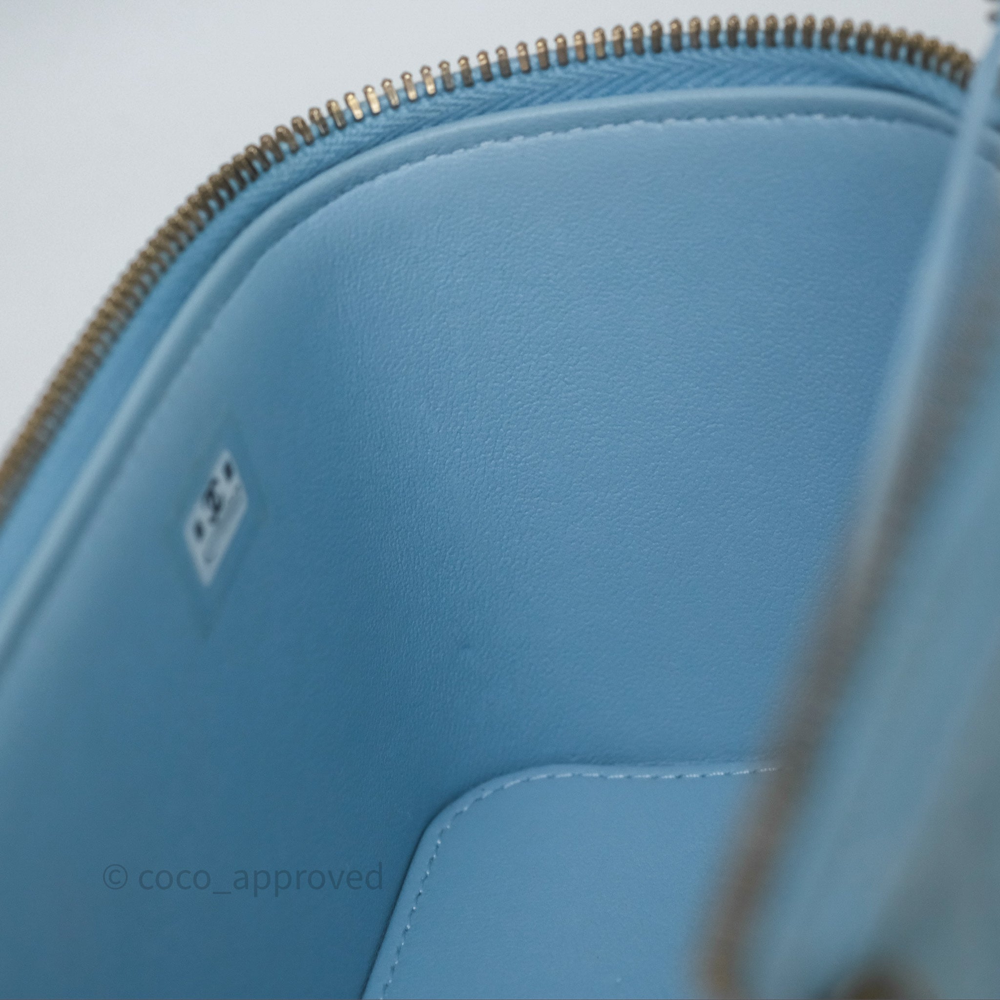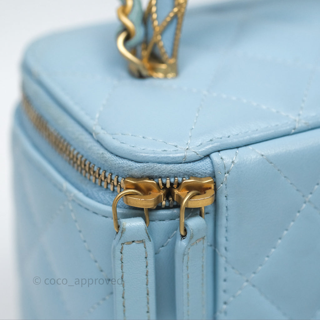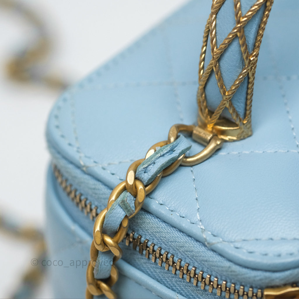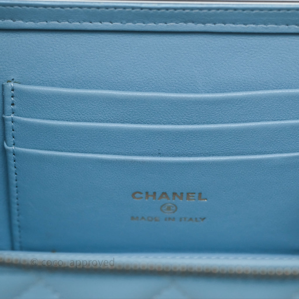 Chanel Vanity Rectangular Top Handle Blue Lambskin Gold Hardware