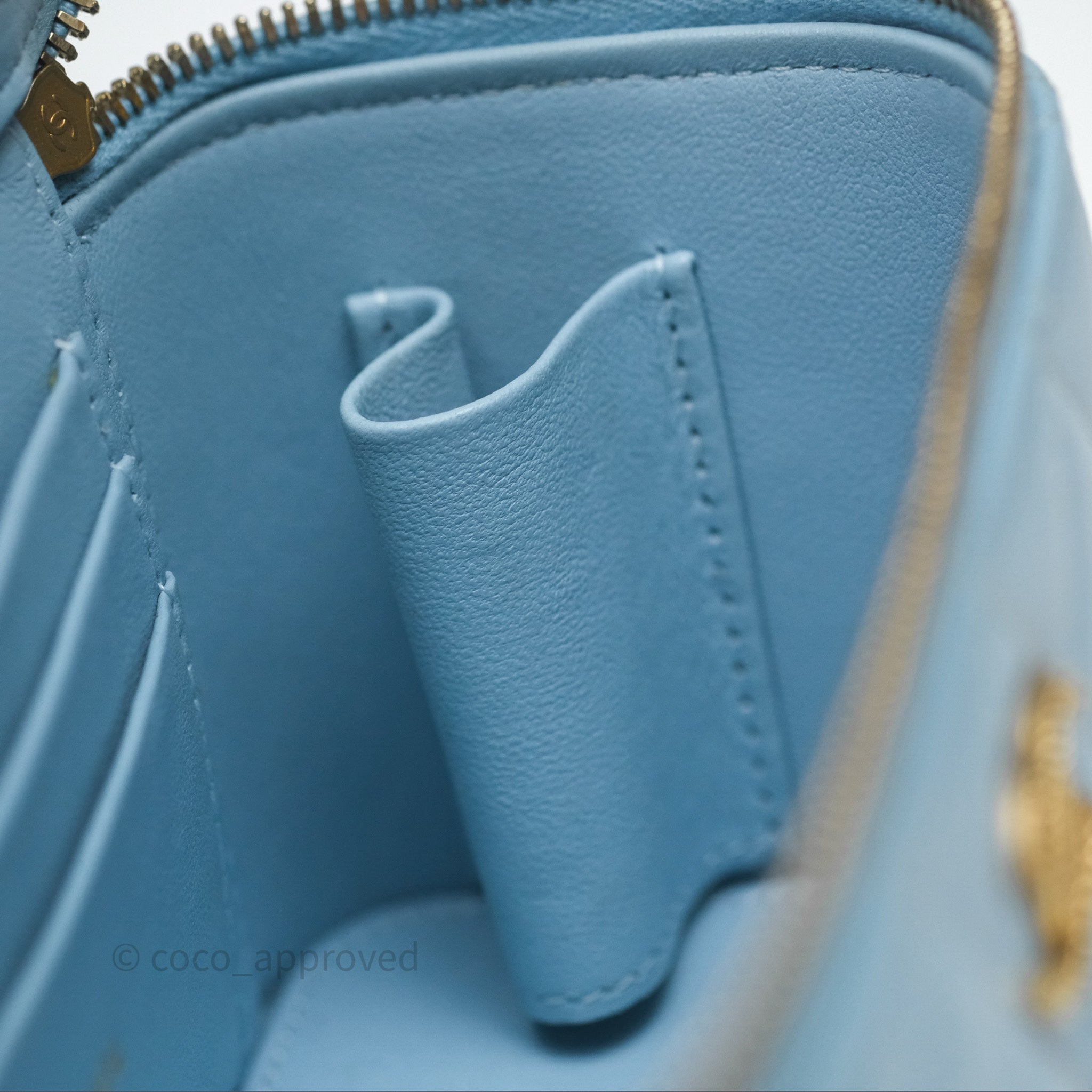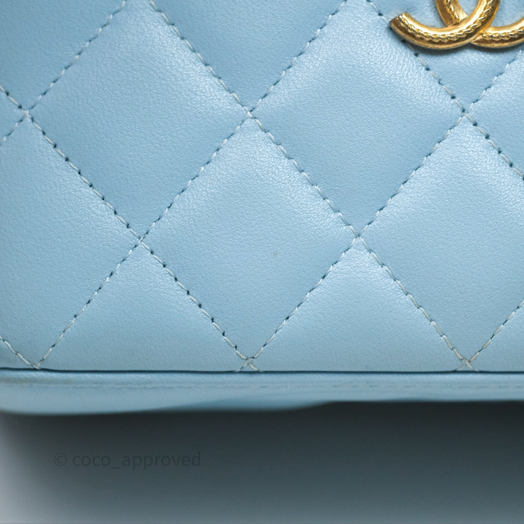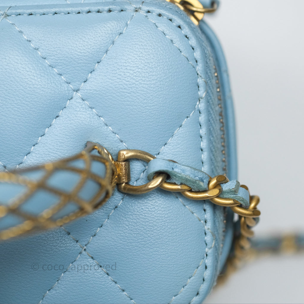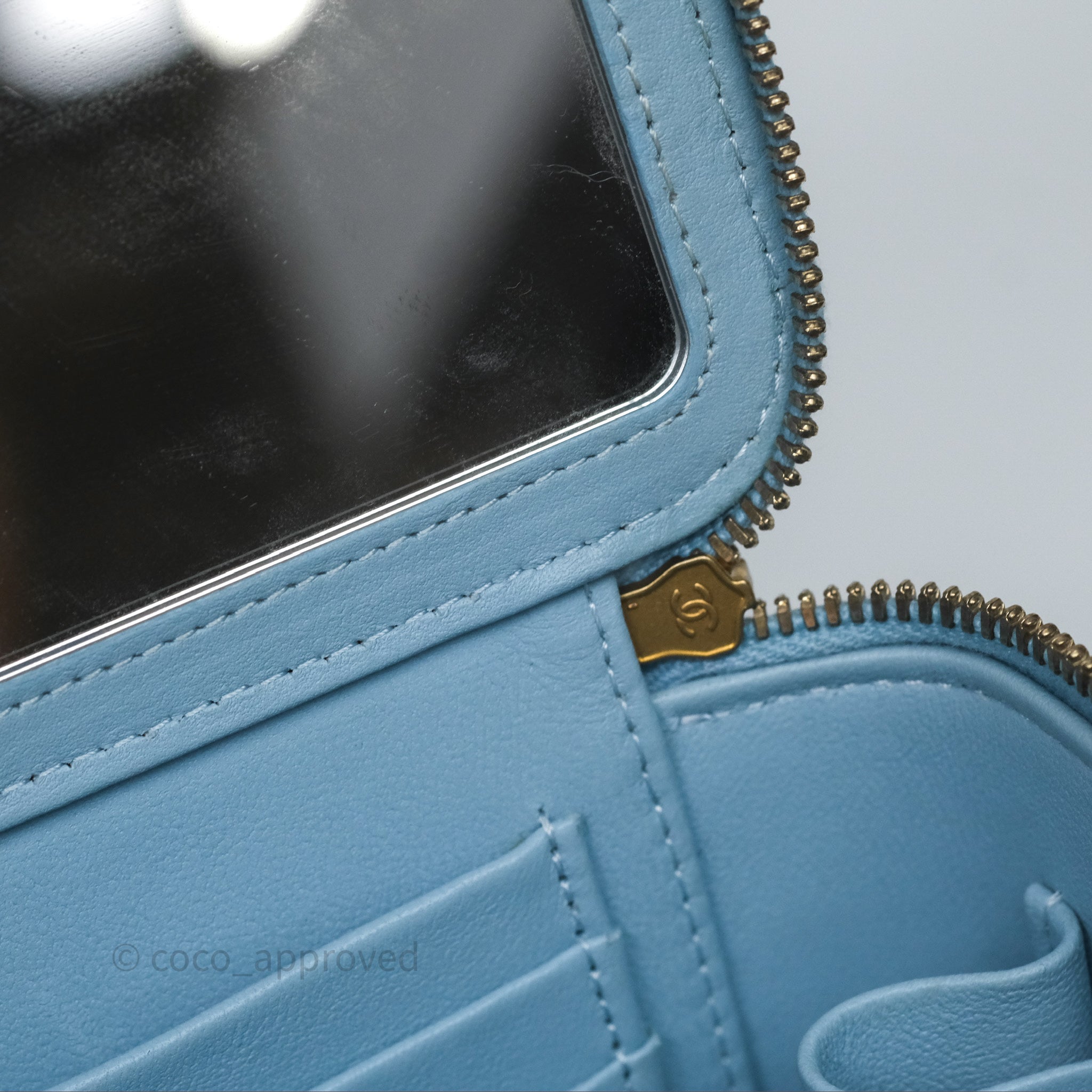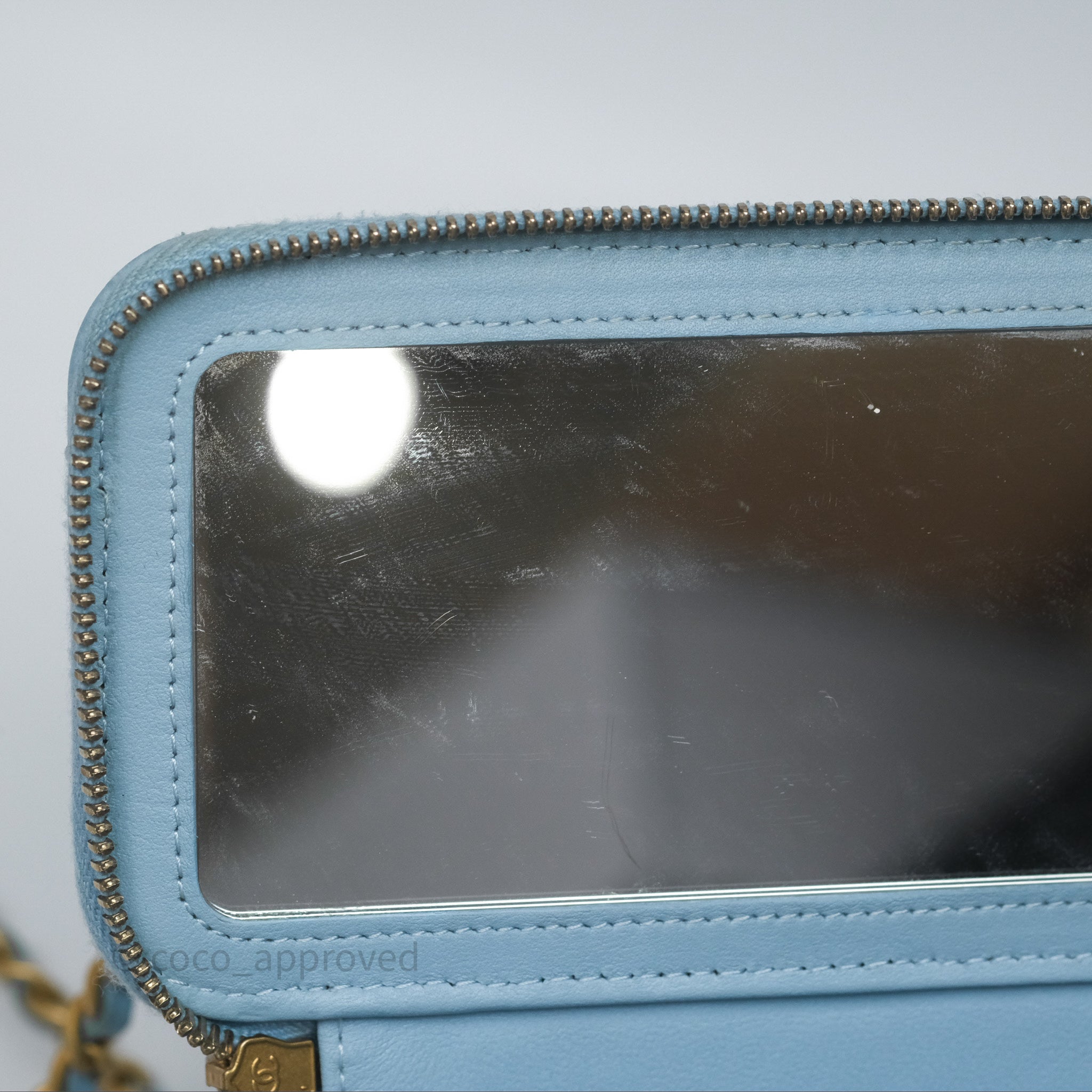 Chanel Vanity Rectangular Top Handle Blue Lambskin Gold Hardware