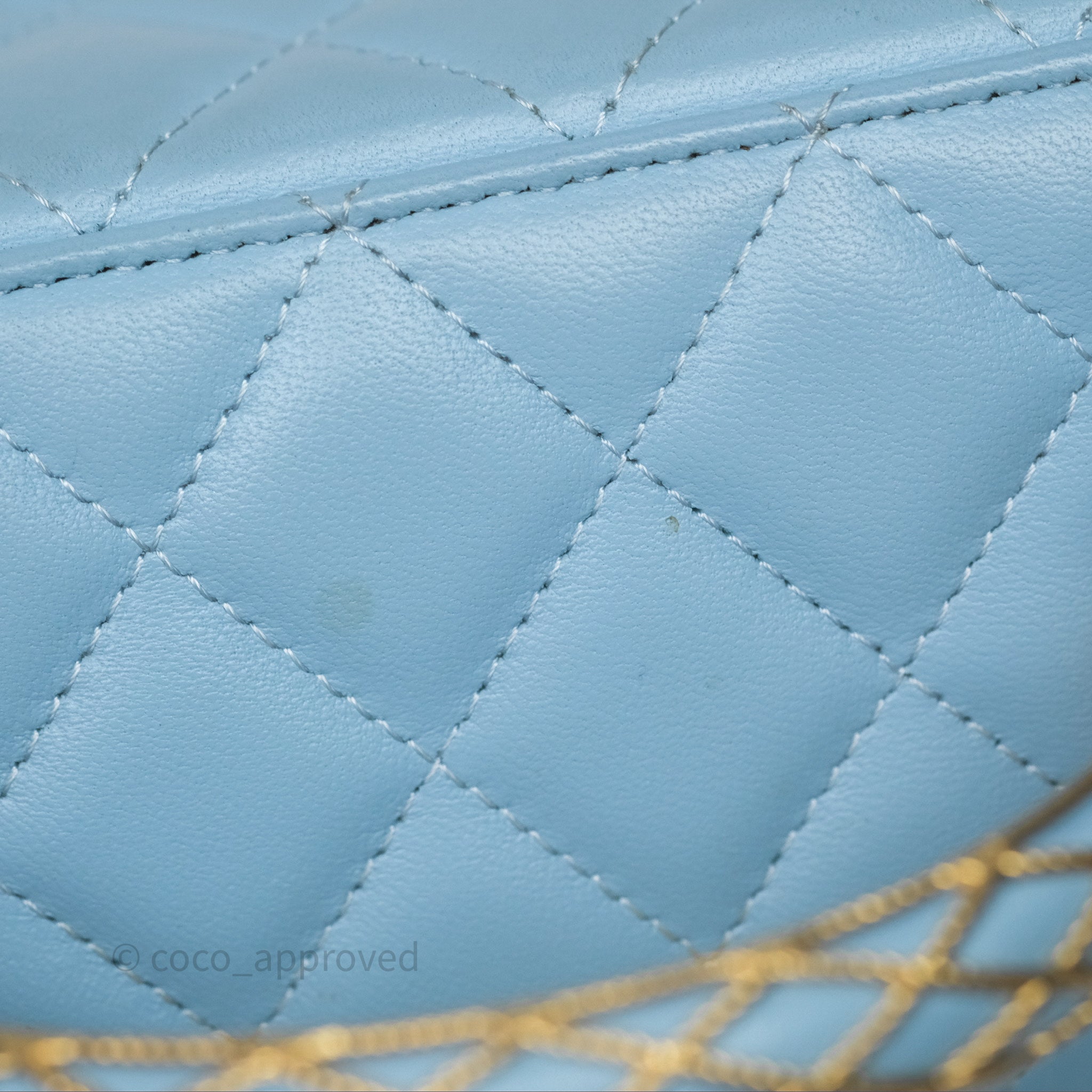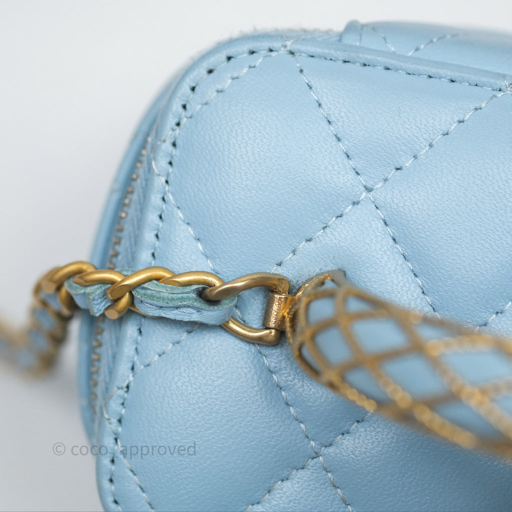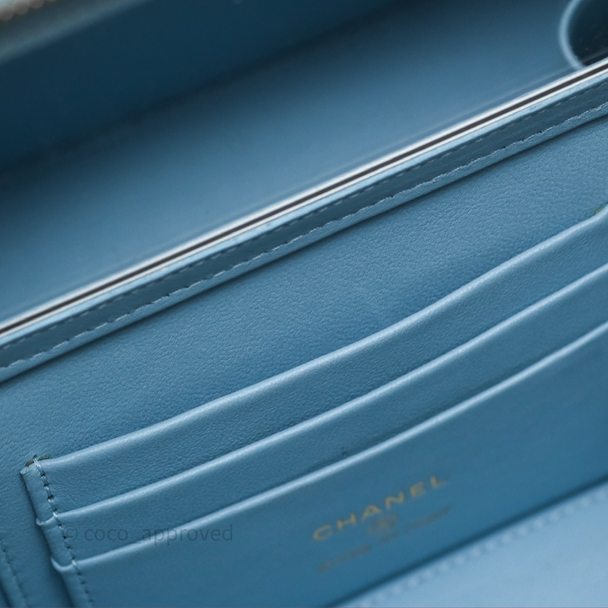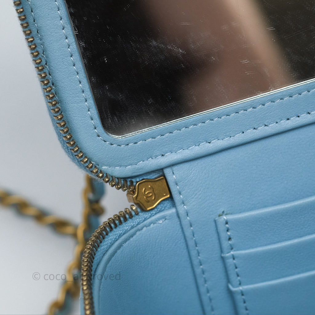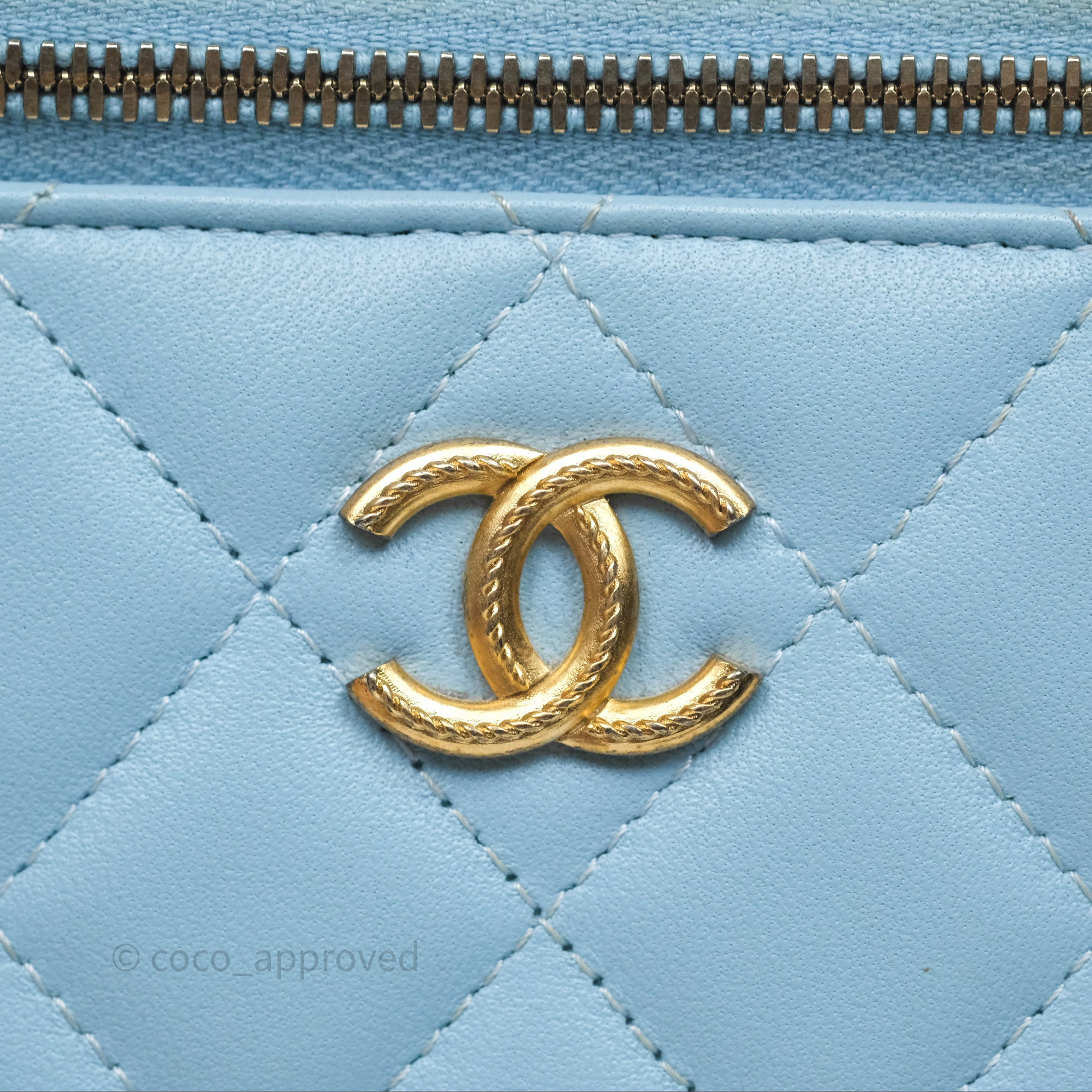 Chanel Vanity Rectangular Top Handle Blue Lambskin Gold Hardware