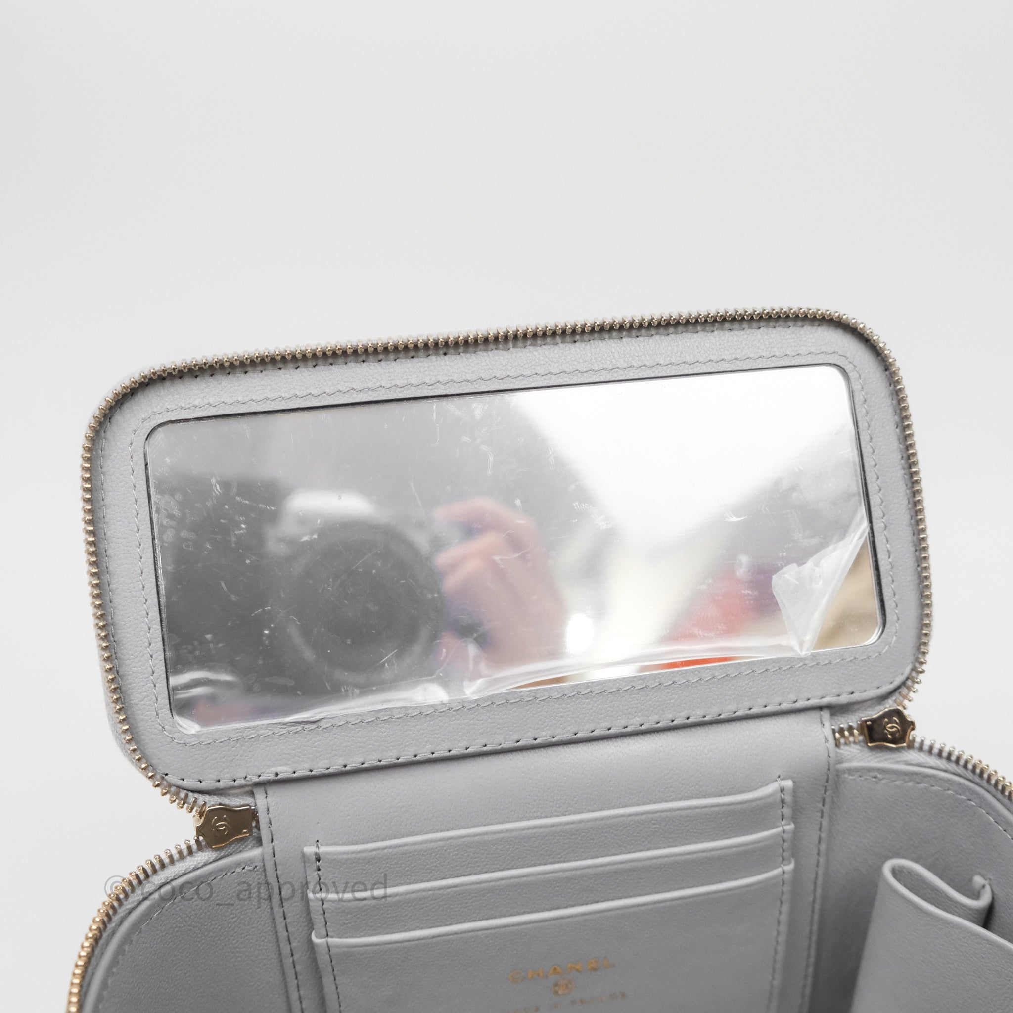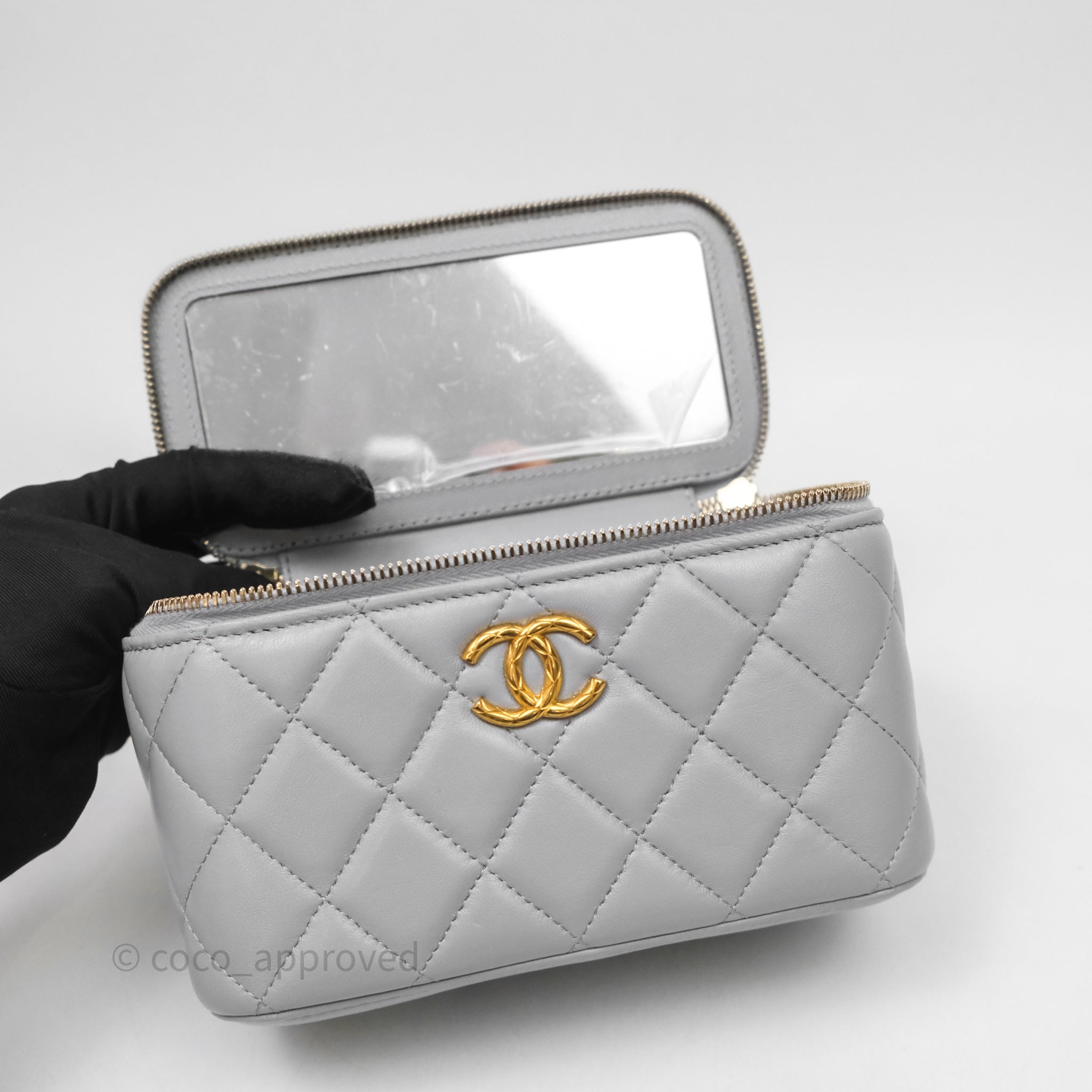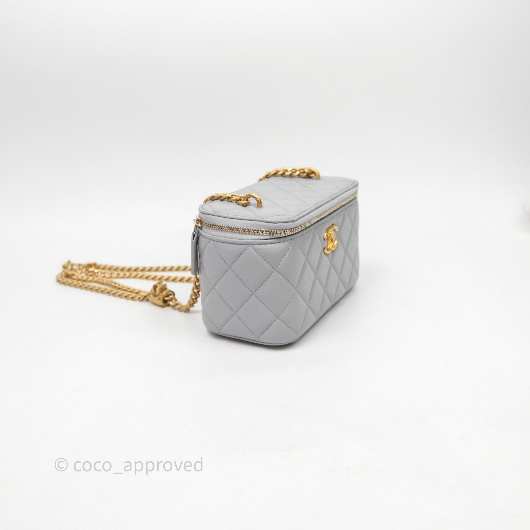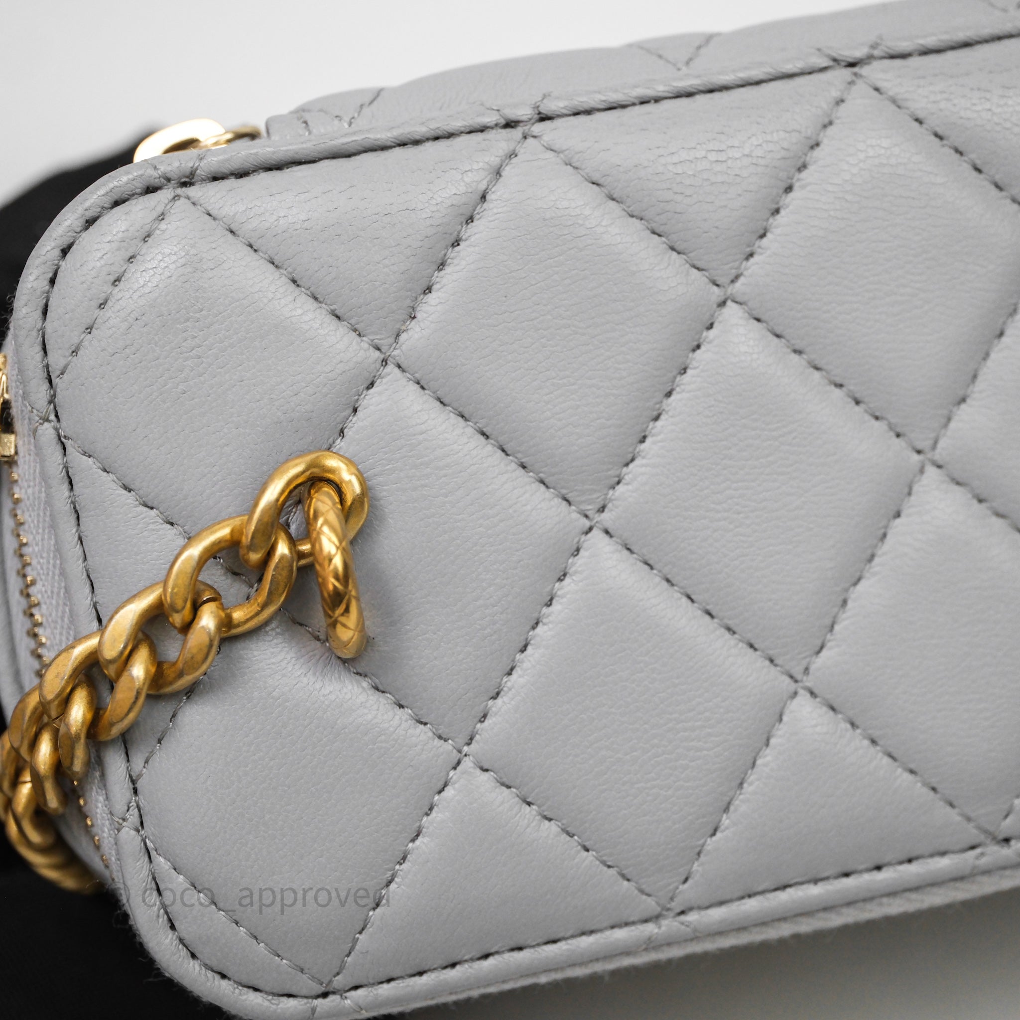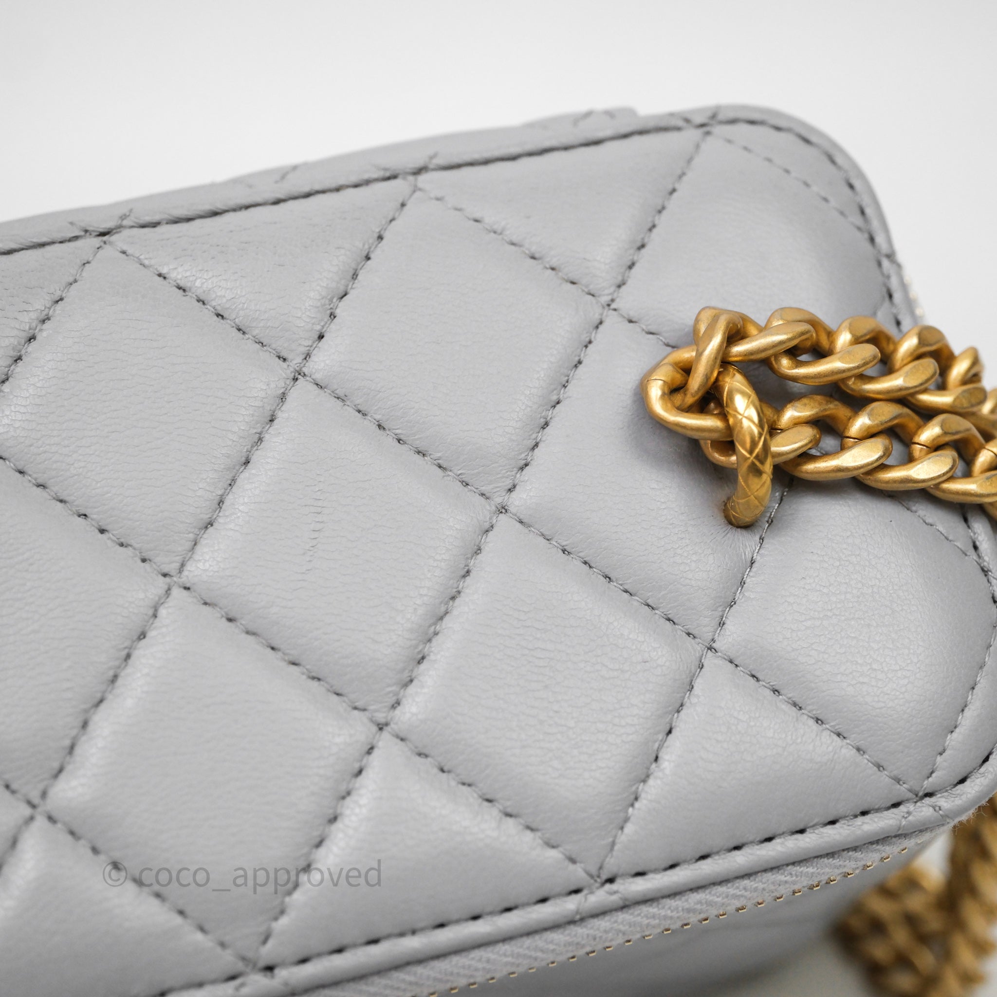 Chanel Vanity with Adjustable Chain Grey Lambskin Aged Gold Hardware