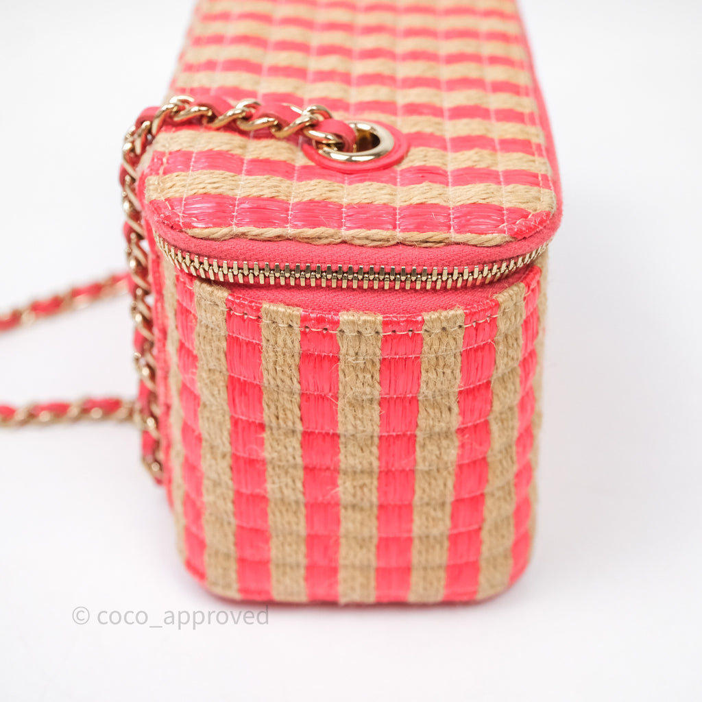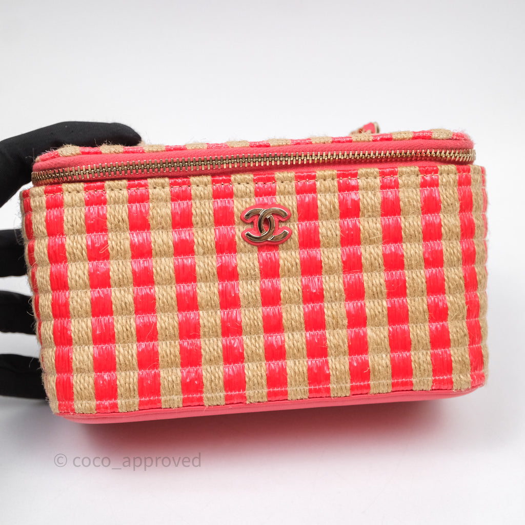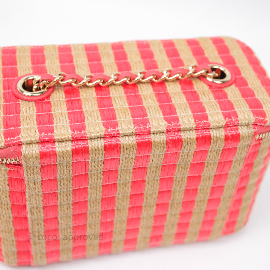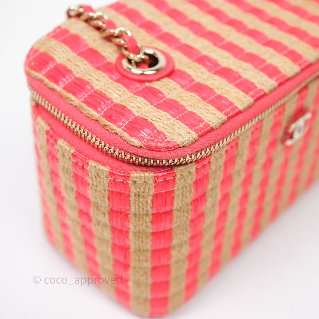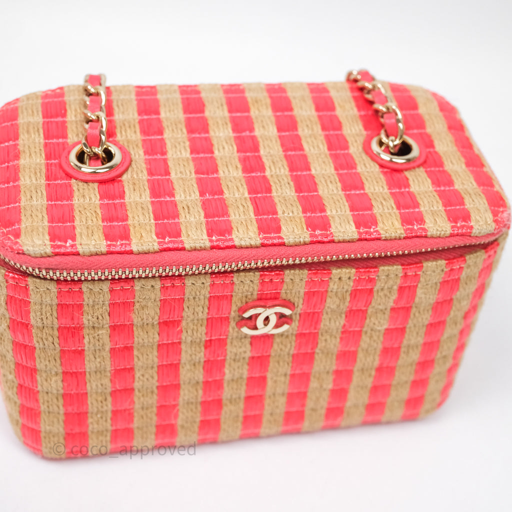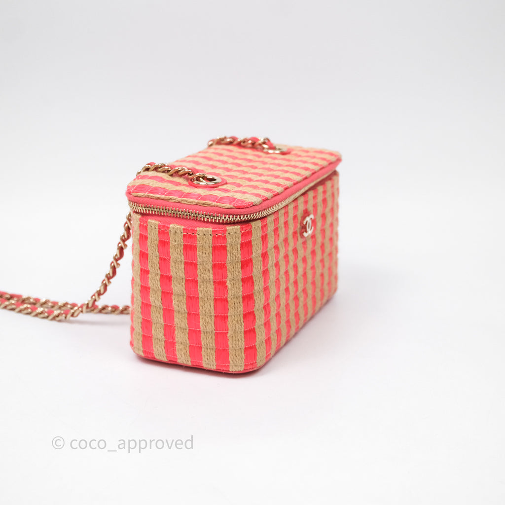 Chanel Vanity With Chain Striped Raffia Orange Gold Hardware