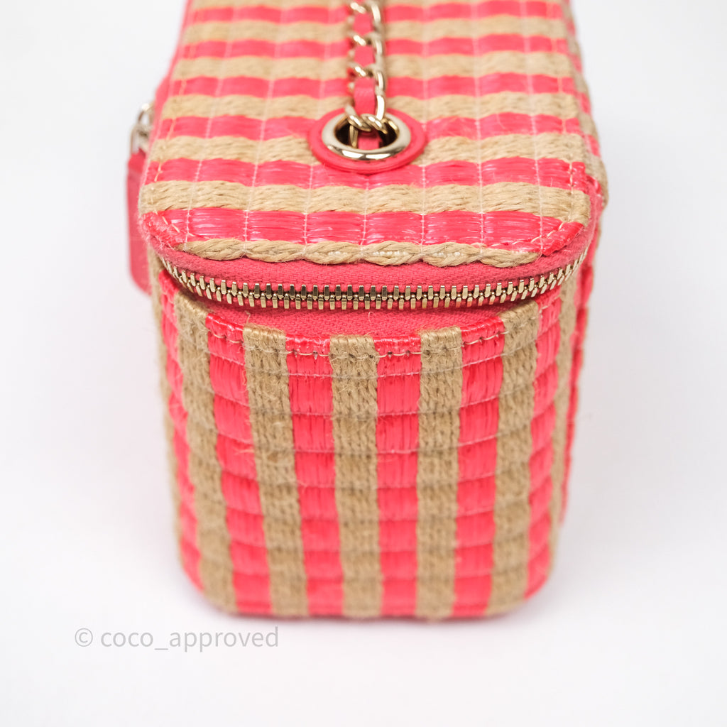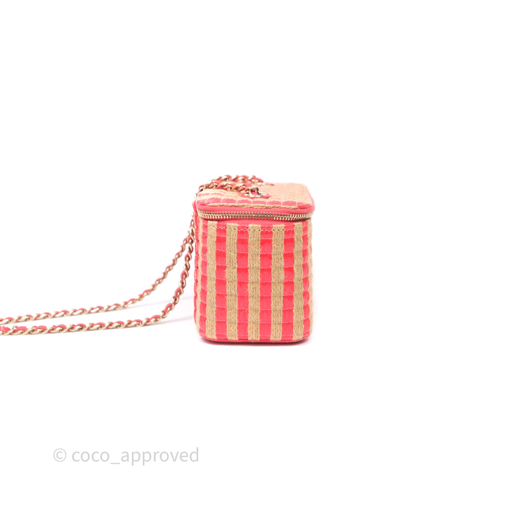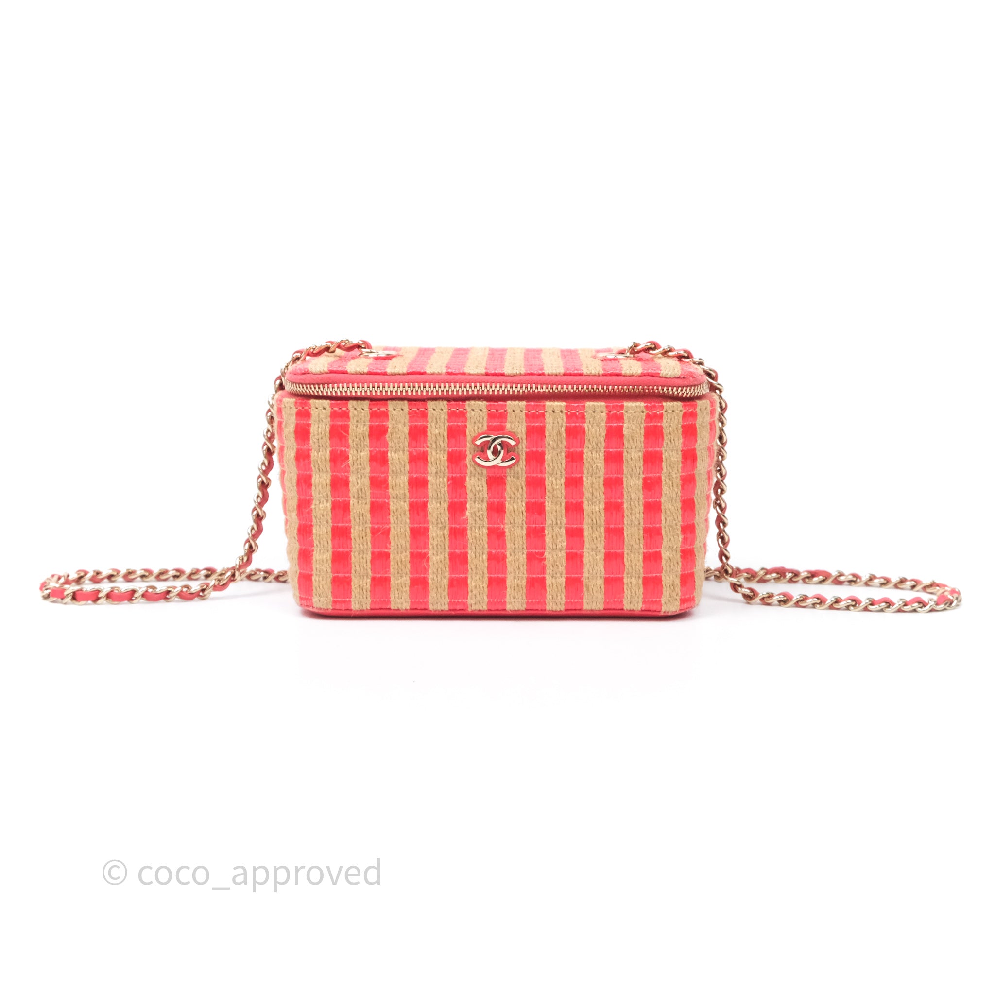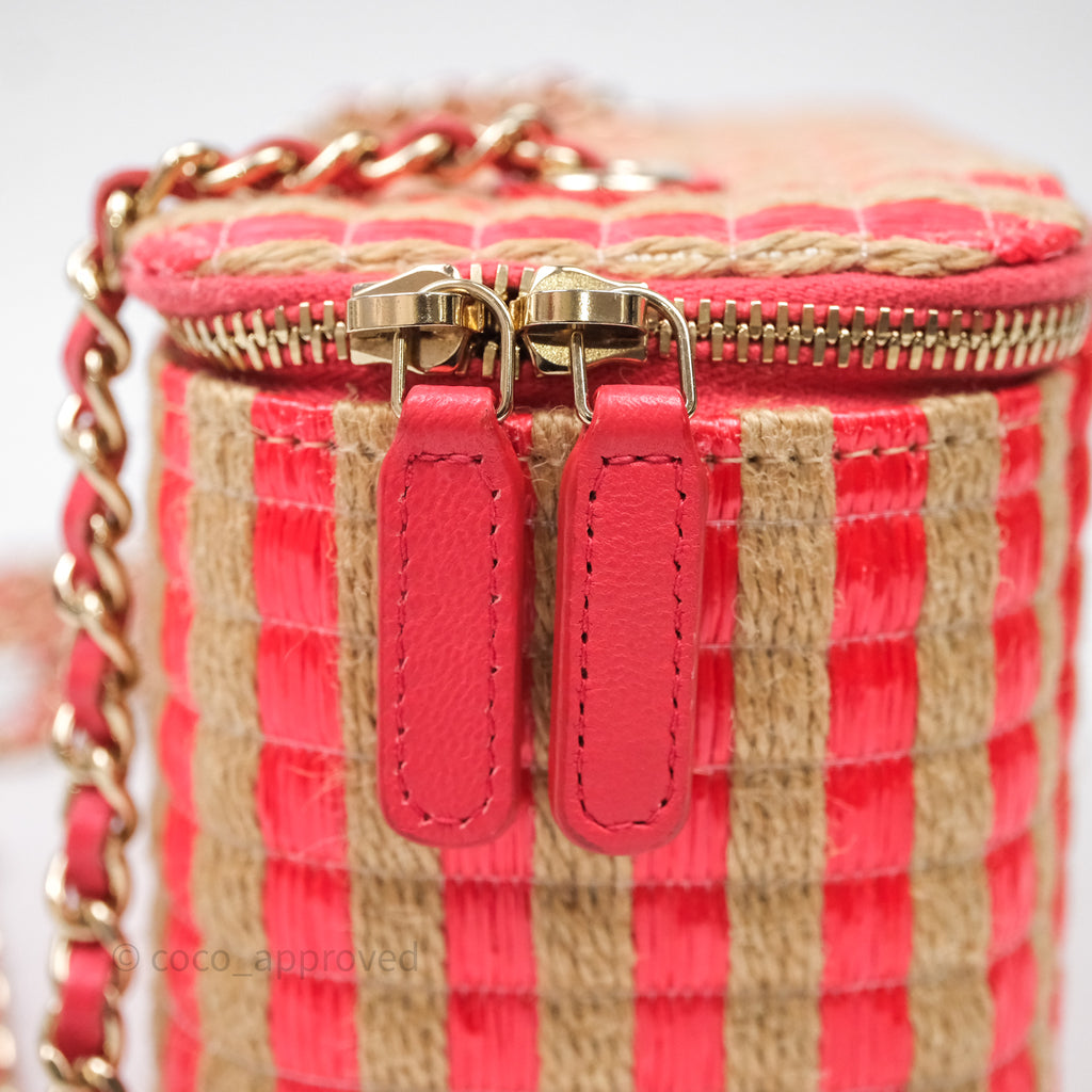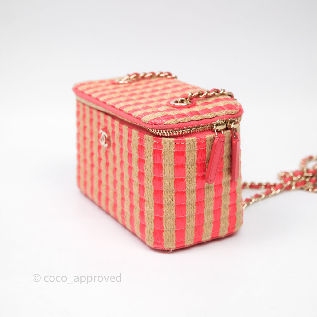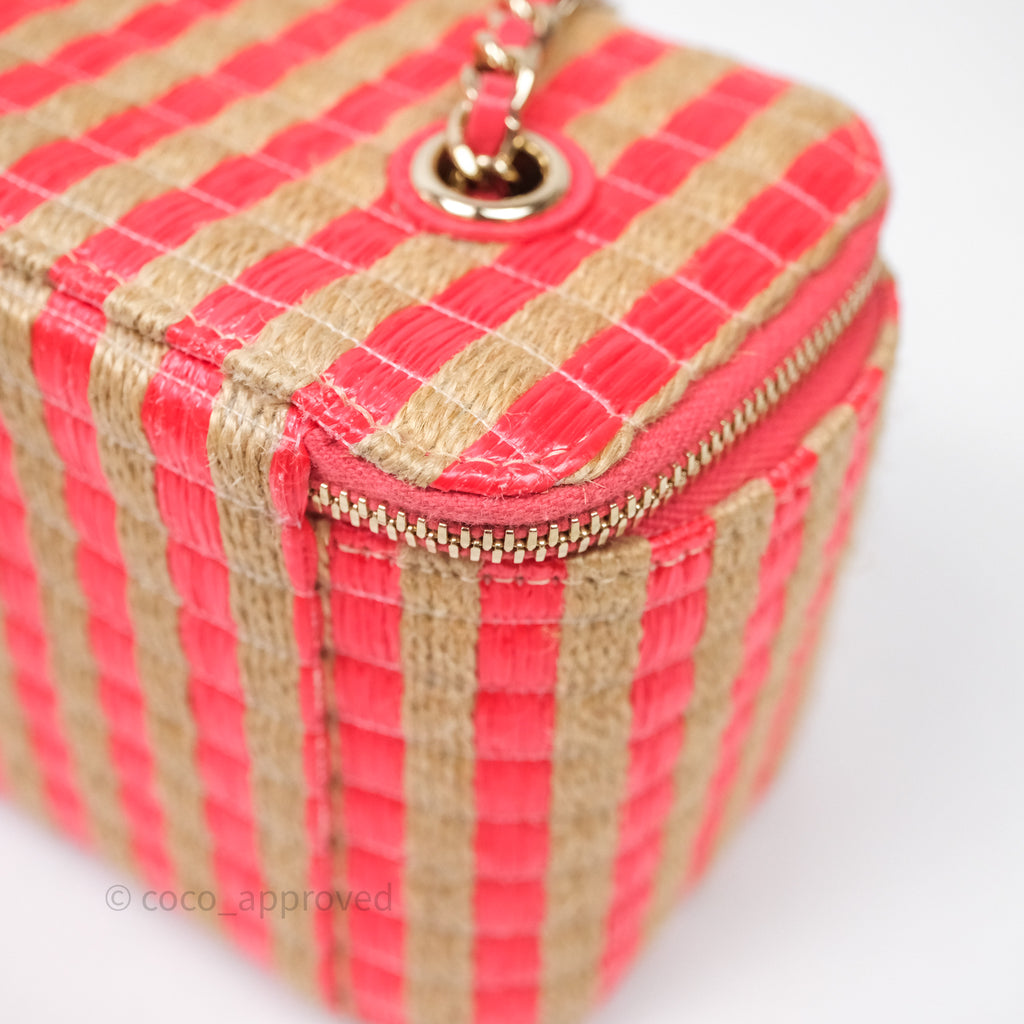 Chanel Vanity With Chain Striped Raffia Orange Gold Hardware