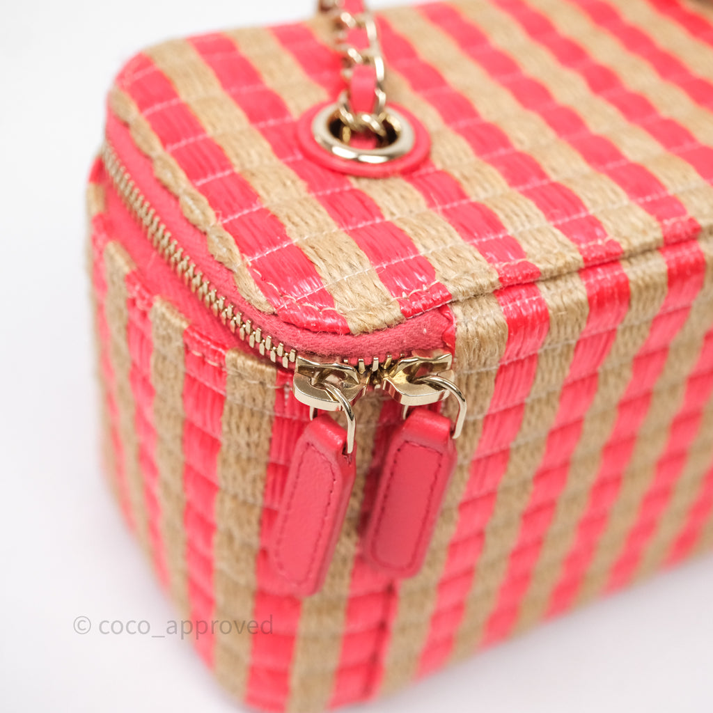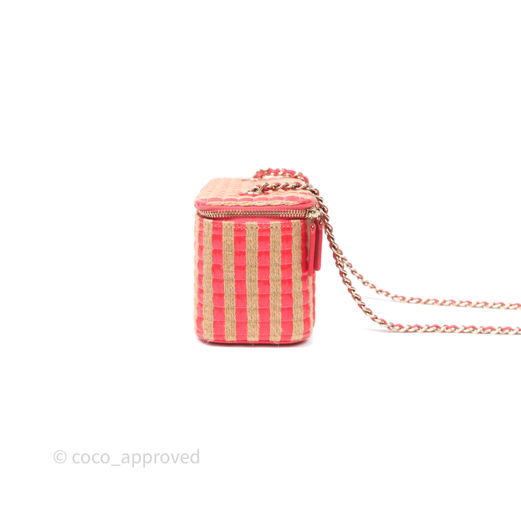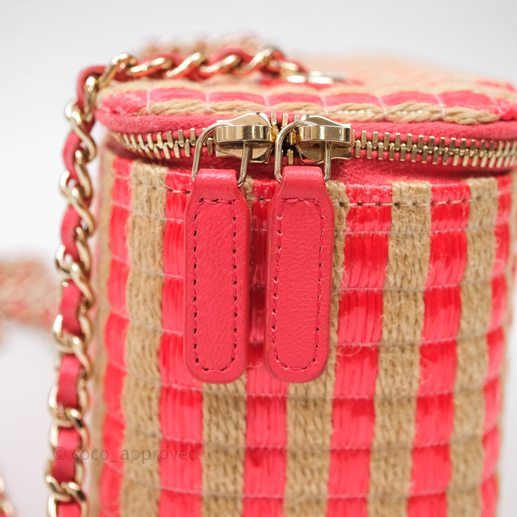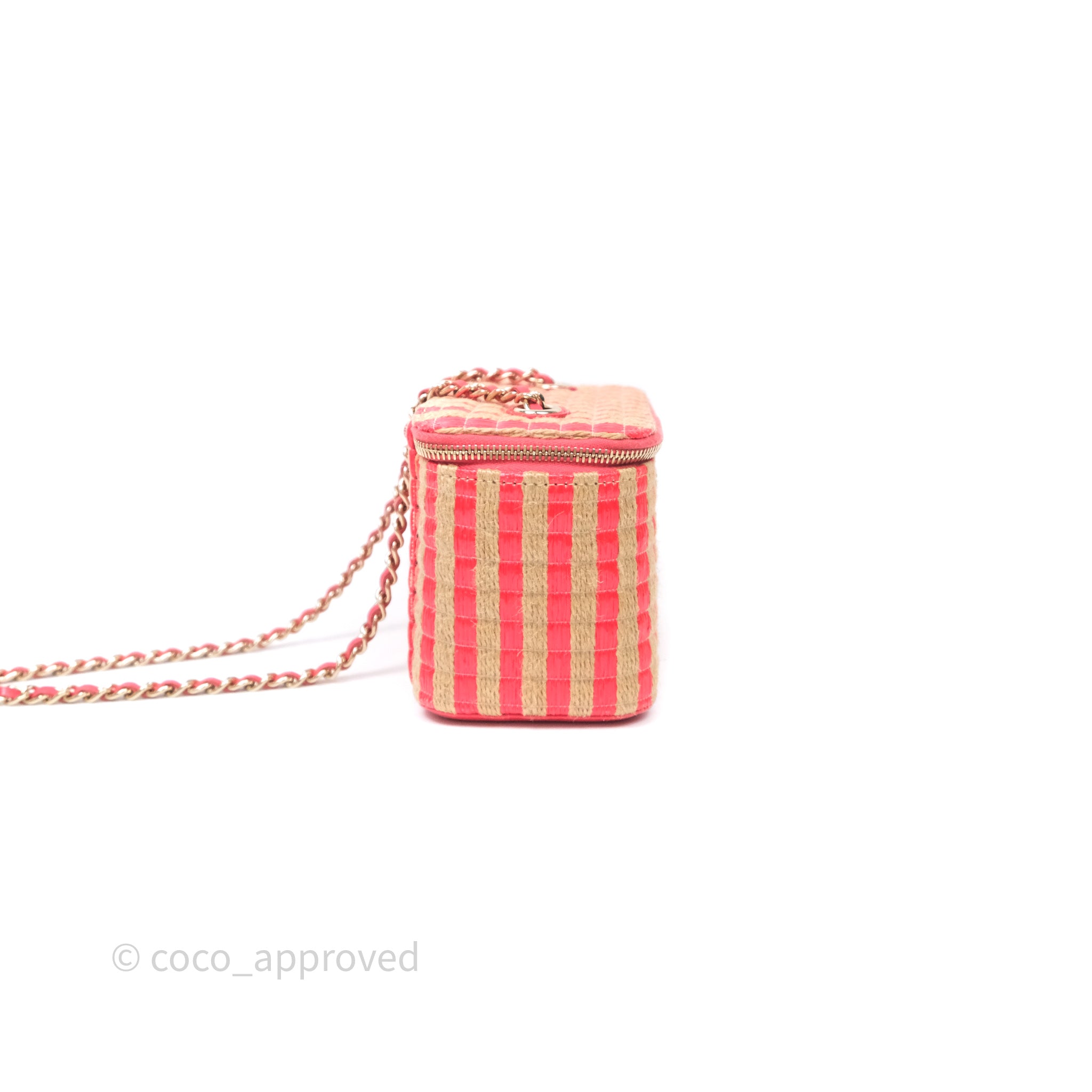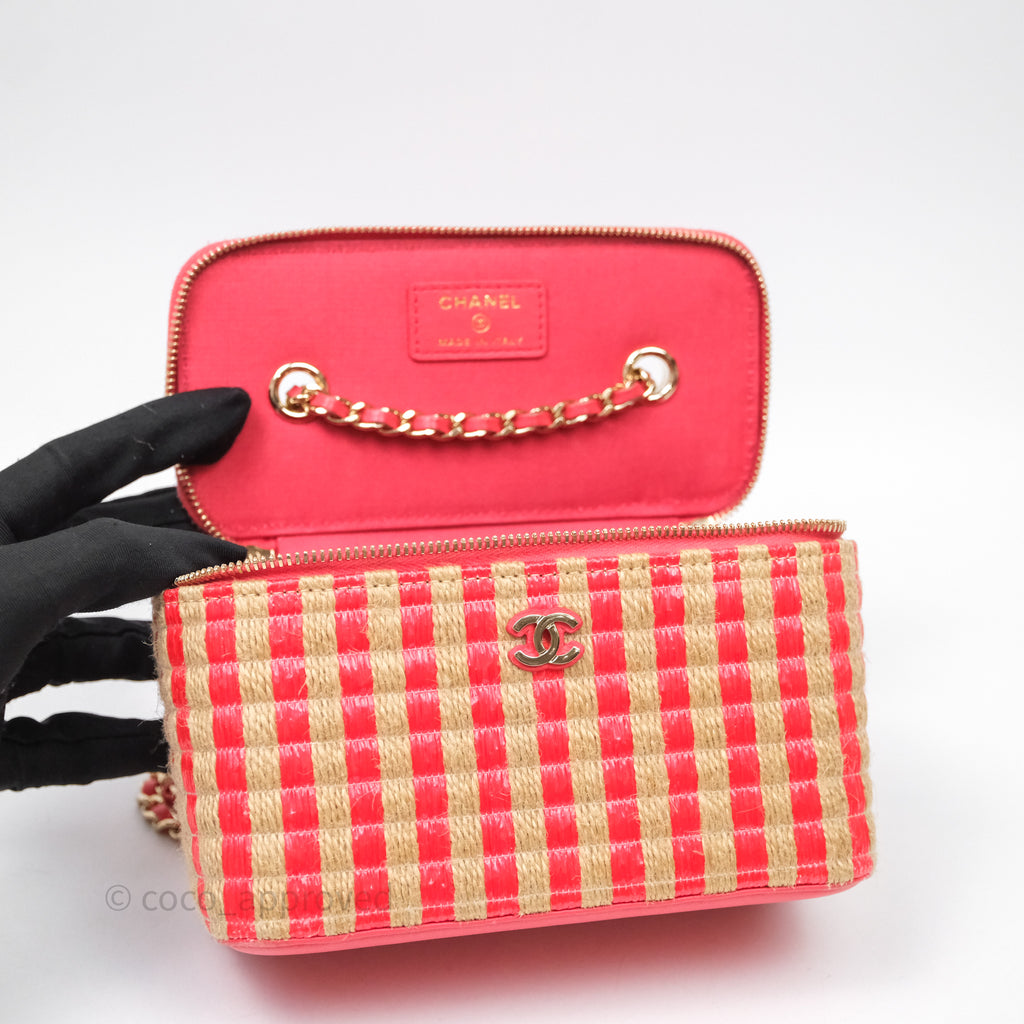 Chanel Vanity With Chain Striped Raffia Orange Gold Hardware