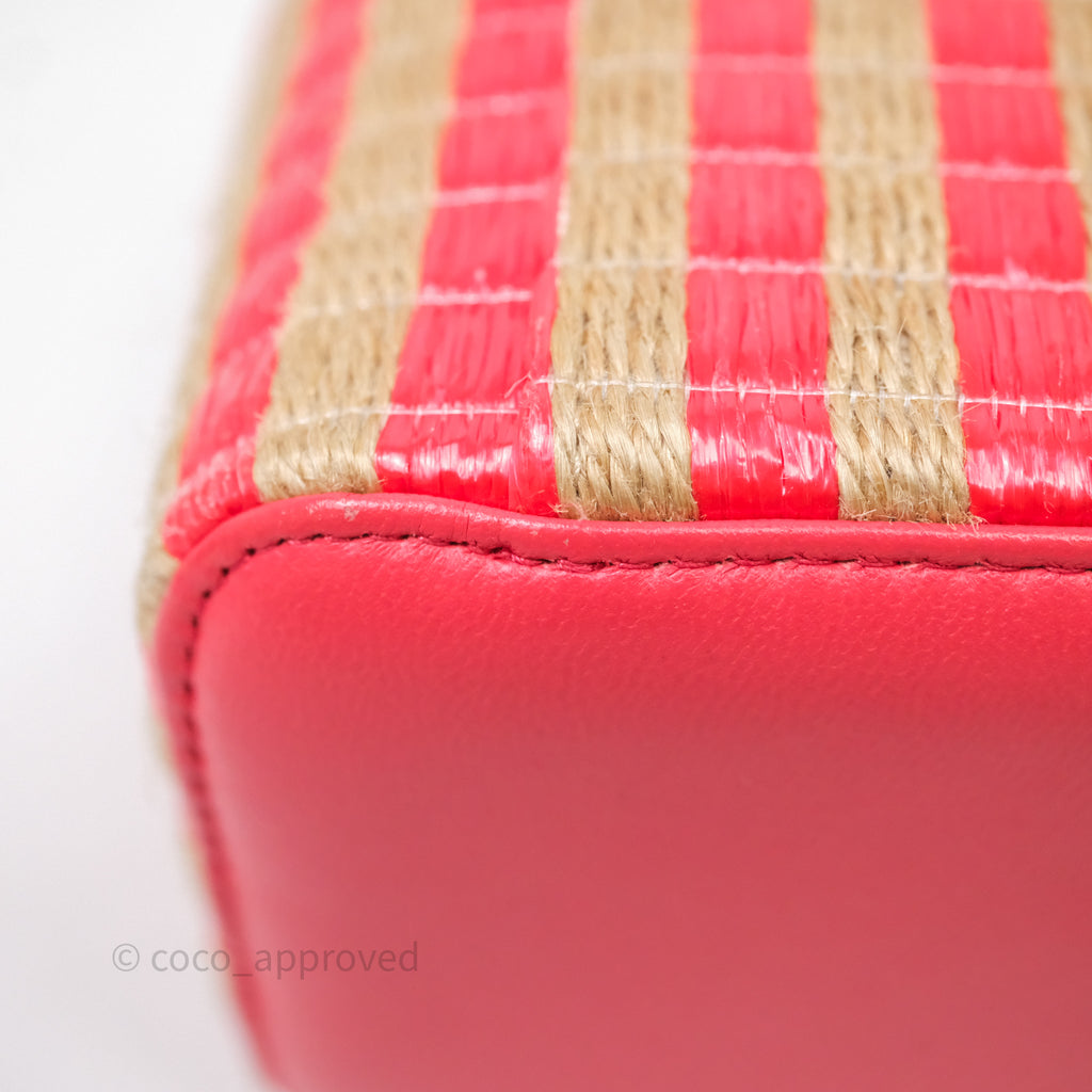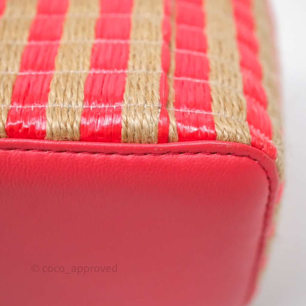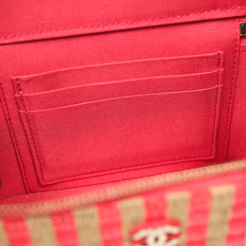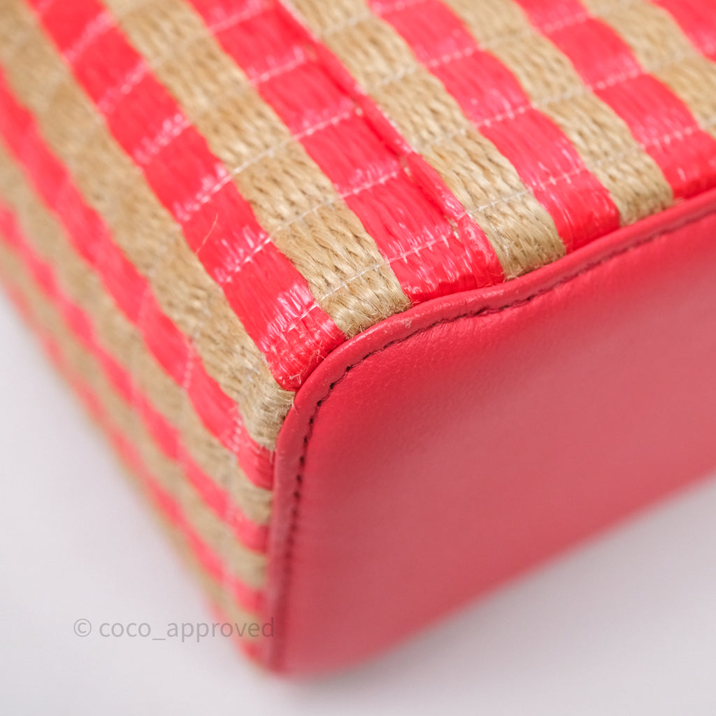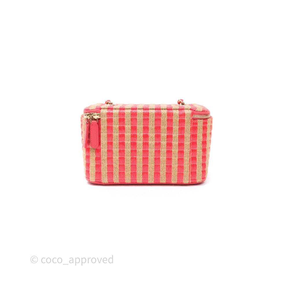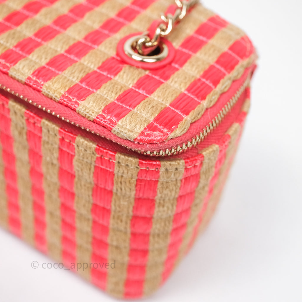 Chanel Vanity With Chain Striped Raffia Orange Gold Hardware
