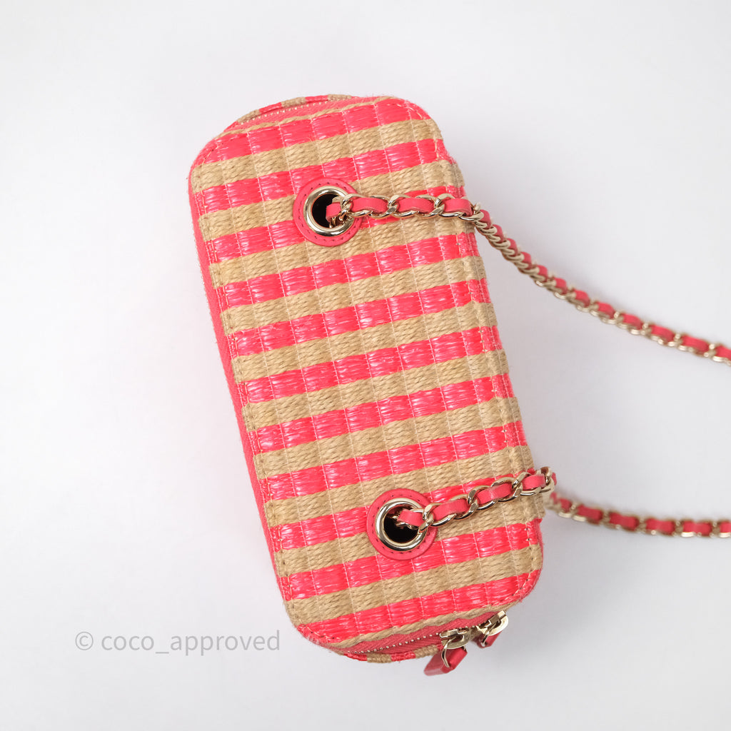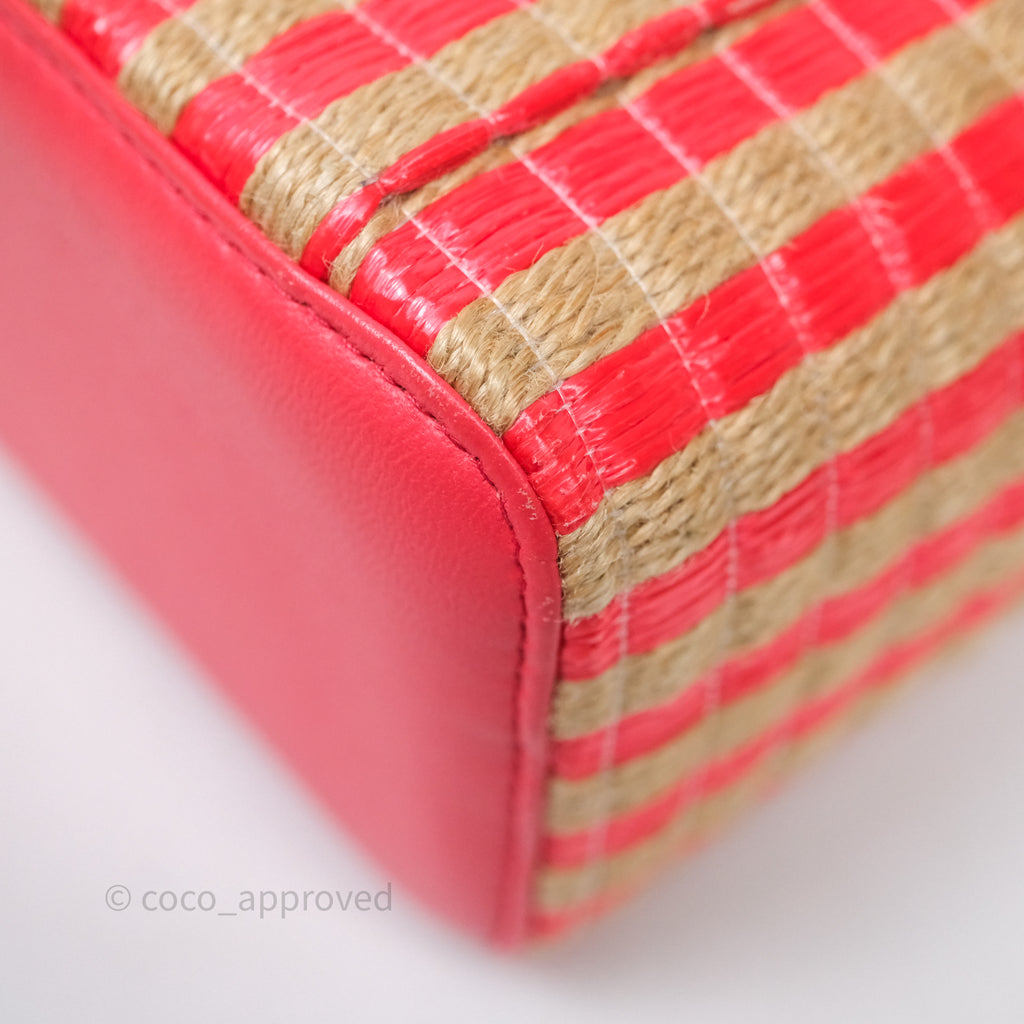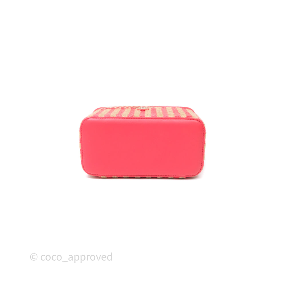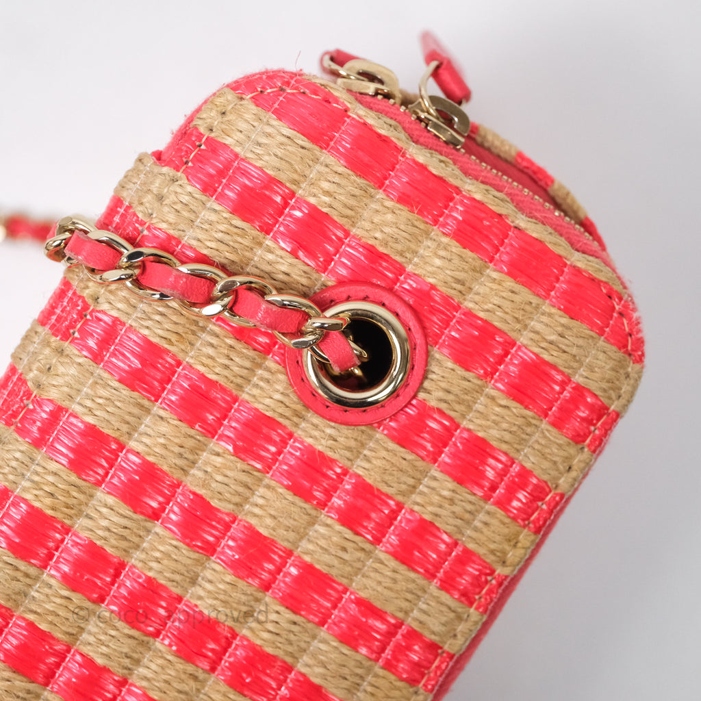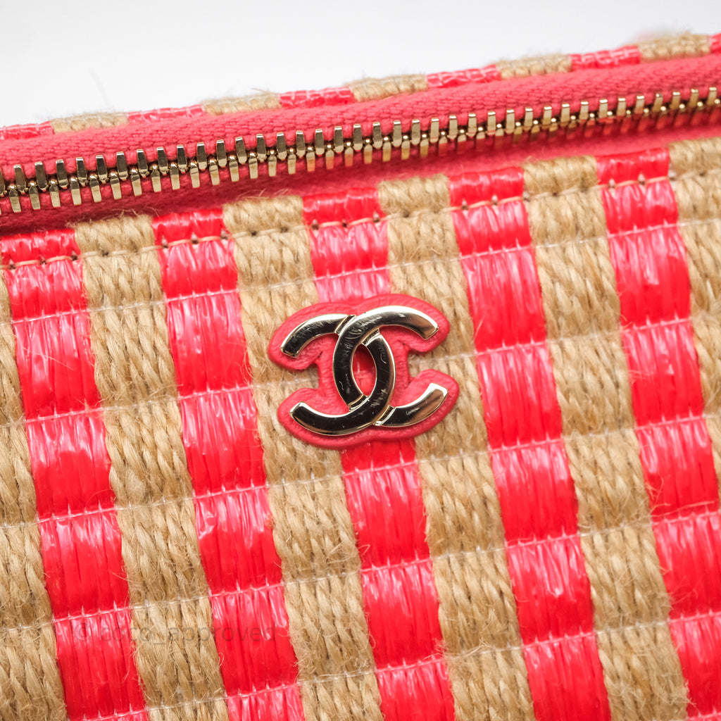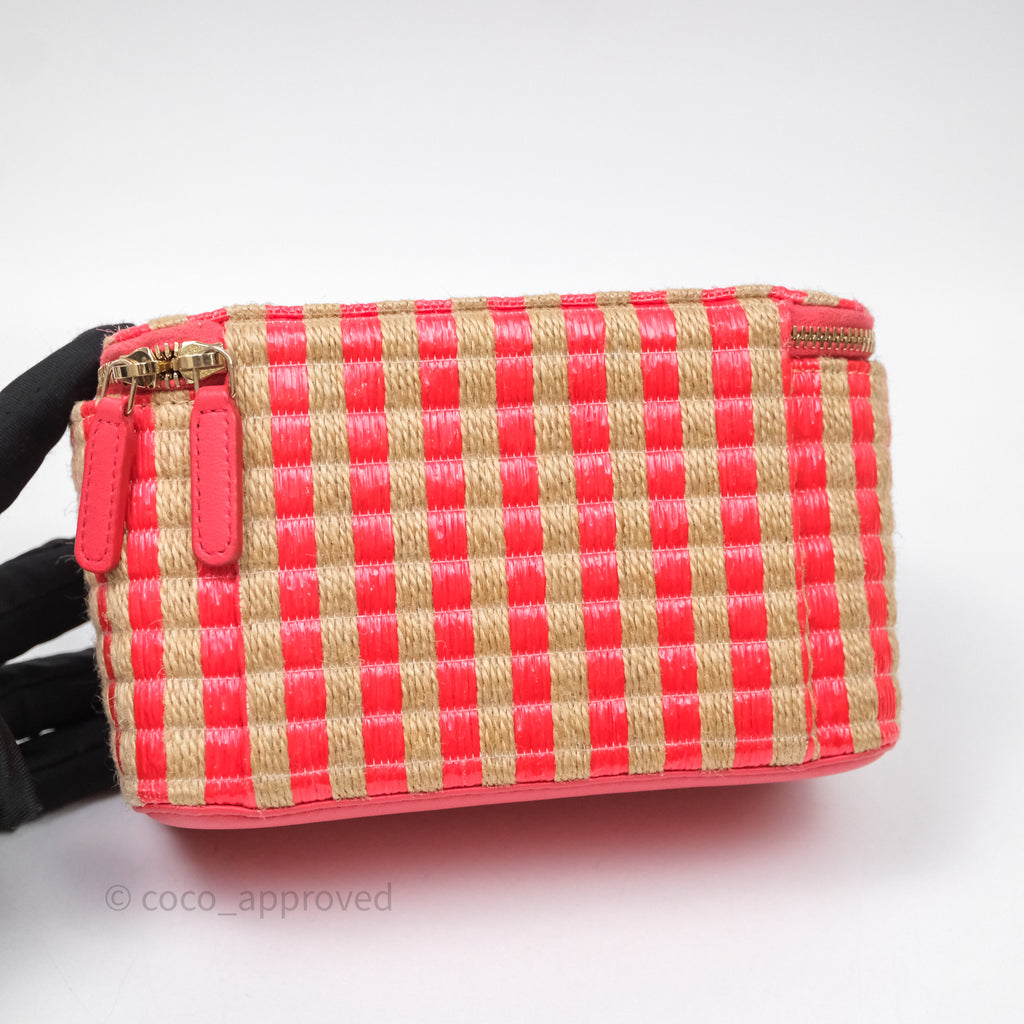 Chanel Vanity With Chain Striped Raffia Orange Gold Hardware