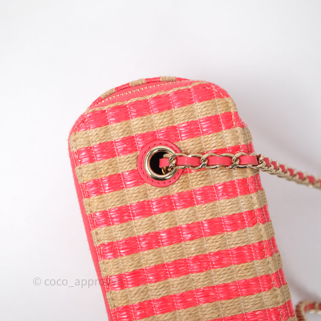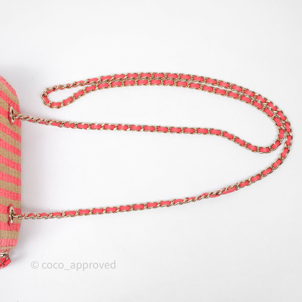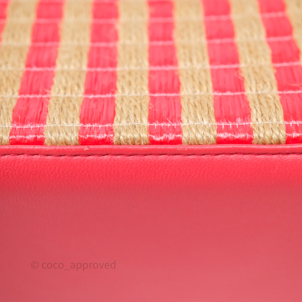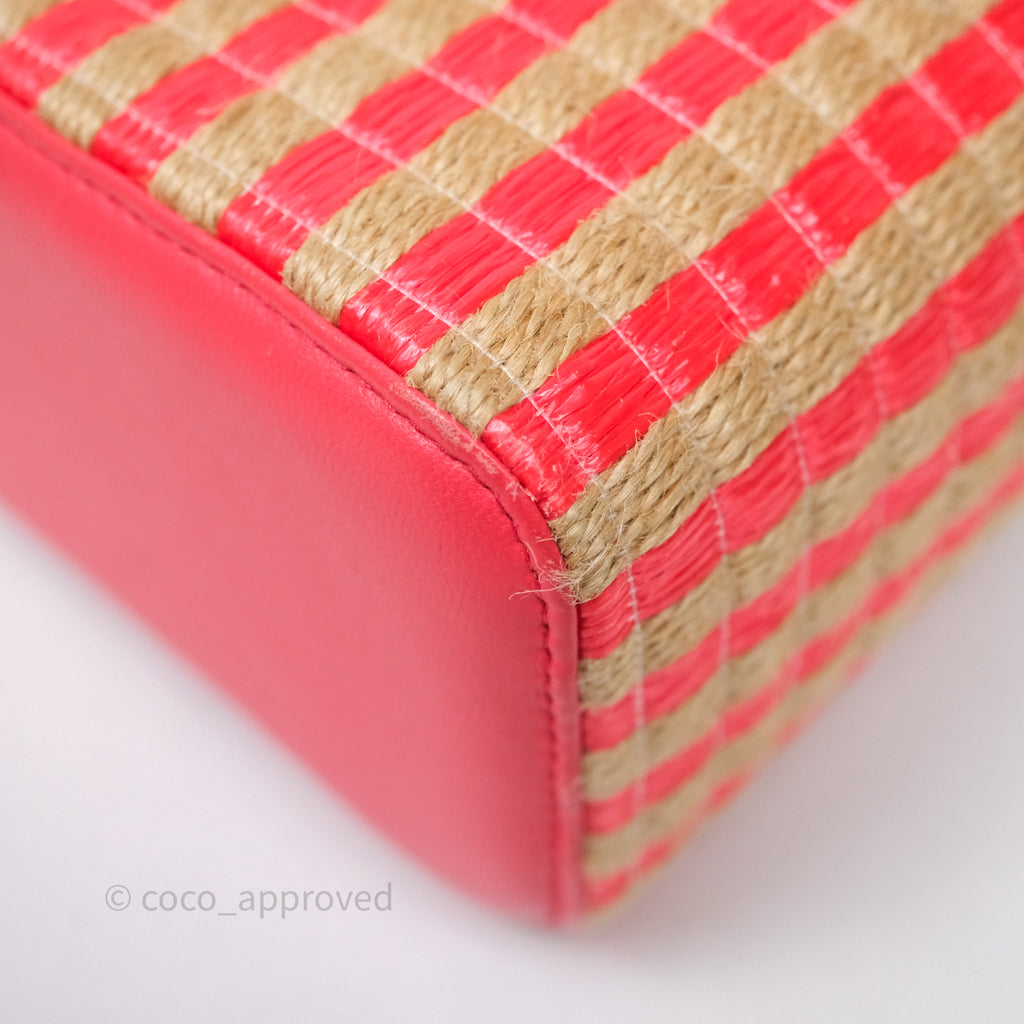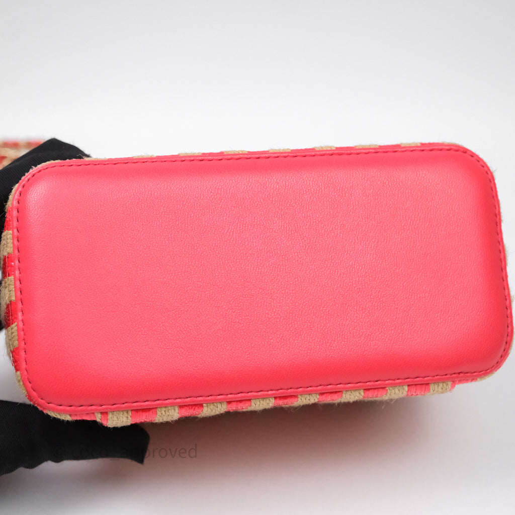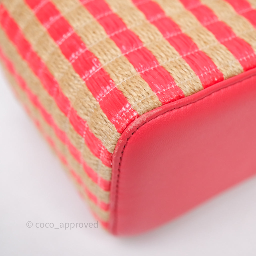 Chanel Vanity With Chain Striped Raffia Orange Gold Hardware