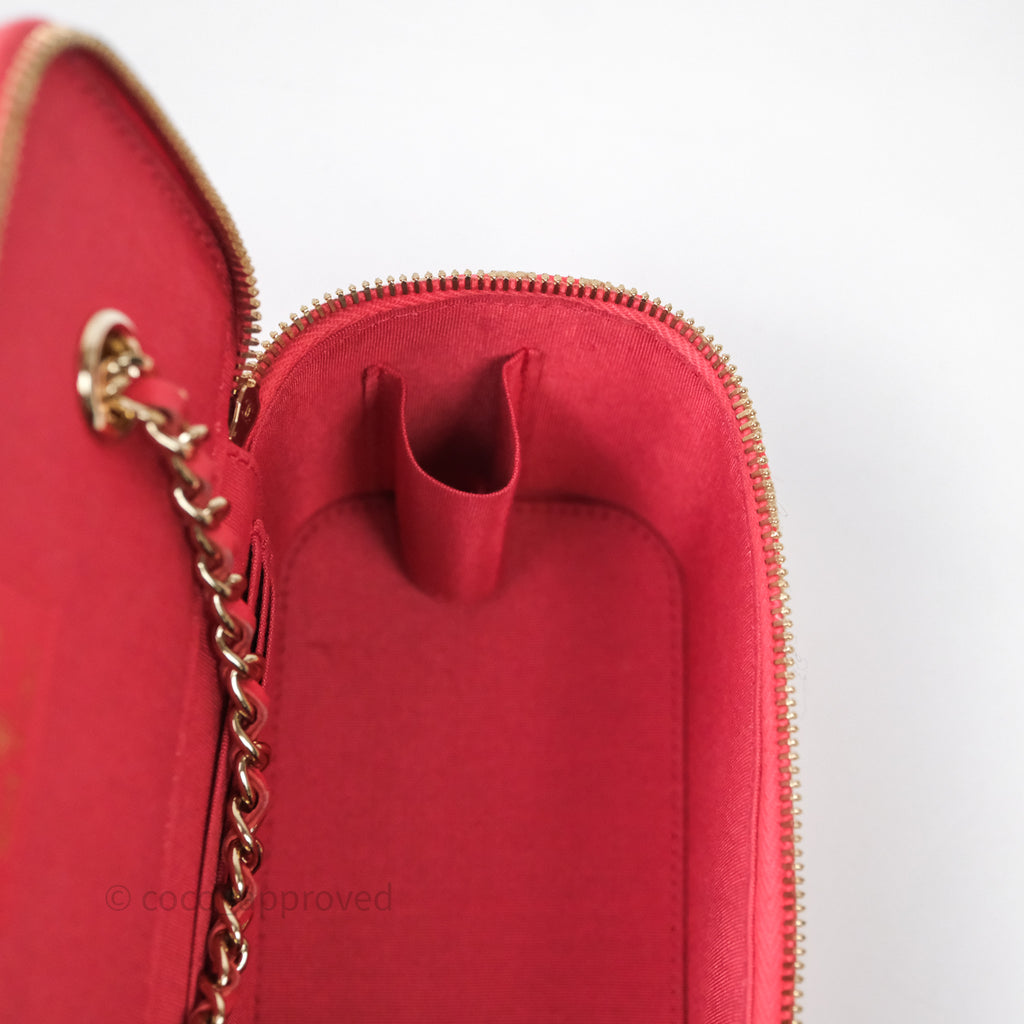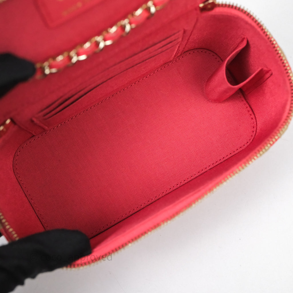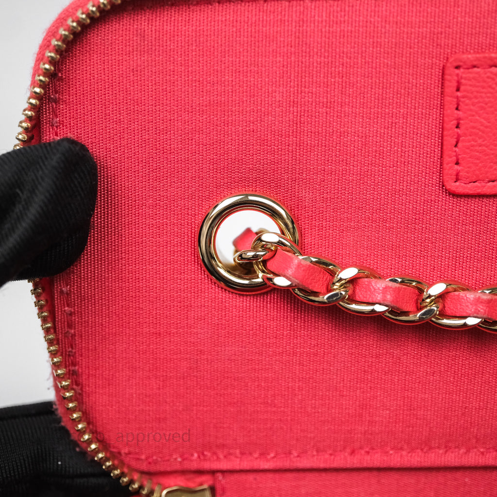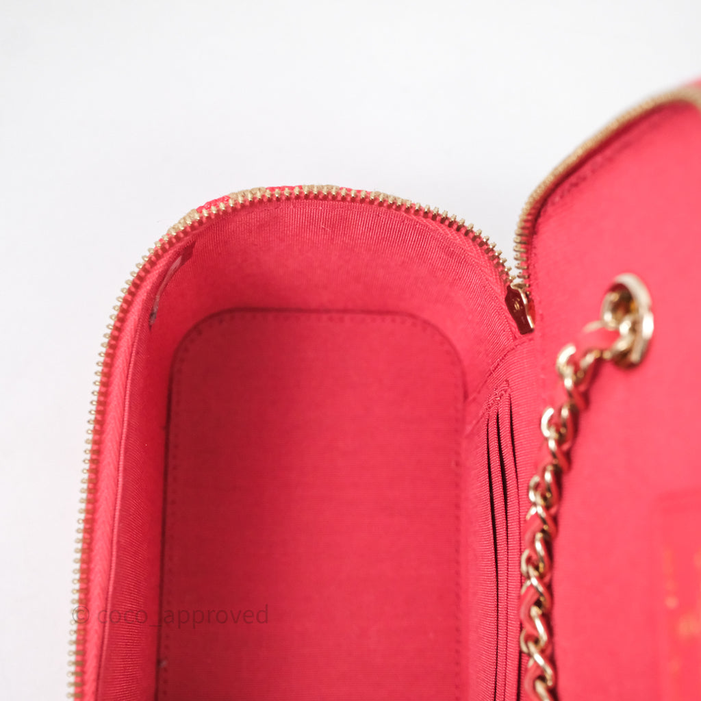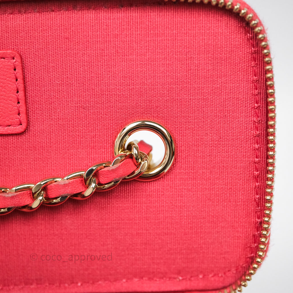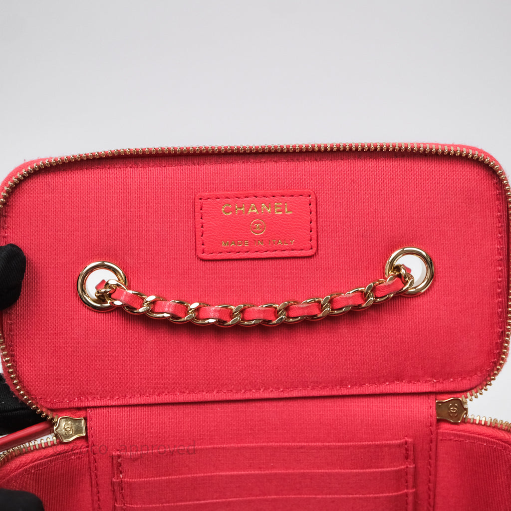 Chanel Vanity With Chain Striped Raffia Orange Gold Hardware