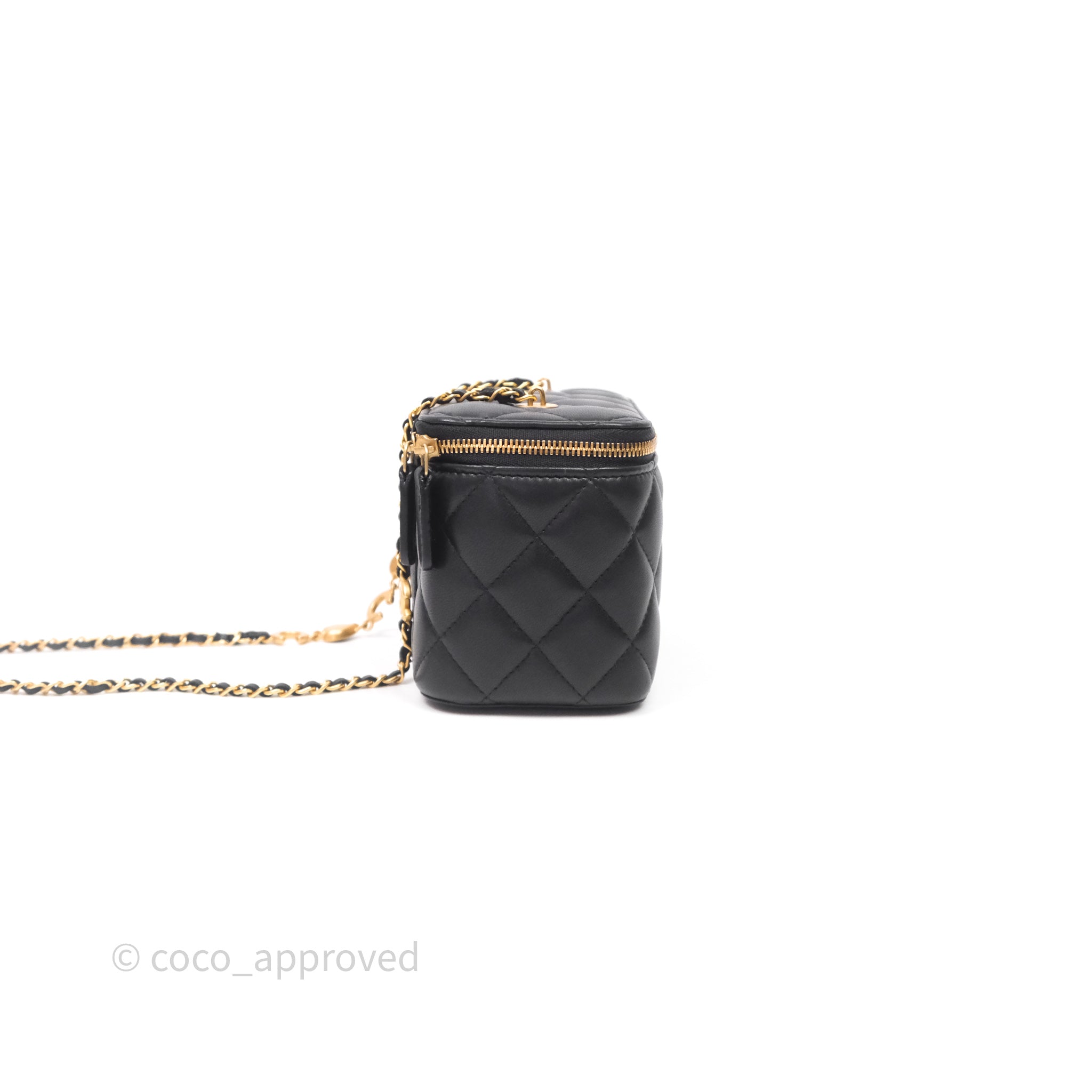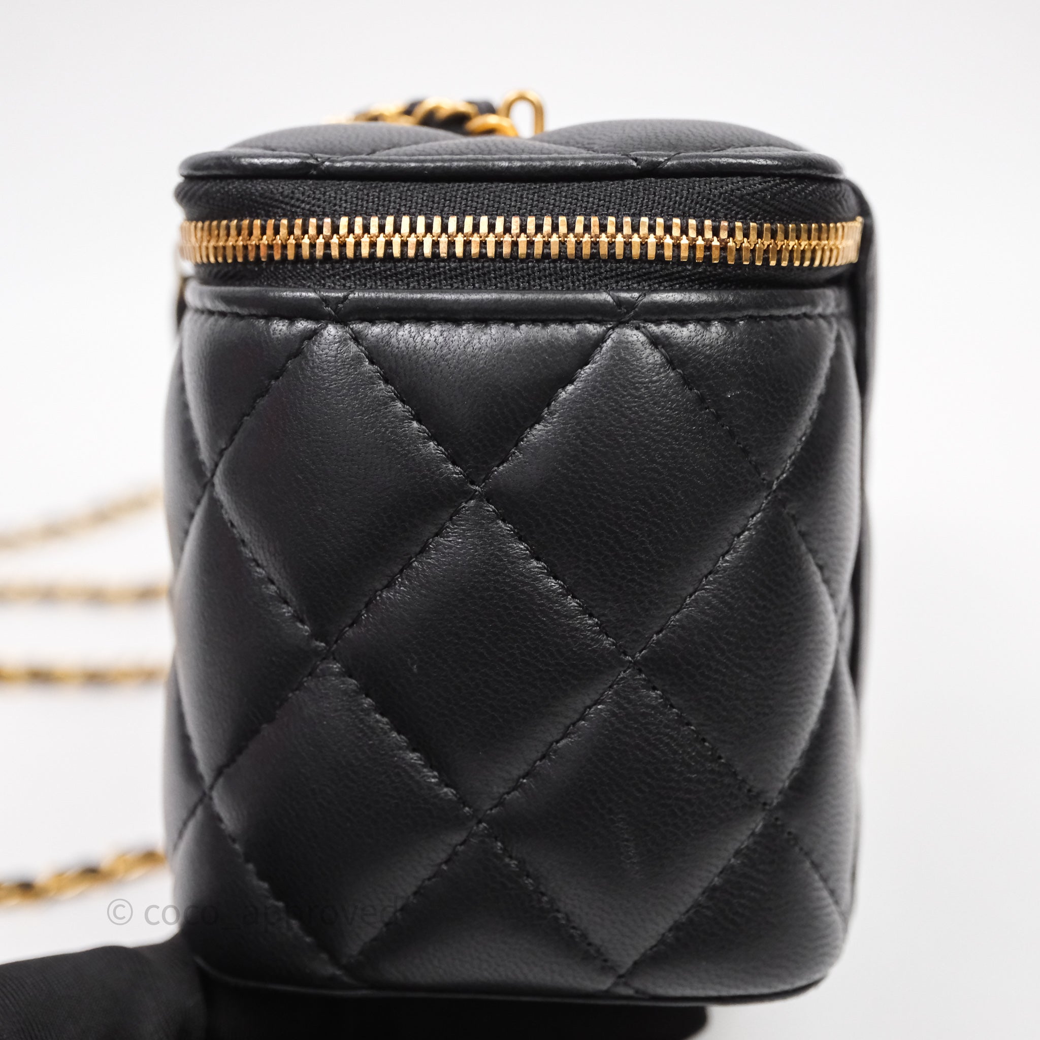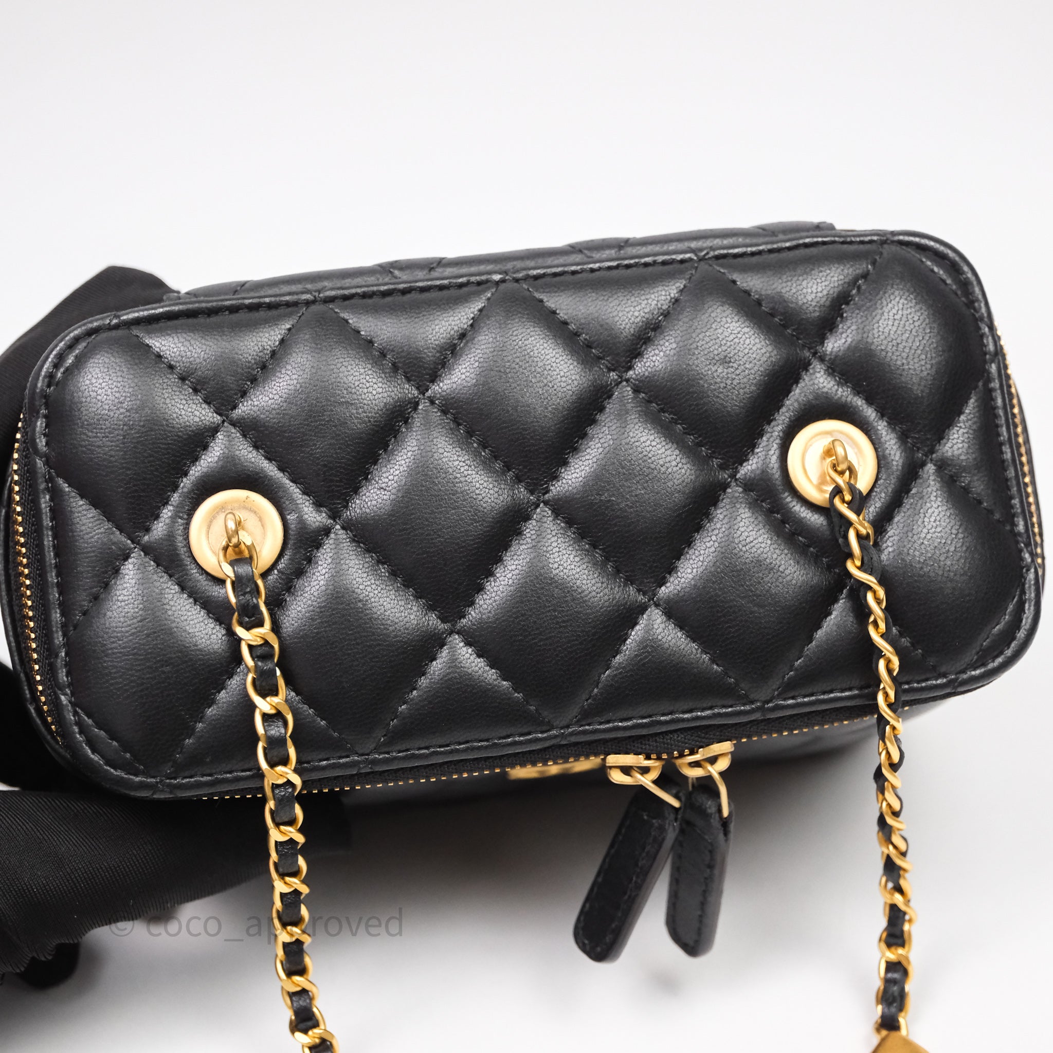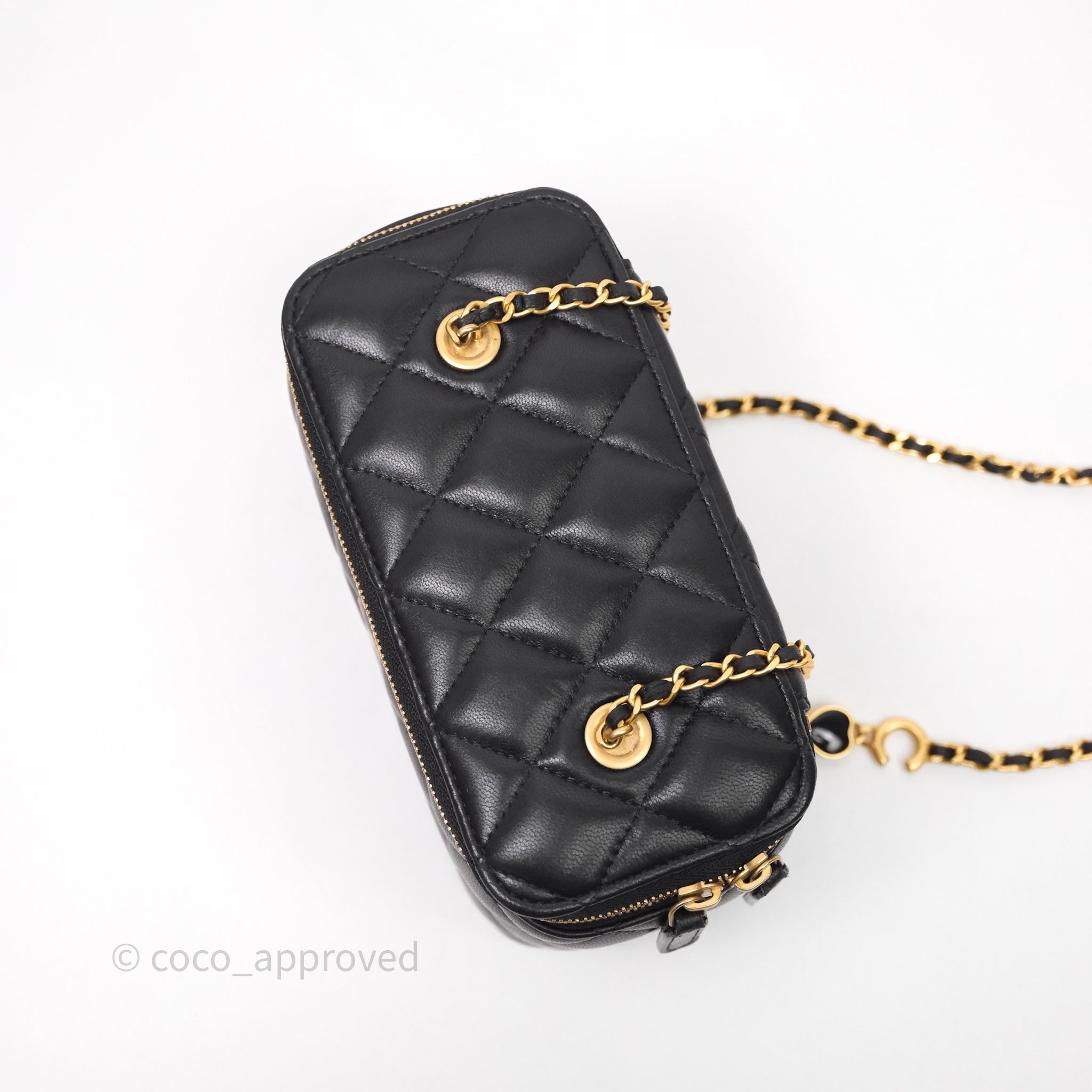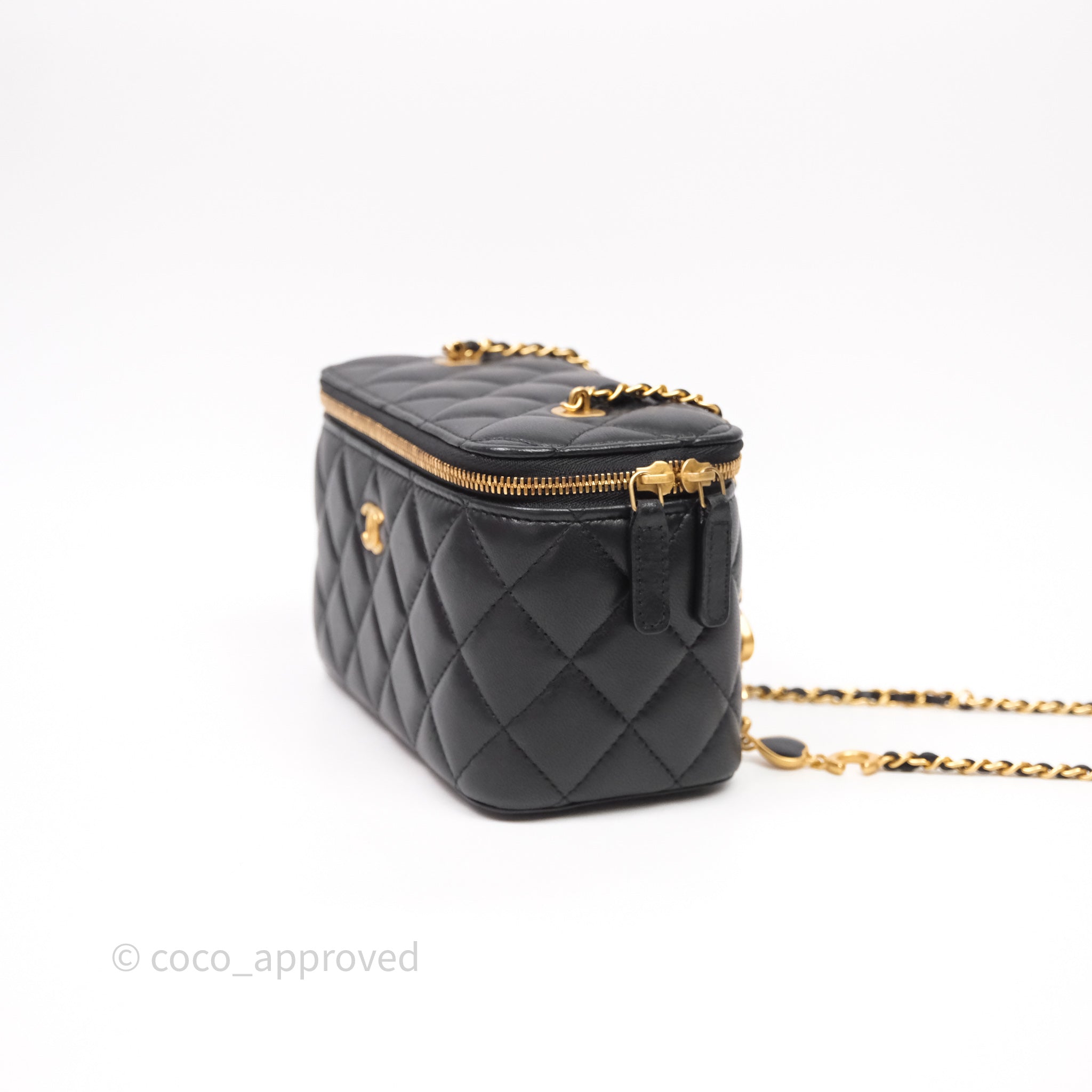 Chanel Vanity With COCO Heart Chain Black Lambskin Aged Gold Hardware
