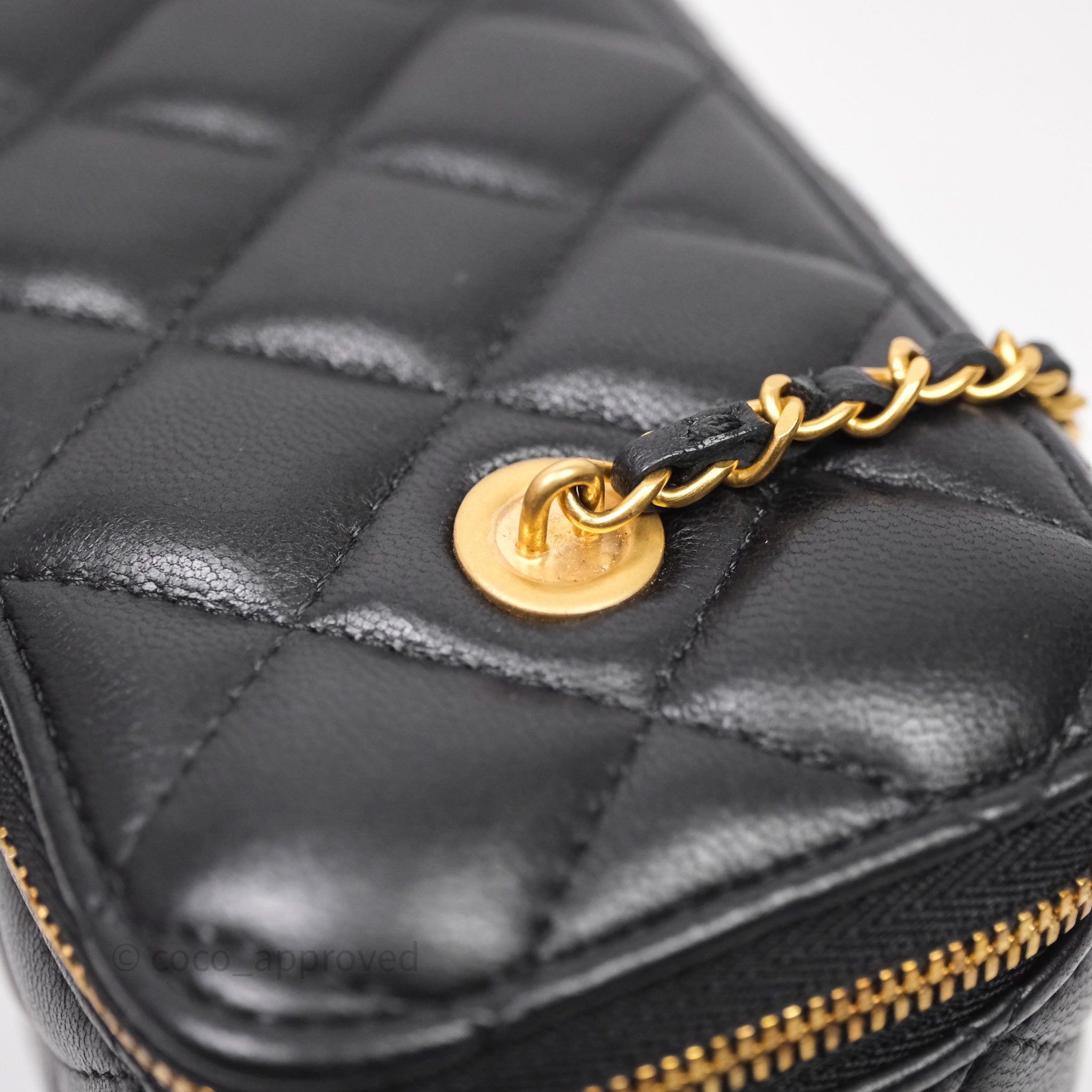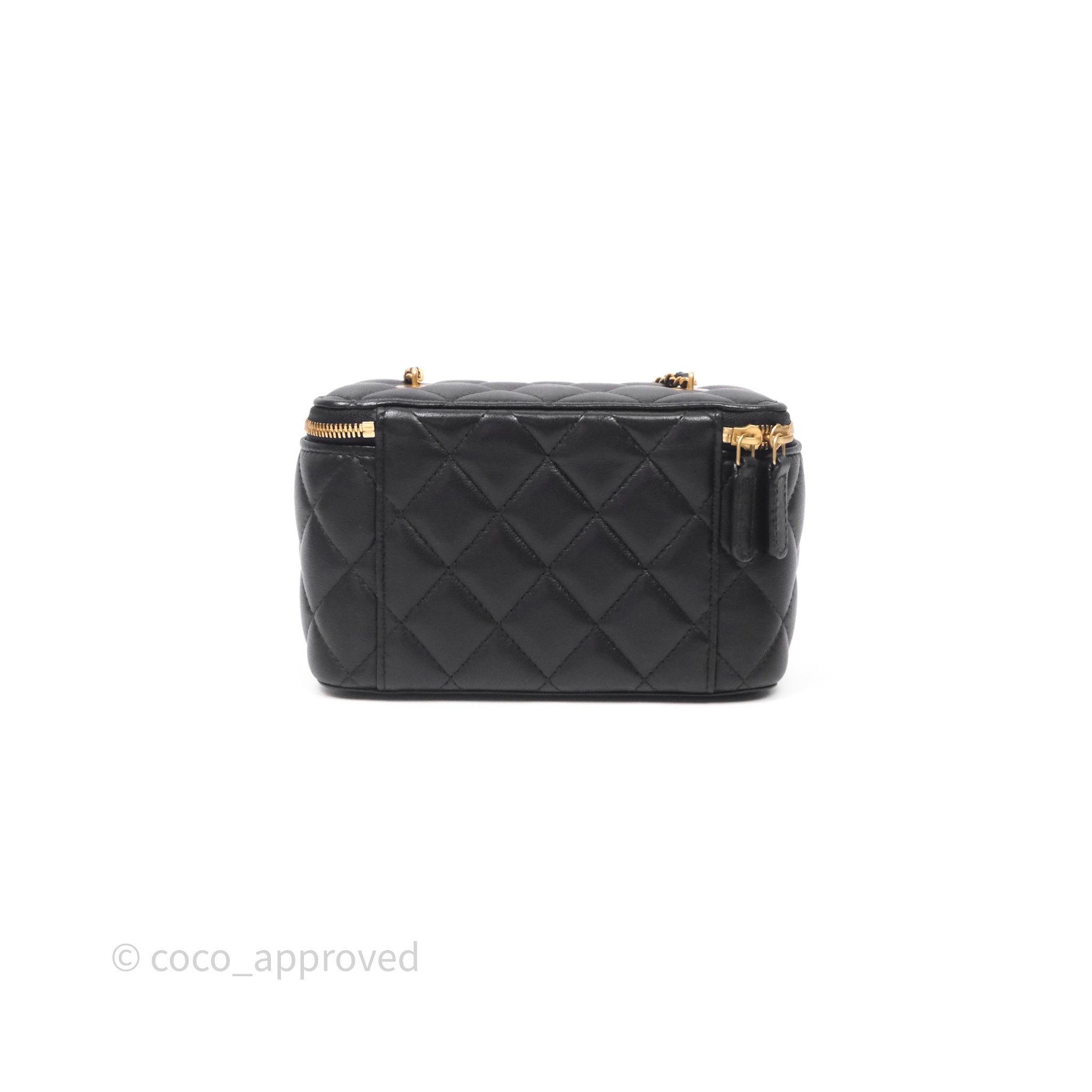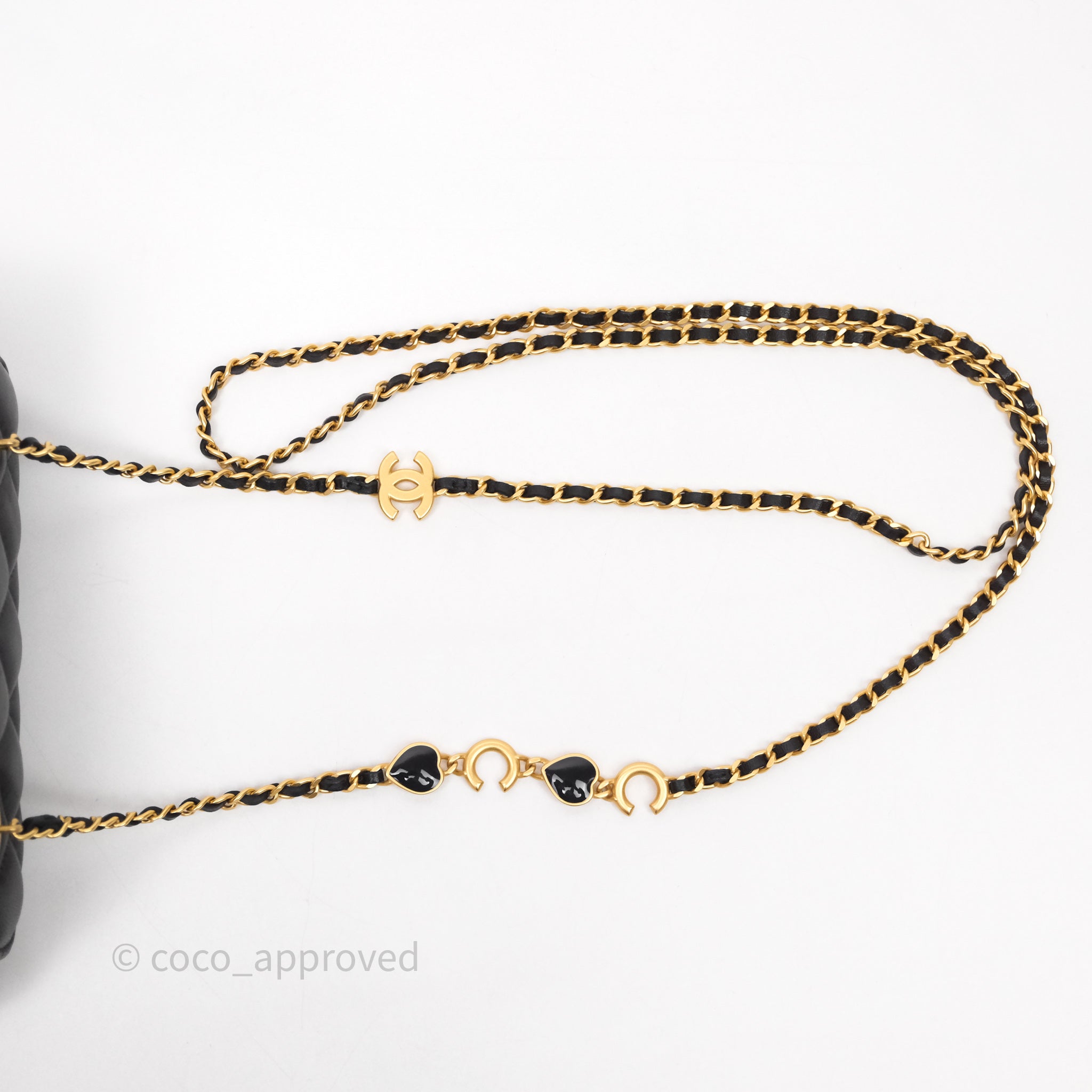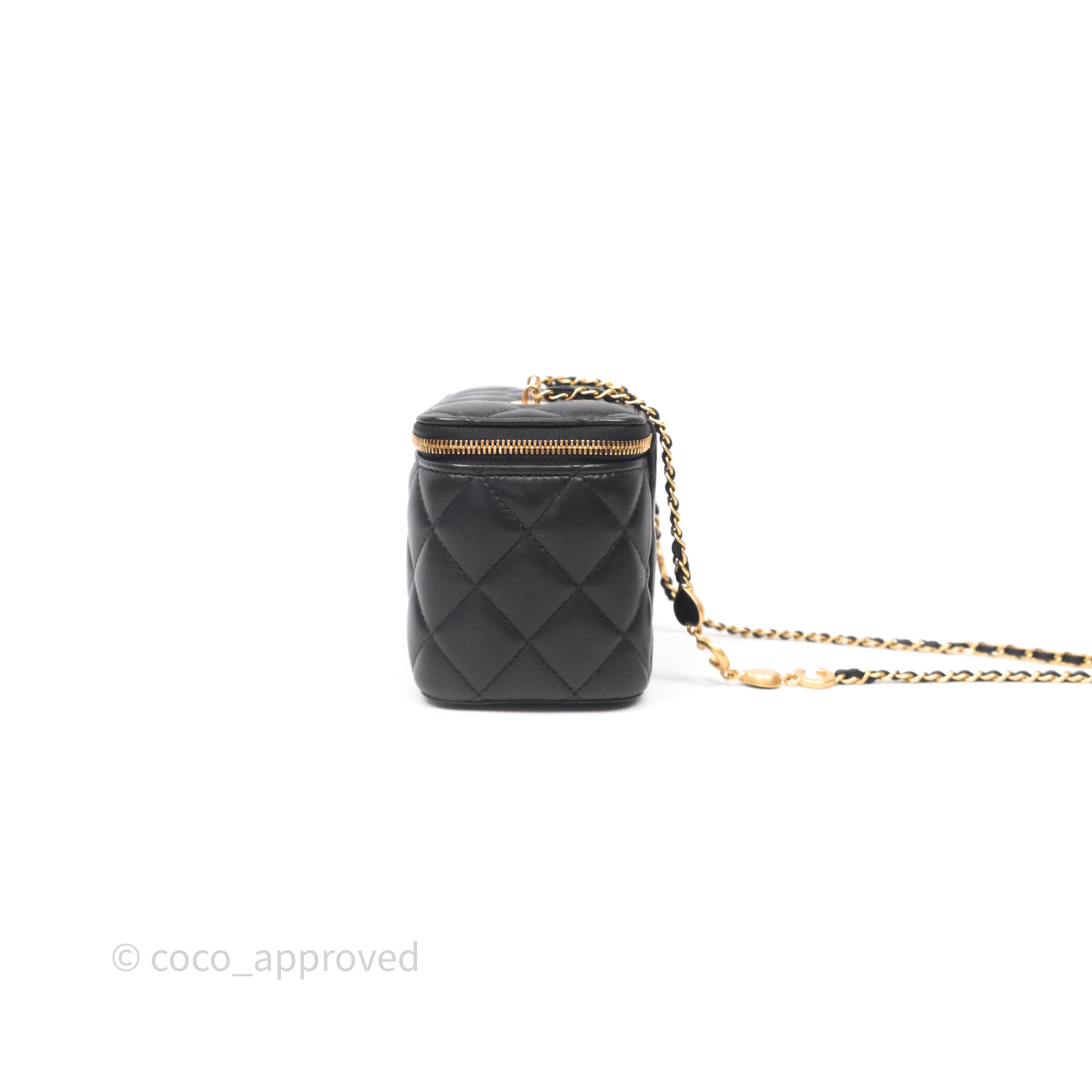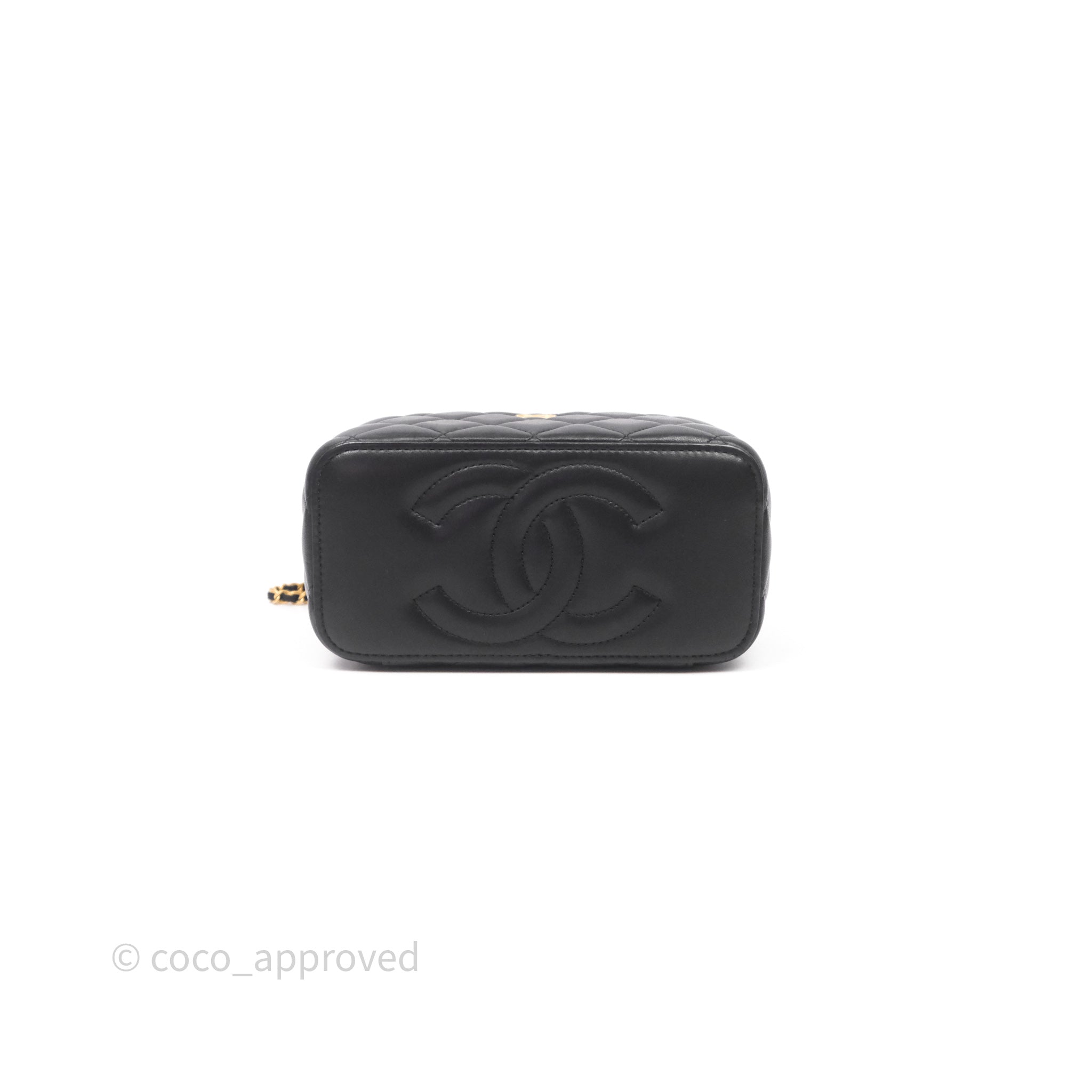 Chanel Vanity With COCO Heart Chain Black Lambskin Aged Gold Hardware