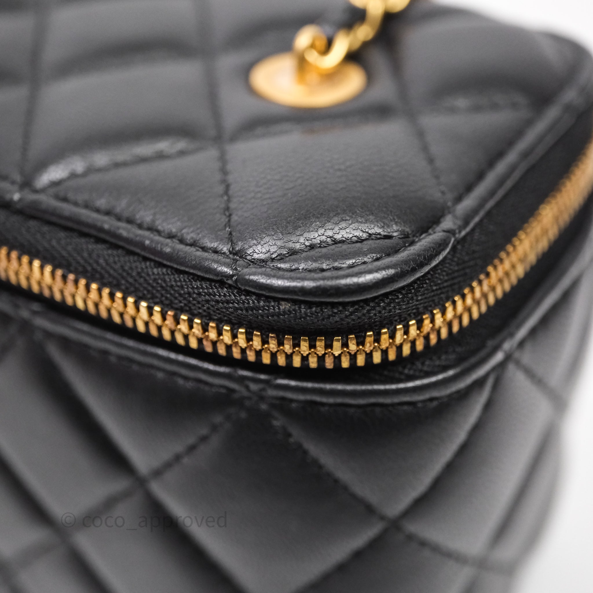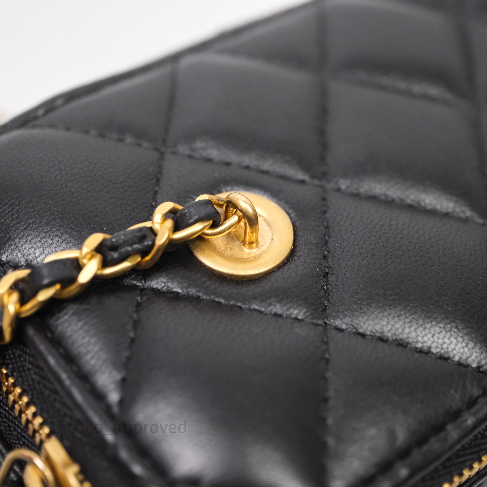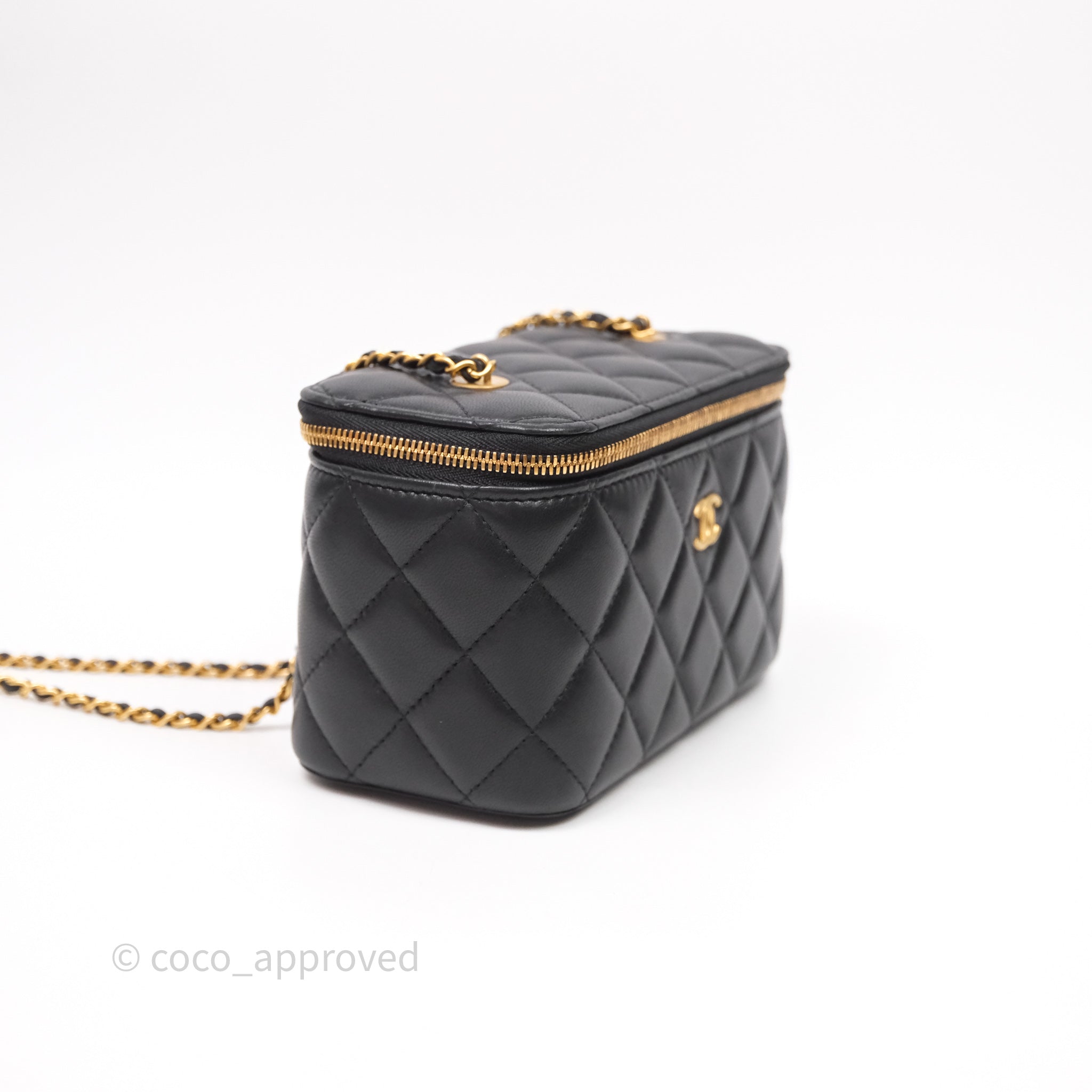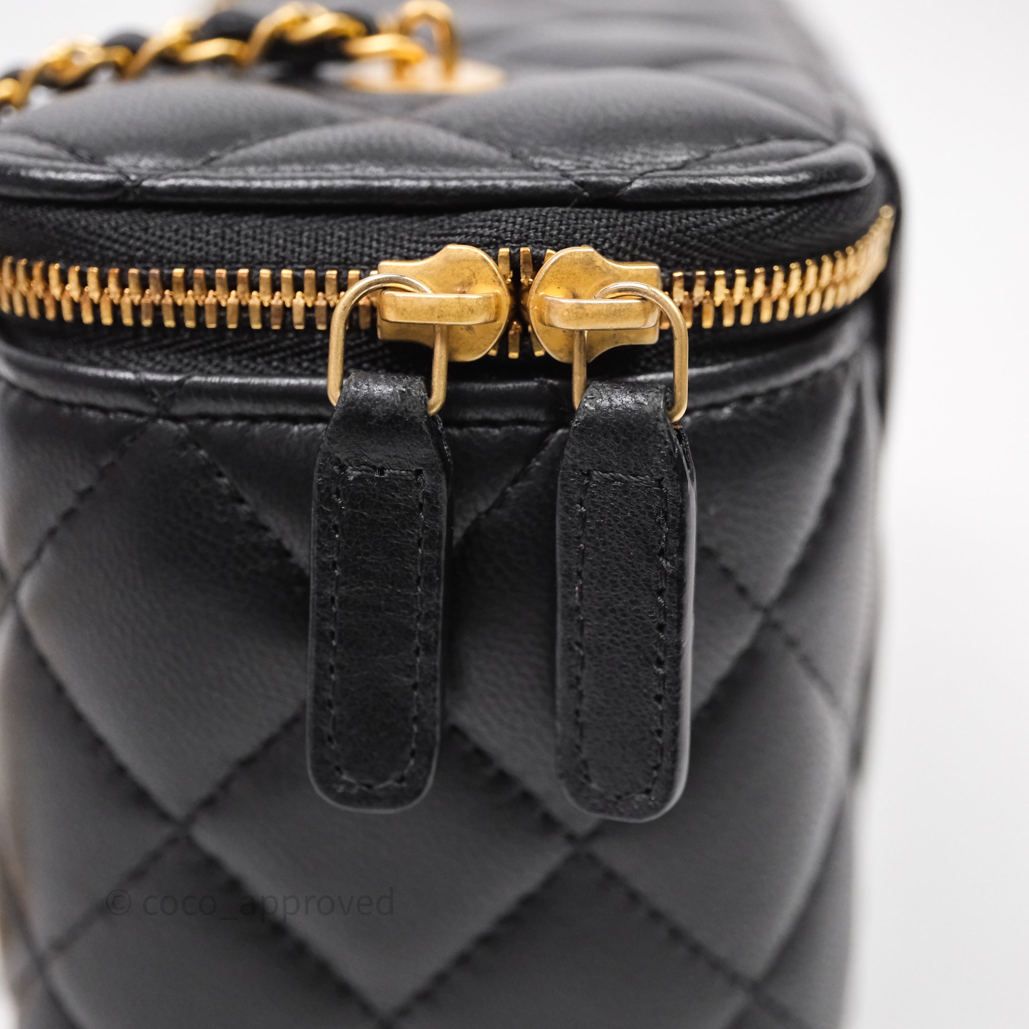 Chanel Vanity With COCO Heart Chain Black Lambskin Aged Gold Hardware