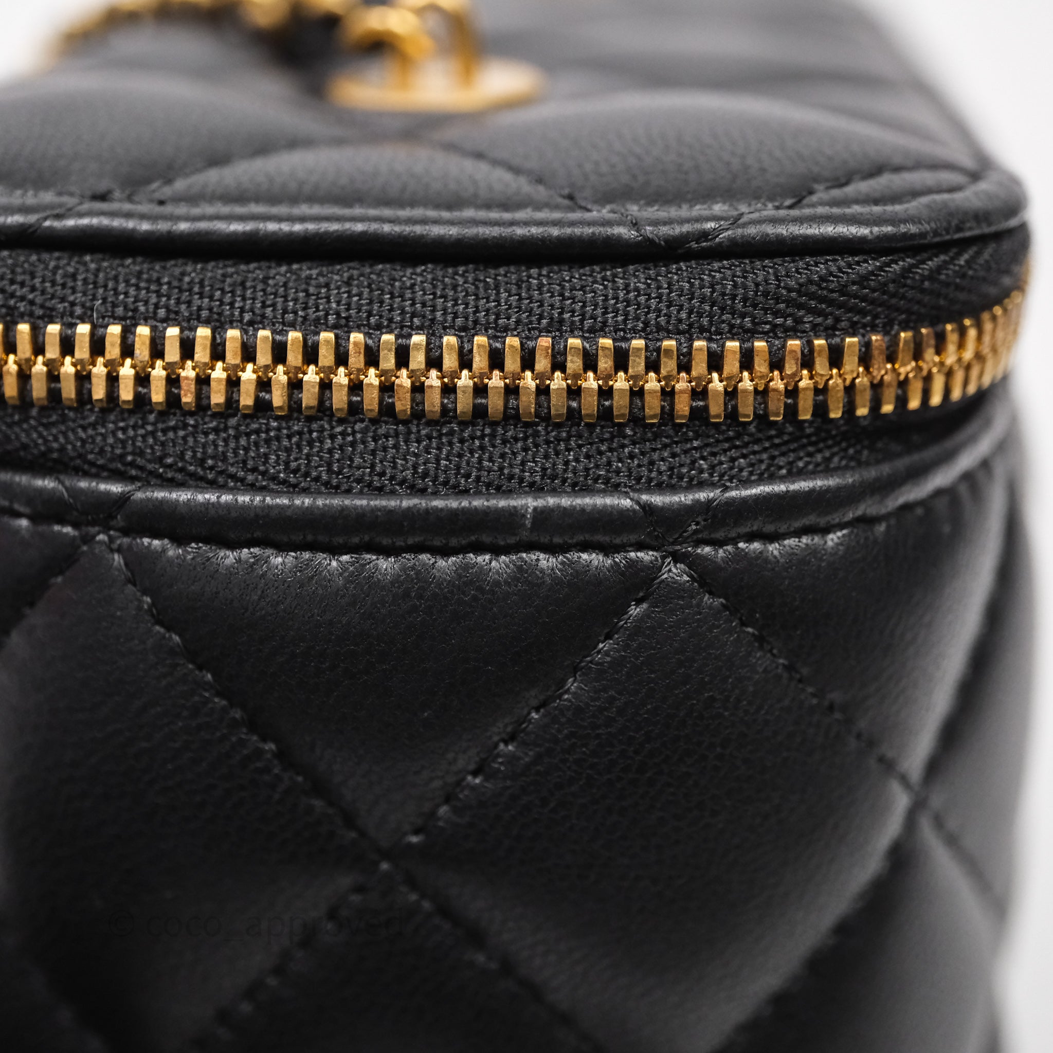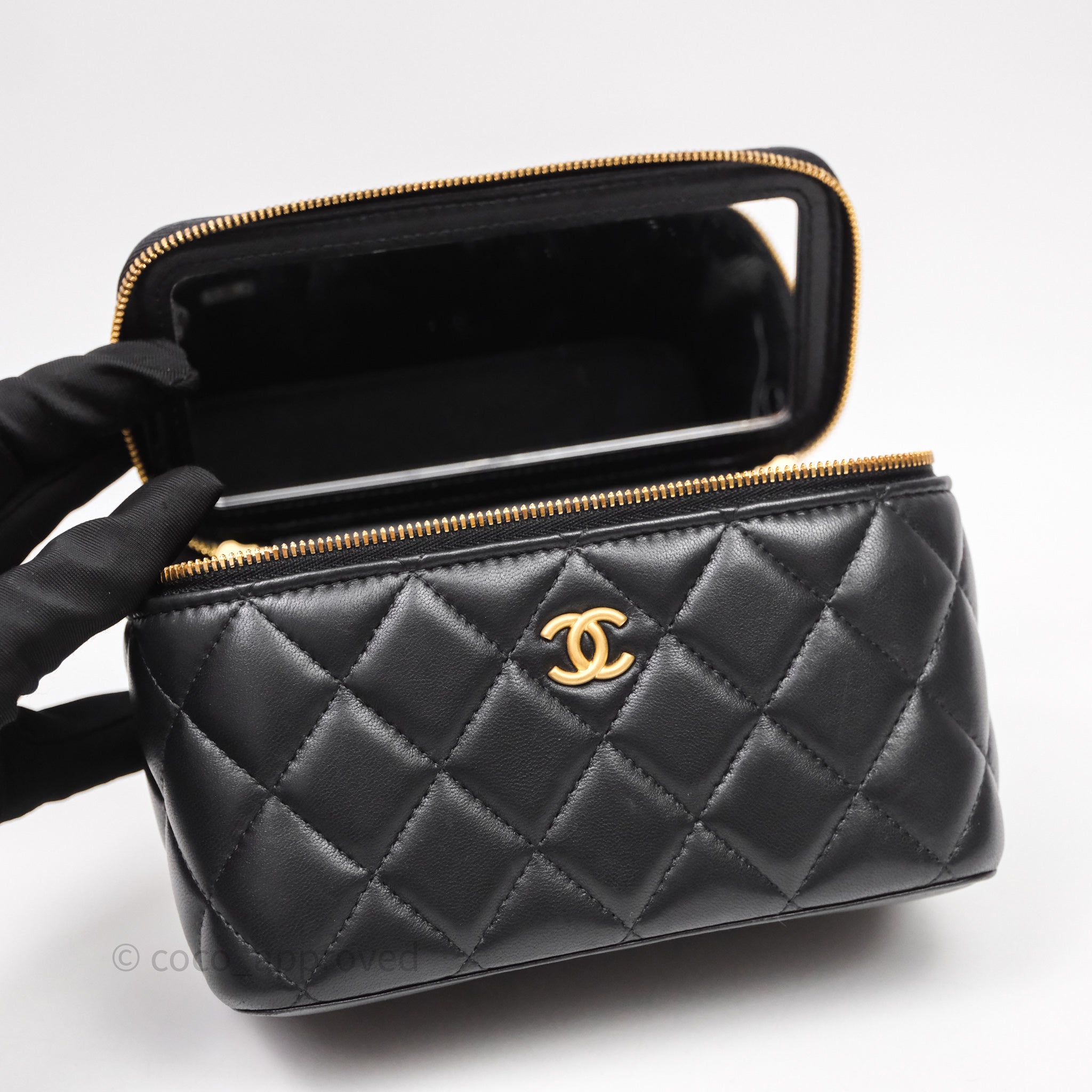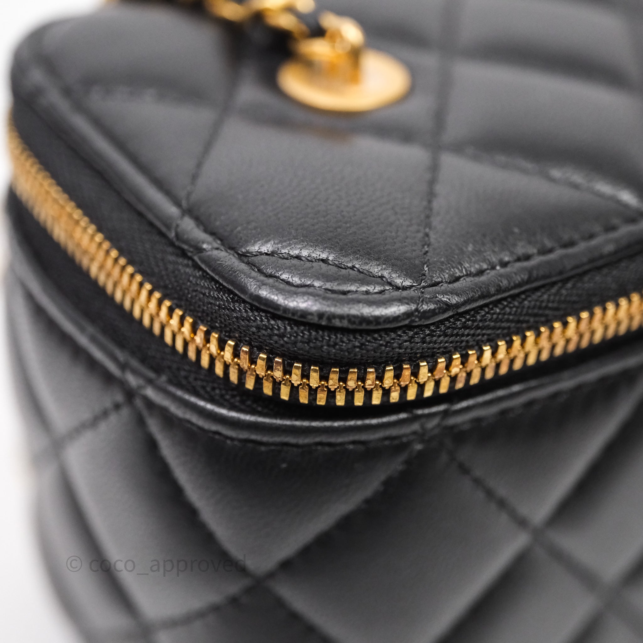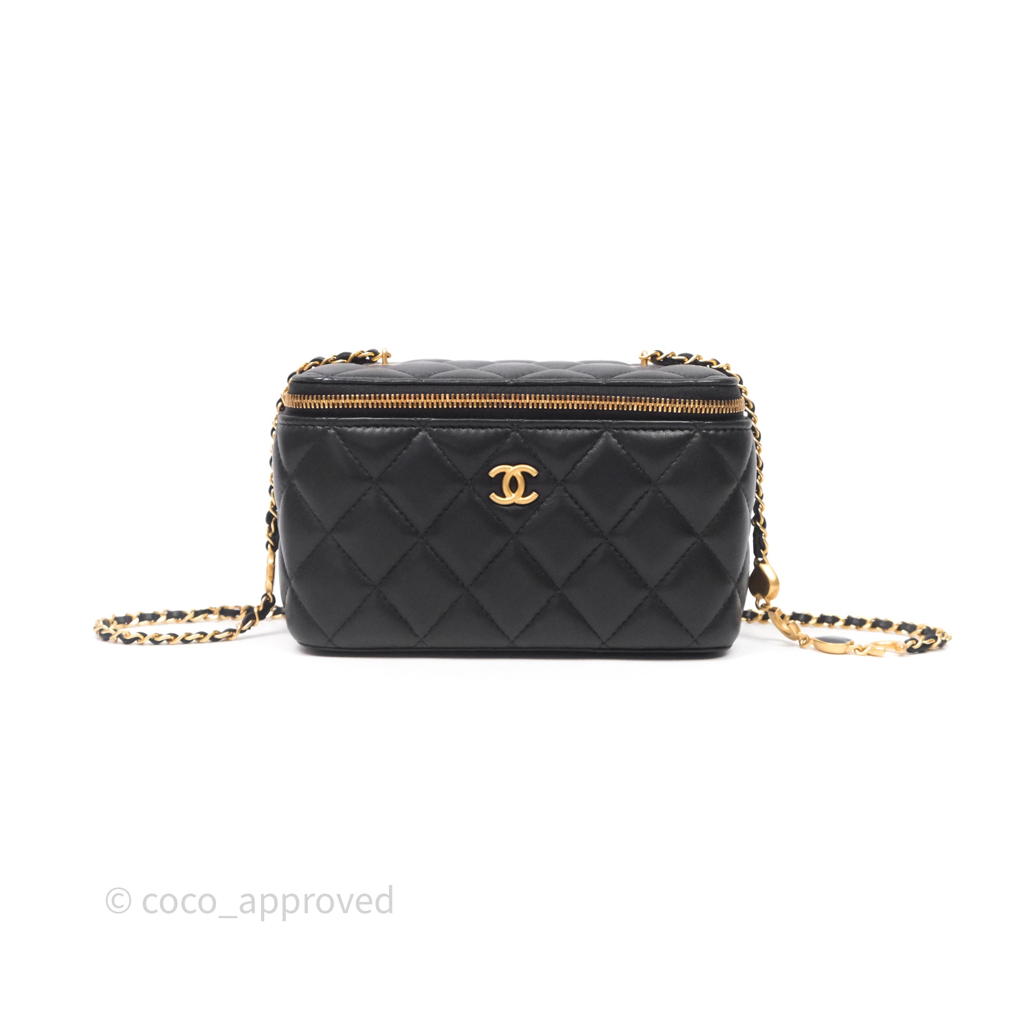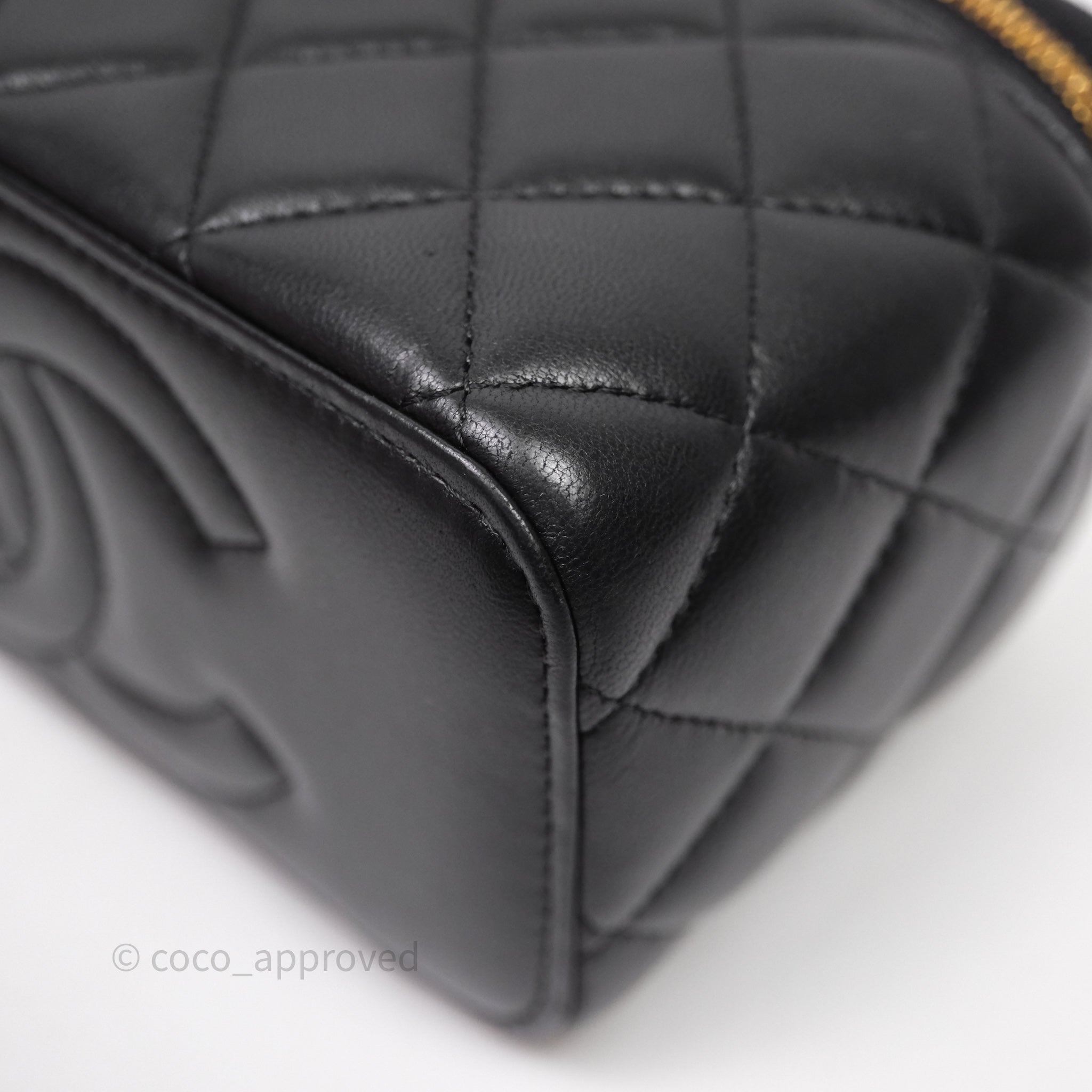 Chanel Vanity With COCO Heart Chain Black Lambskin Aged Gold Hardware
