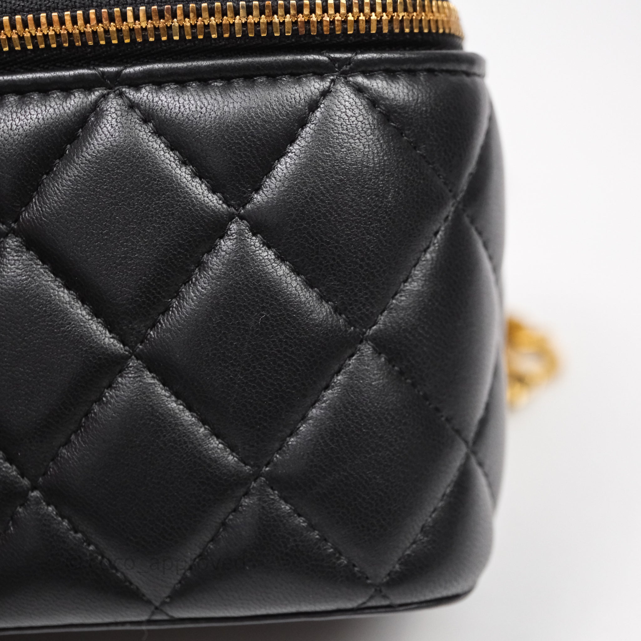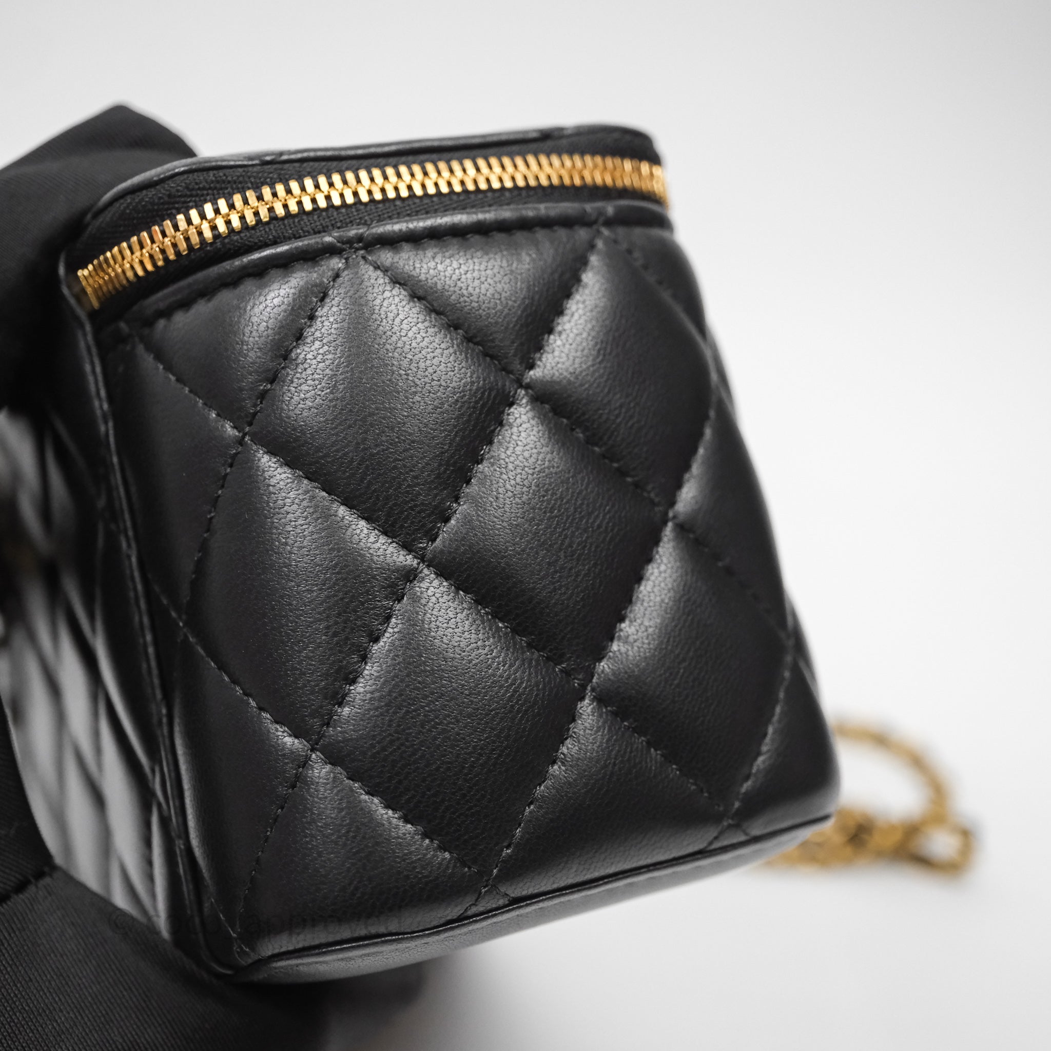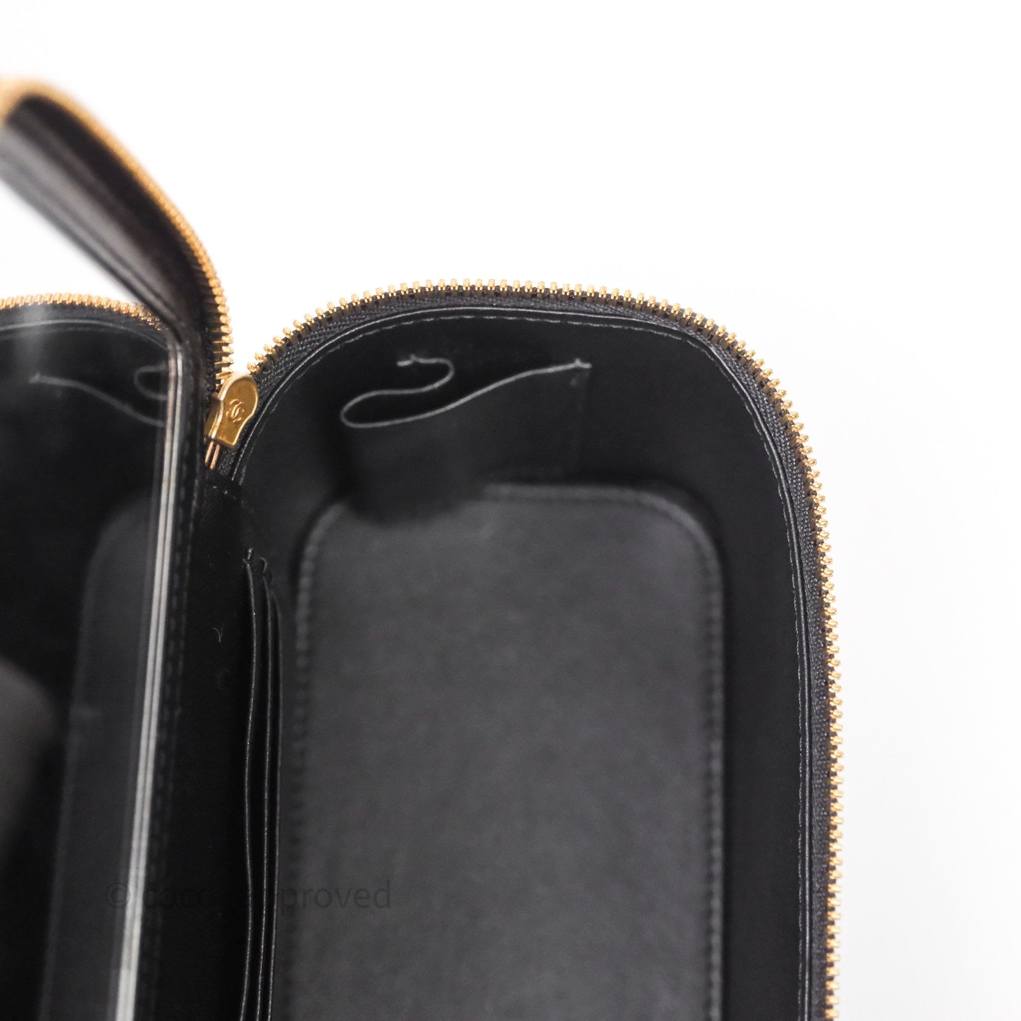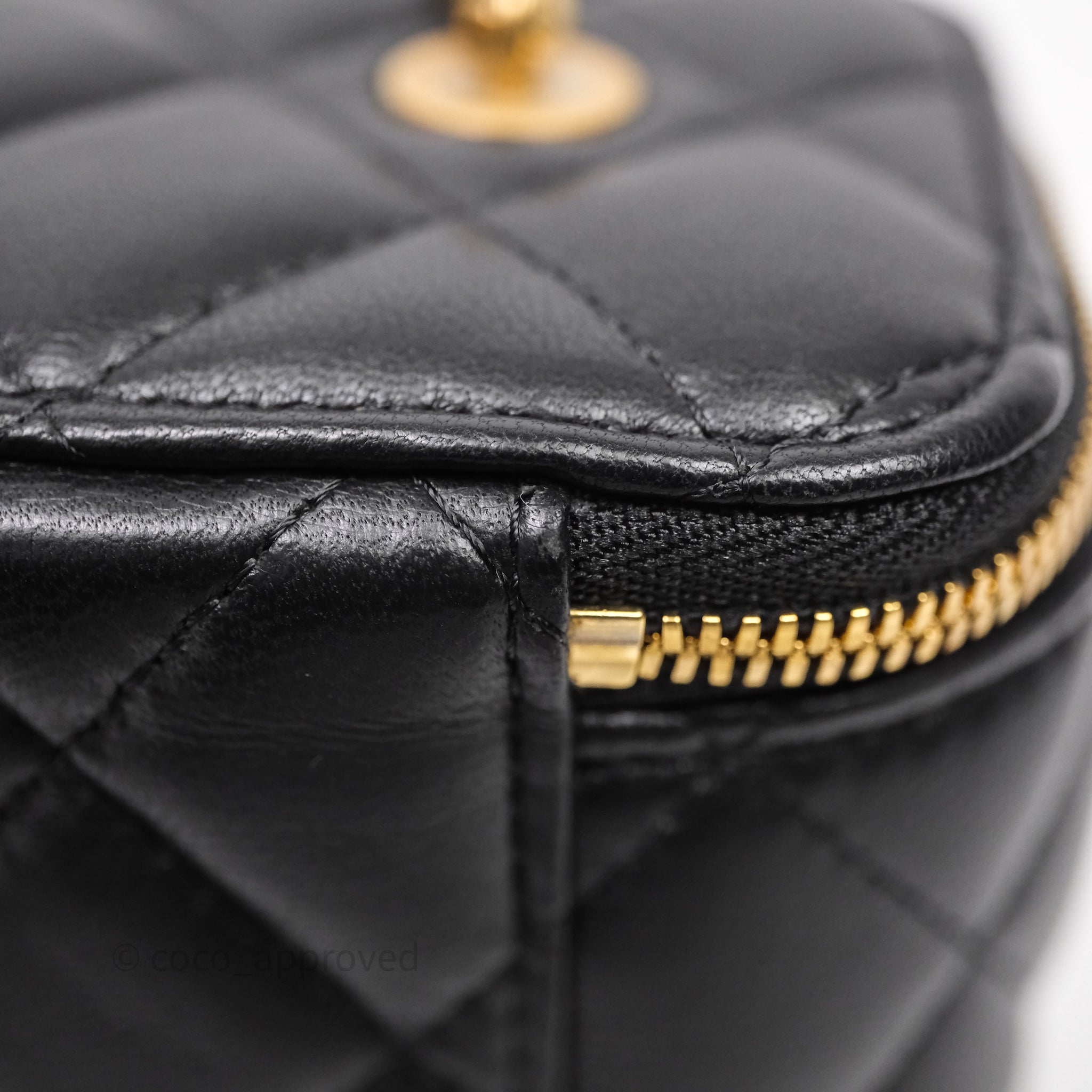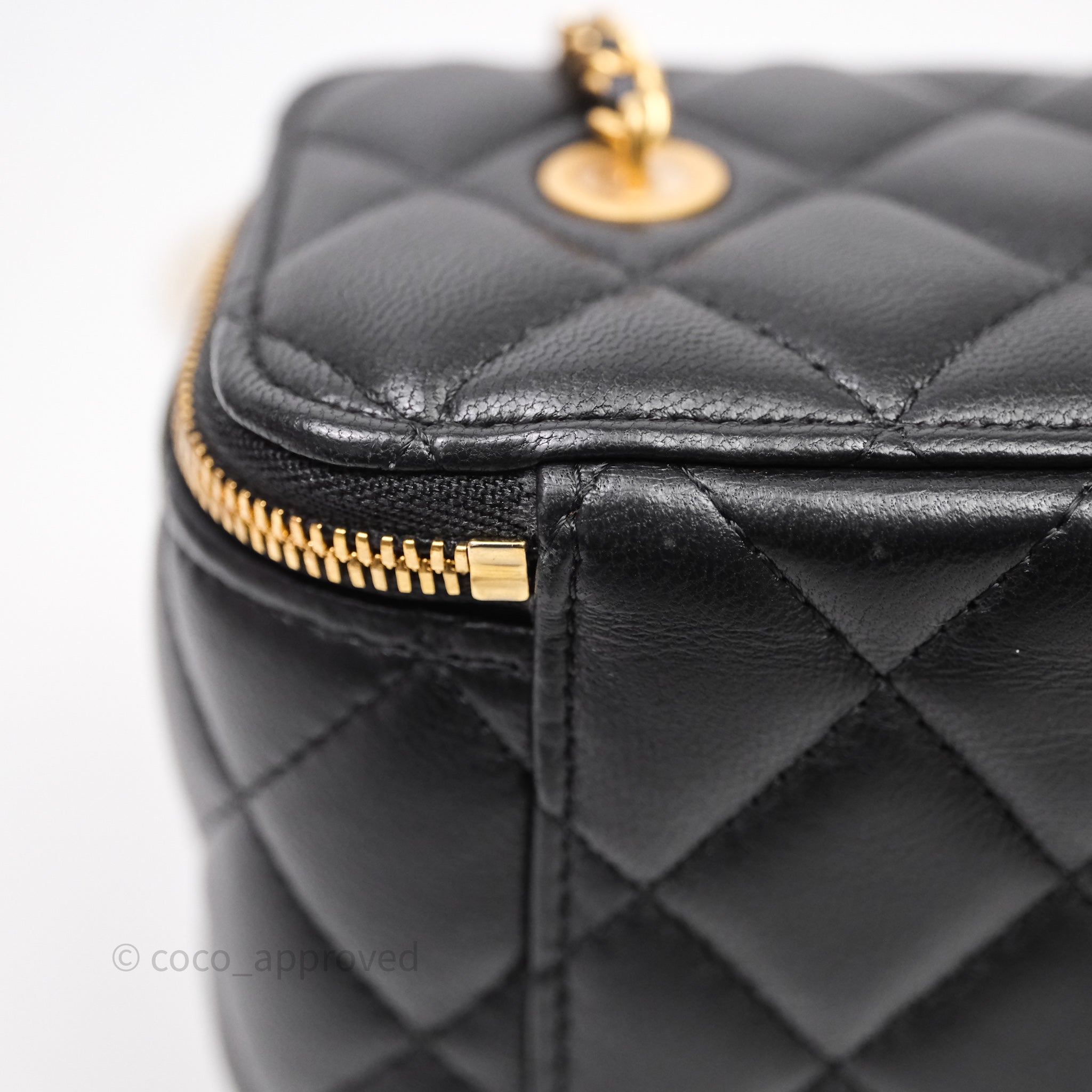 Chanel Vanity With COCO Heart Chain Black Lambskin Aged Gold Hardware