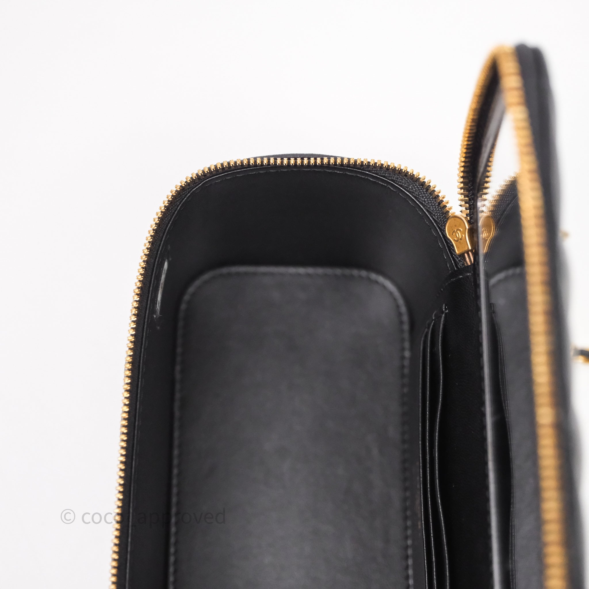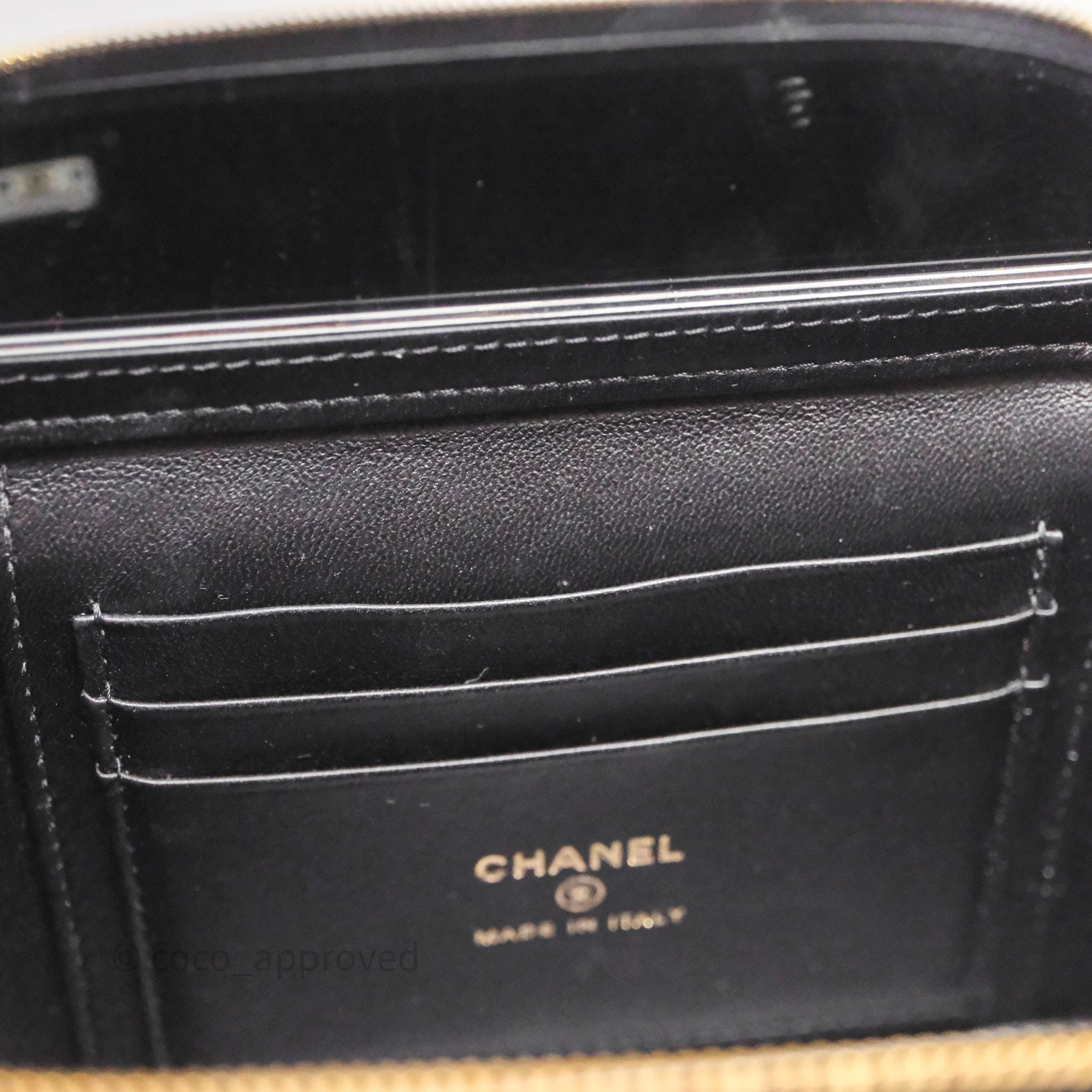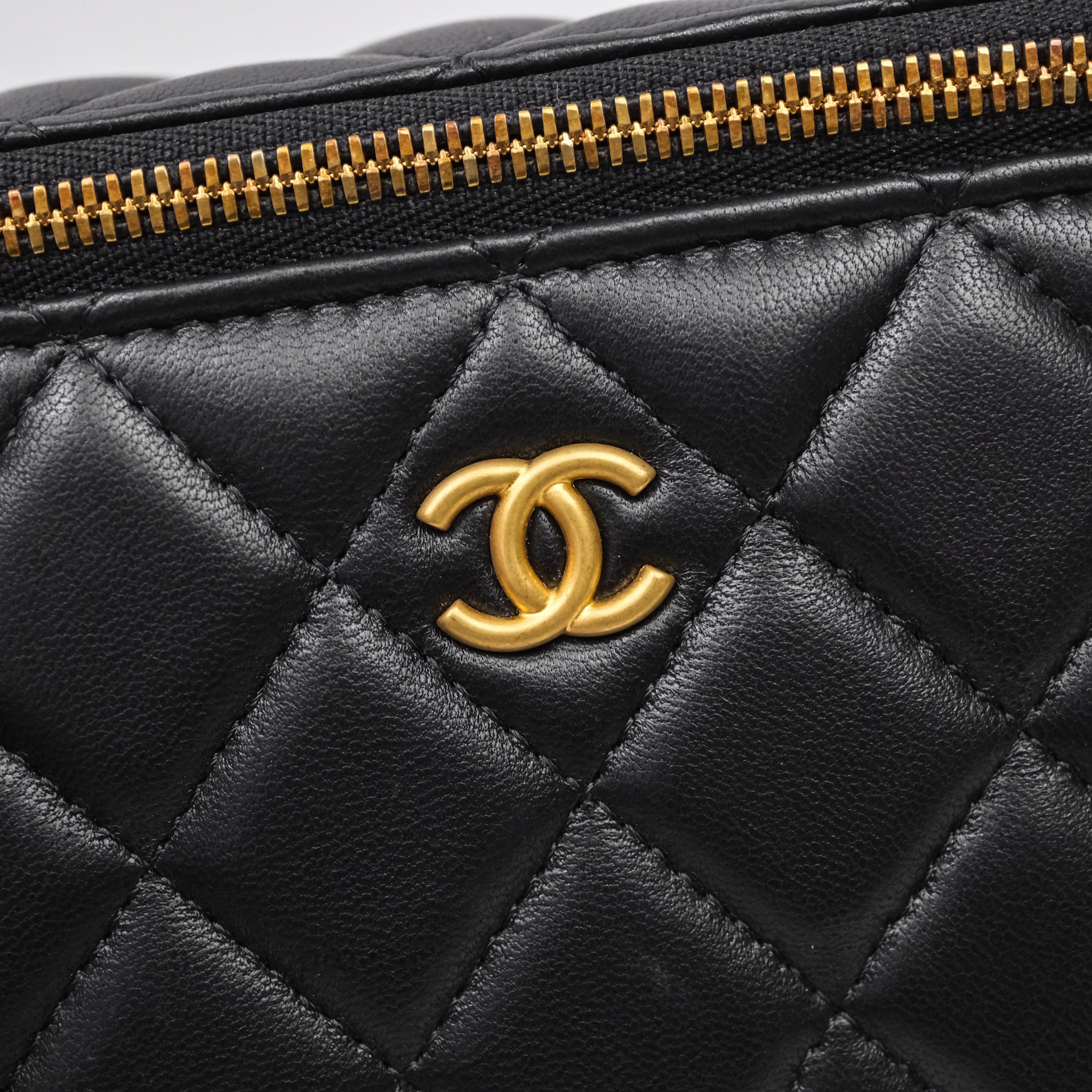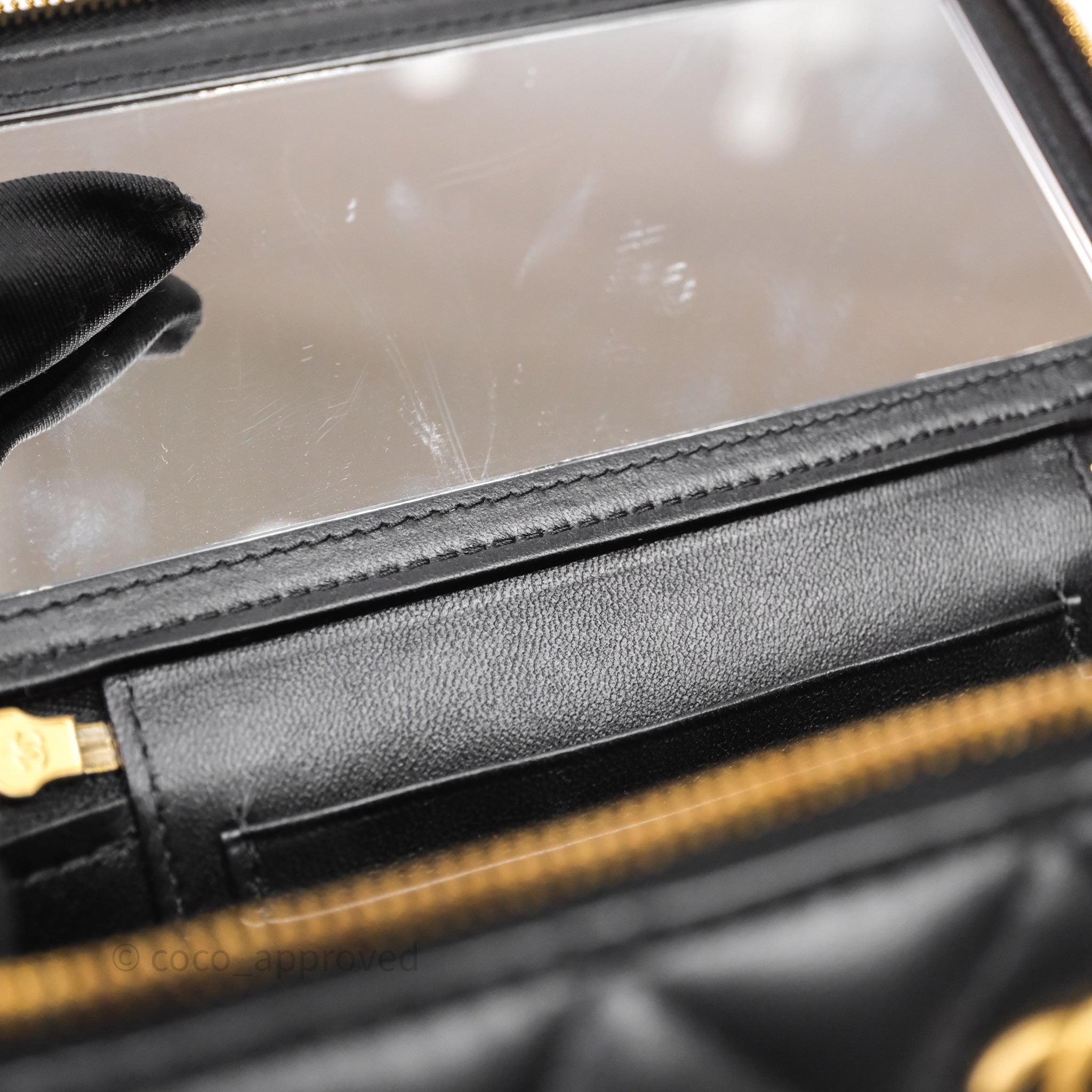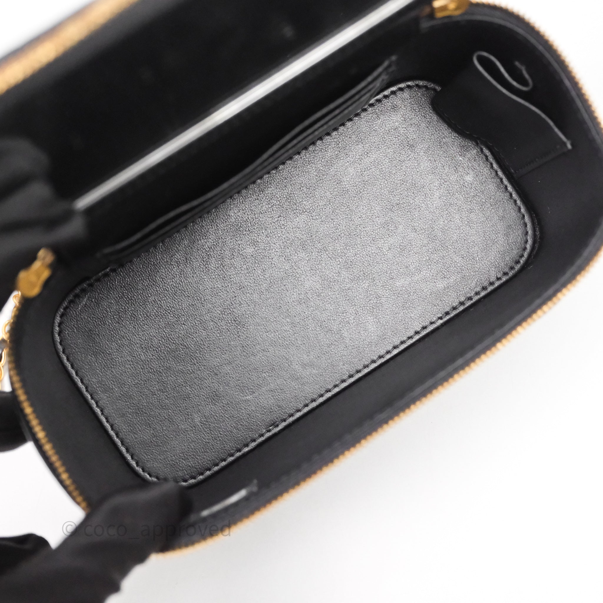 Chanel Vanity With COCO Heart Chain Black Lambskin Aged Gold Hardware