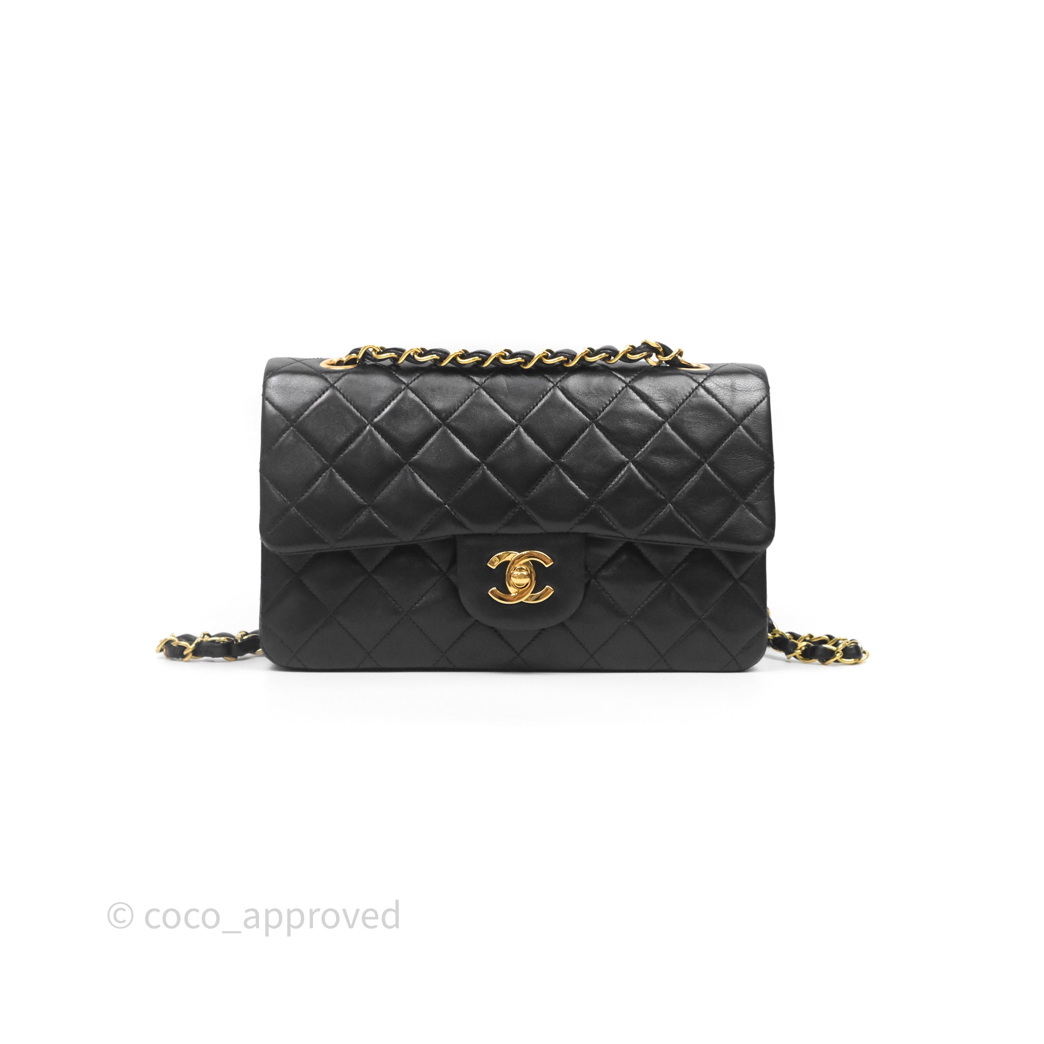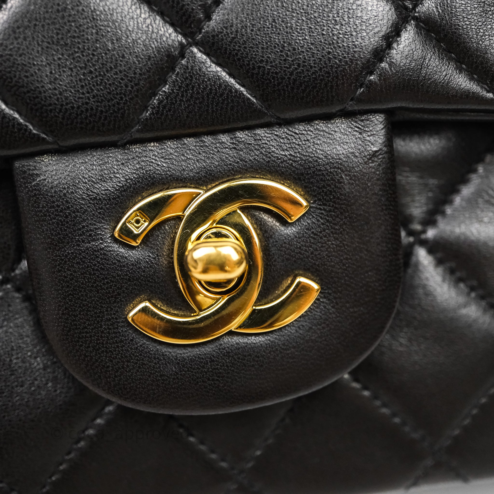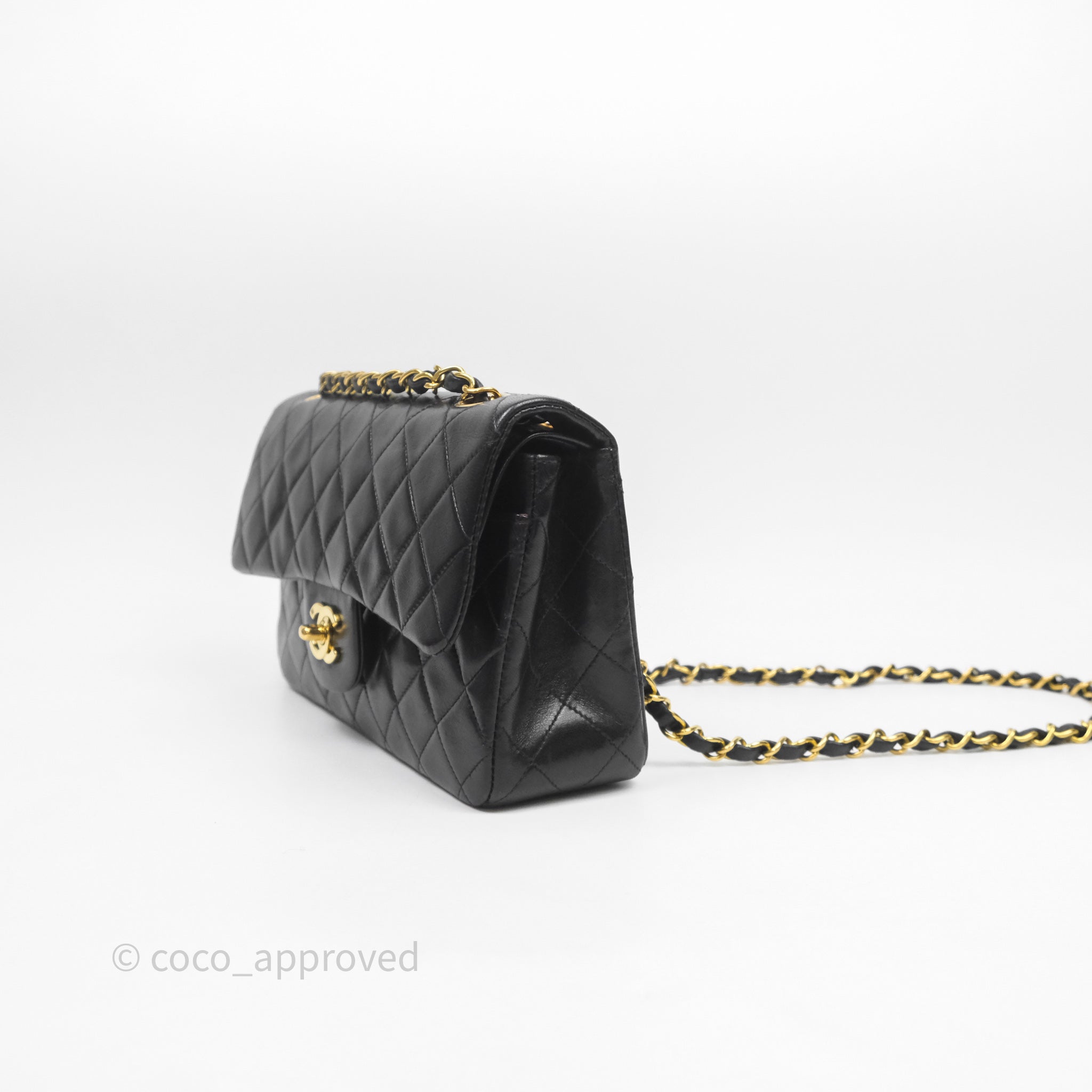 Chanel Vintage Classic Small Flap Bag Black Lambskin 24K Gold Hardware