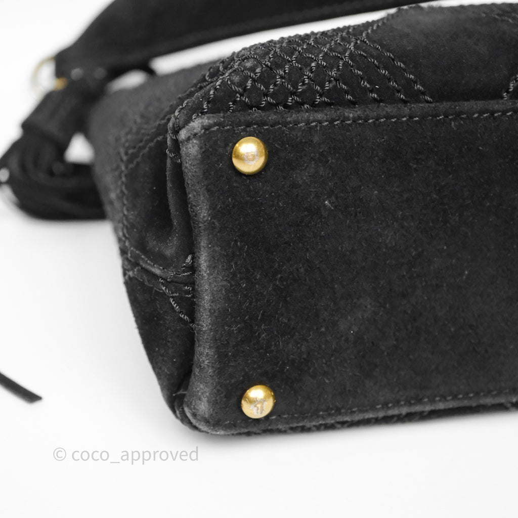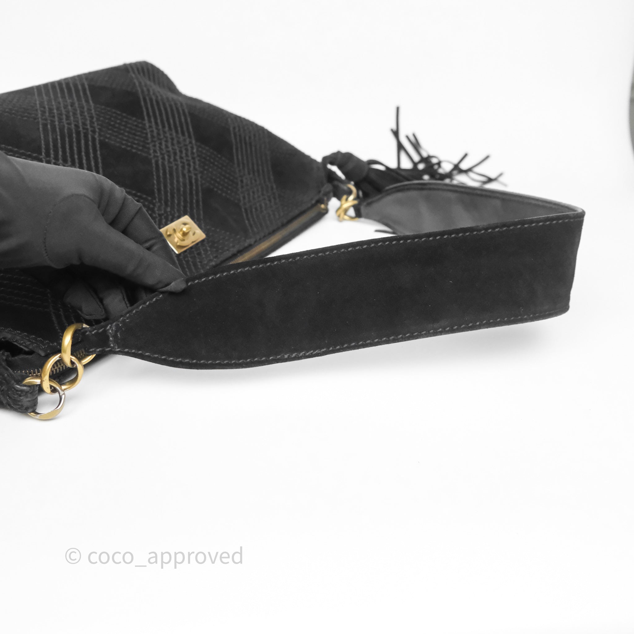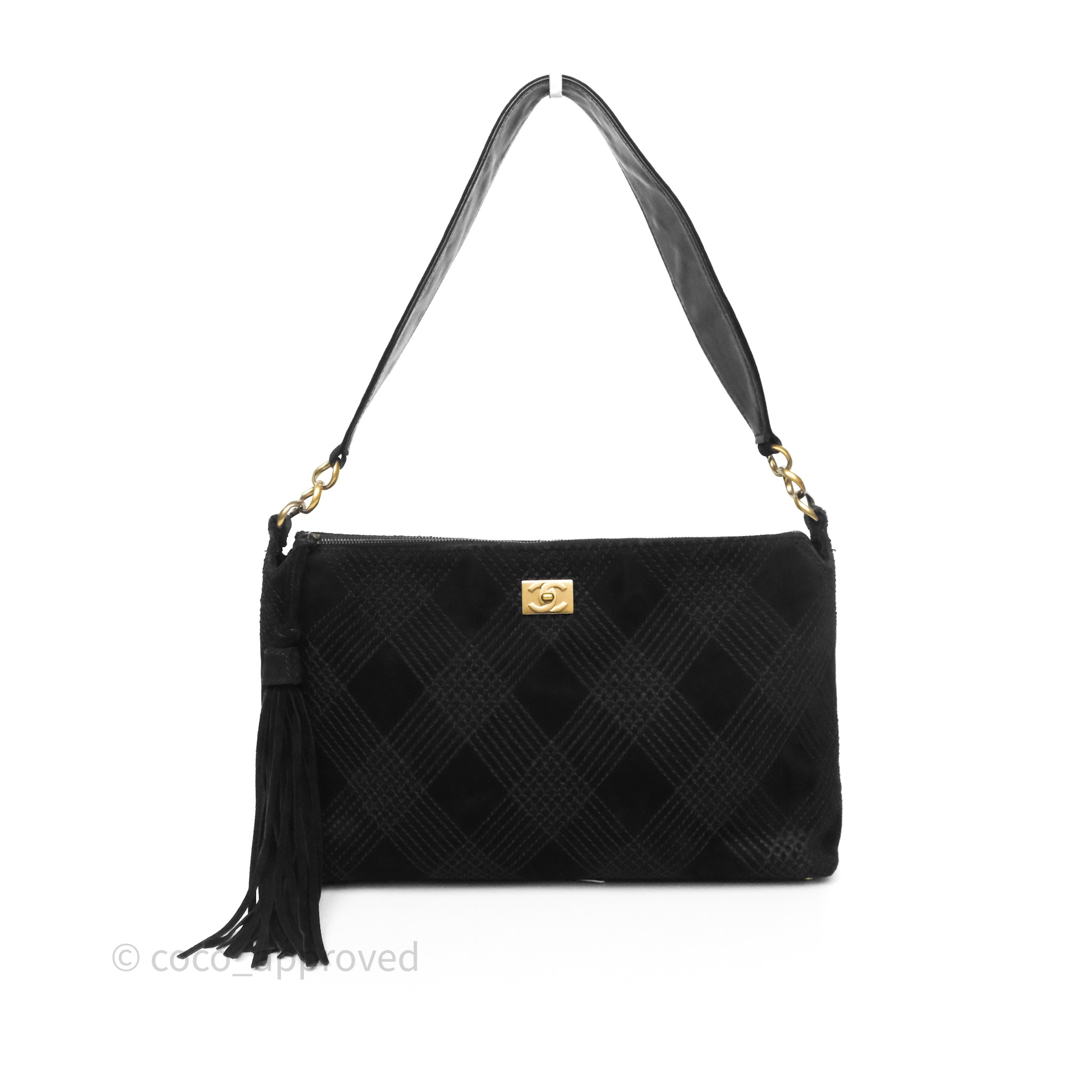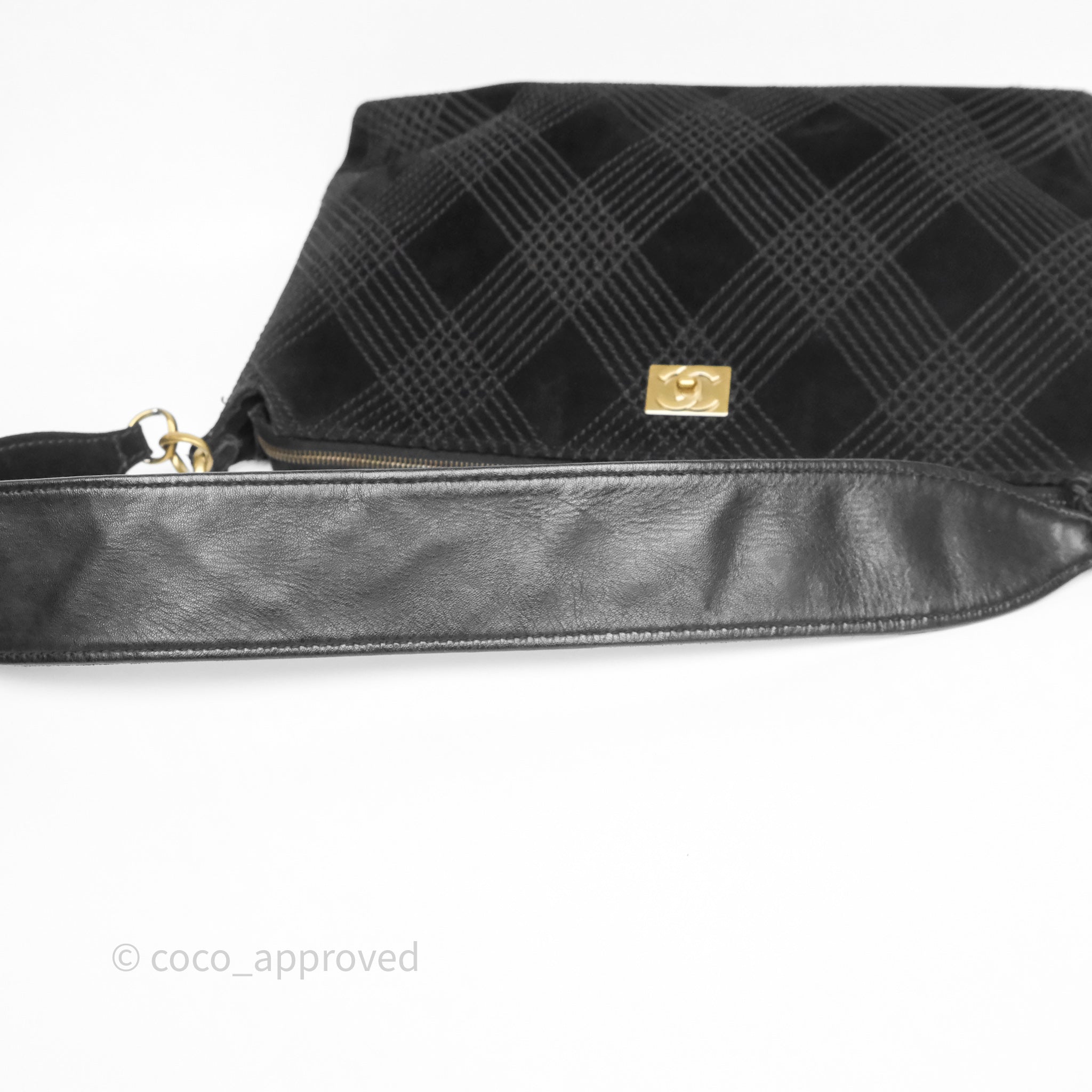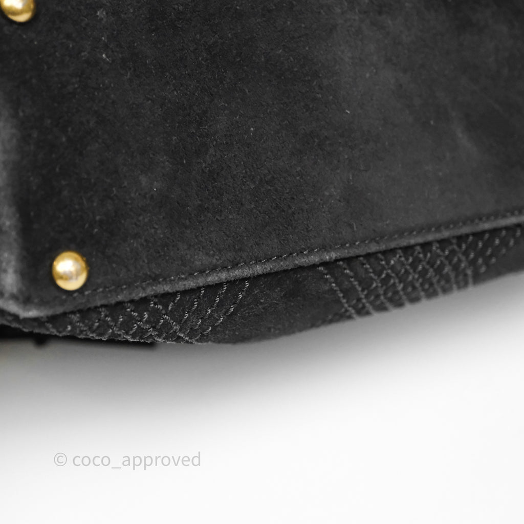 Chanel Vintage Shoulder Bag Quilted Black Suede Aged Gold Hardware