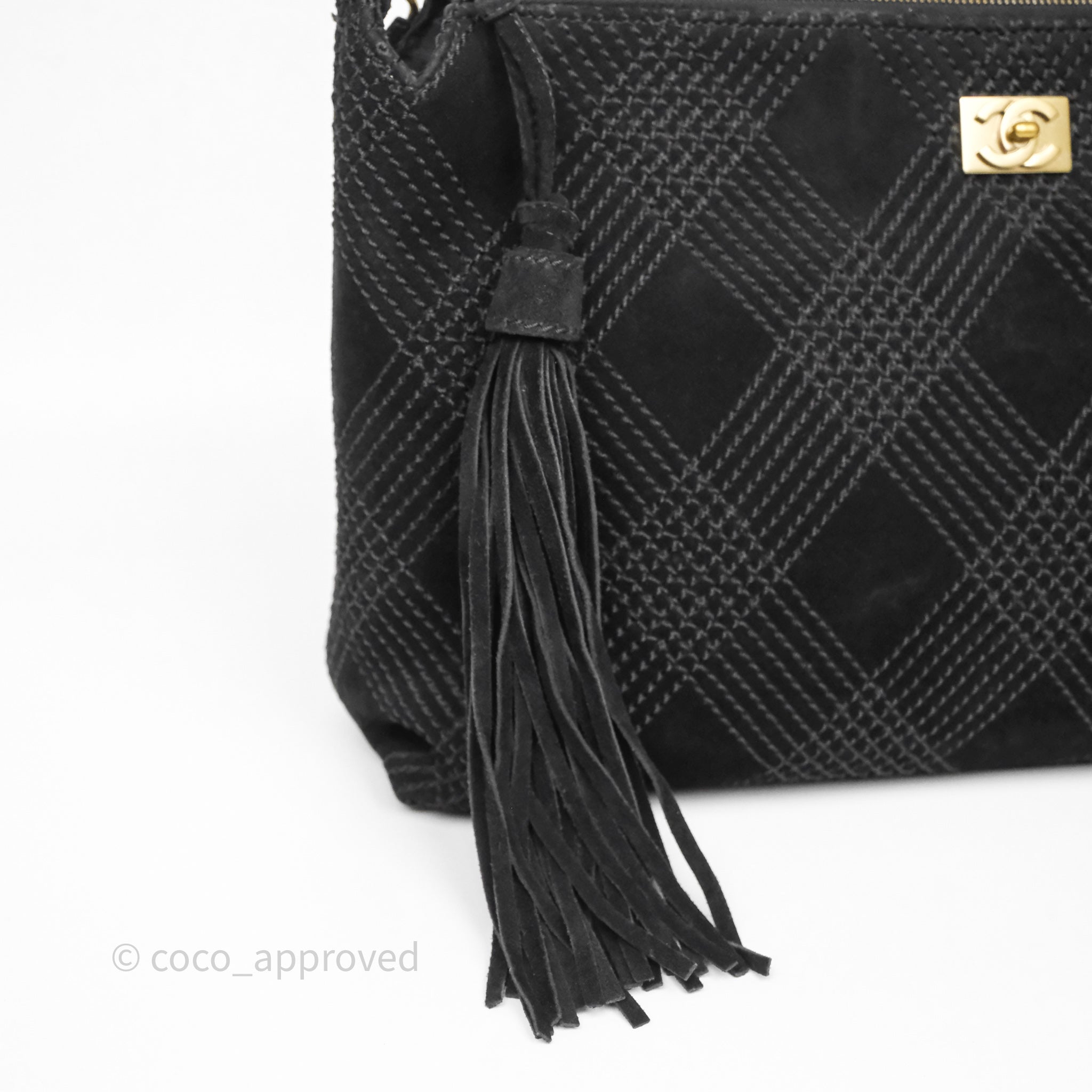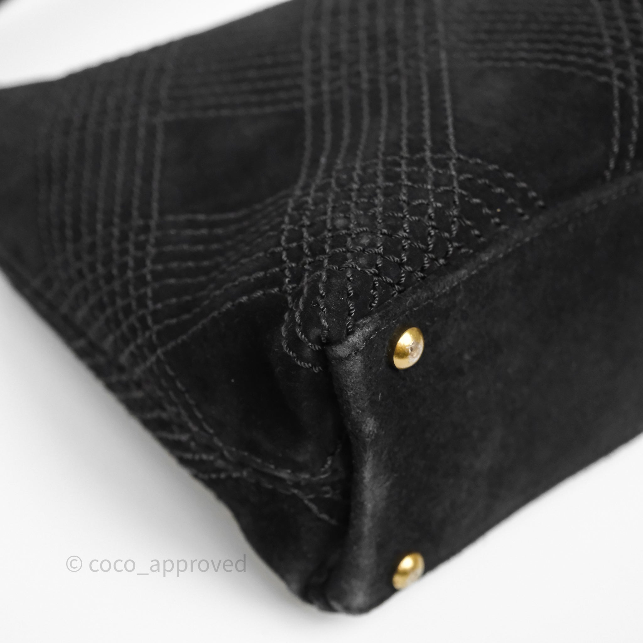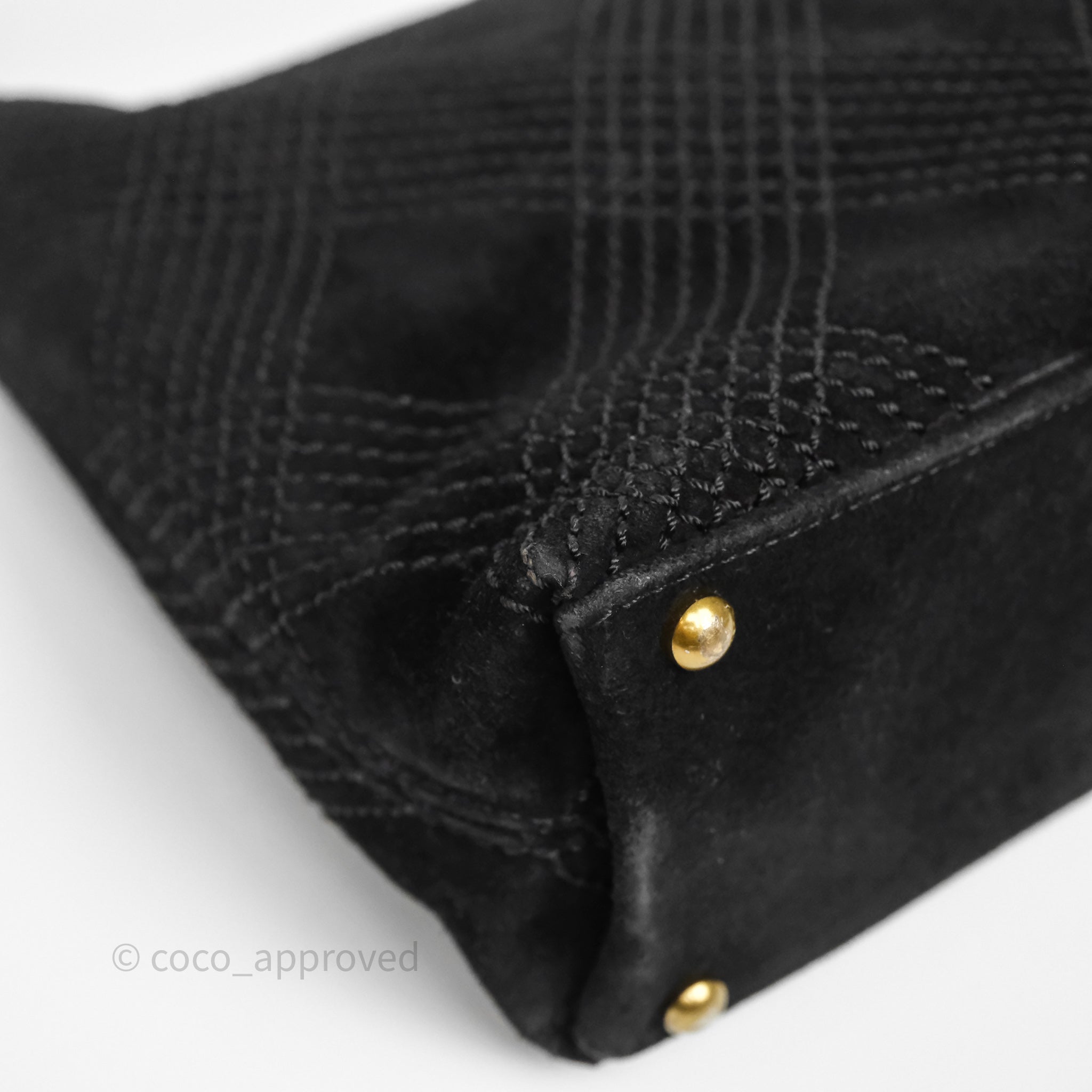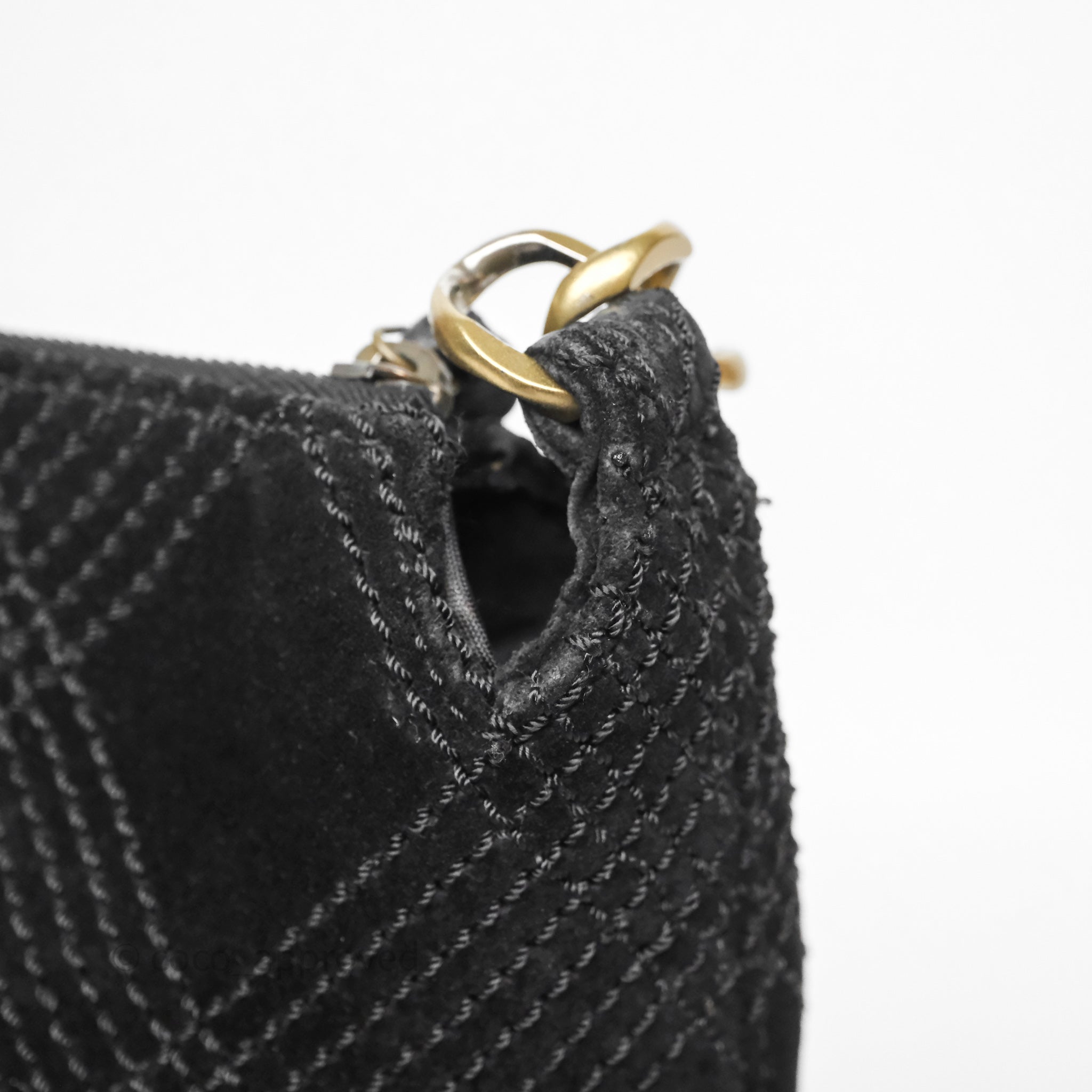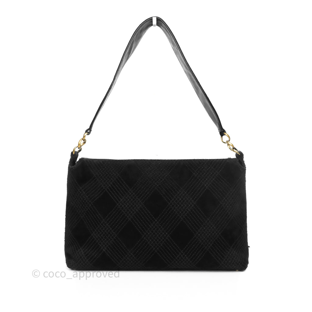 Chanel Vintage Shoulder Bag Quilted Black Suede Aged Gold Hardware